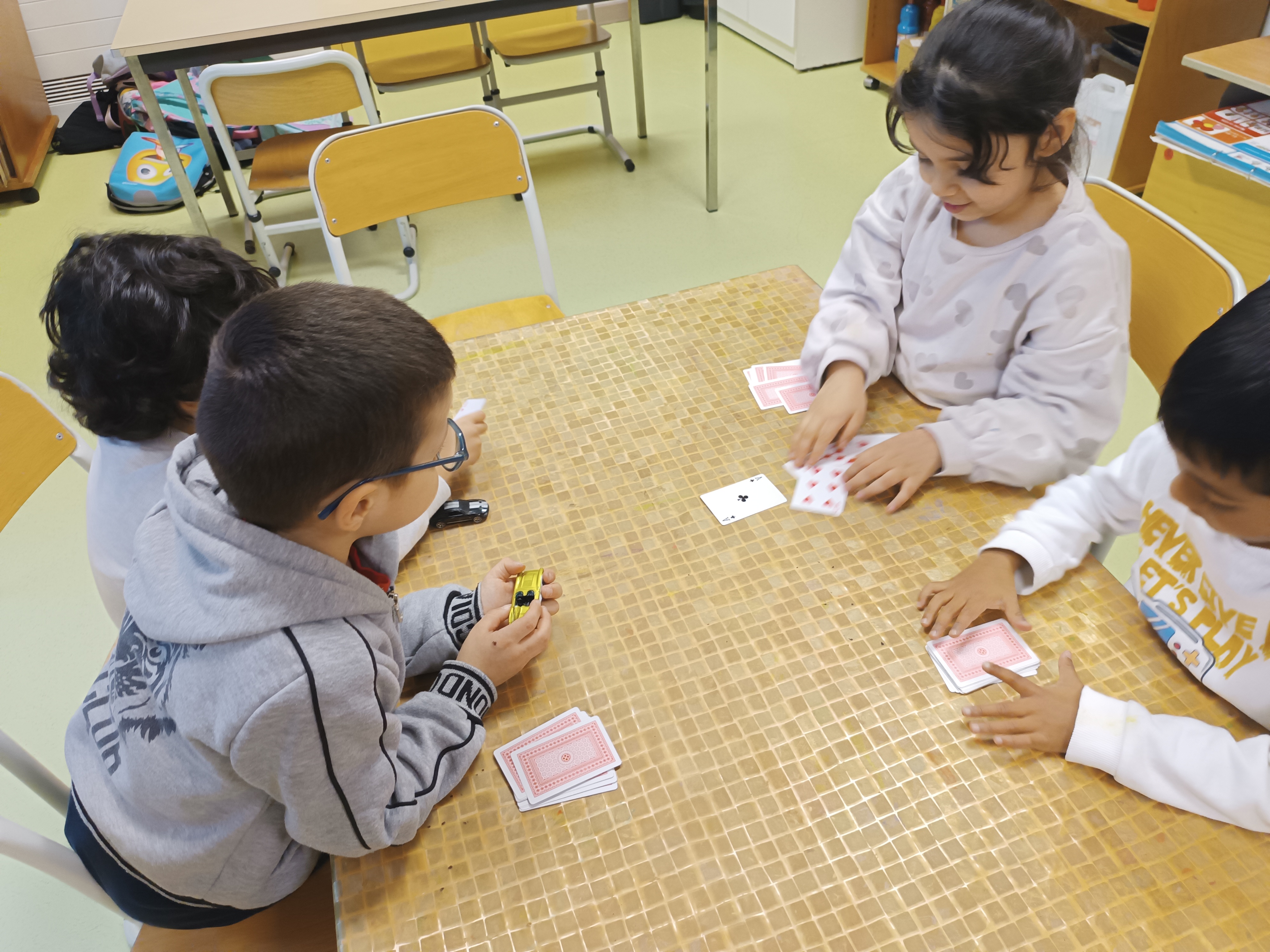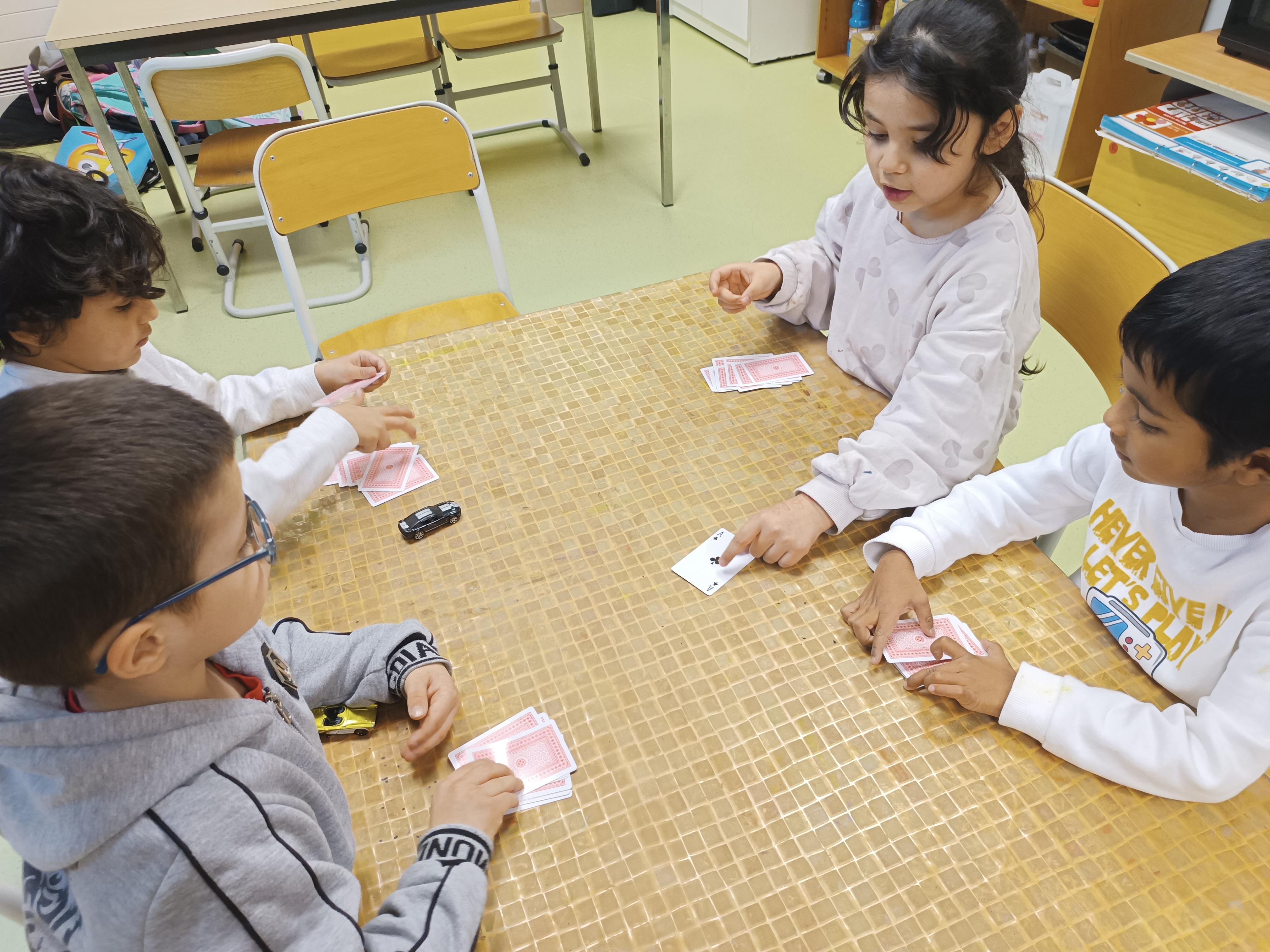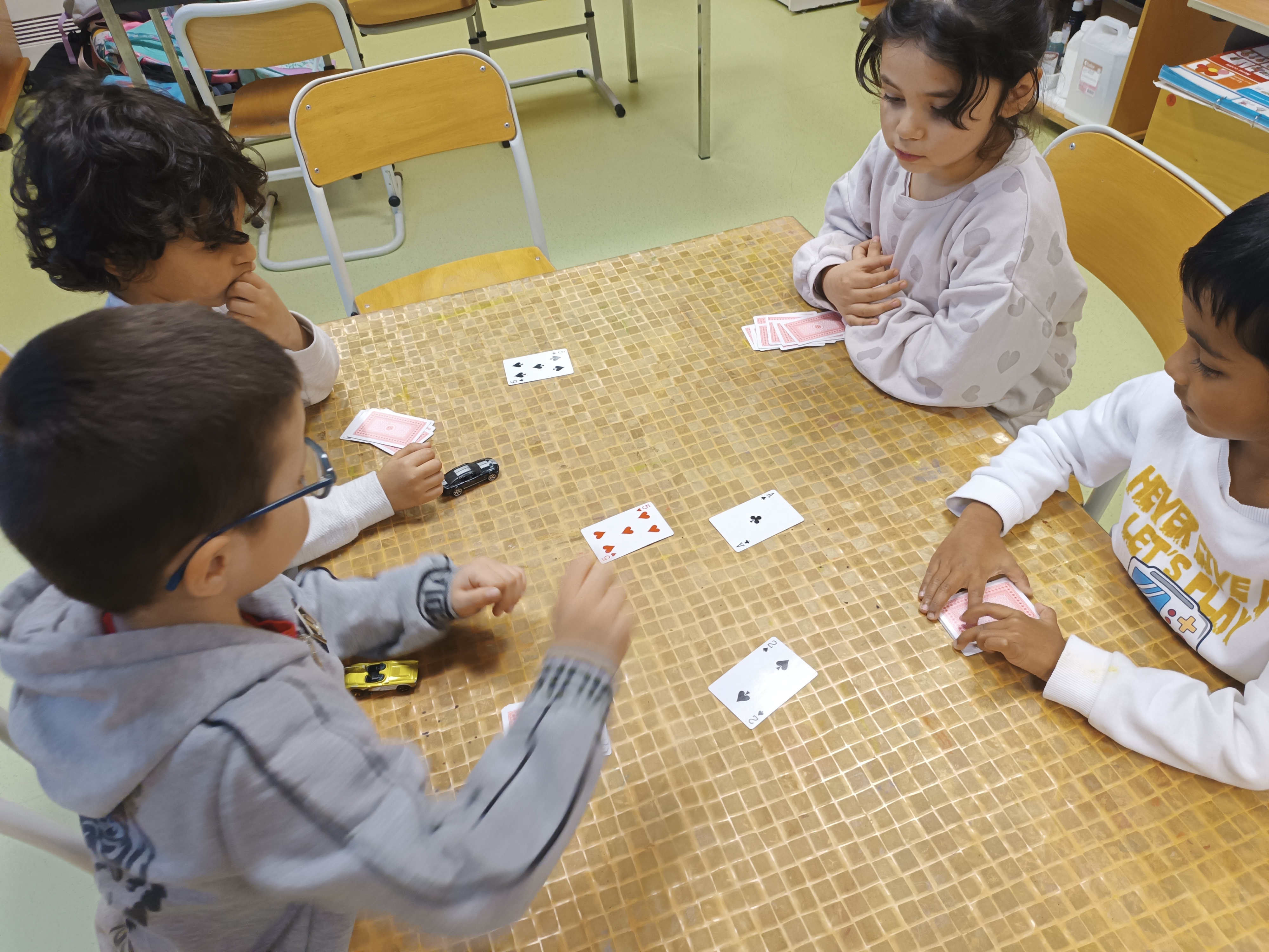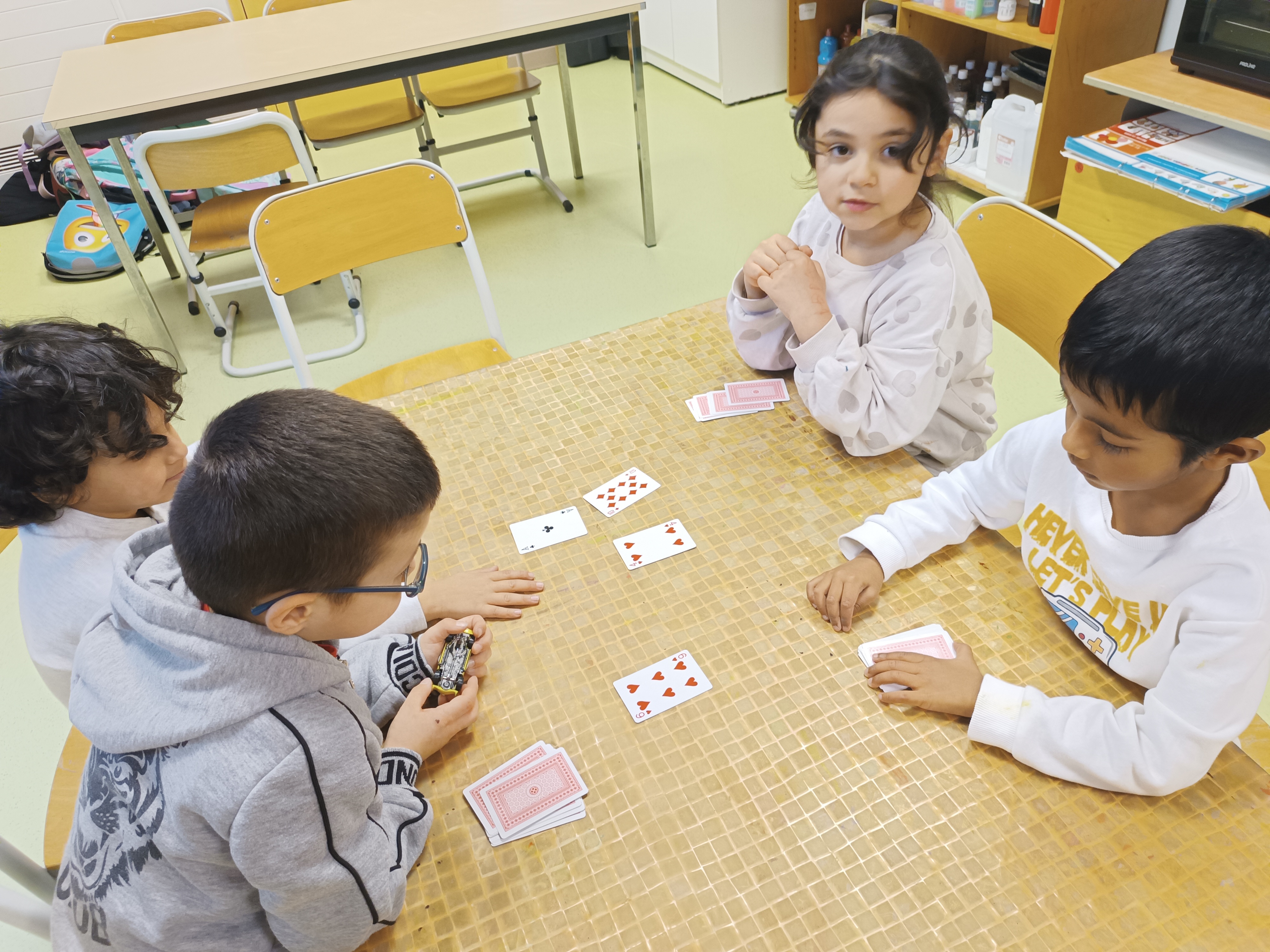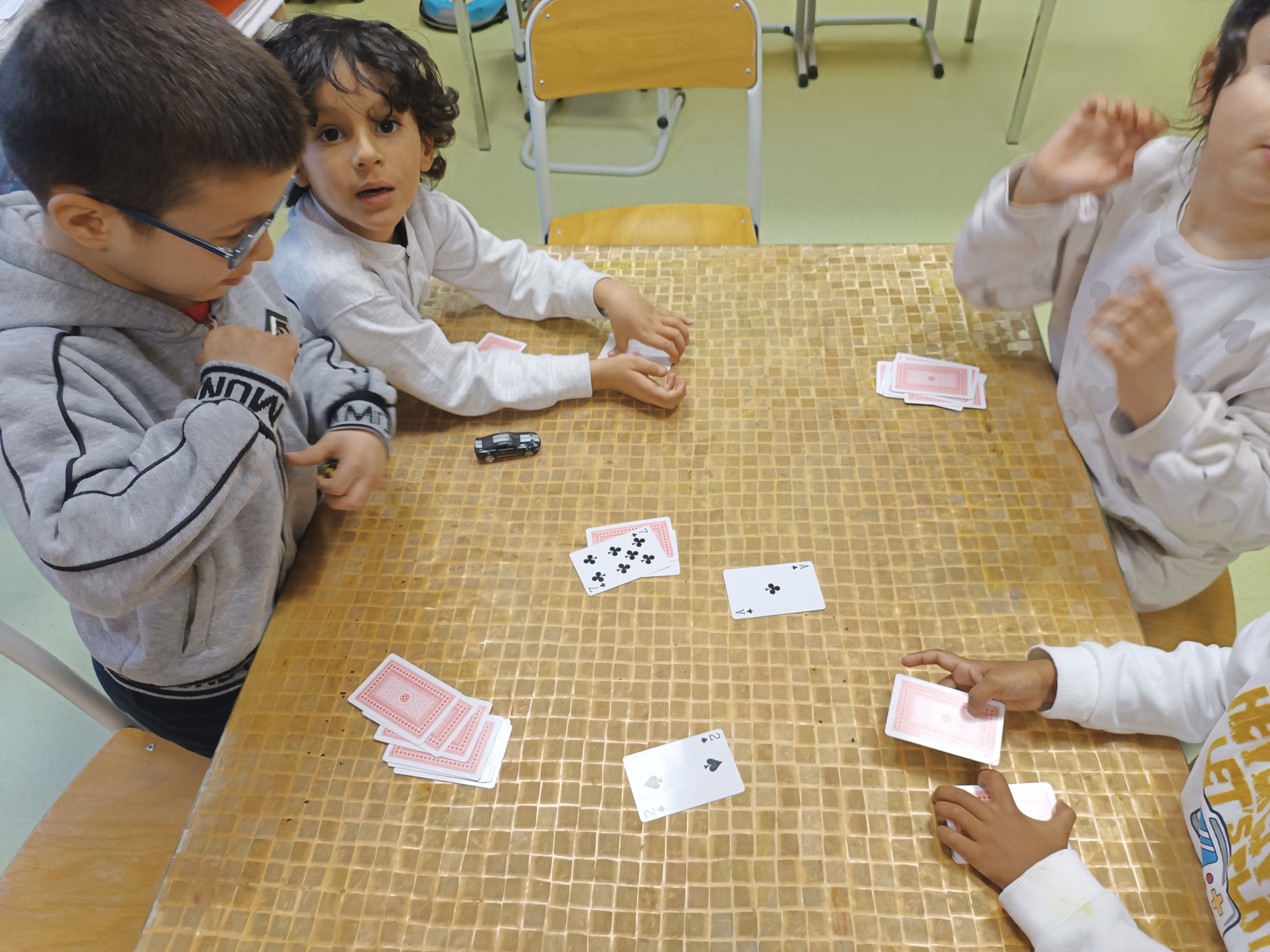 Les enfants ont appris à jouer à la bataille avec un jeu de cartes traditionnel.