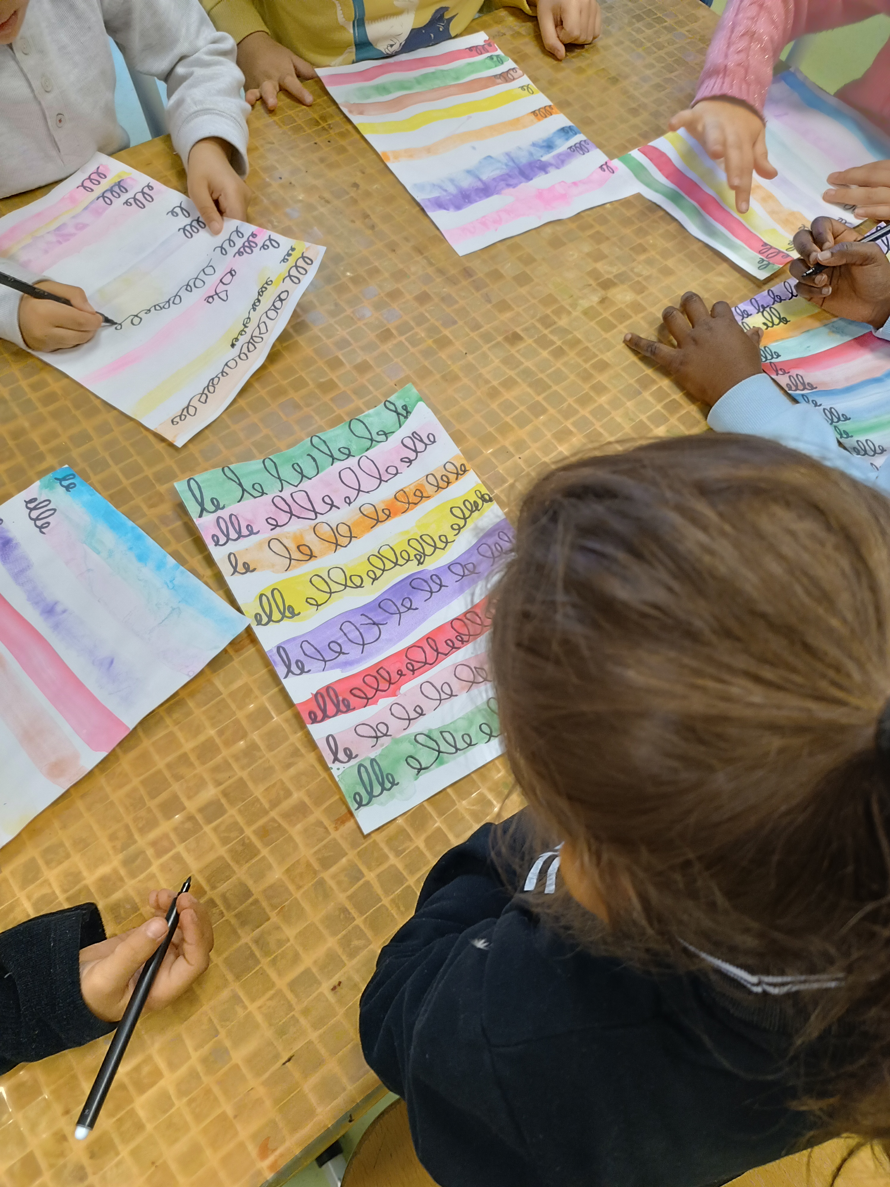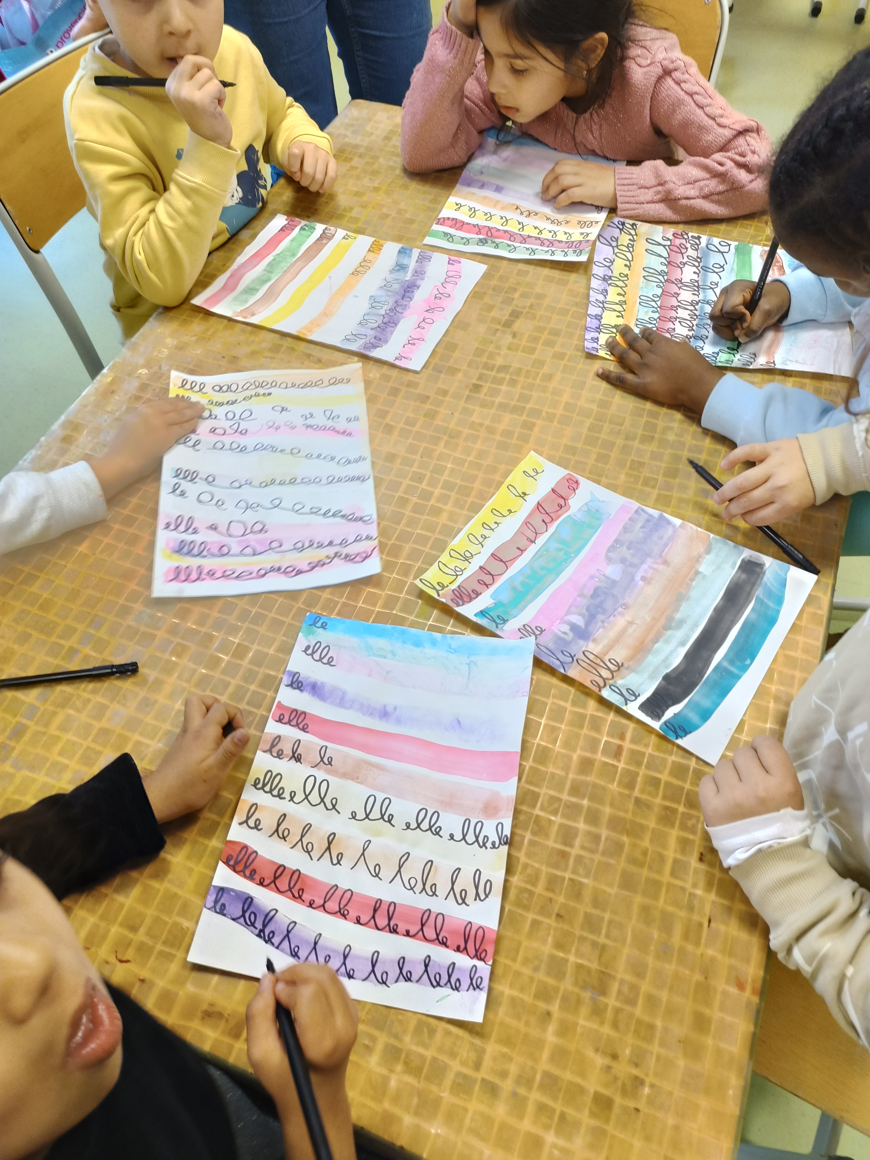 Approfondissement de l'écriture des mots "le" et "elle" en attaché.