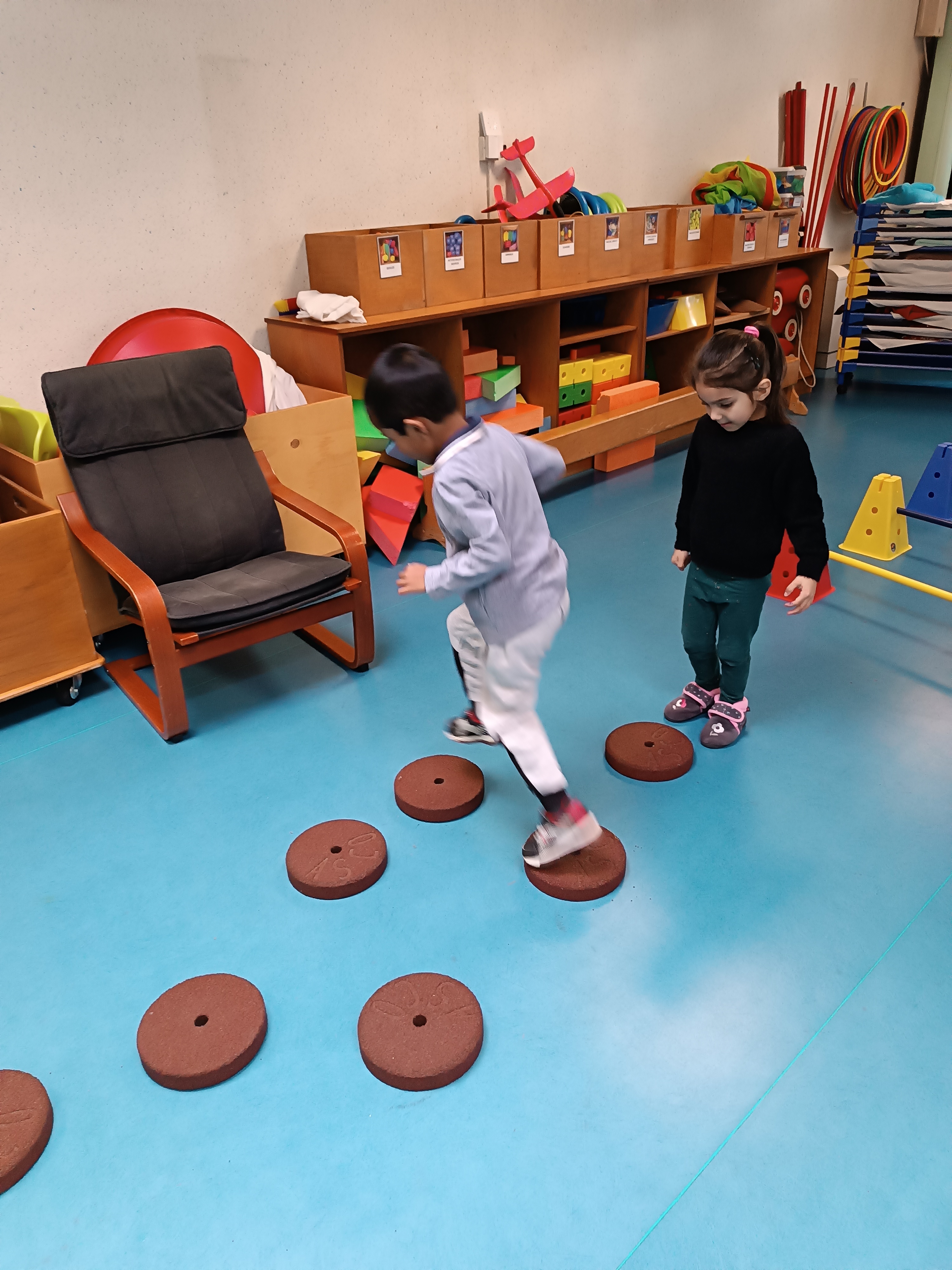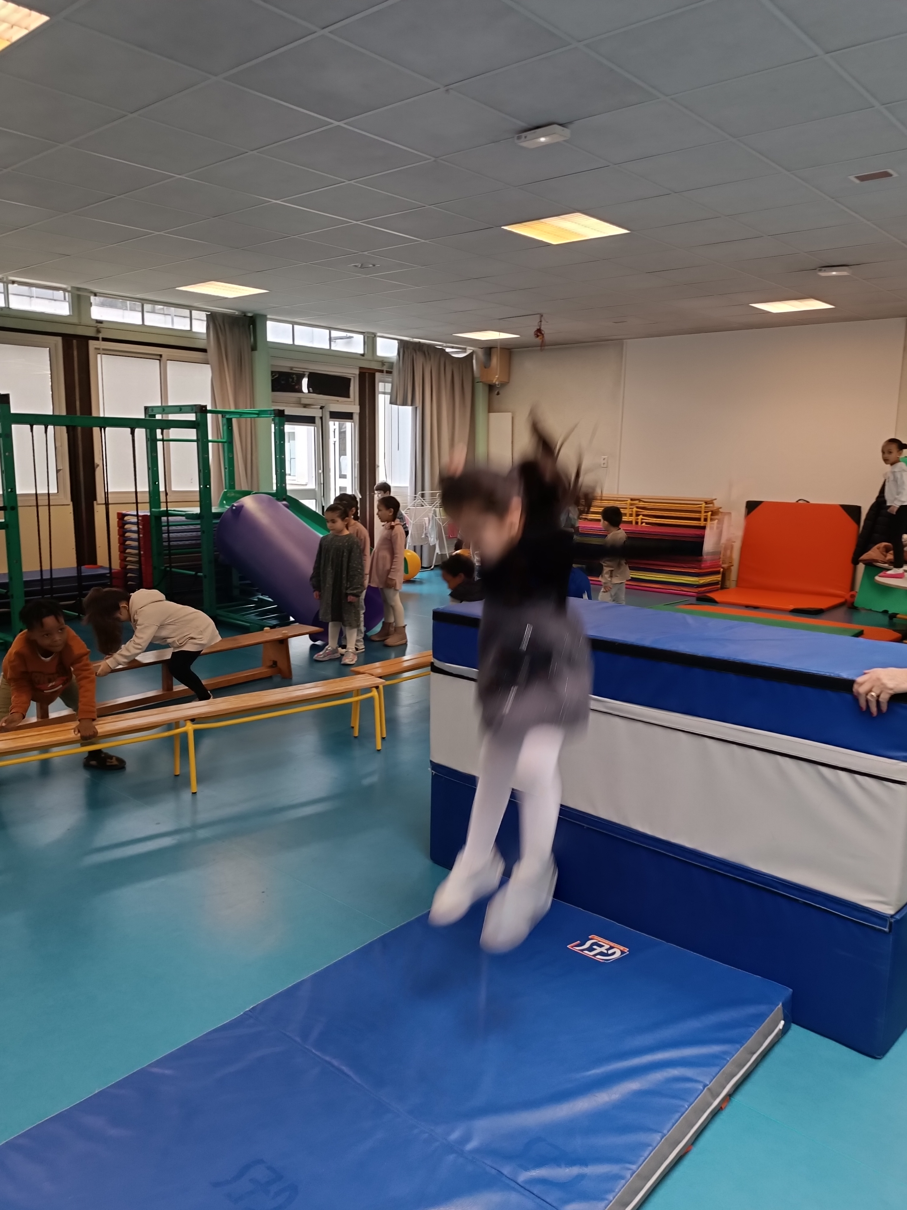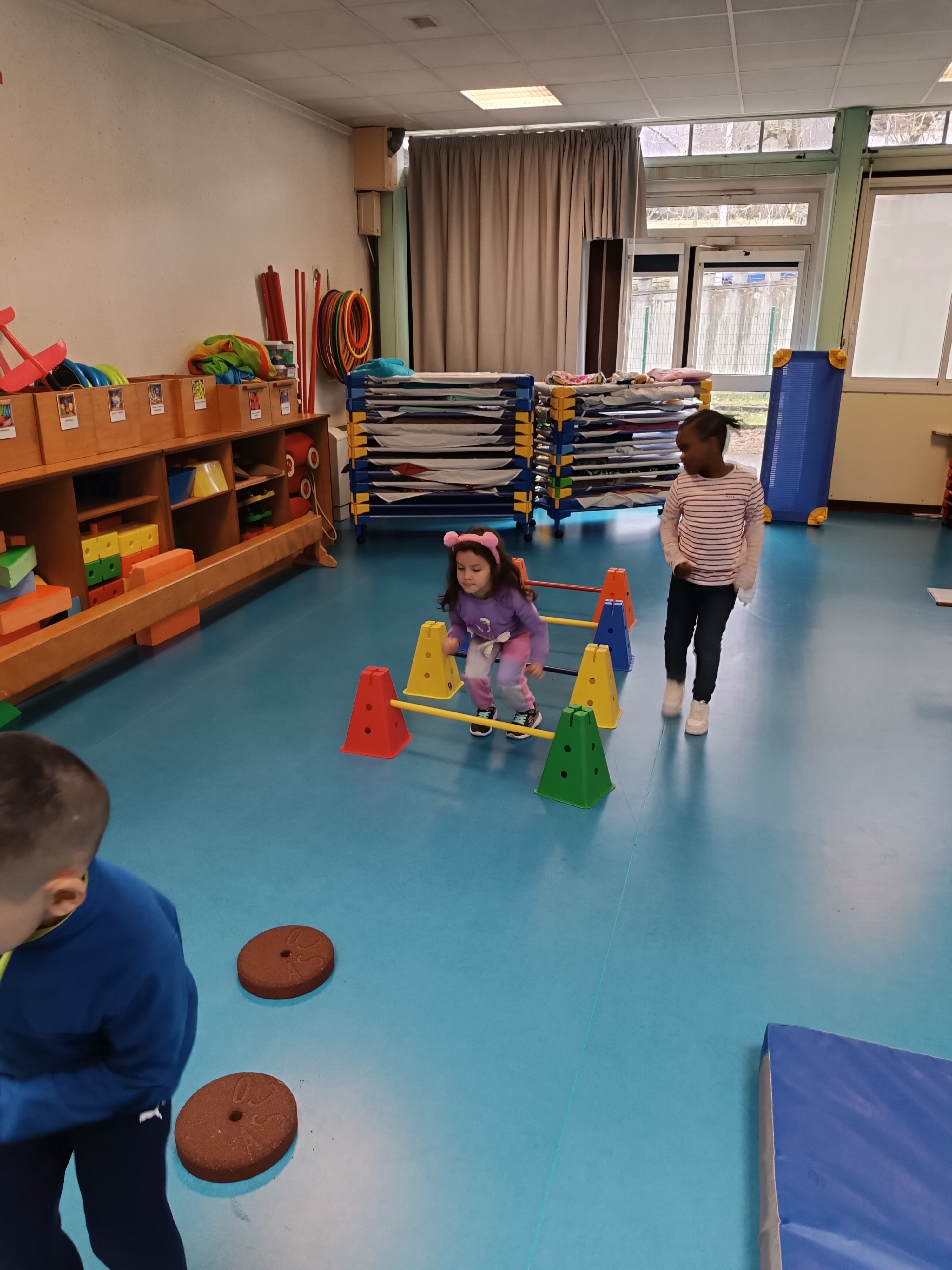 Nouvelle période, nouvelle compétence travaillée en parcours de motricité : sauter.