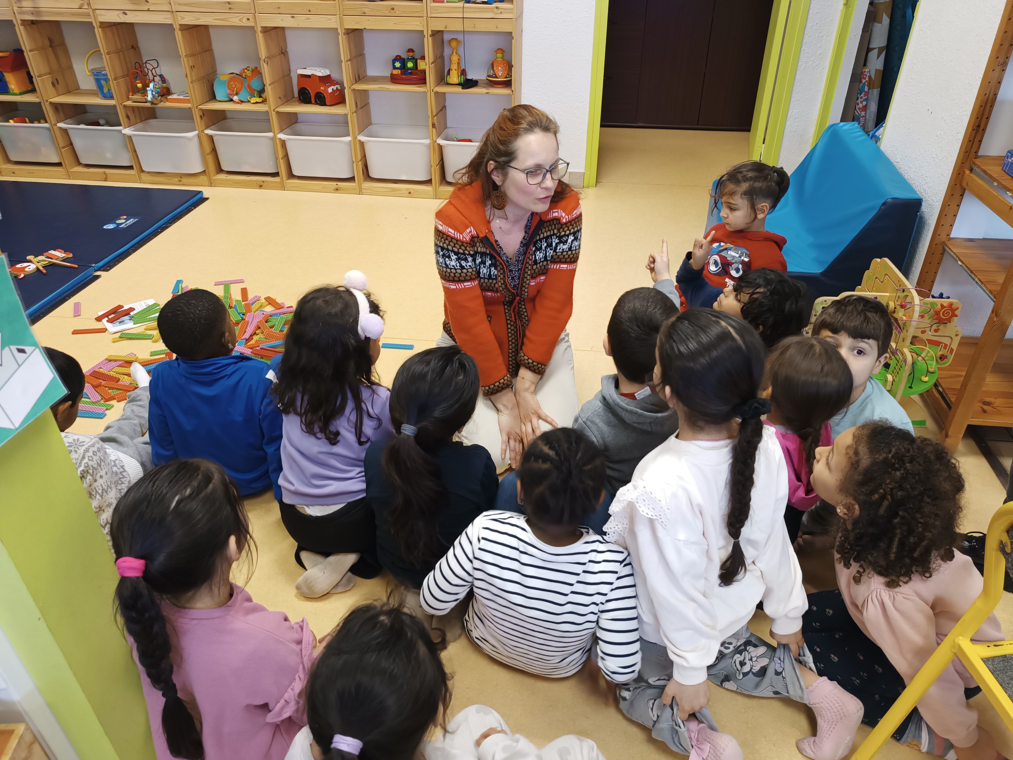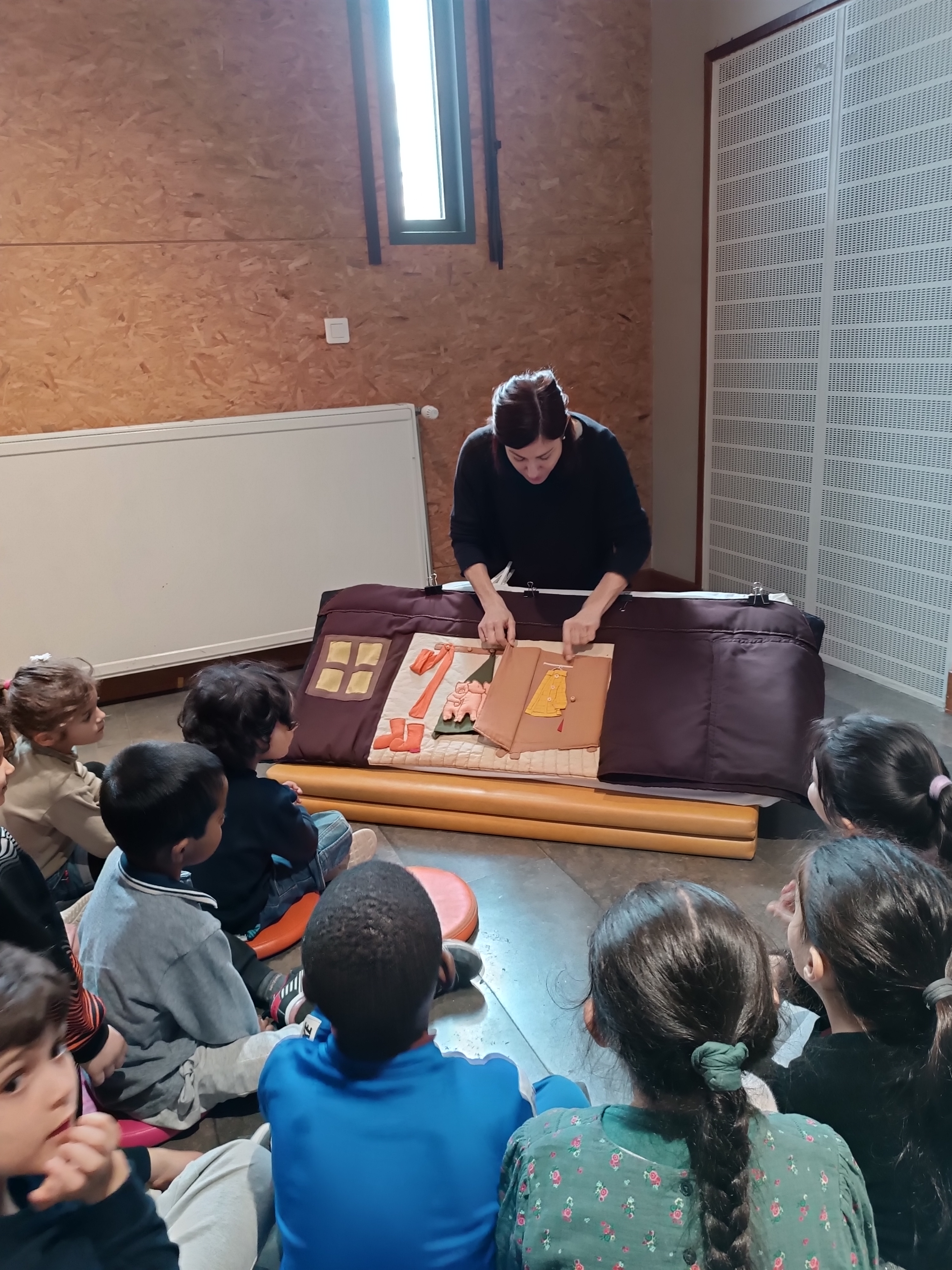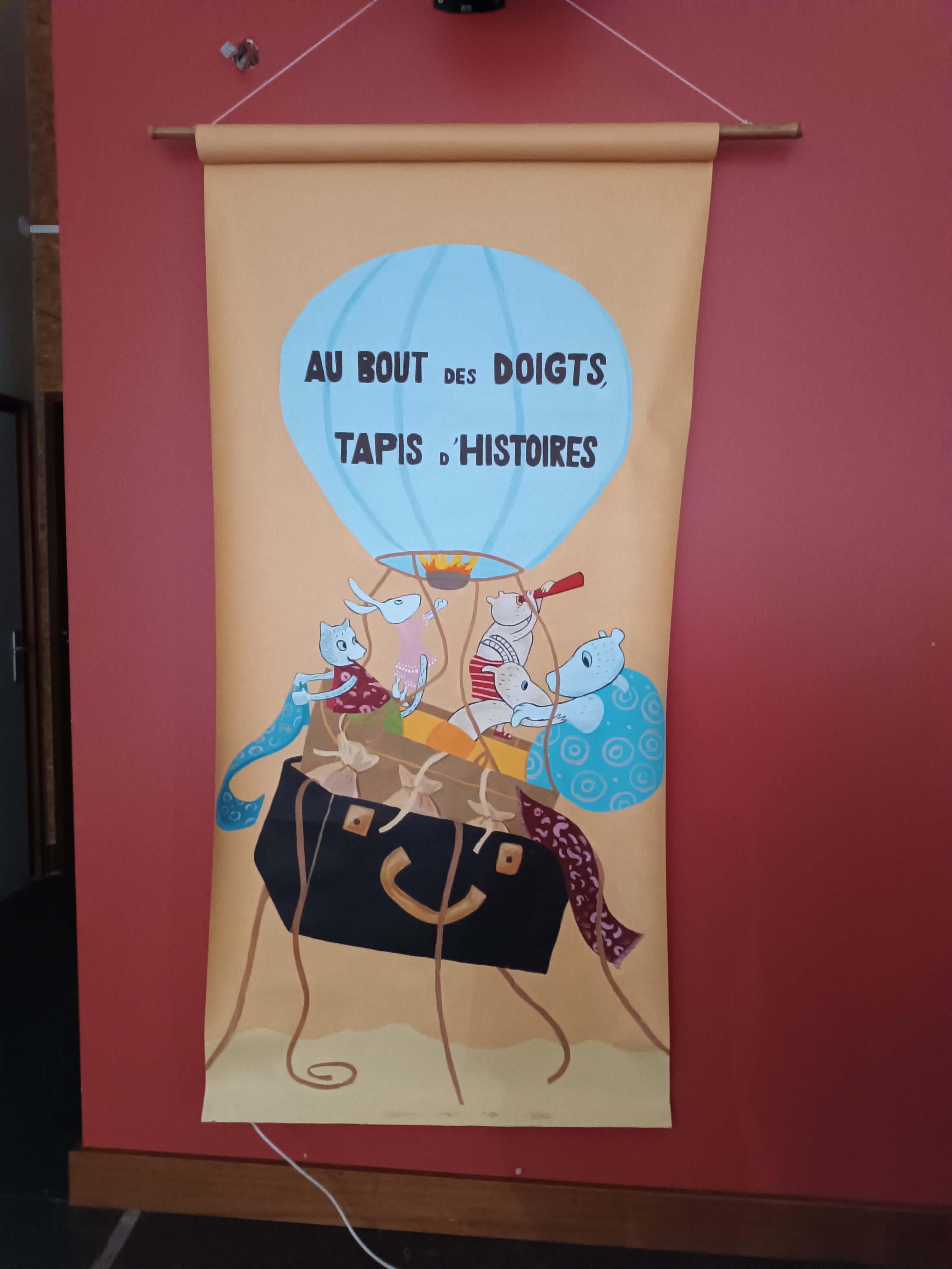 Sortie à la bibliothèque pour voir l'exposition "Au bout des doigts, tapis d'histoires" de l'autrice Sabine de Greef.
