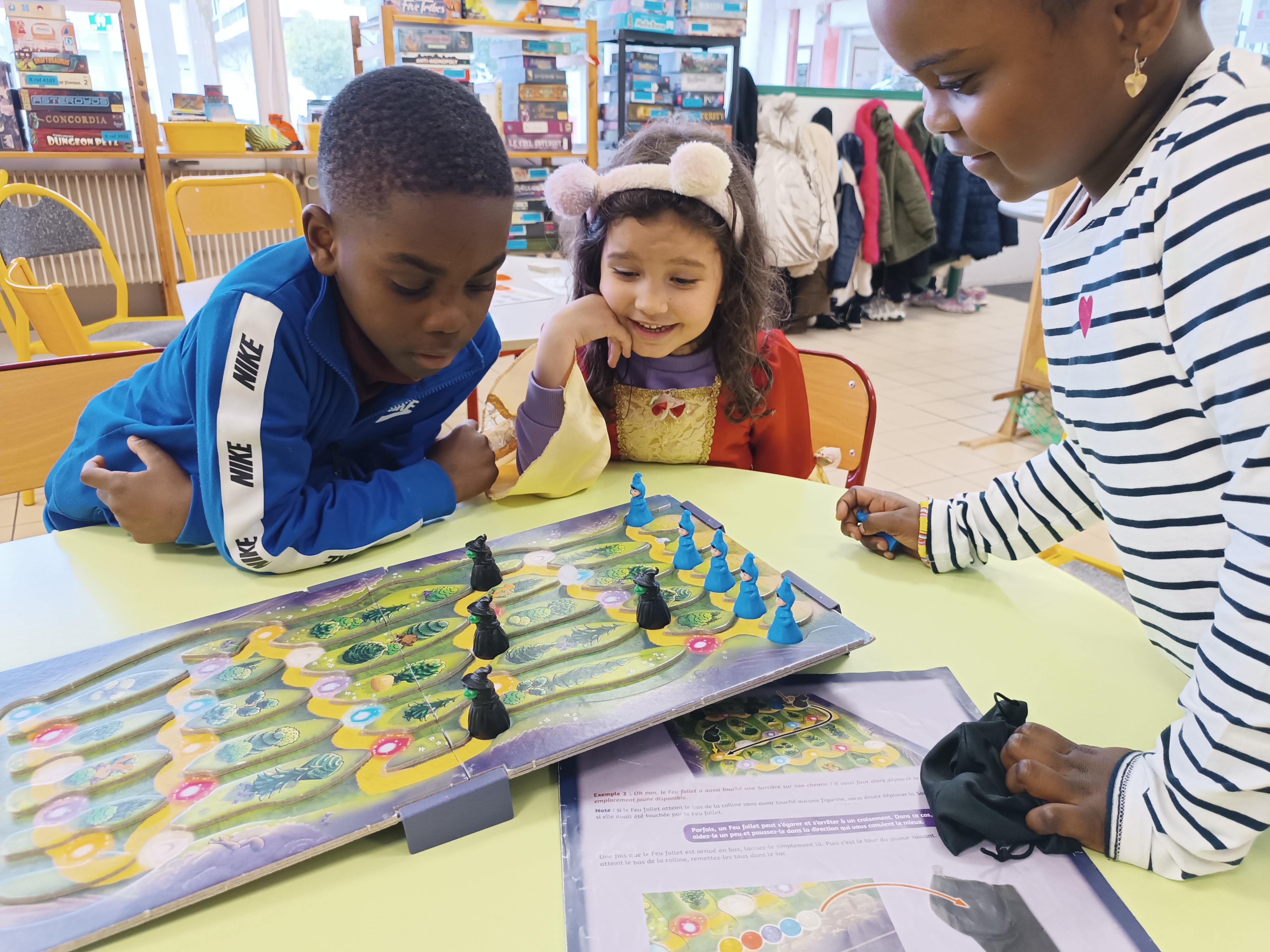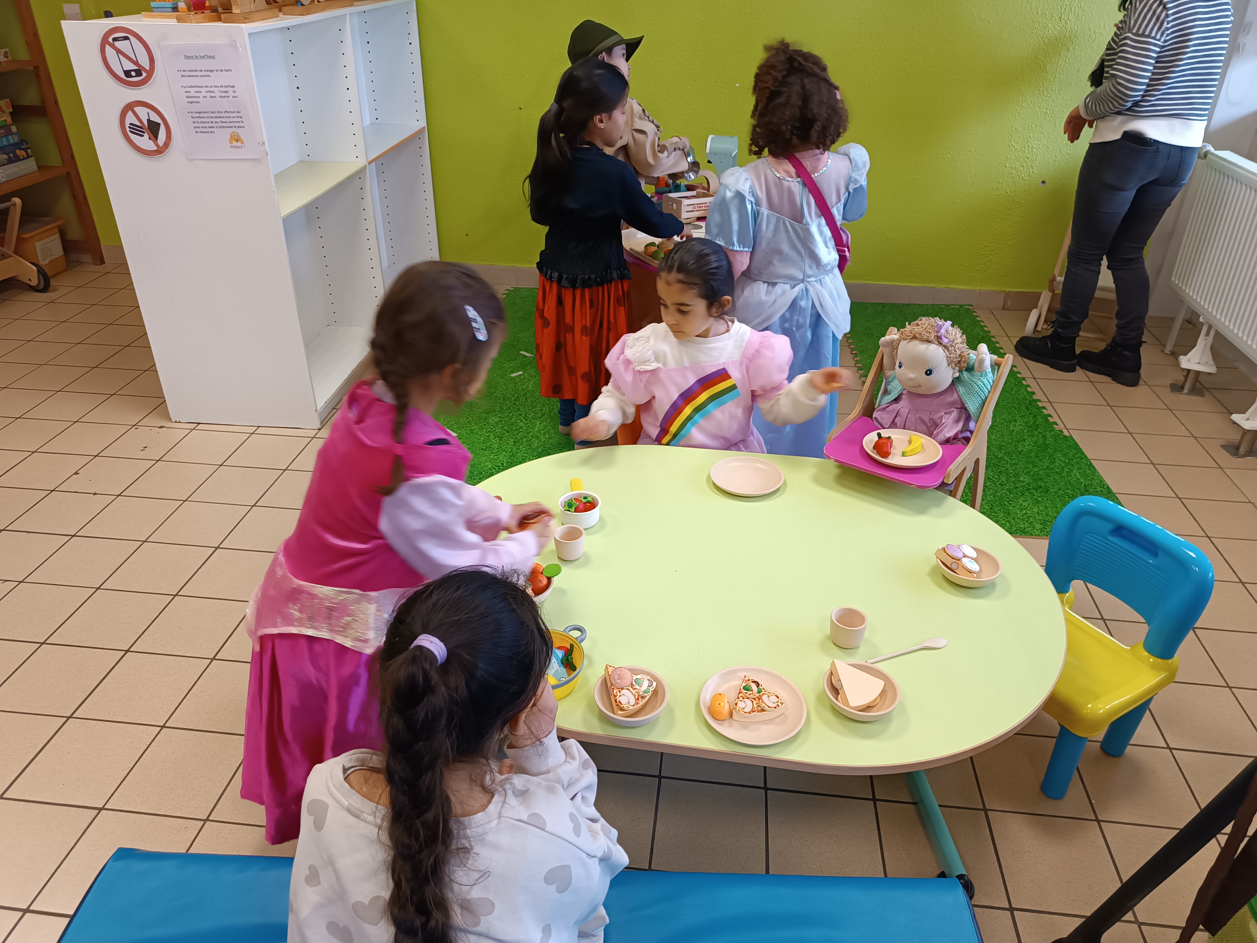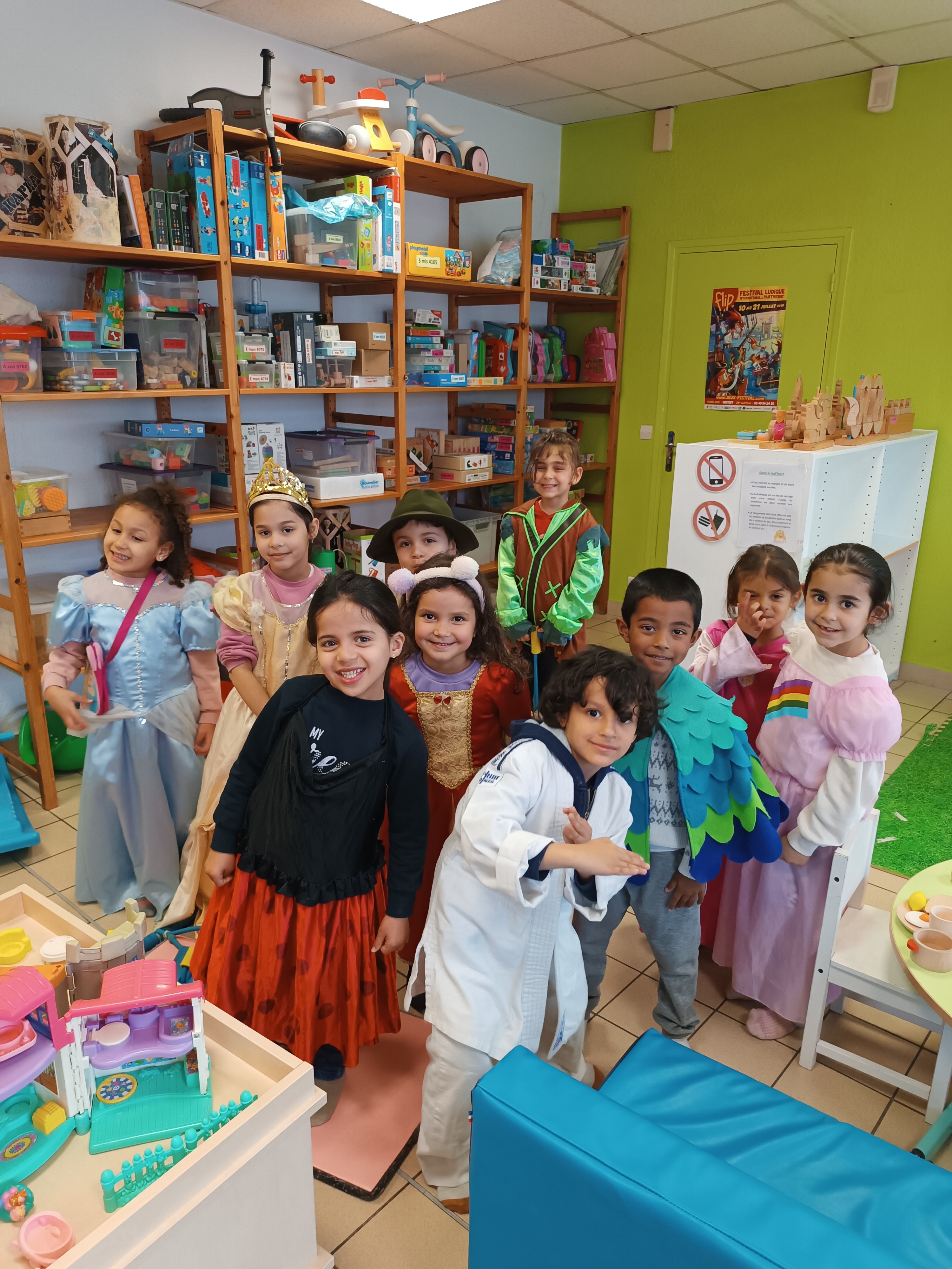 Sortie à la ludothèque. Moment très apprécié des enfants qui ont pu se déguiser, jouer aux voitures, à la dinette, mais aussi, découvrir 2 jeux de société.