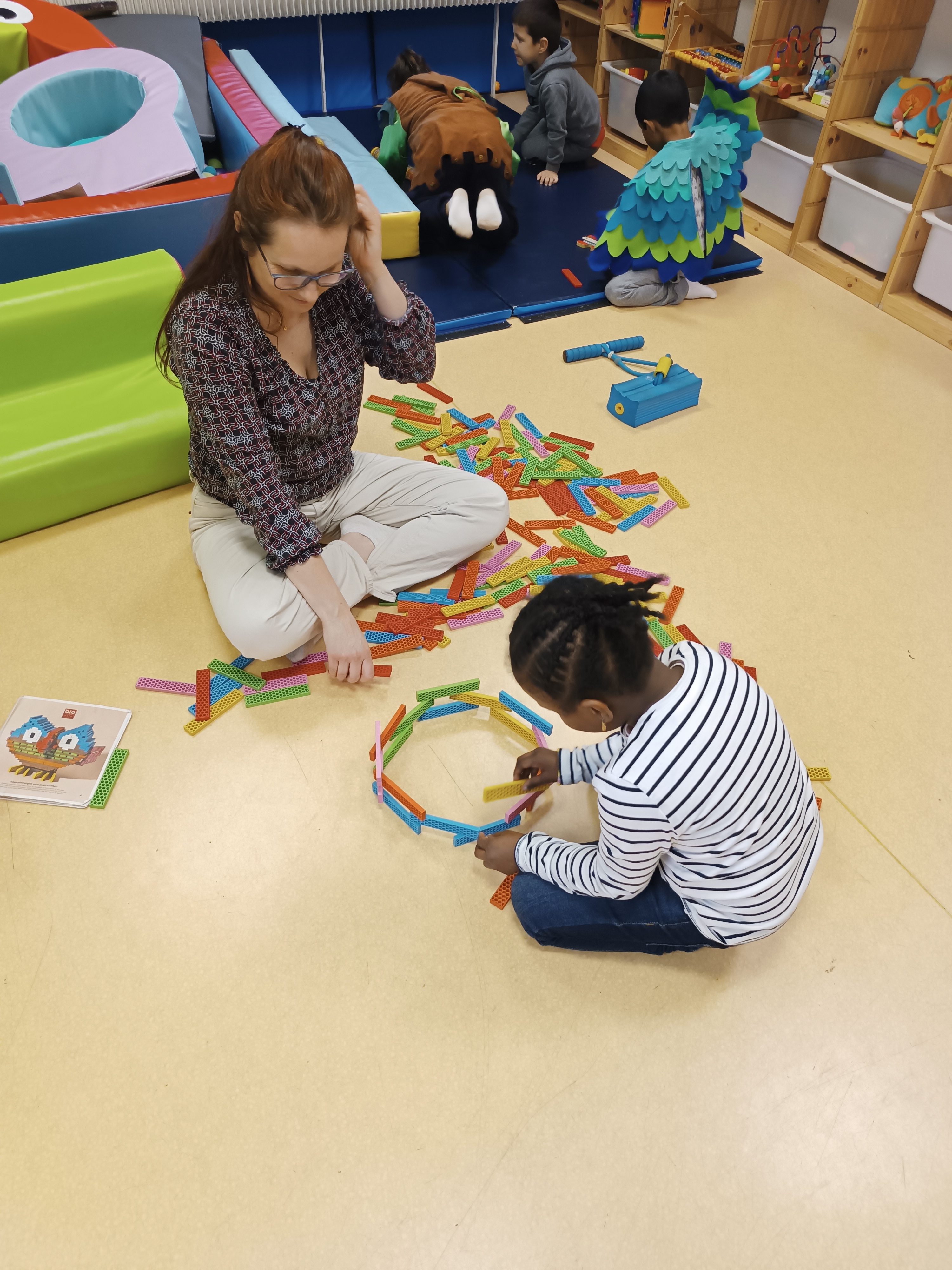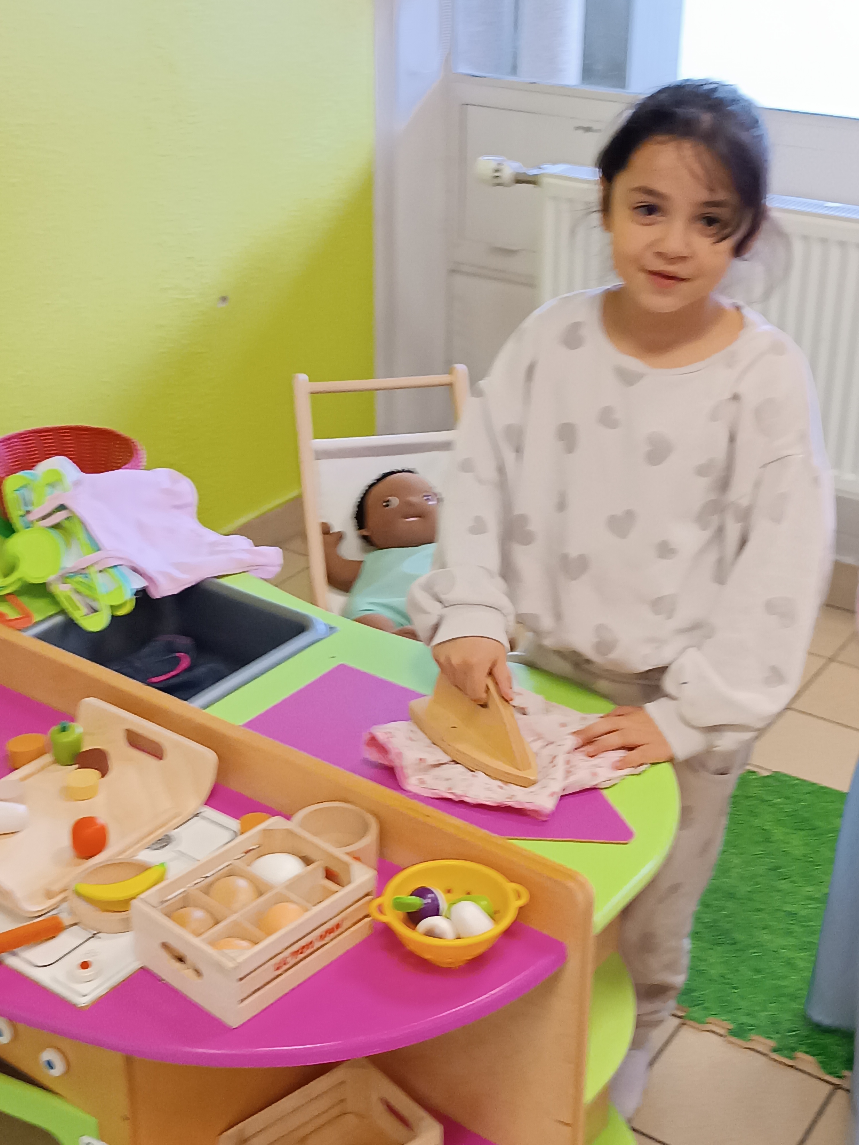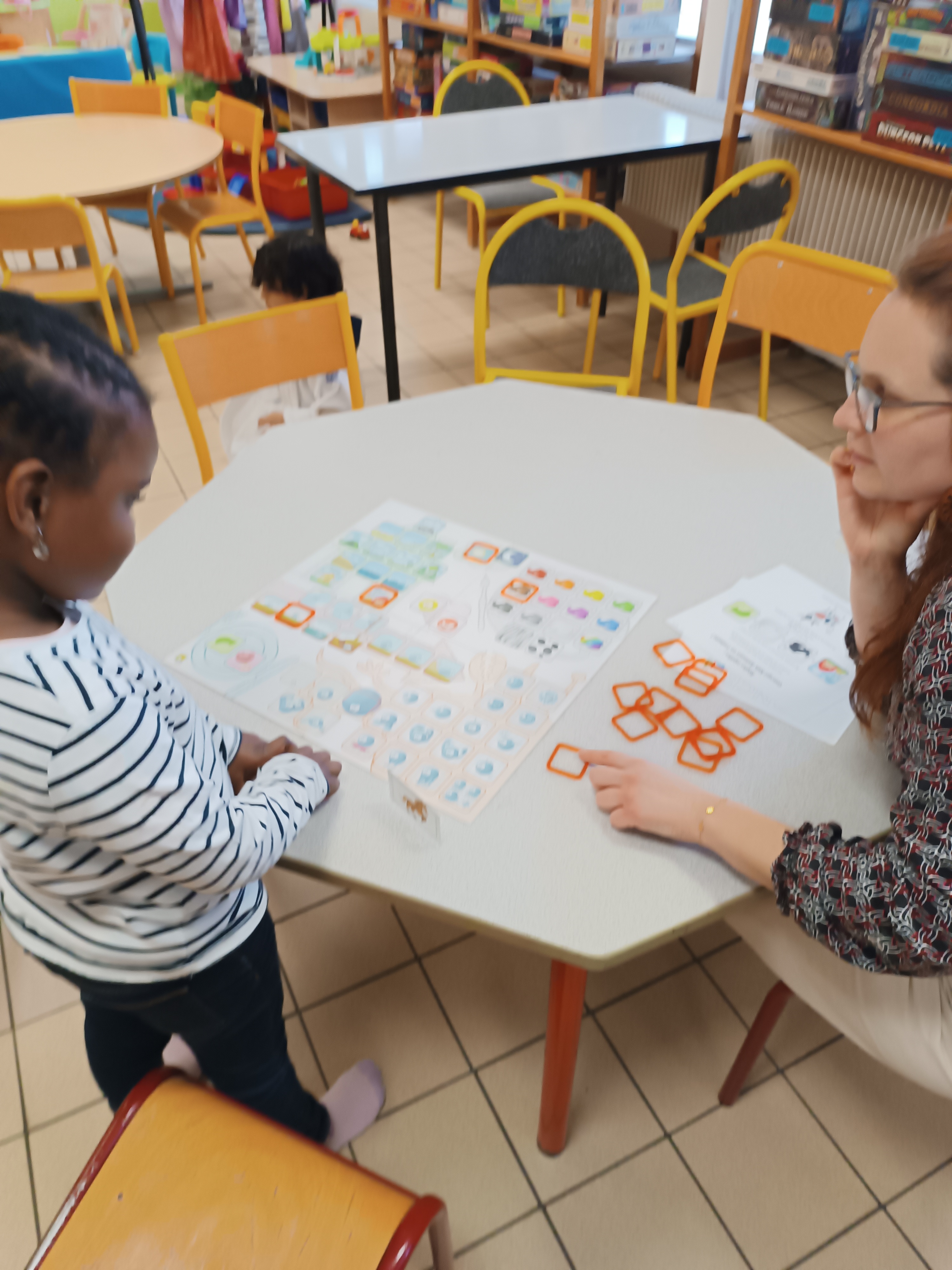 Sortie à la ludothèque. Moment très apprécié des enfants qui ont pu se déguiser, jouer aux voitures, à la dinette, mais aussi, découvrir 2 jeux de société.