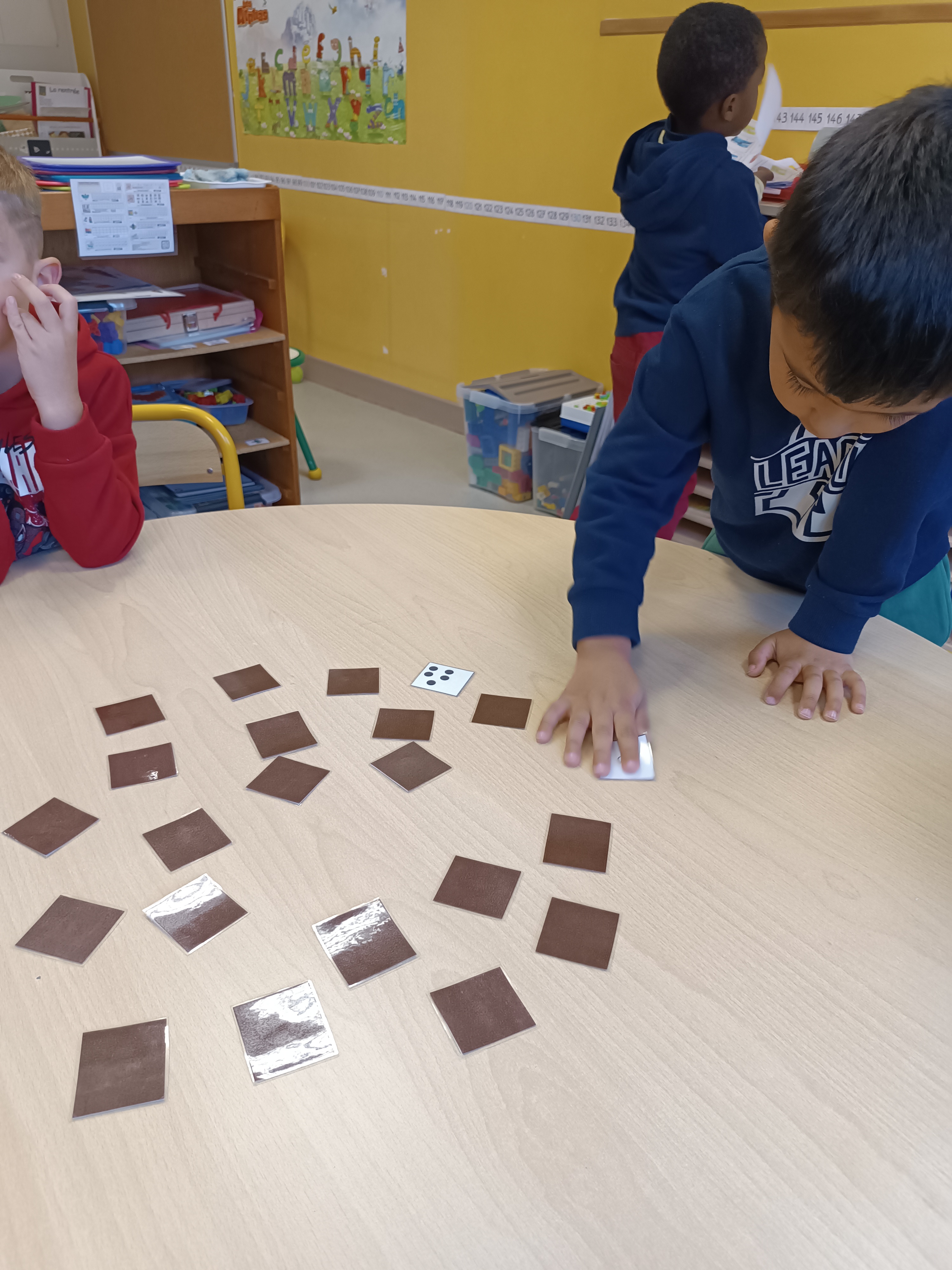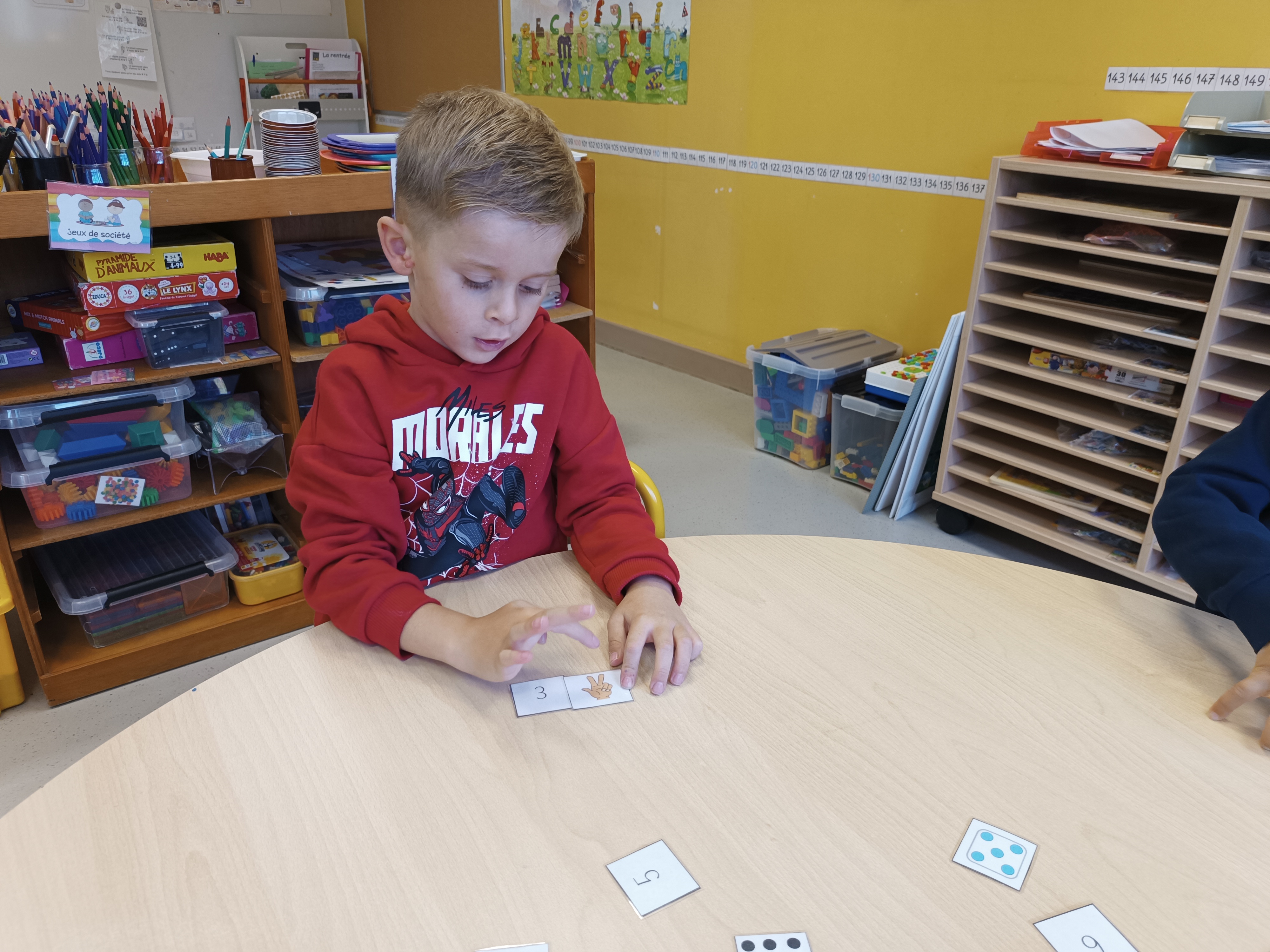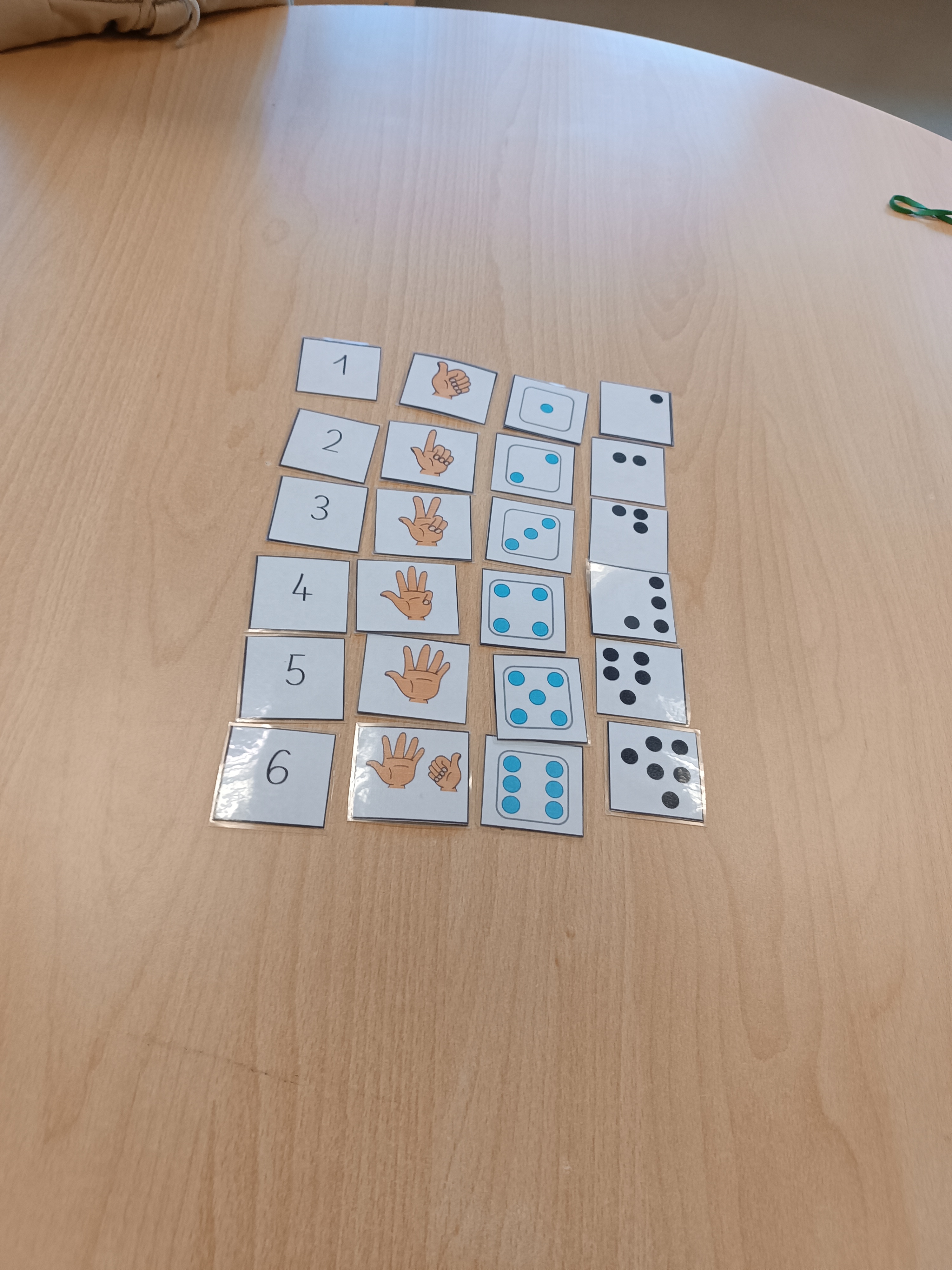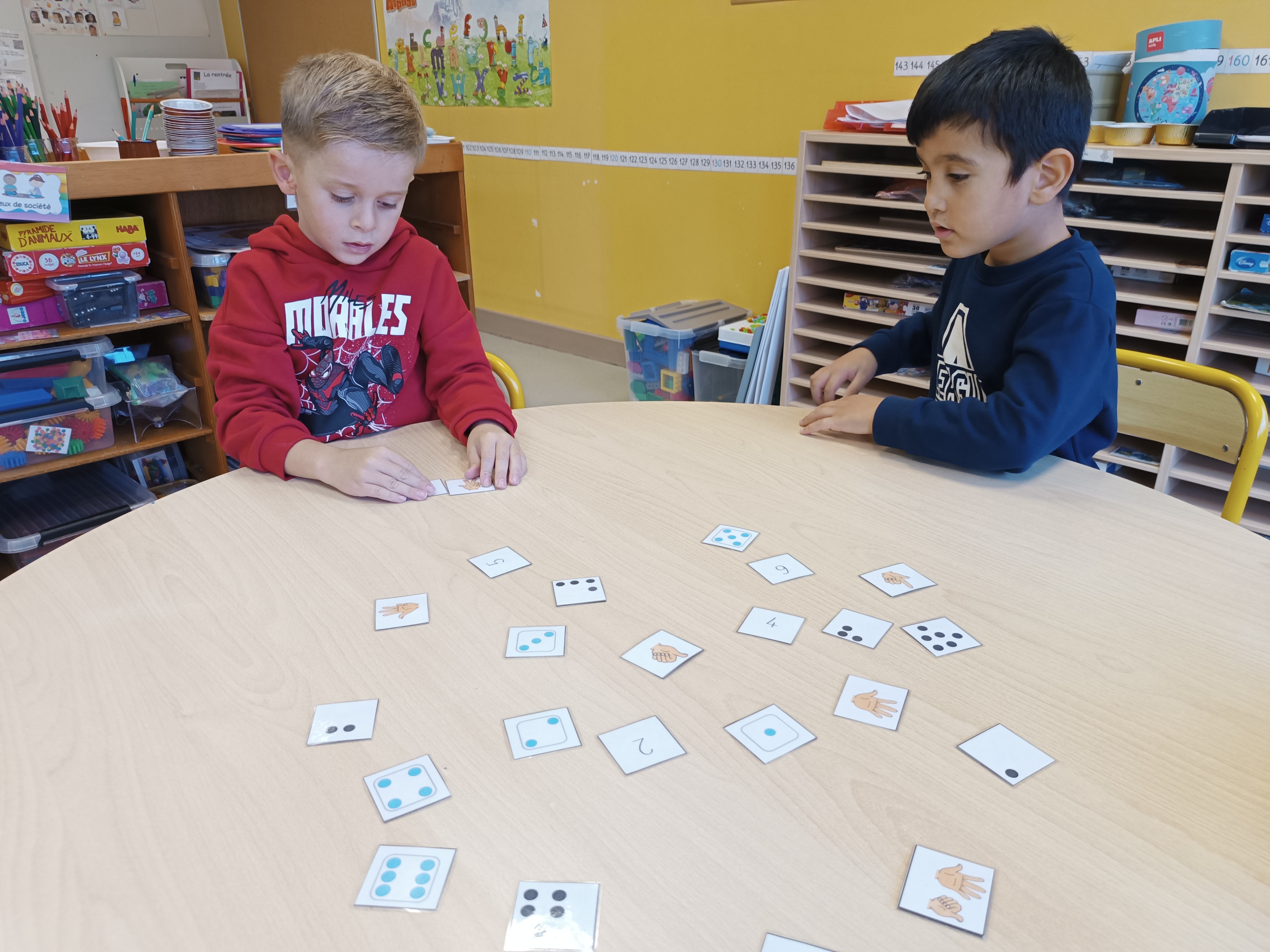 Numération : associer différentes représentations d'un même nombre jusqu'à 6 (nombre écrit en chiffres, constellations du dé, doigts et disposition aléatoire de points)