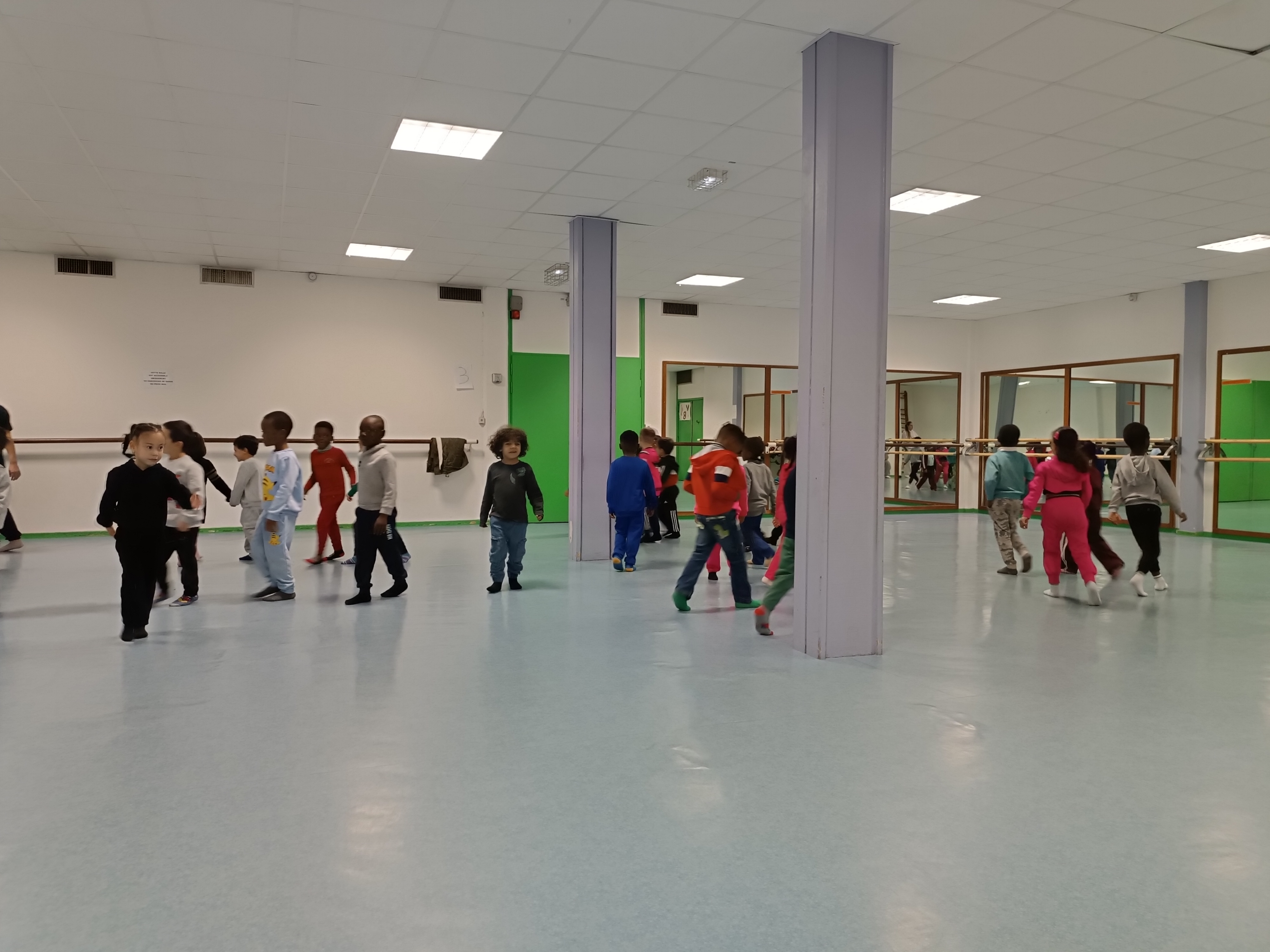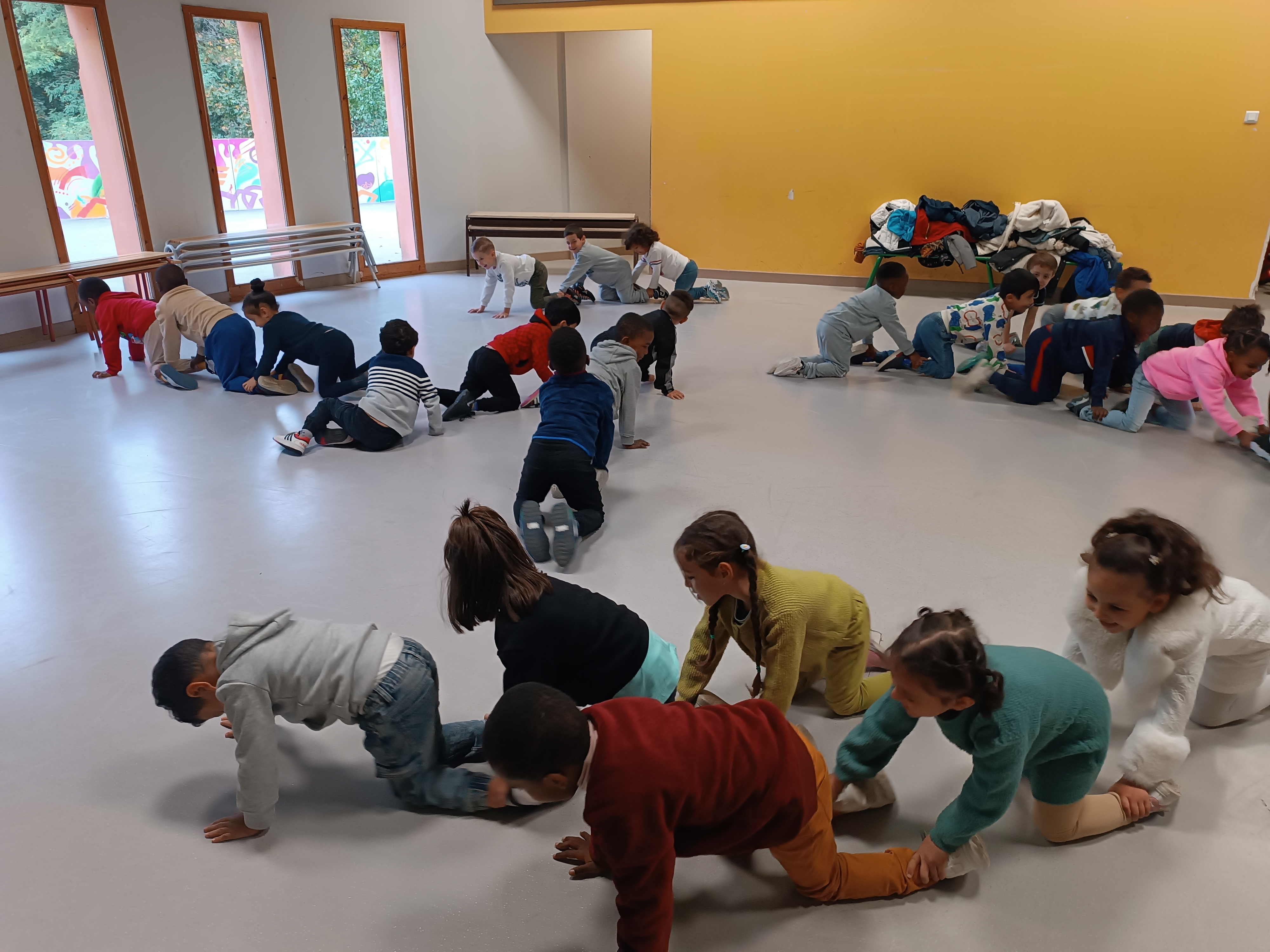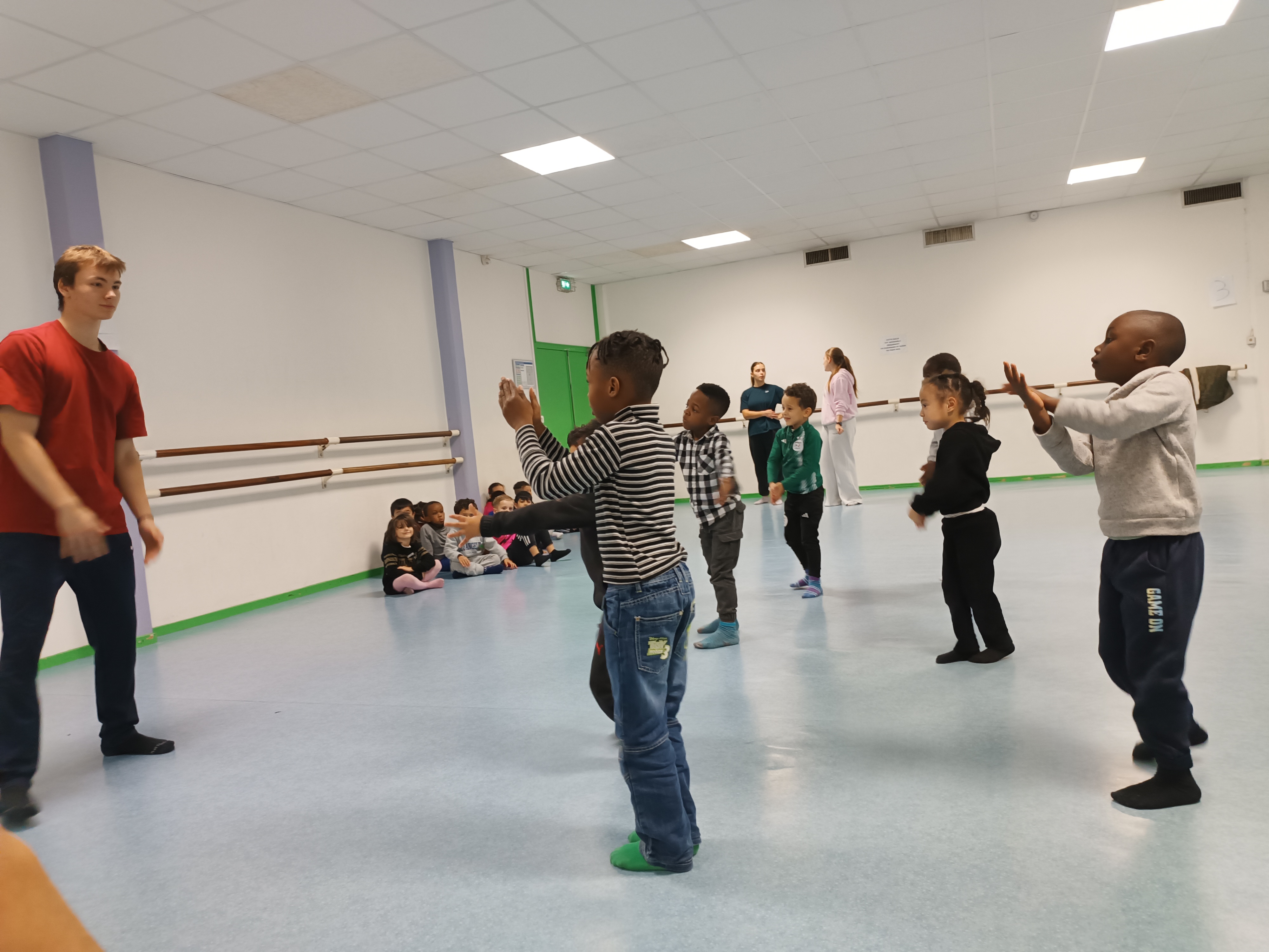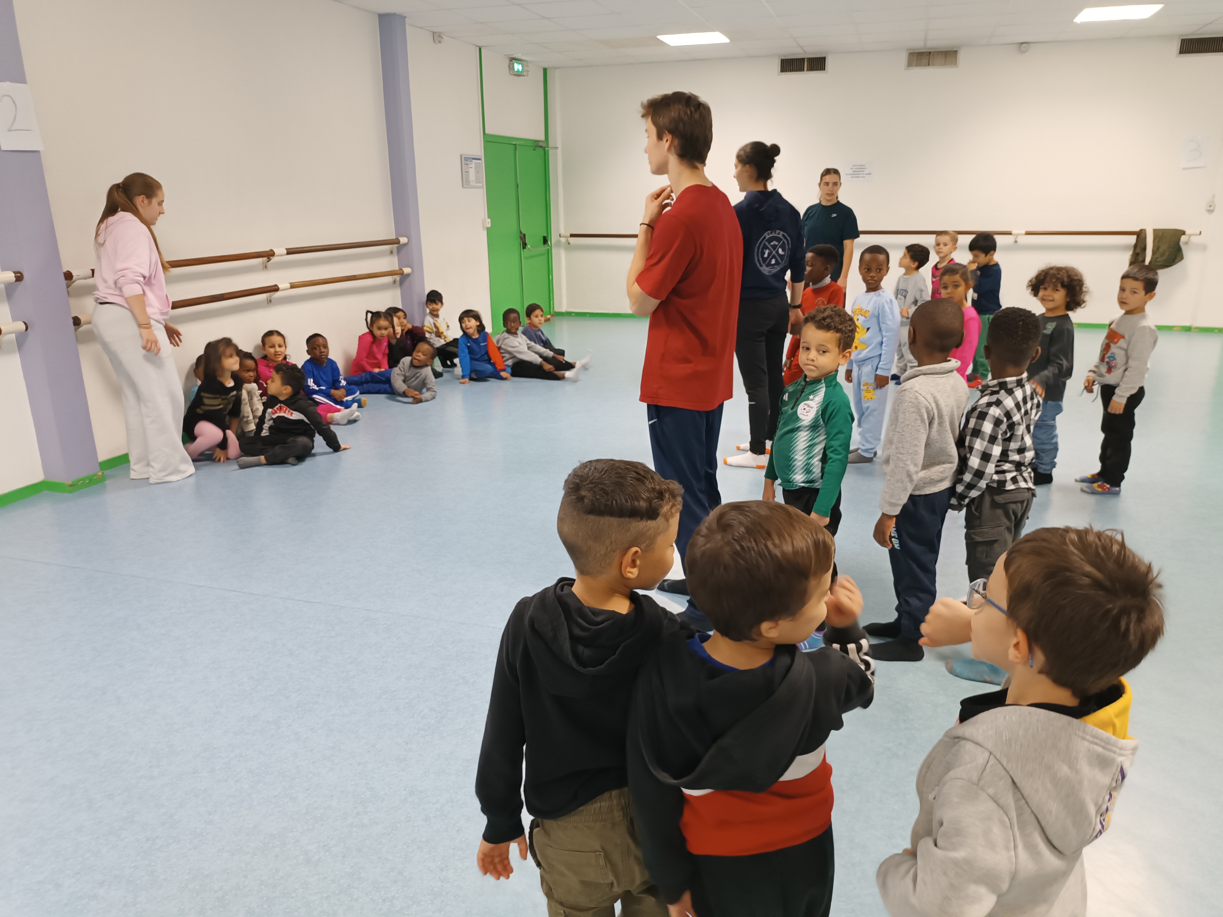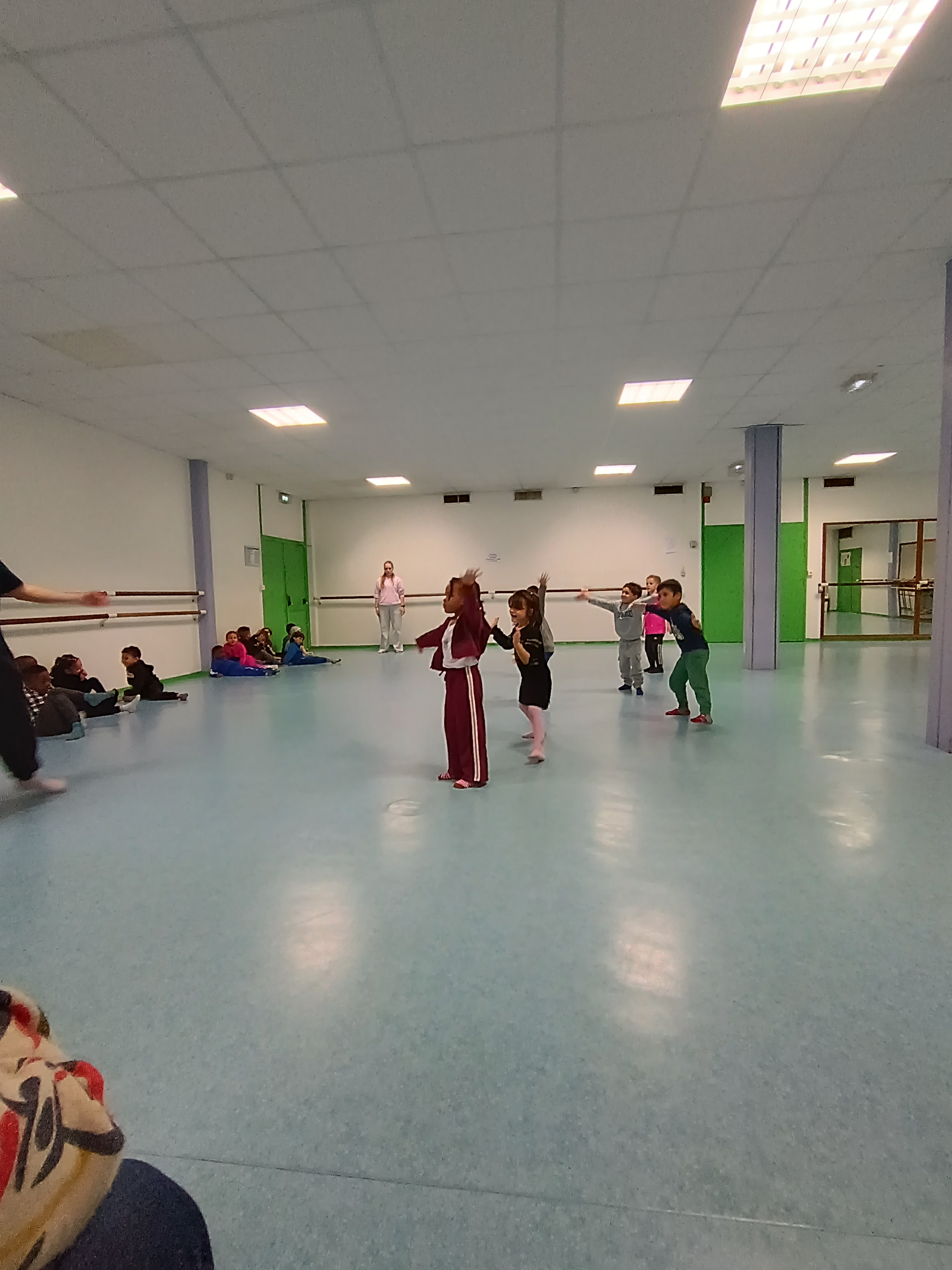 Les élèves, répartis en 4 groupes, ont pu apprendre une rapide chorégraphie qu'ils ont ensuite présentée aux autres groupes puis fait tous ensemble.