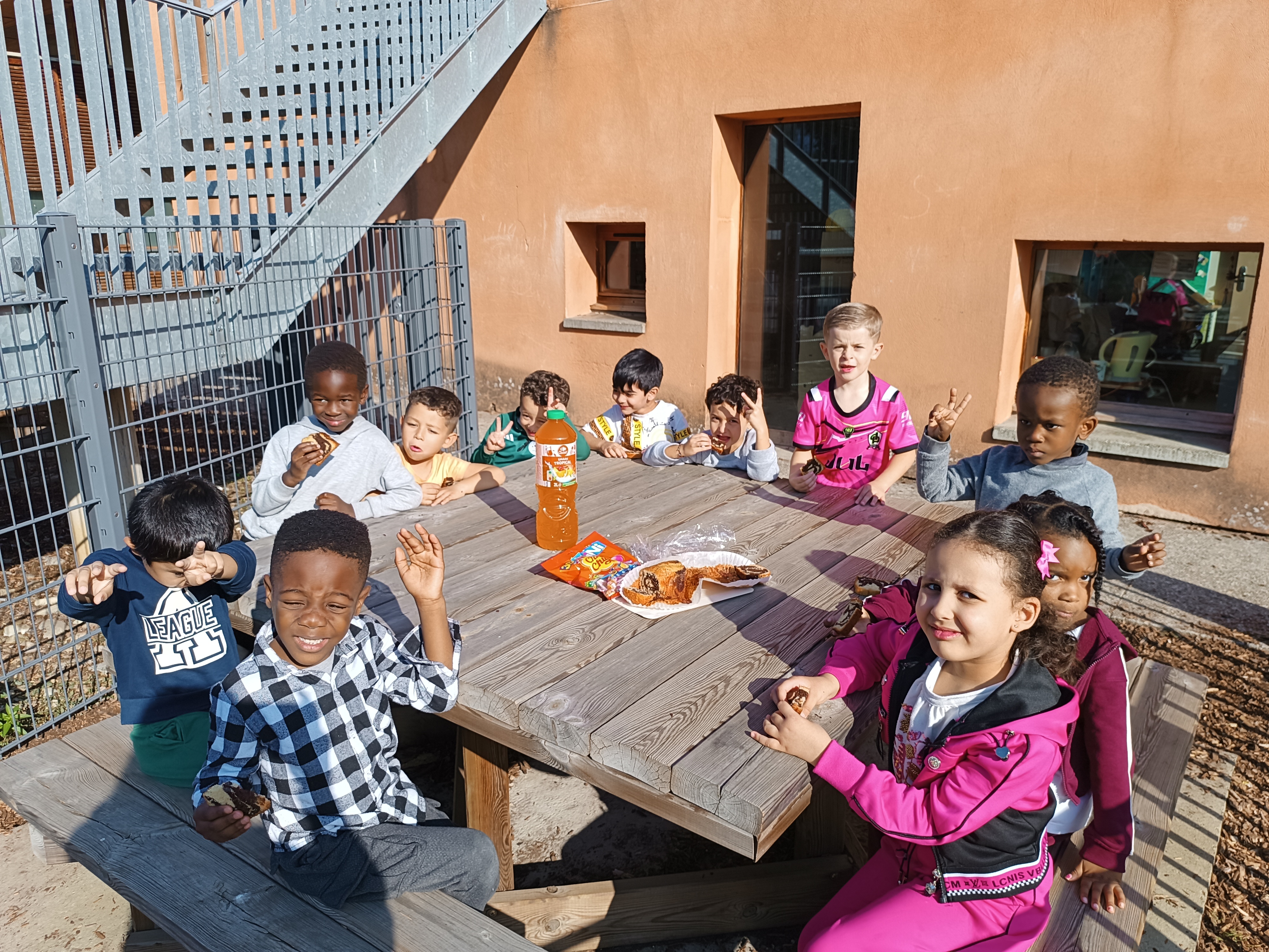 A notre retour de la rando contée, les enfants ont eu droit au goûter offert par l'association de parents d'élèves. Il a été grandement apprécié après 1h30 de promenade.