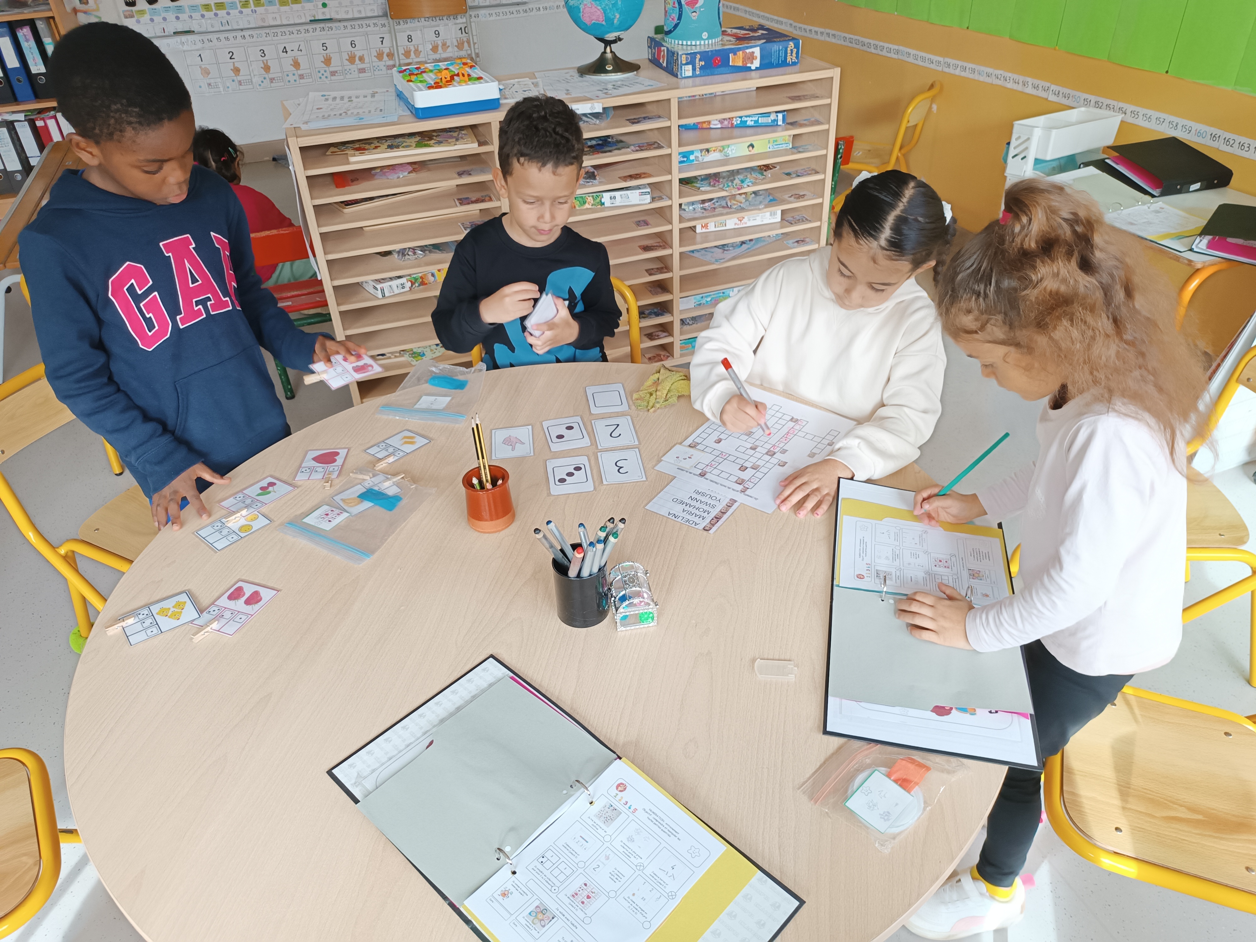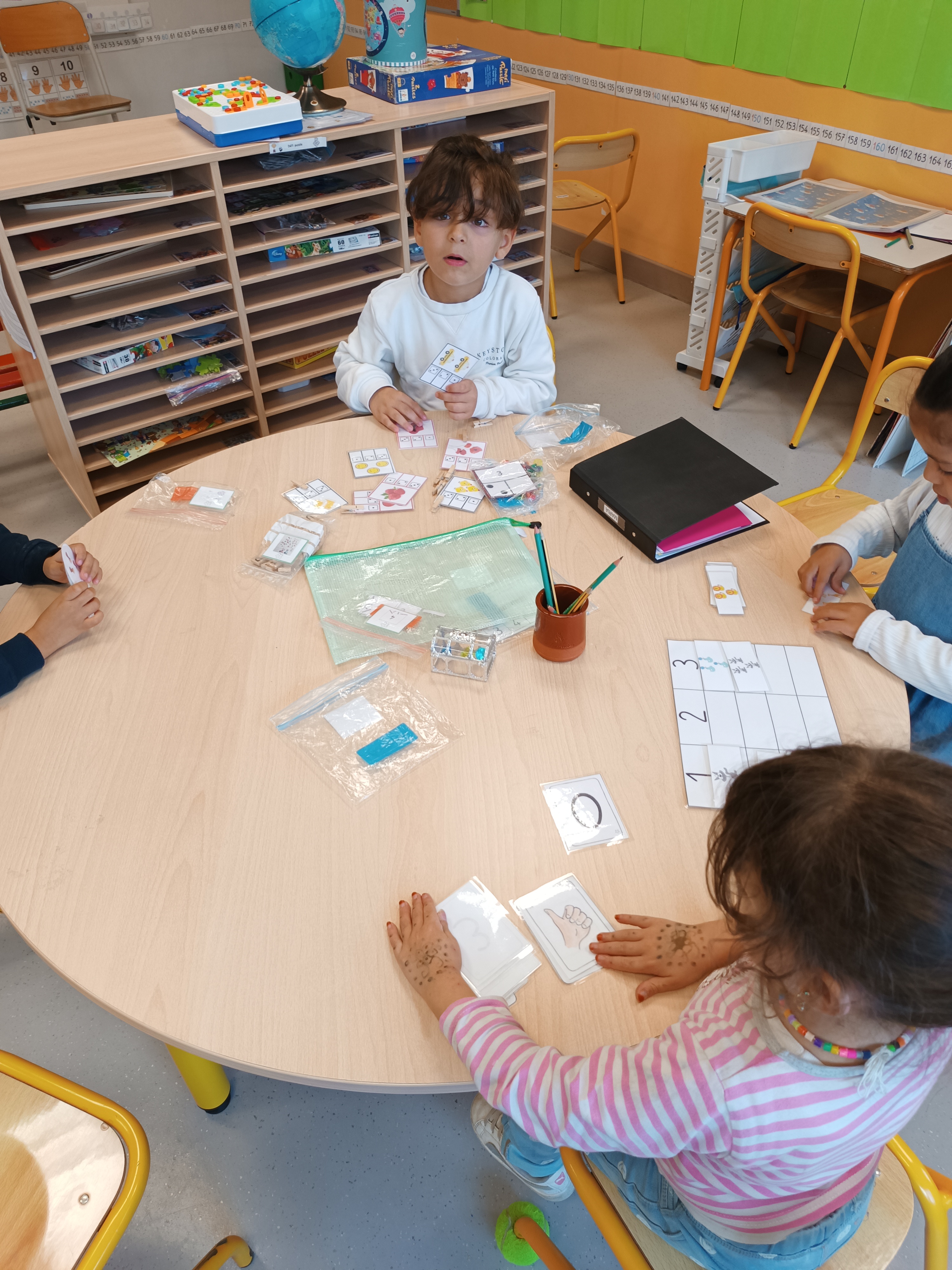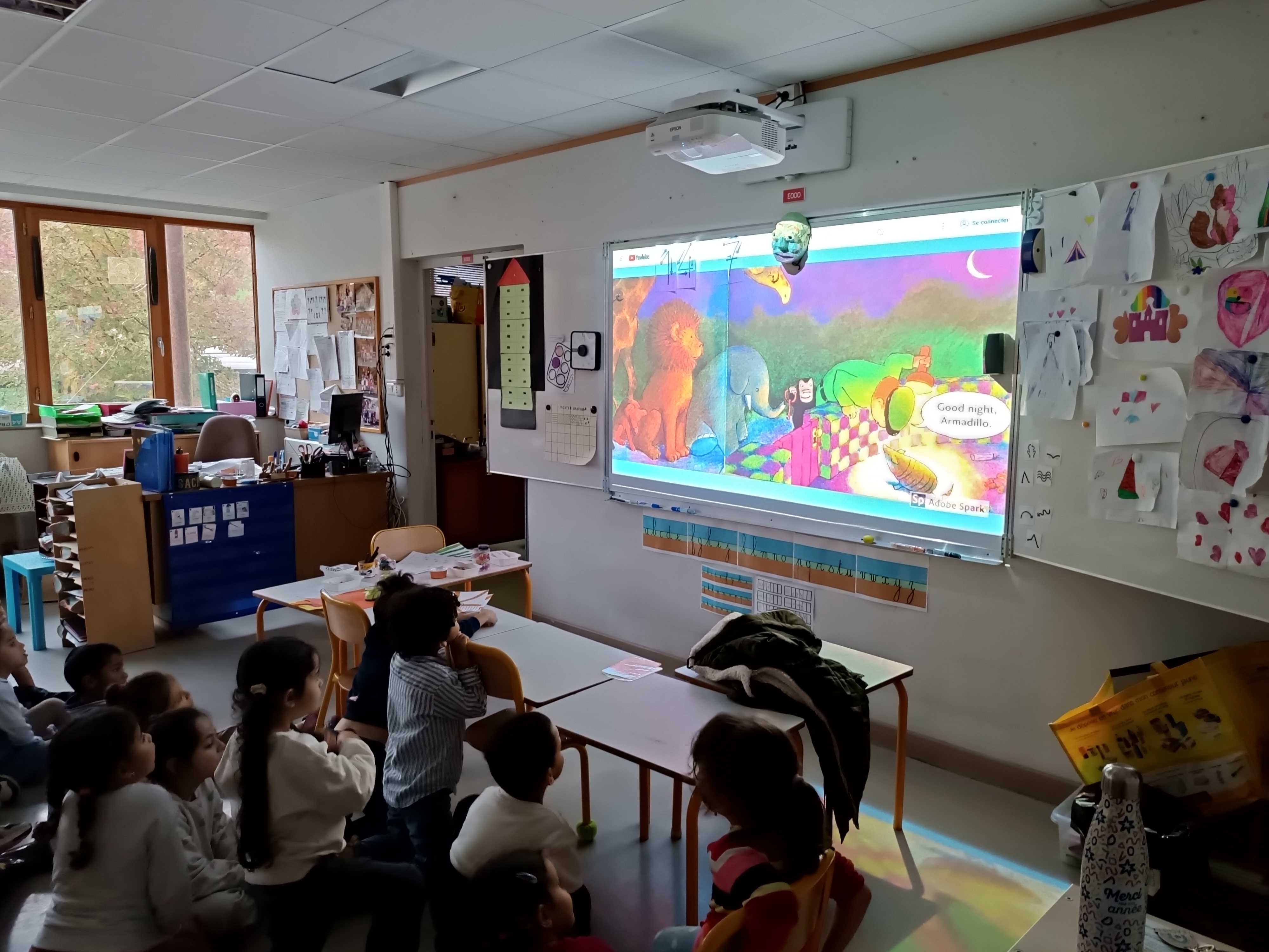 Nous nous retrouvons tous les lundis matins avec les GS de maîtresse Isabelle pour une séance d'anglais.