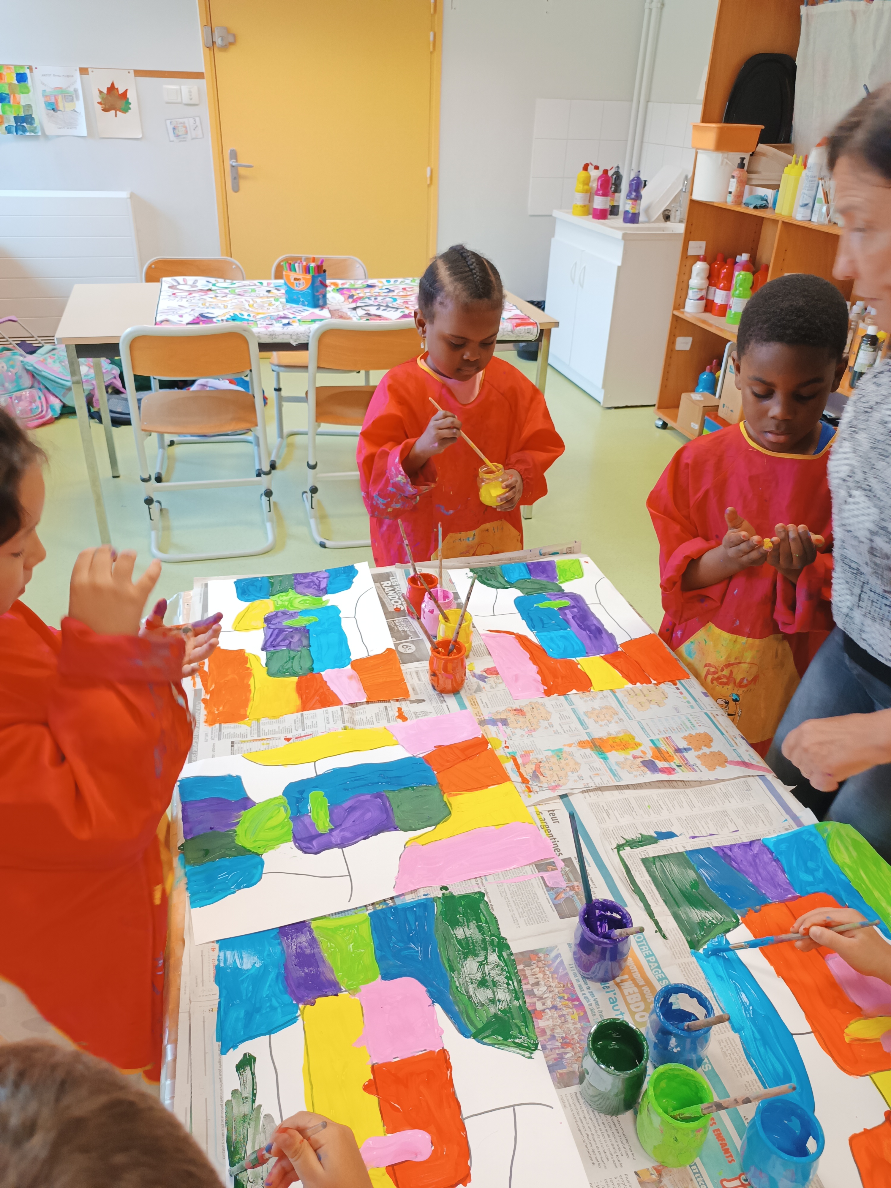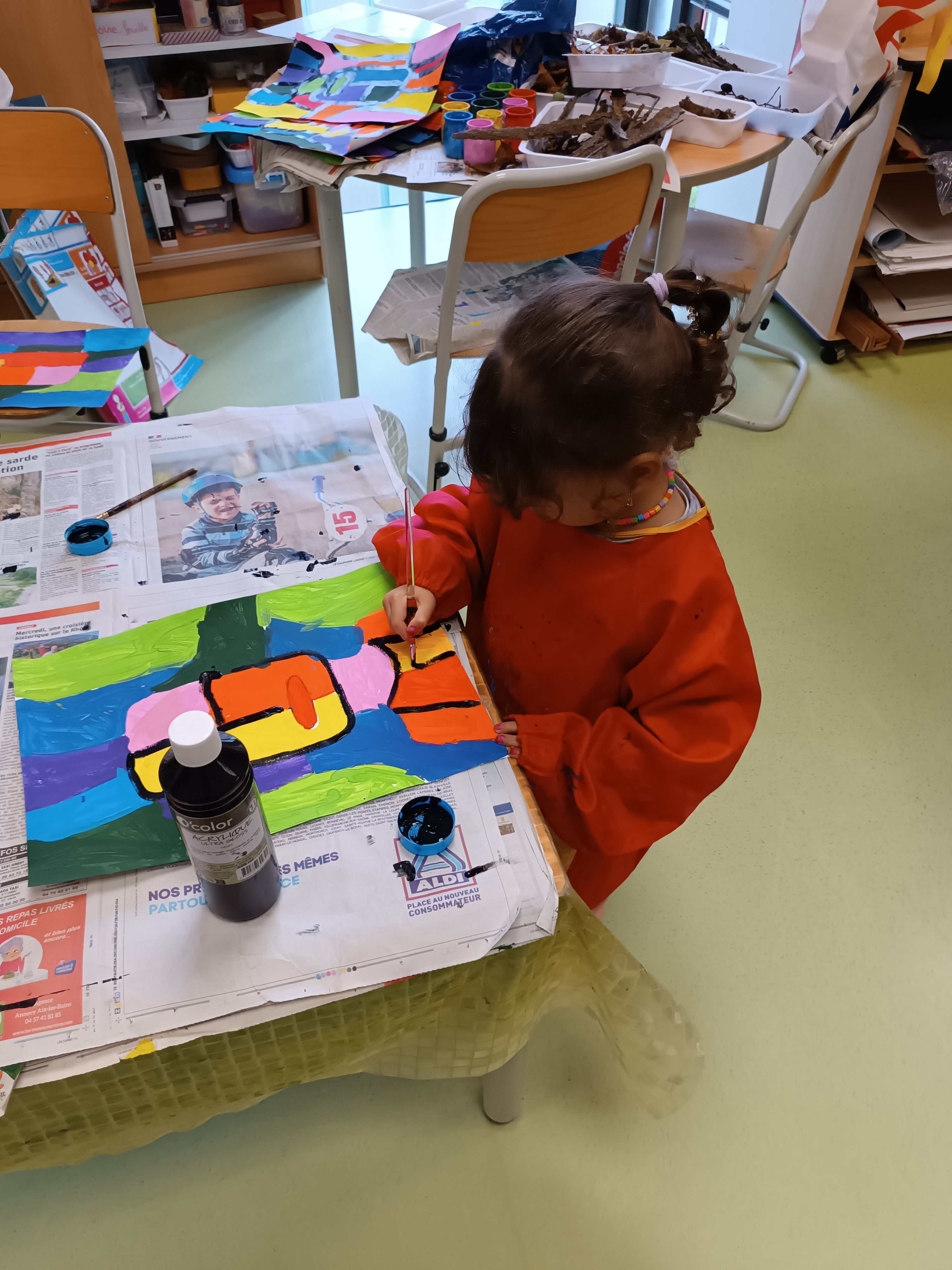 - repasser à la peinture noire les contours pour délimiter les zones