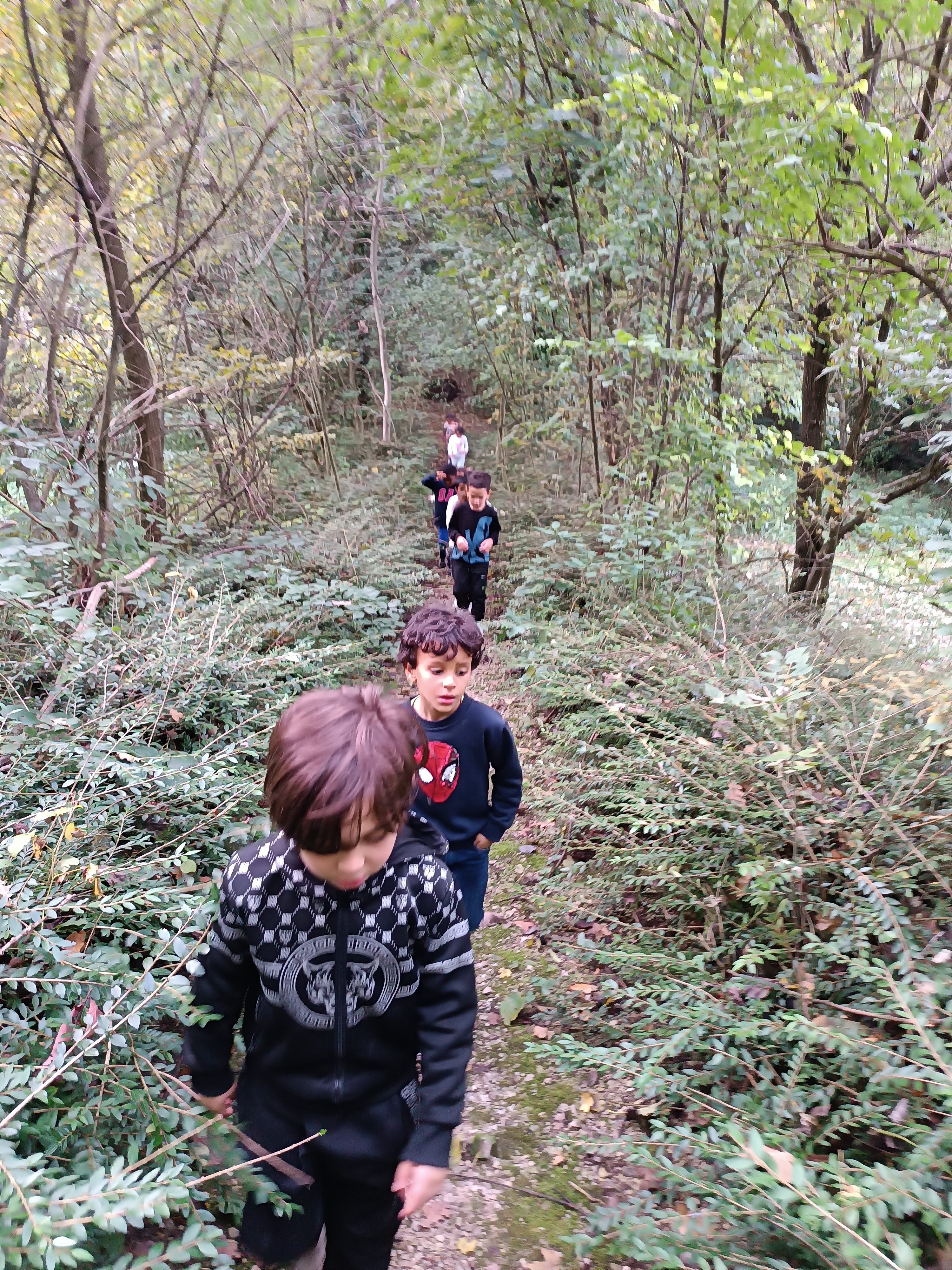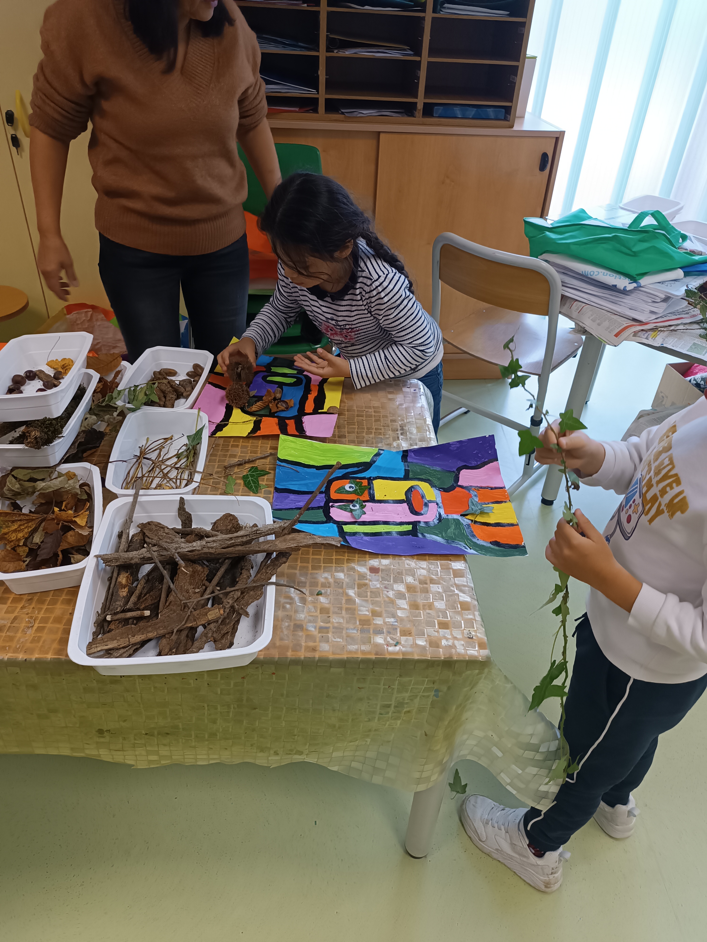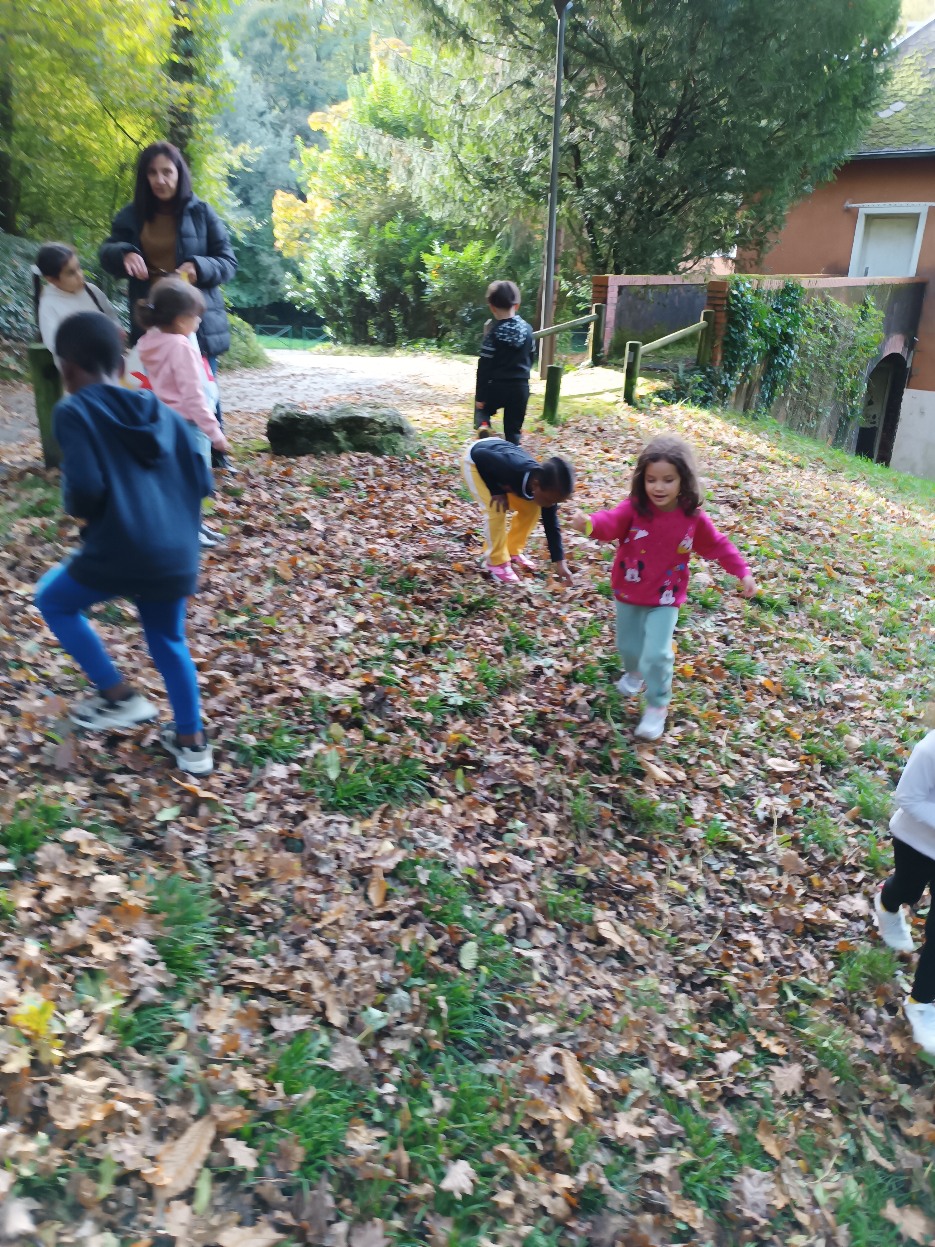 Nous avons profité du beau temps de mardi après-midi pour aller nous promener au talweg afin de découvrir les trésors de l'automne : feuilles de différentes couleurs, glands, bogues et châtaignes, mousse, lierre, écorce et même quelques petits habitants de la forêt qui ont étonnés les enfants.