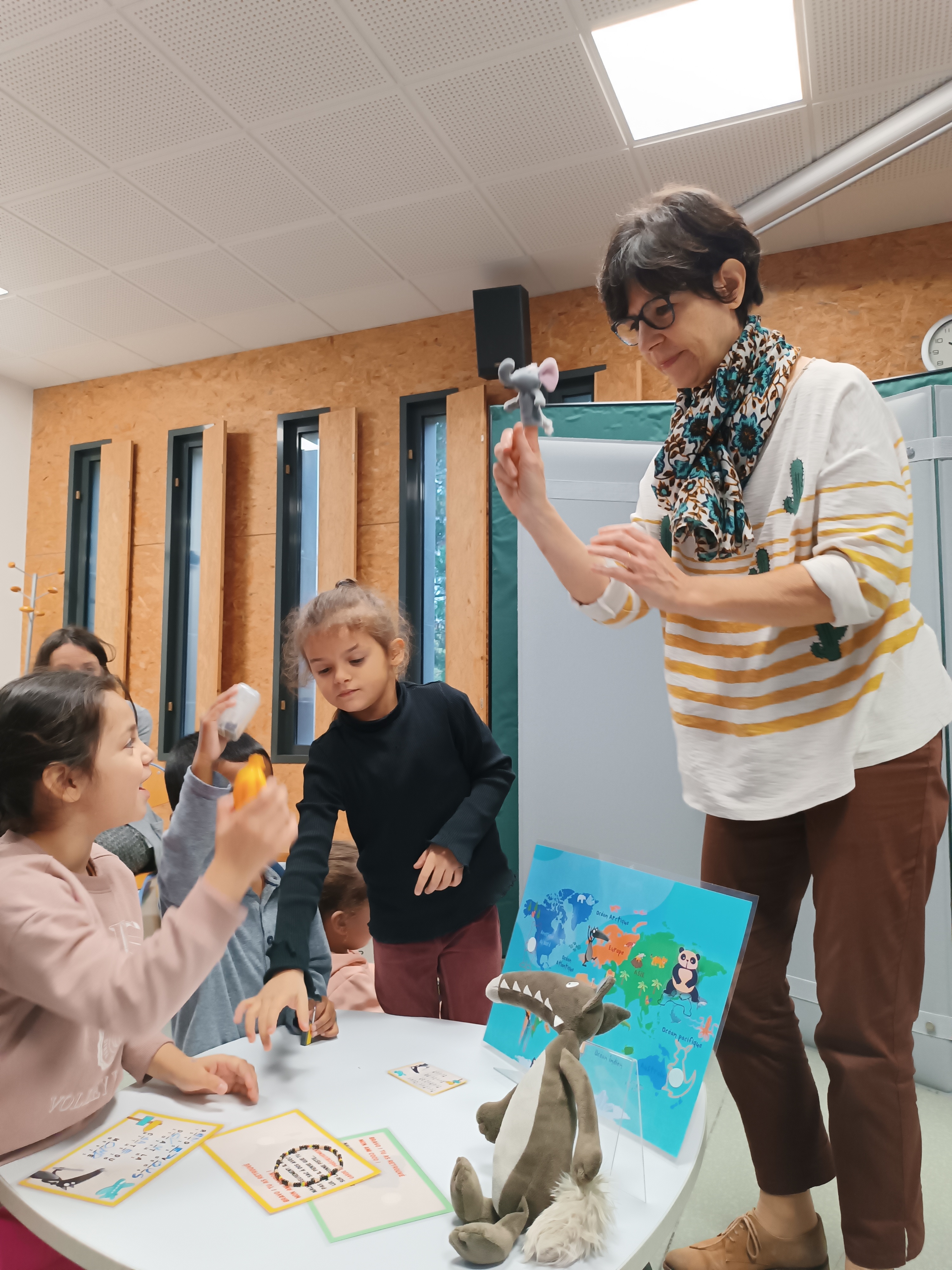 Chasse au trésor à la bibliothèque. Petit Loup a perdu ses malles et son sac à dos à son retour de voyage. Nous l'avons aidé à les retrouvés au travers d'énigmes à résoudre en équipe.