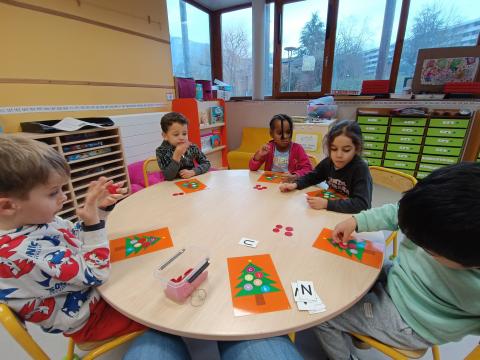 Le jeu des sapins : à la manière d'un jeu de loto, chaque élève dispose d'une planche sur laquelle se trouvent des lettres en scriptes. L'adulte tire une lettre en majuscule et la montre en la nommant. Celui qui a cette lettre en scripte sur sa planche pose un jeton dessus. Le premier a avoir posé tous ses jetons gagne la partie.