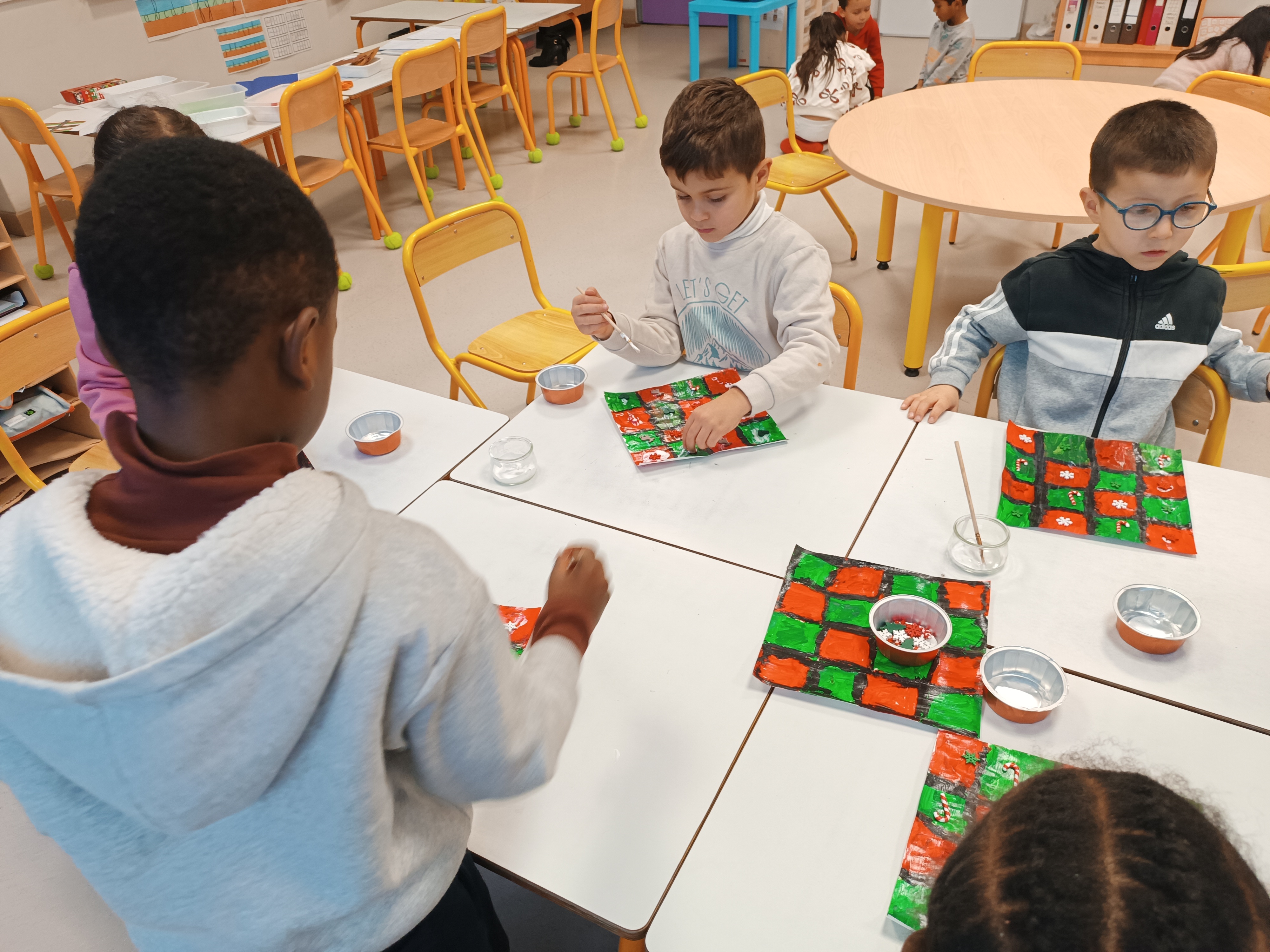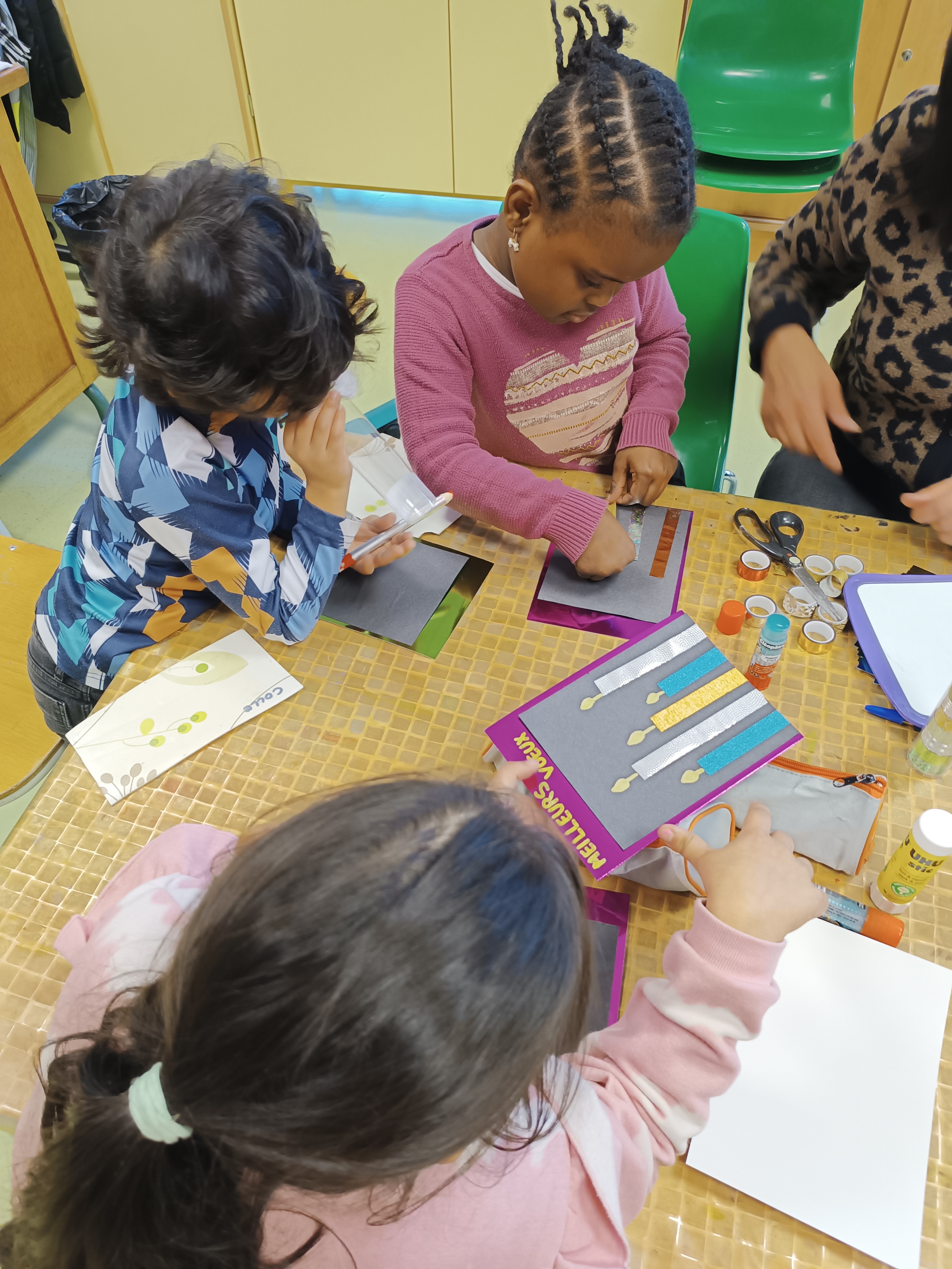 Qui dit fin d'année dit carte de vœux. Les enfants ont donc fabriqué la leur 🙂.