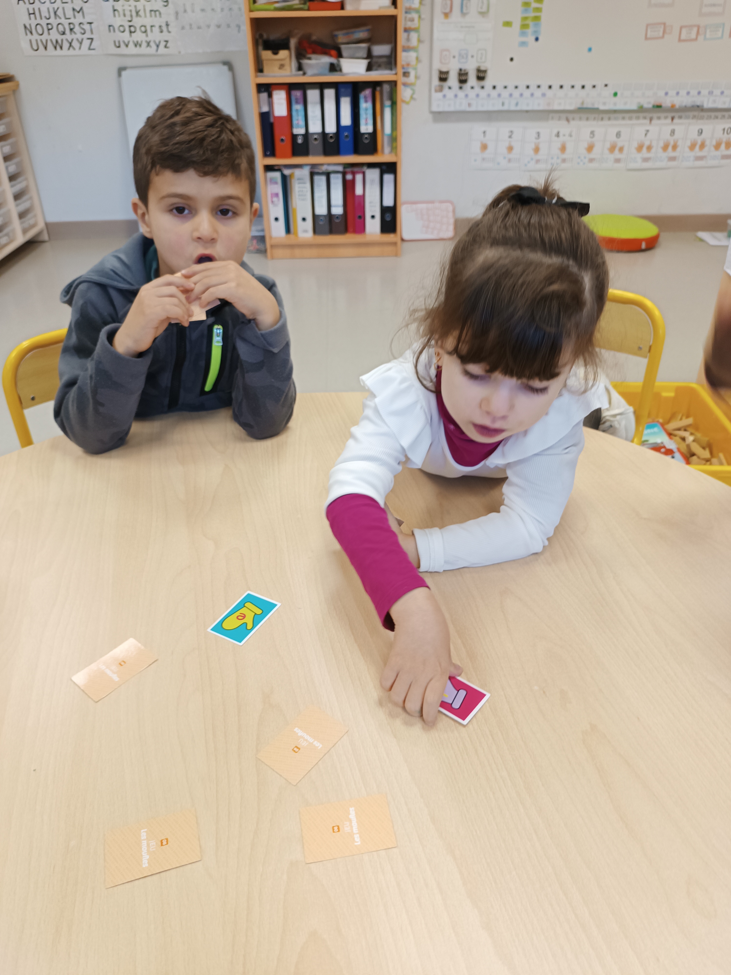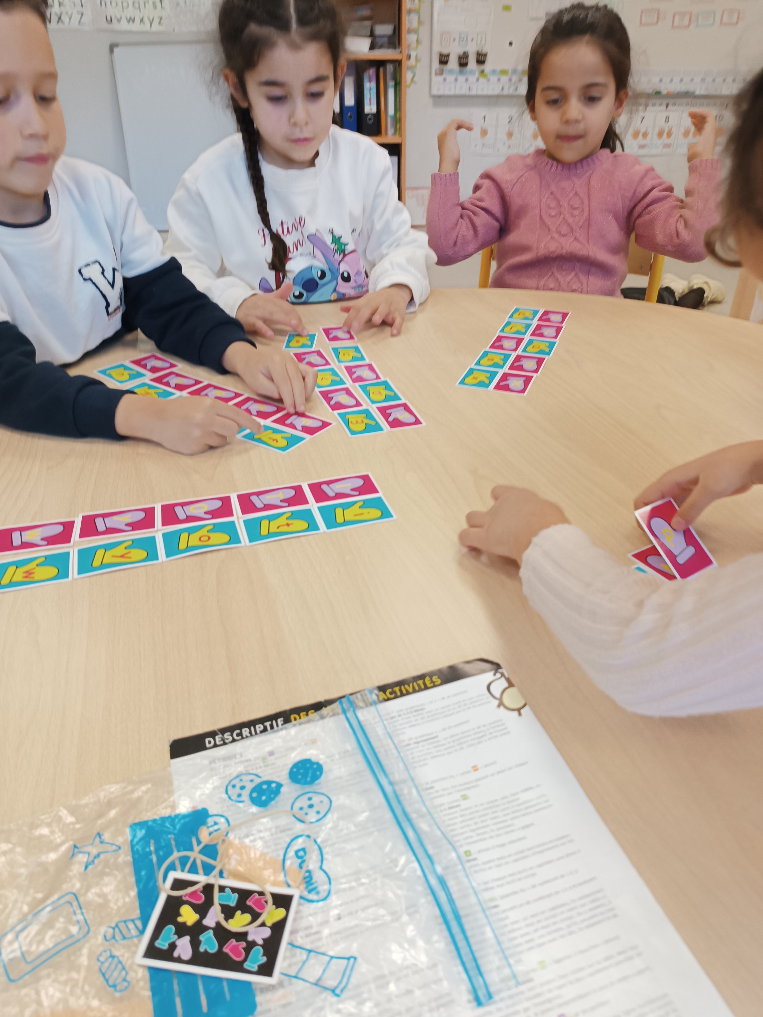 Associer les lettres en majuscules et en scriptes grâce au jeu des moufles qui peut se jouer soit à la manière d'un mistigri, soit à la manière d'un memory. Dans tous les cas, il faut associer la moufle majuscule à la moufle scripte.
