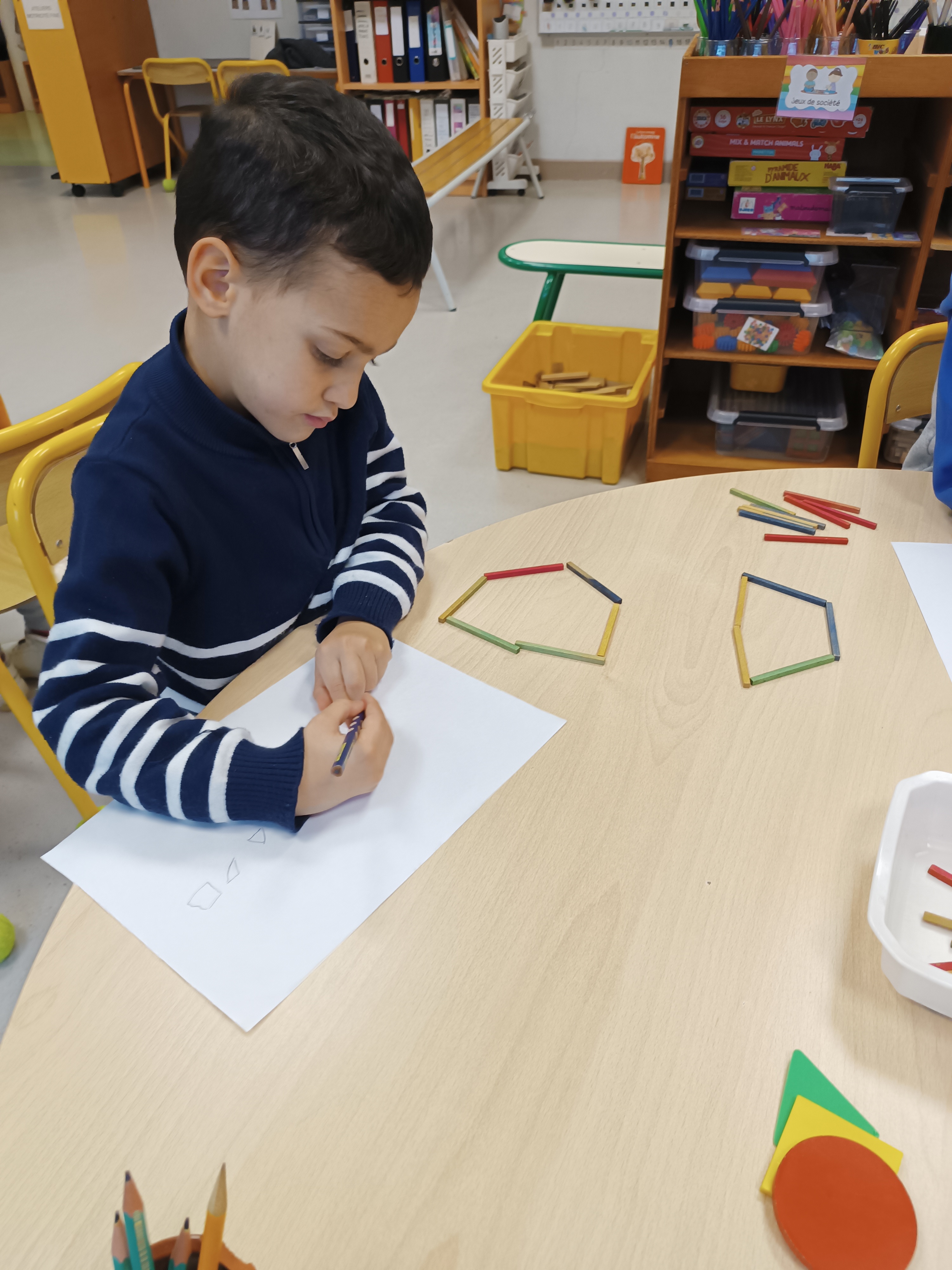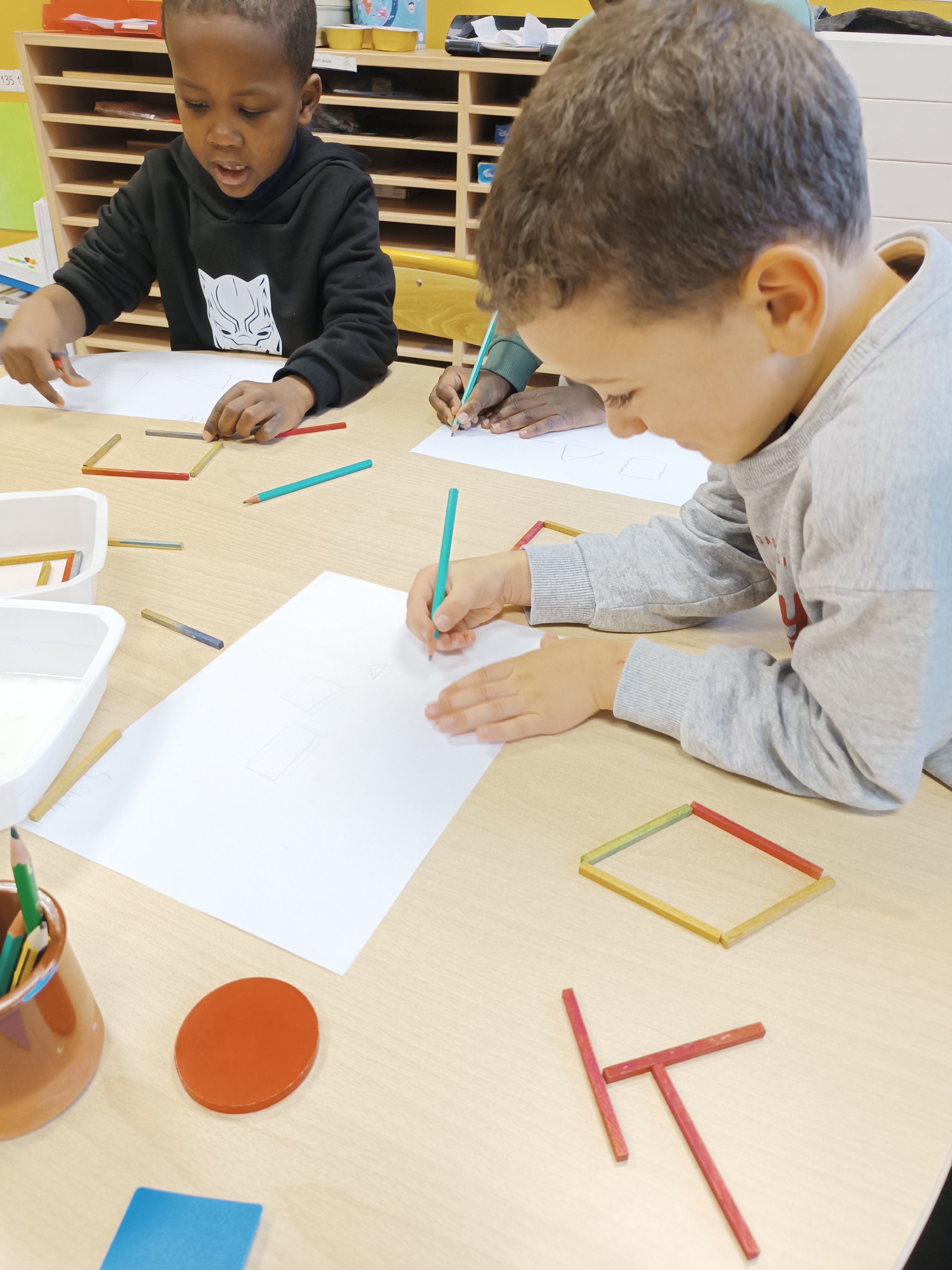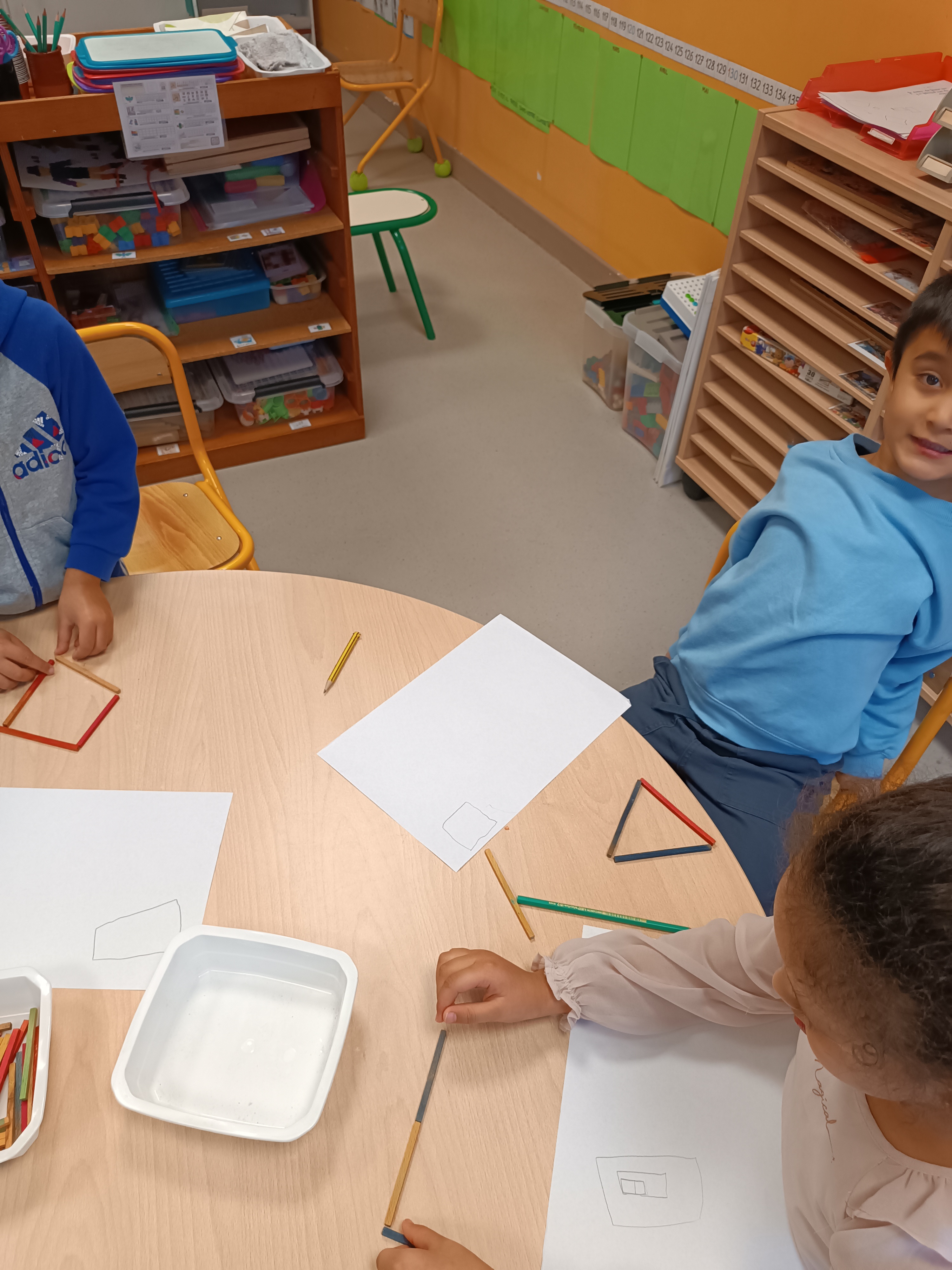 Fabriquer des formes avec des bâtons puis les dessiner.