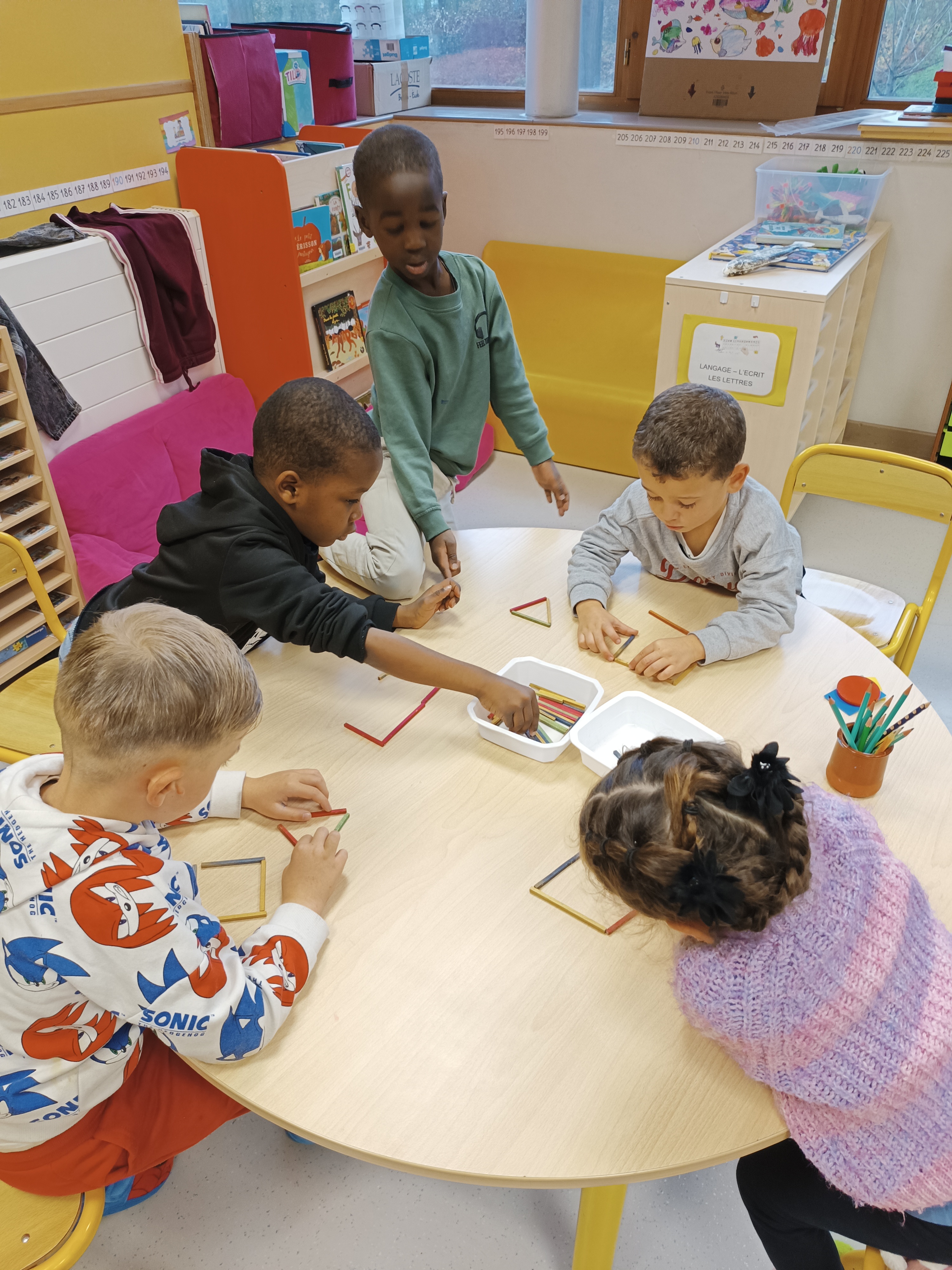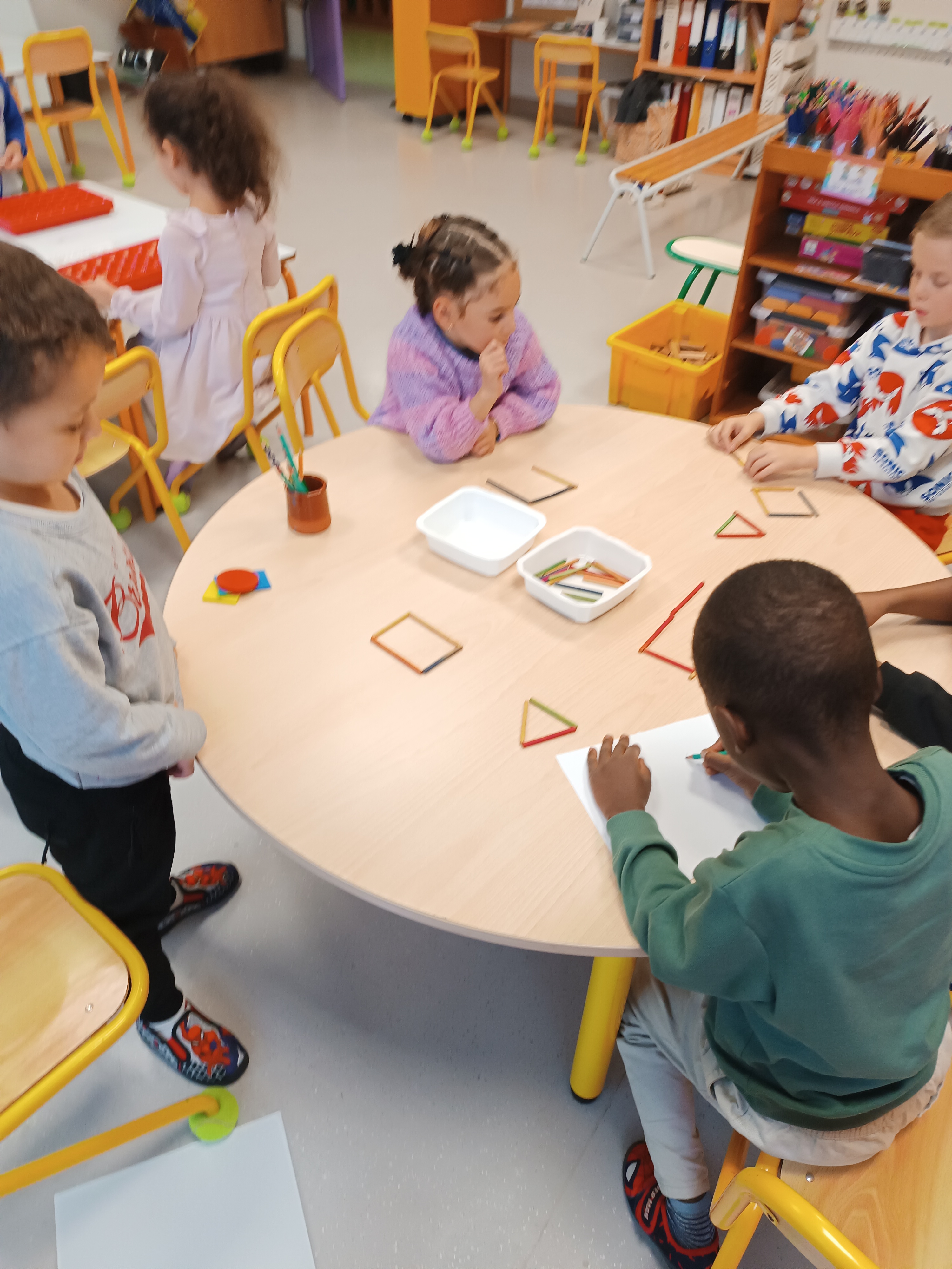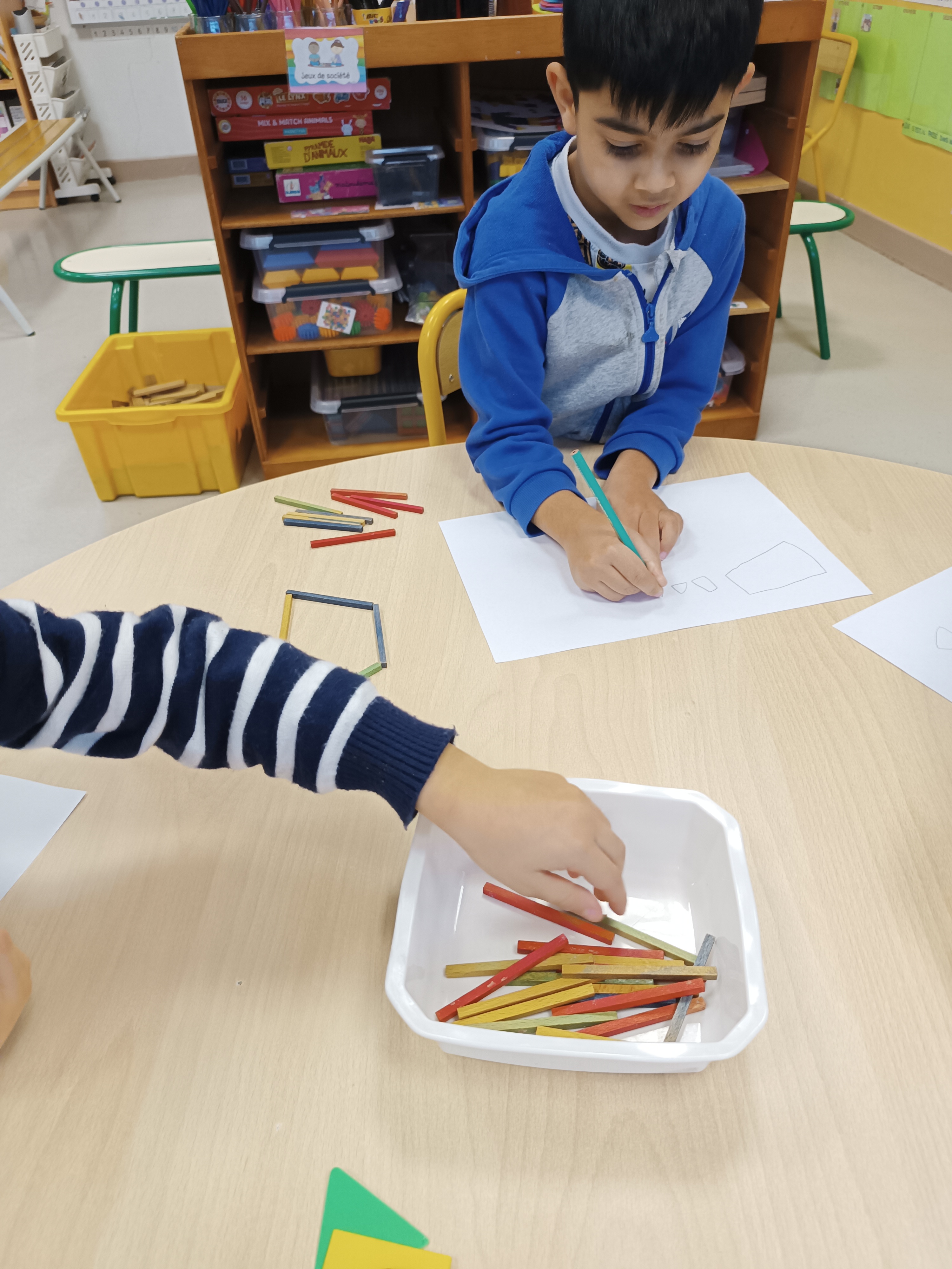 Fabriquer des formes avec des bâtons puis les dessiner.