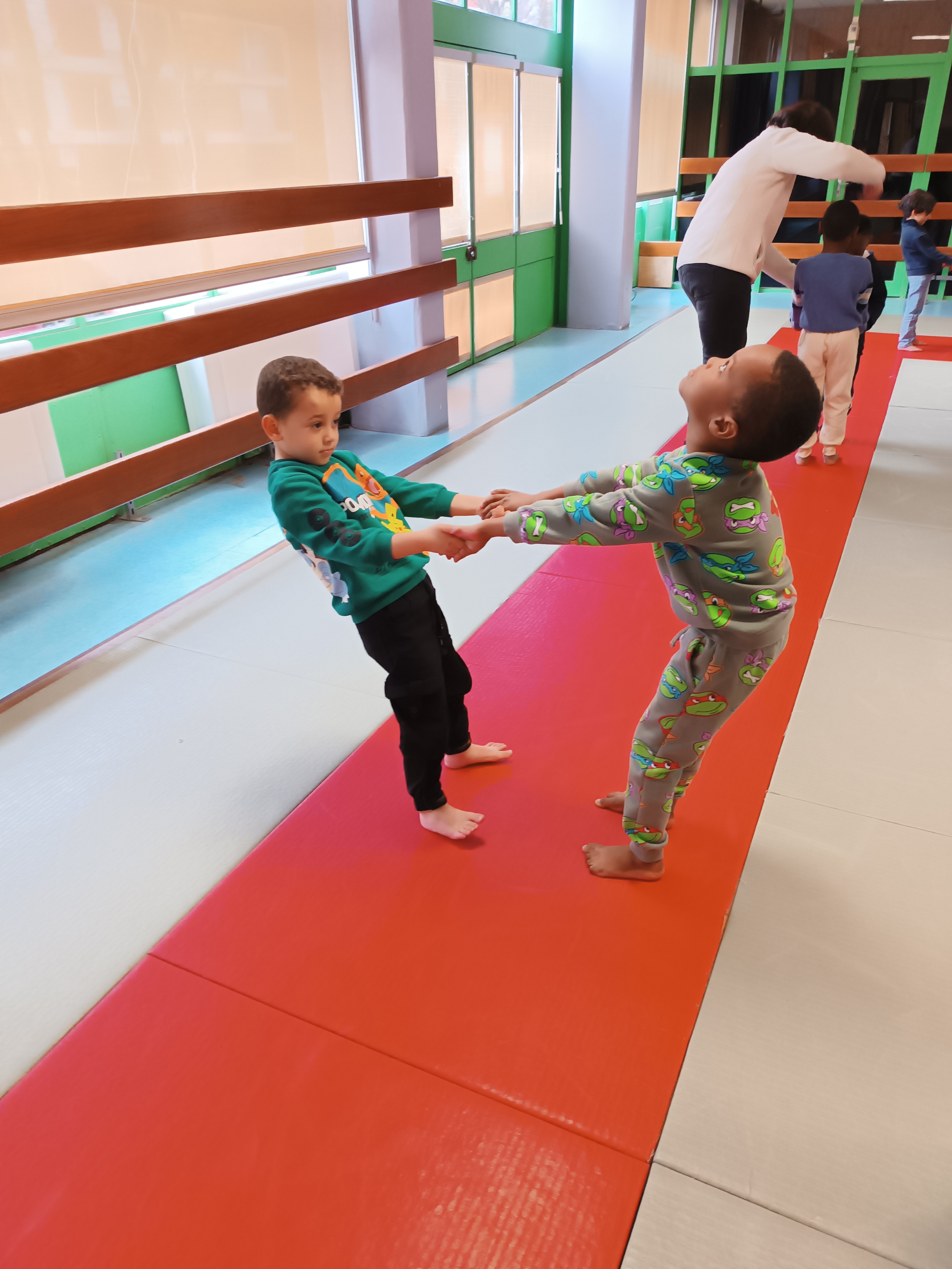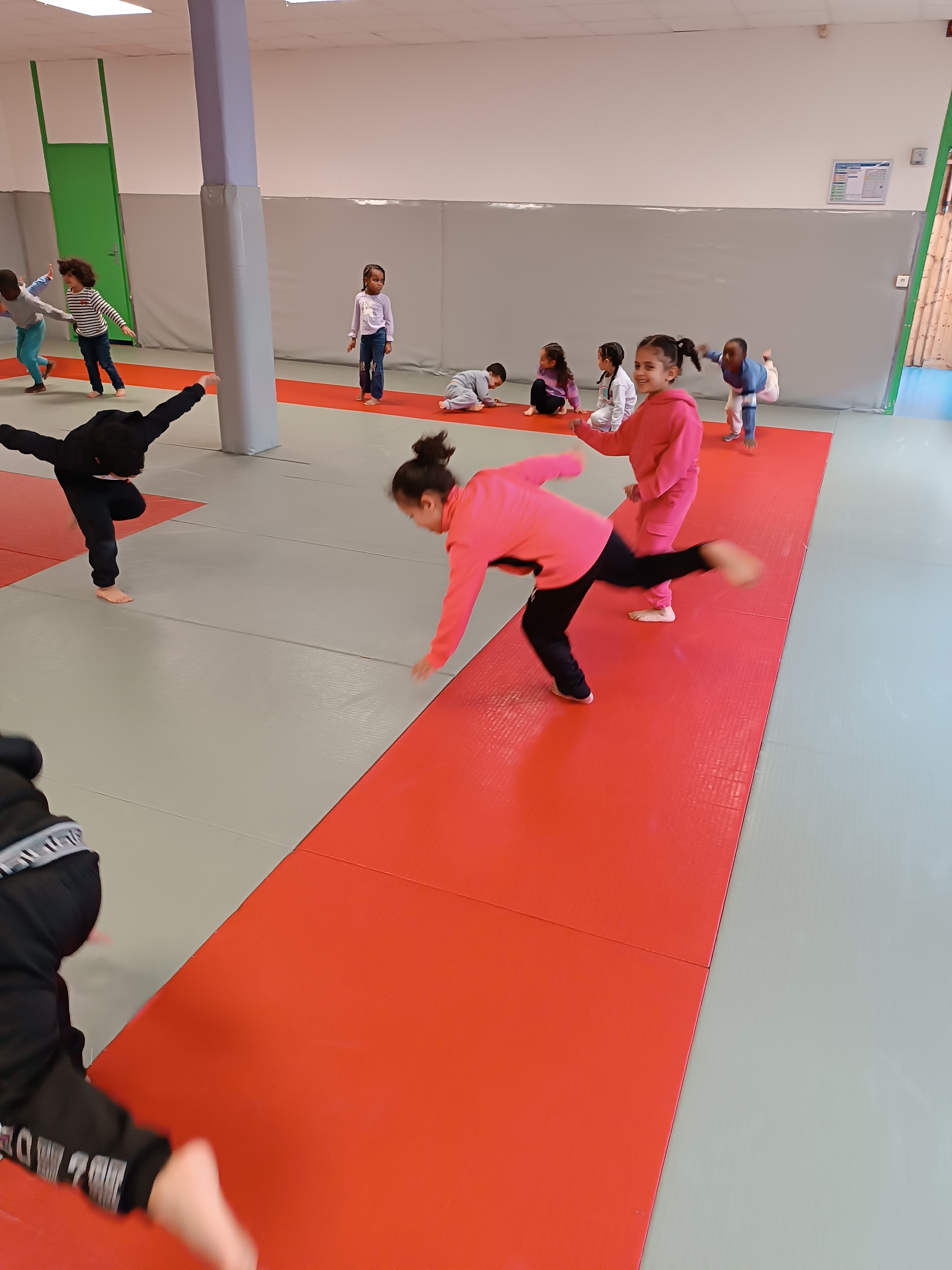 Séance d'acrosport au gymnase des Combes avec la classe de maîtresse Isabelle.