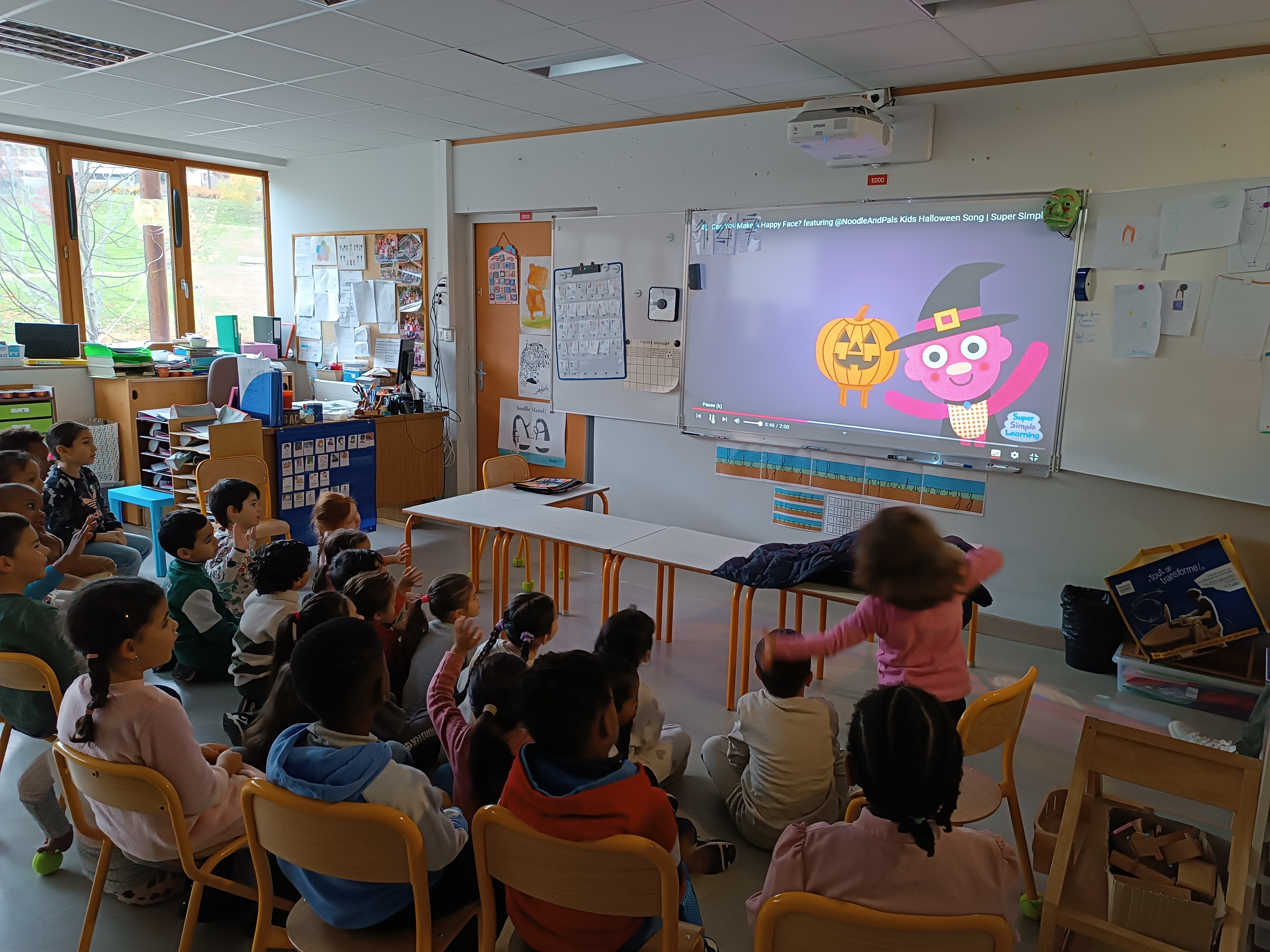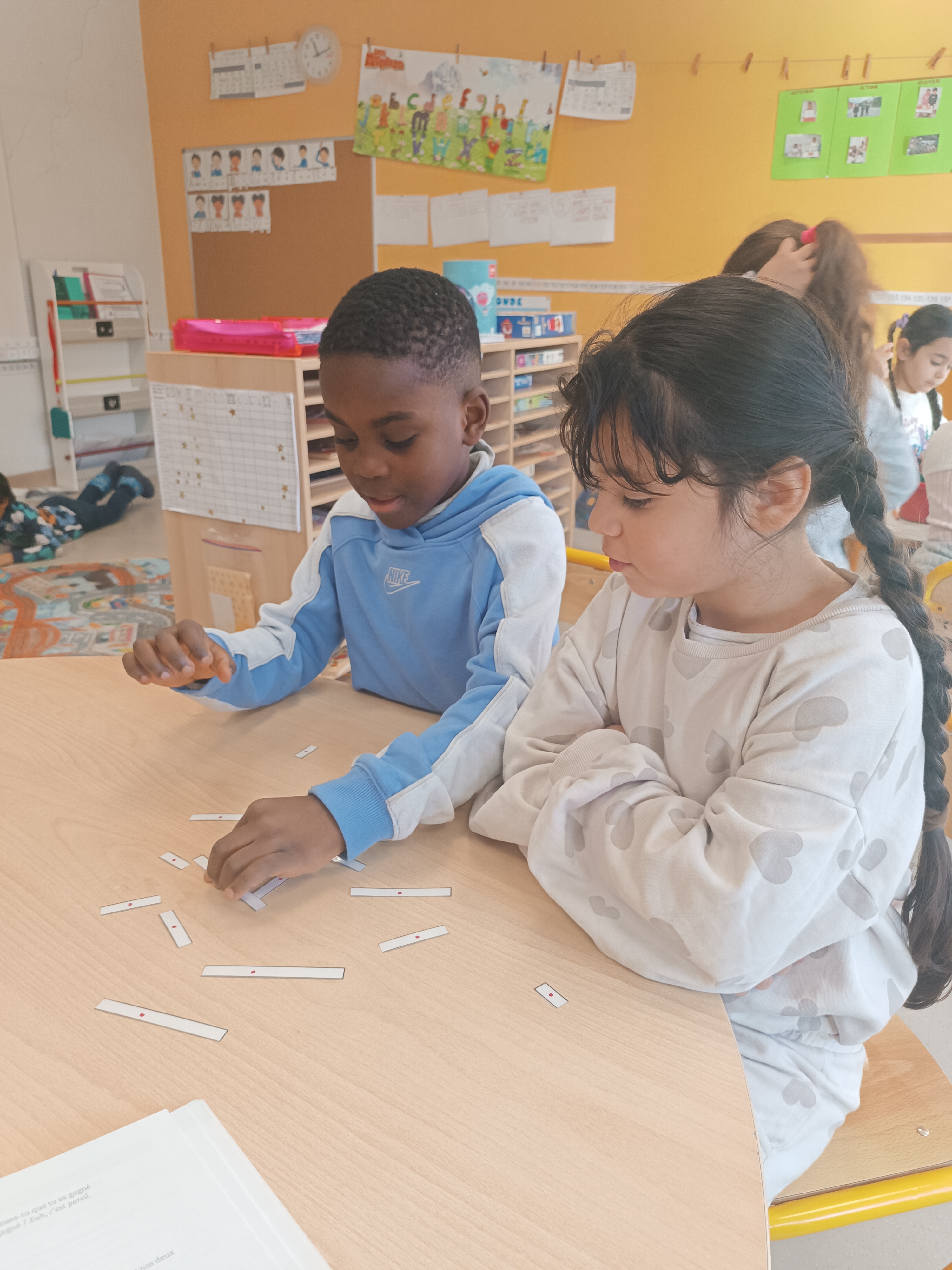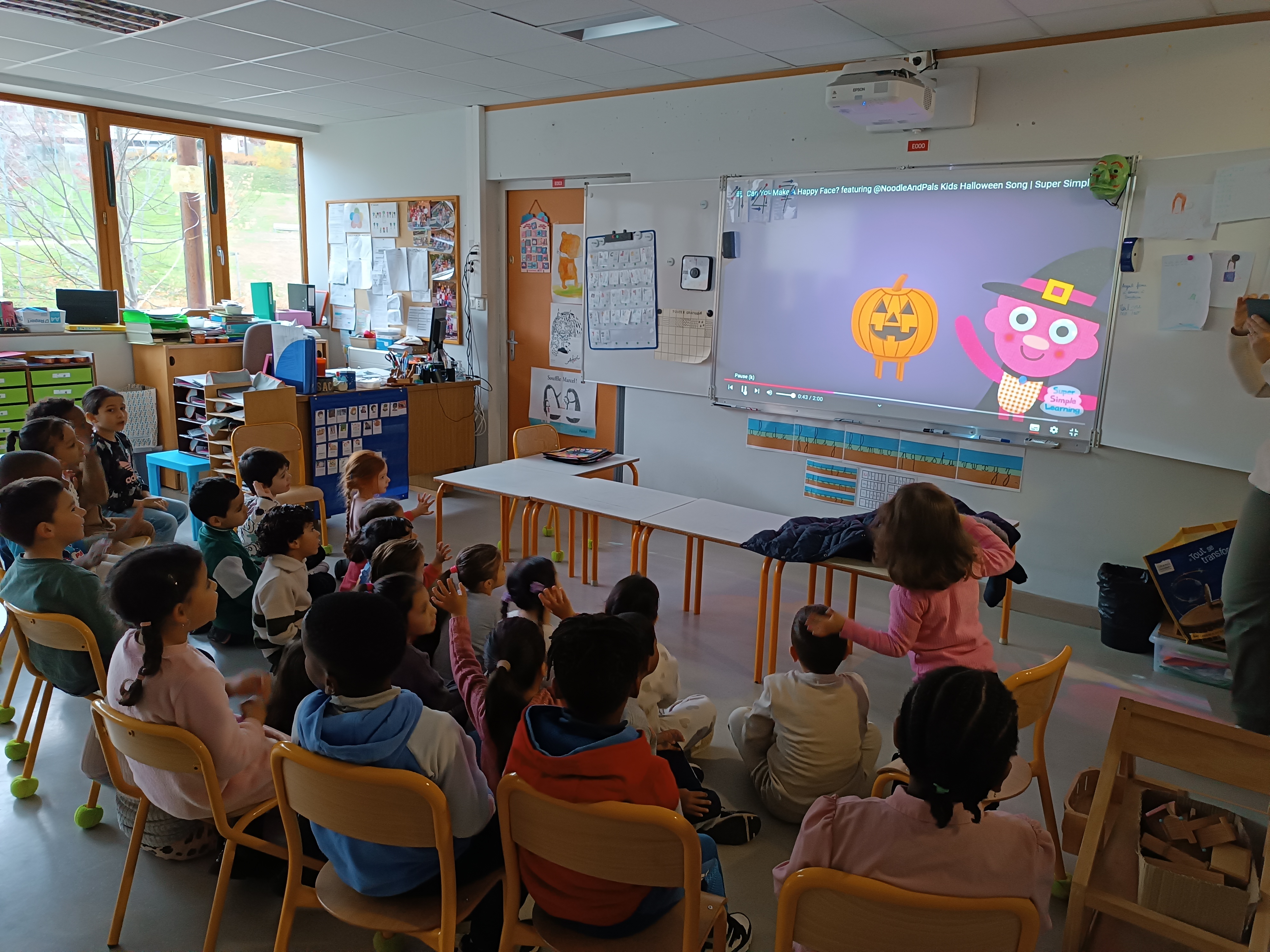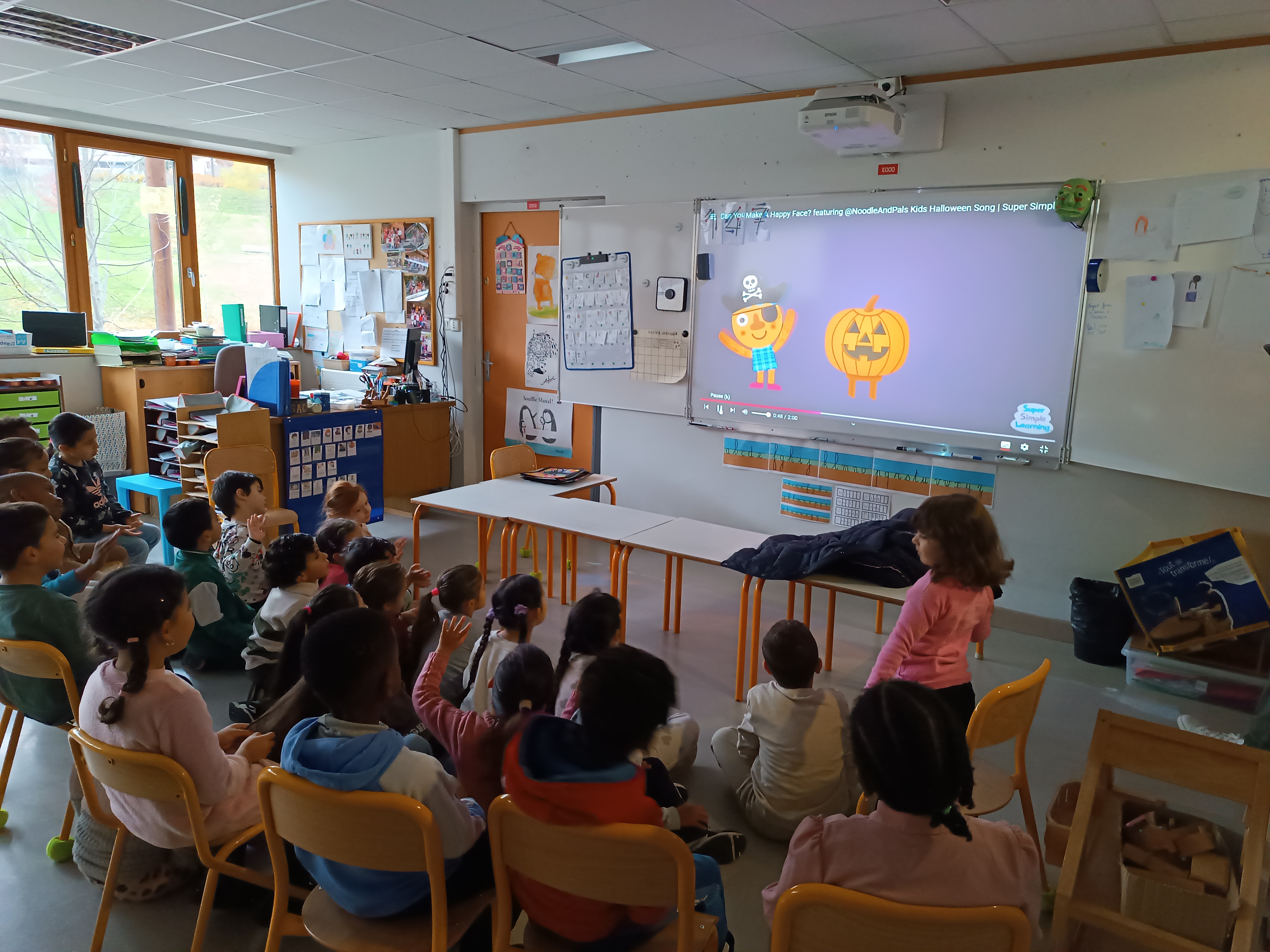 Comme toutes les semaines, nous commençons la semaine en anglais. Les GS de maîtresse Isabelle descendent dans notre classe et tous ensemble, nous faisons de l'anglais. Un moment ludique et très apprécié.