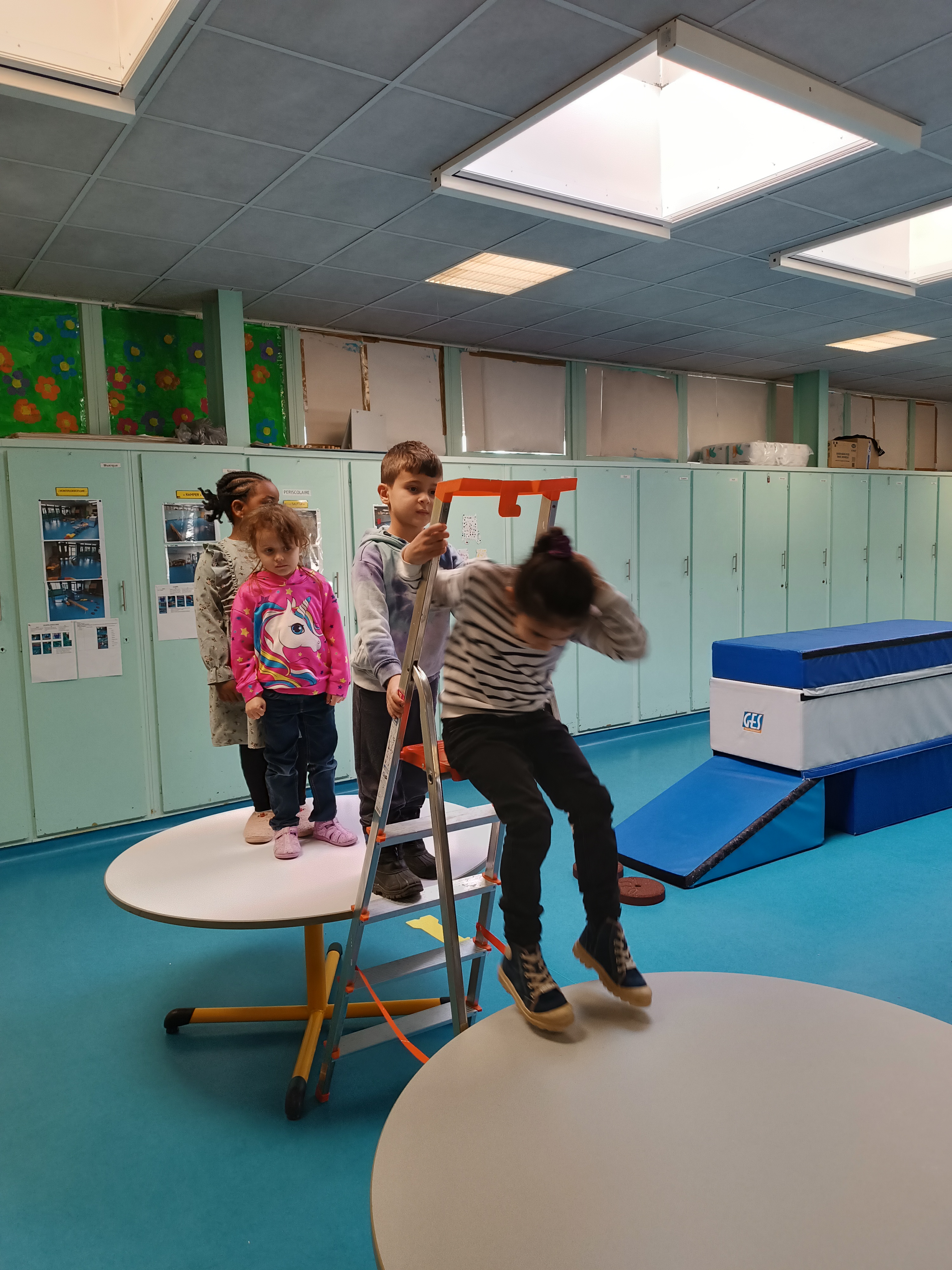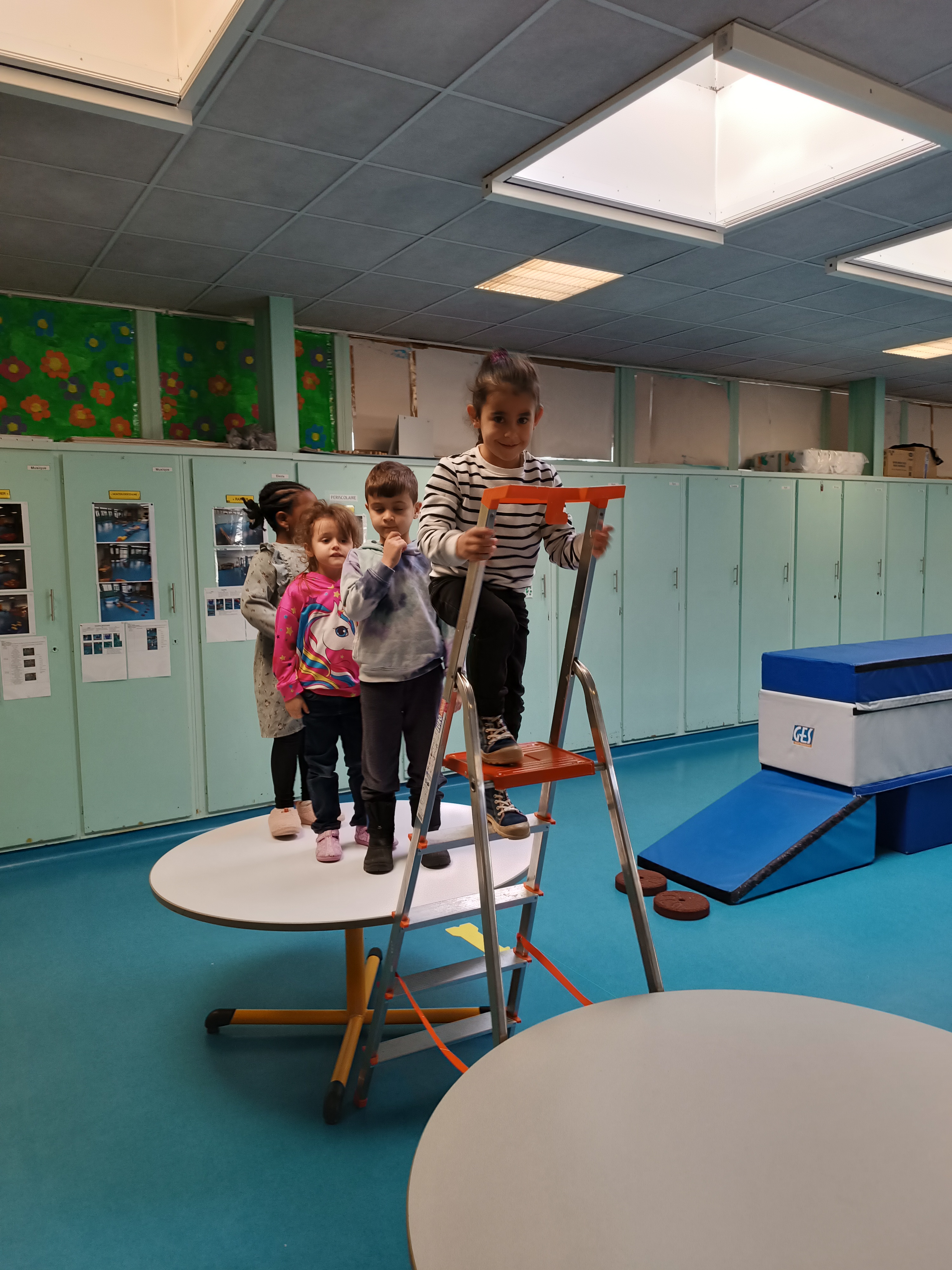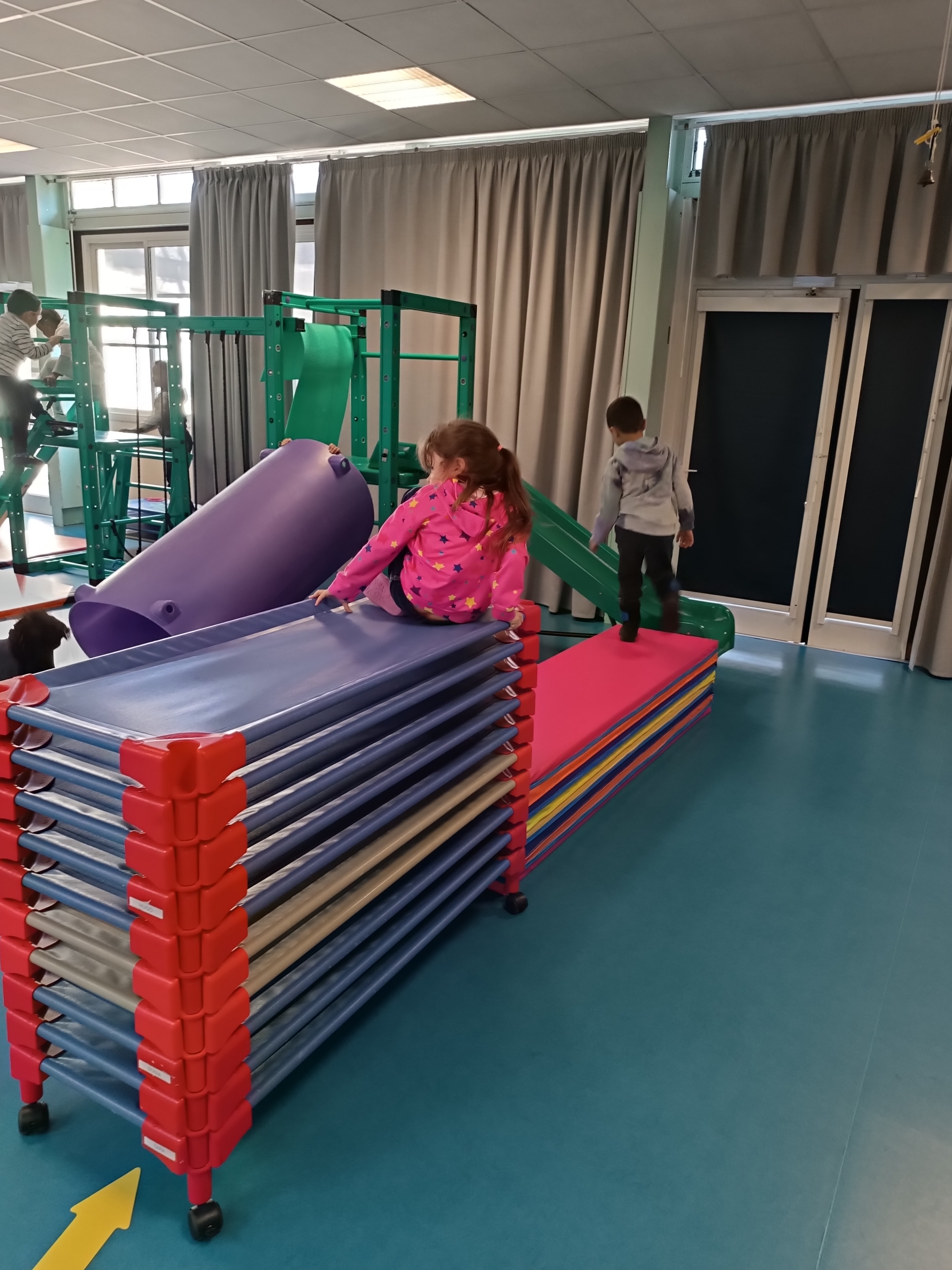 Pour la première fois depuis le début de l'année, nous avons pu monter aux combes pour faire le parcours de motricité : MONTER ET DESCENDRE sont les verbes d'action travaillés cette période.