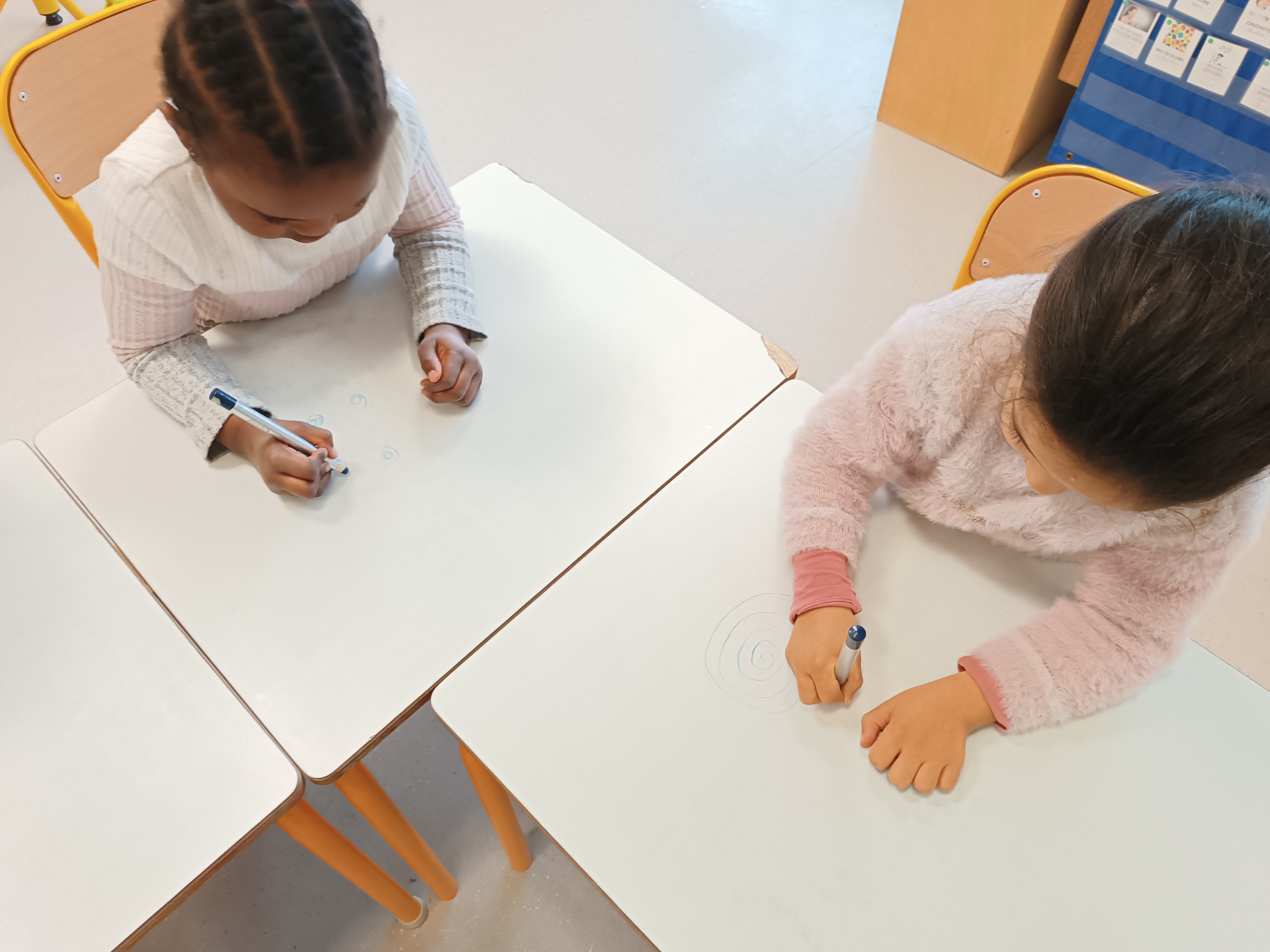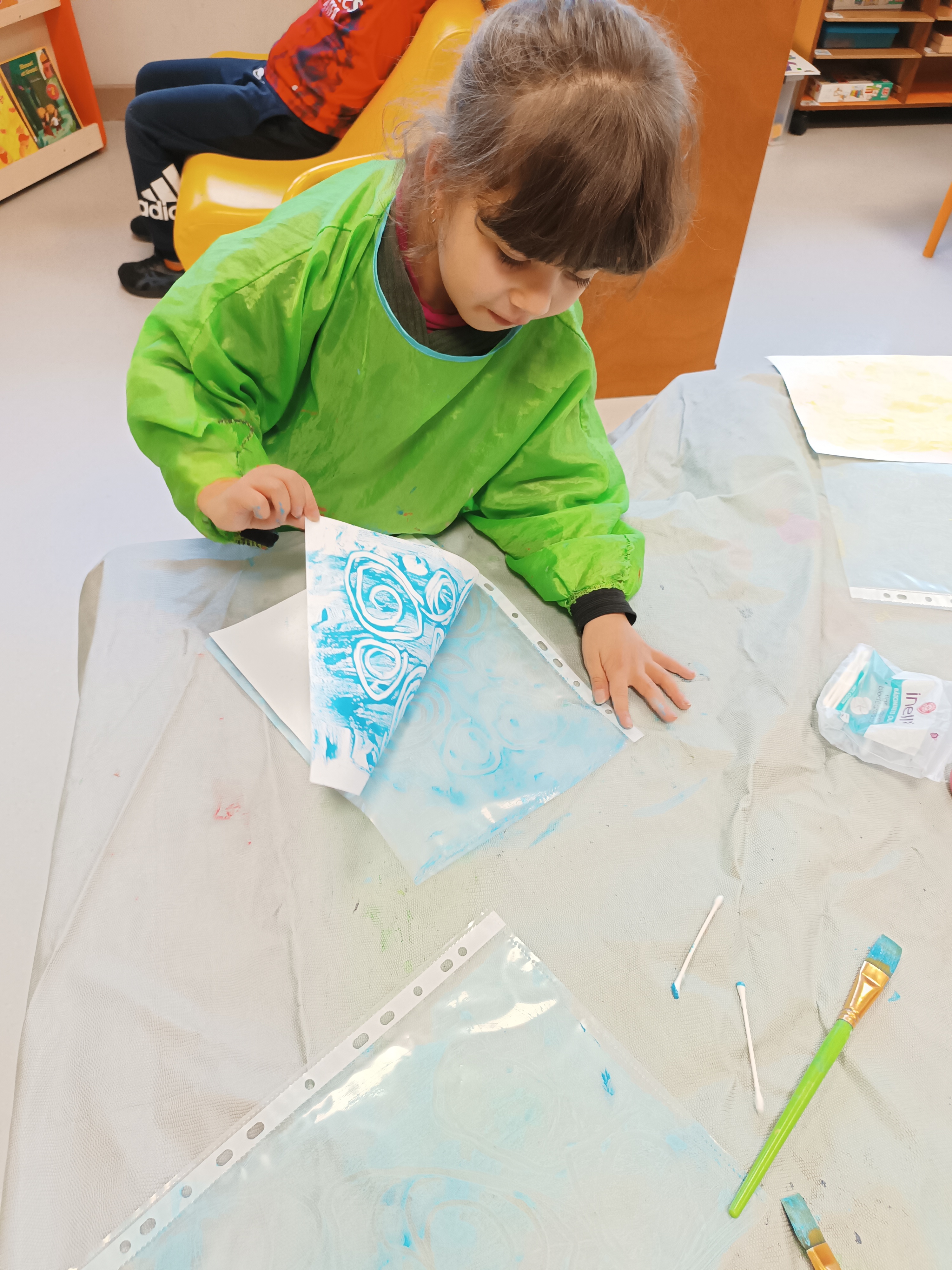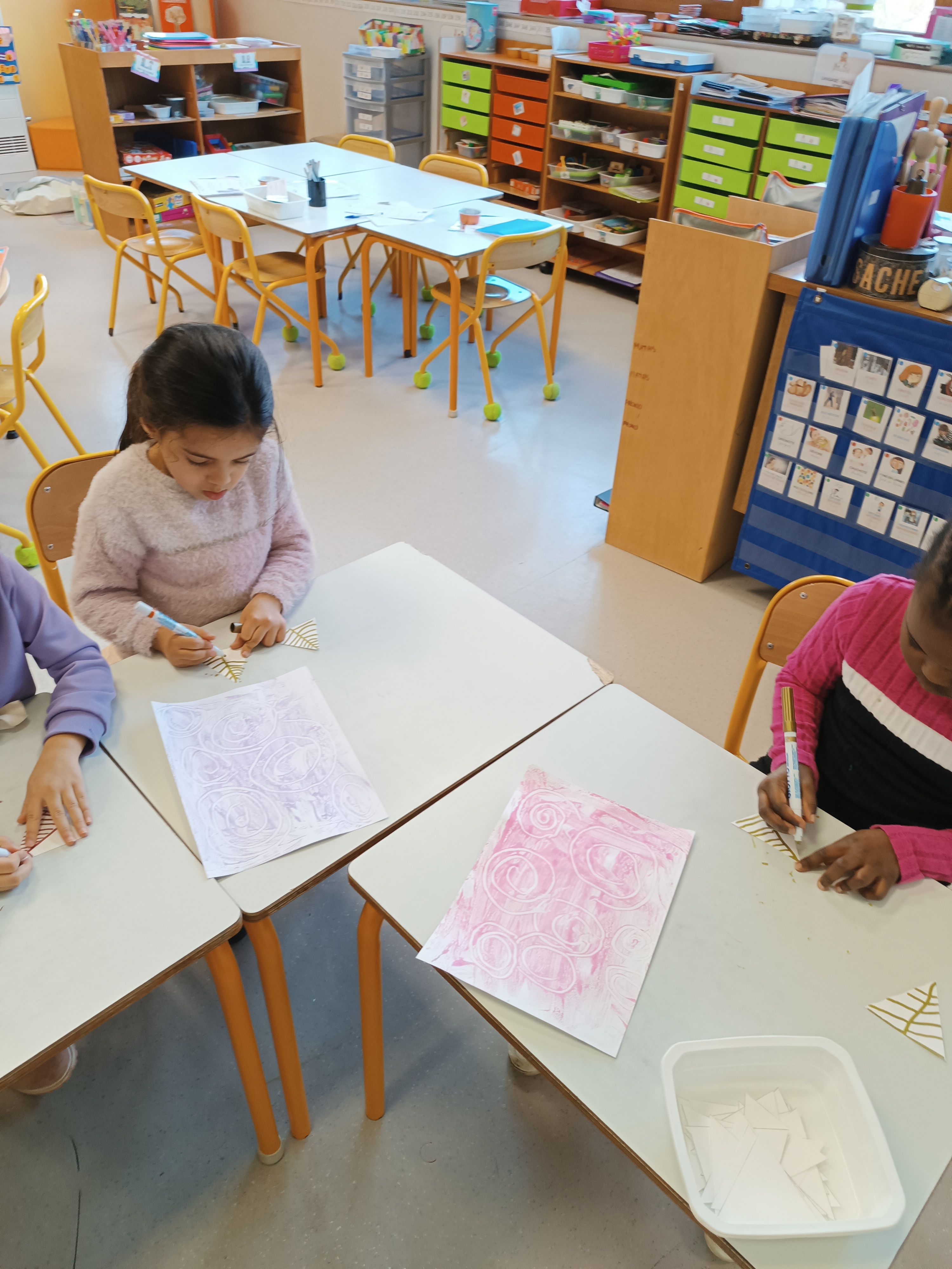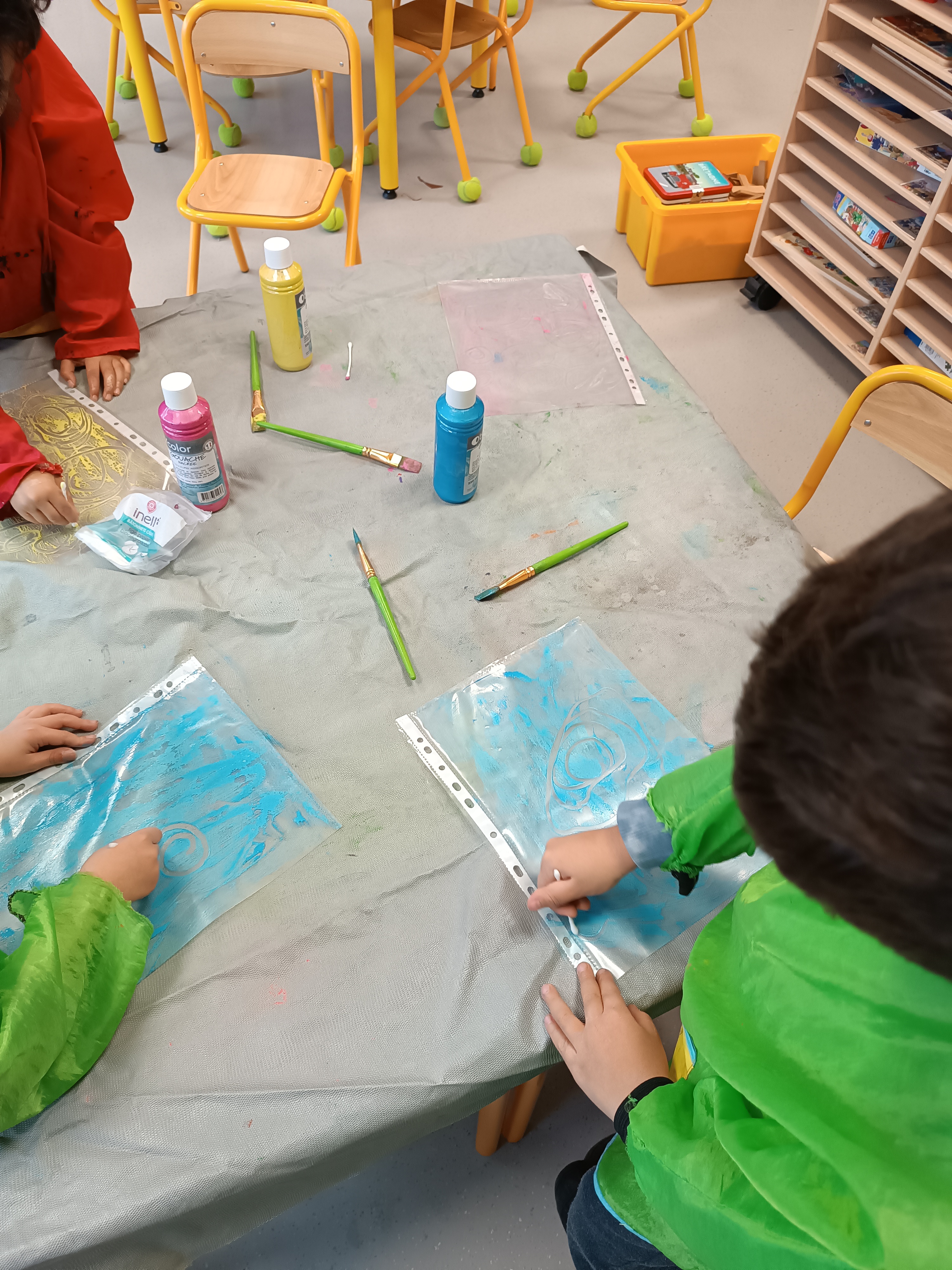 Découverte d'un nouveau graphisme, la spirale, mais aussi, d'une nouvelle technique : l'impression sur feuille.