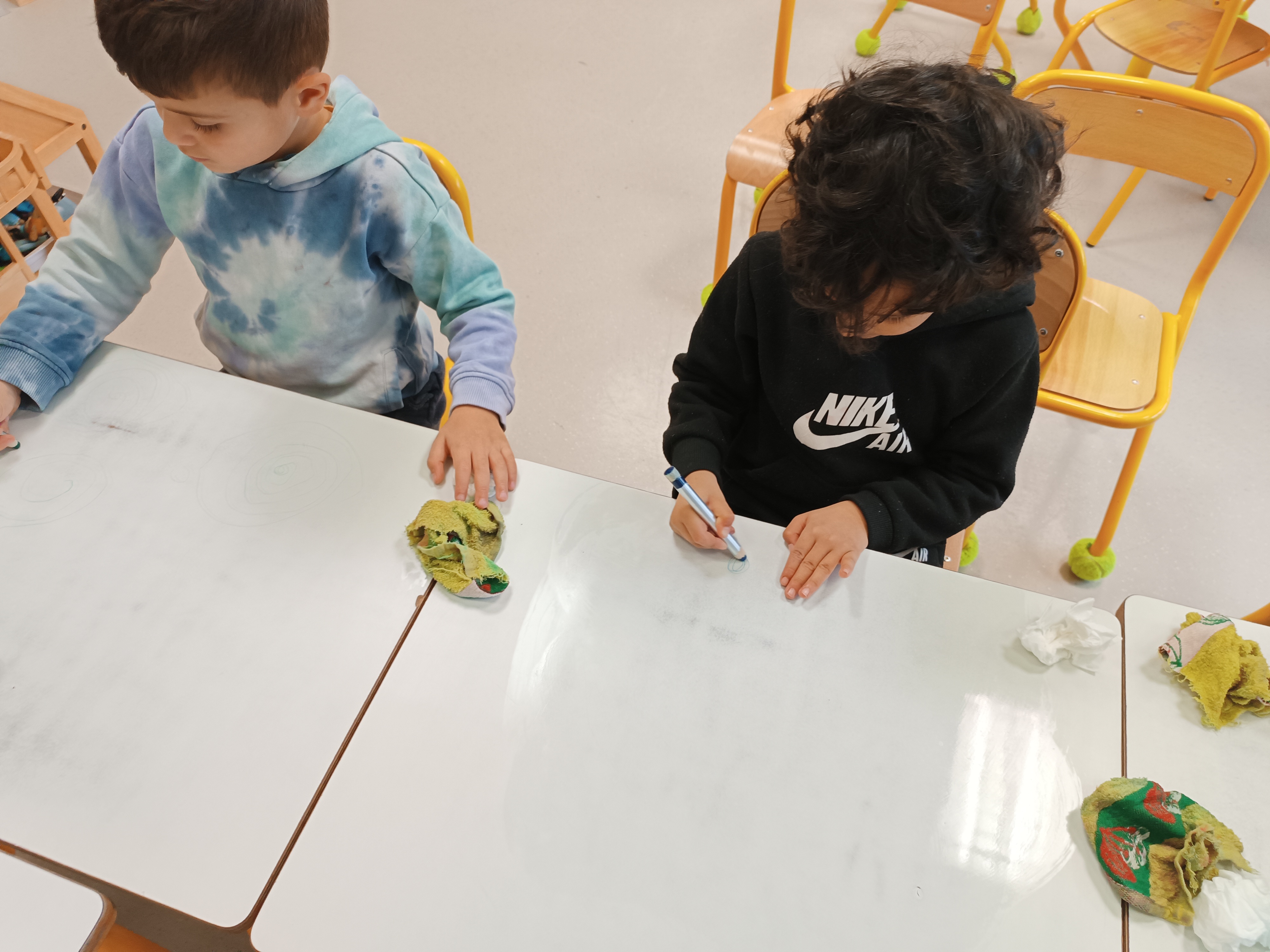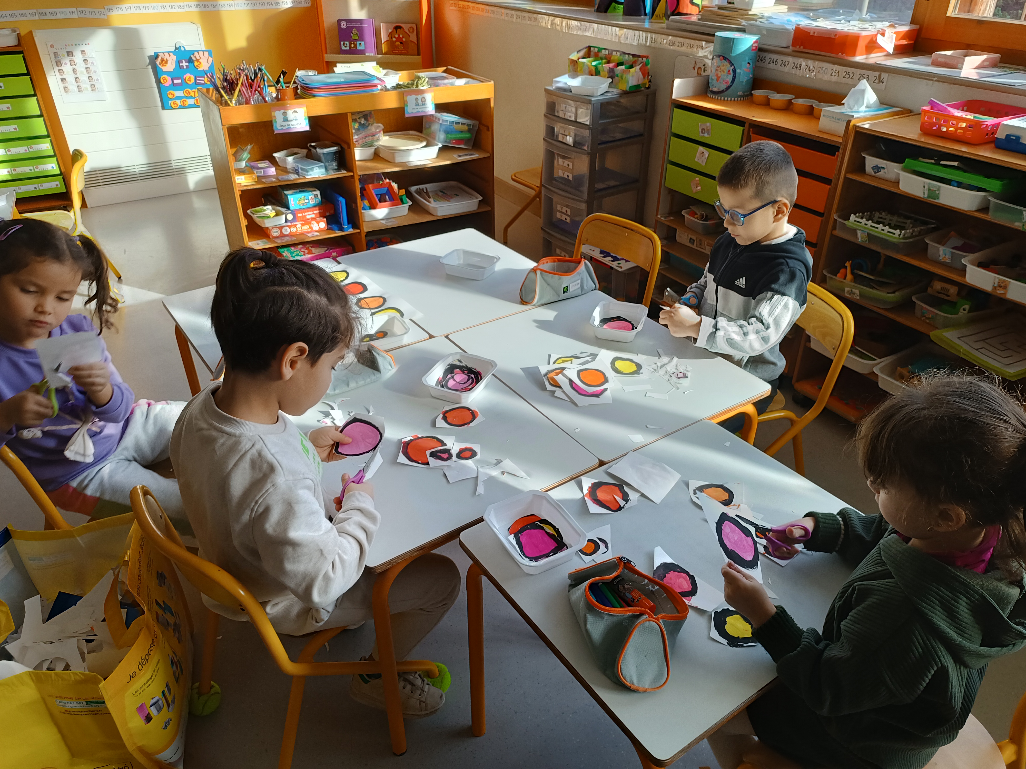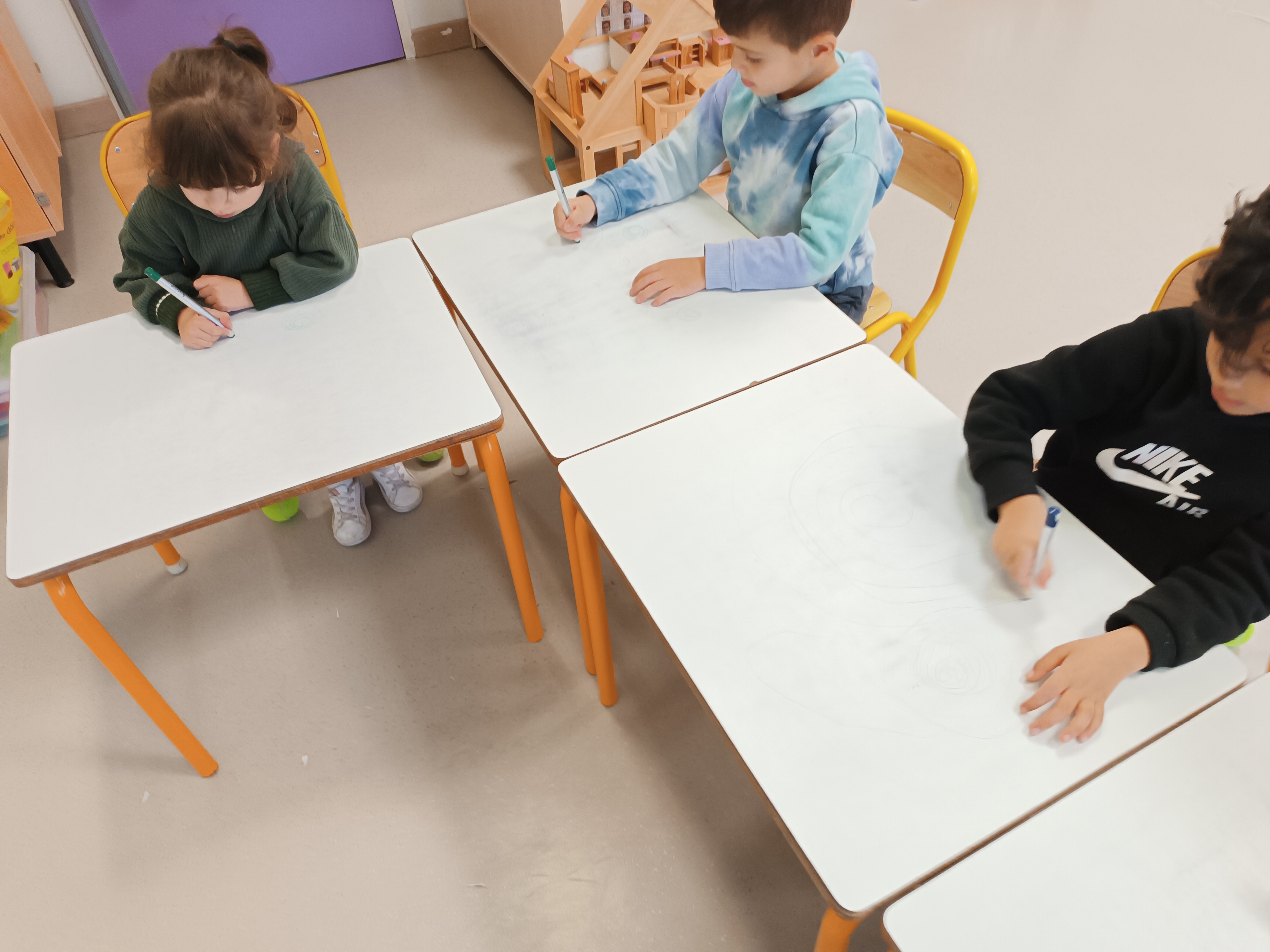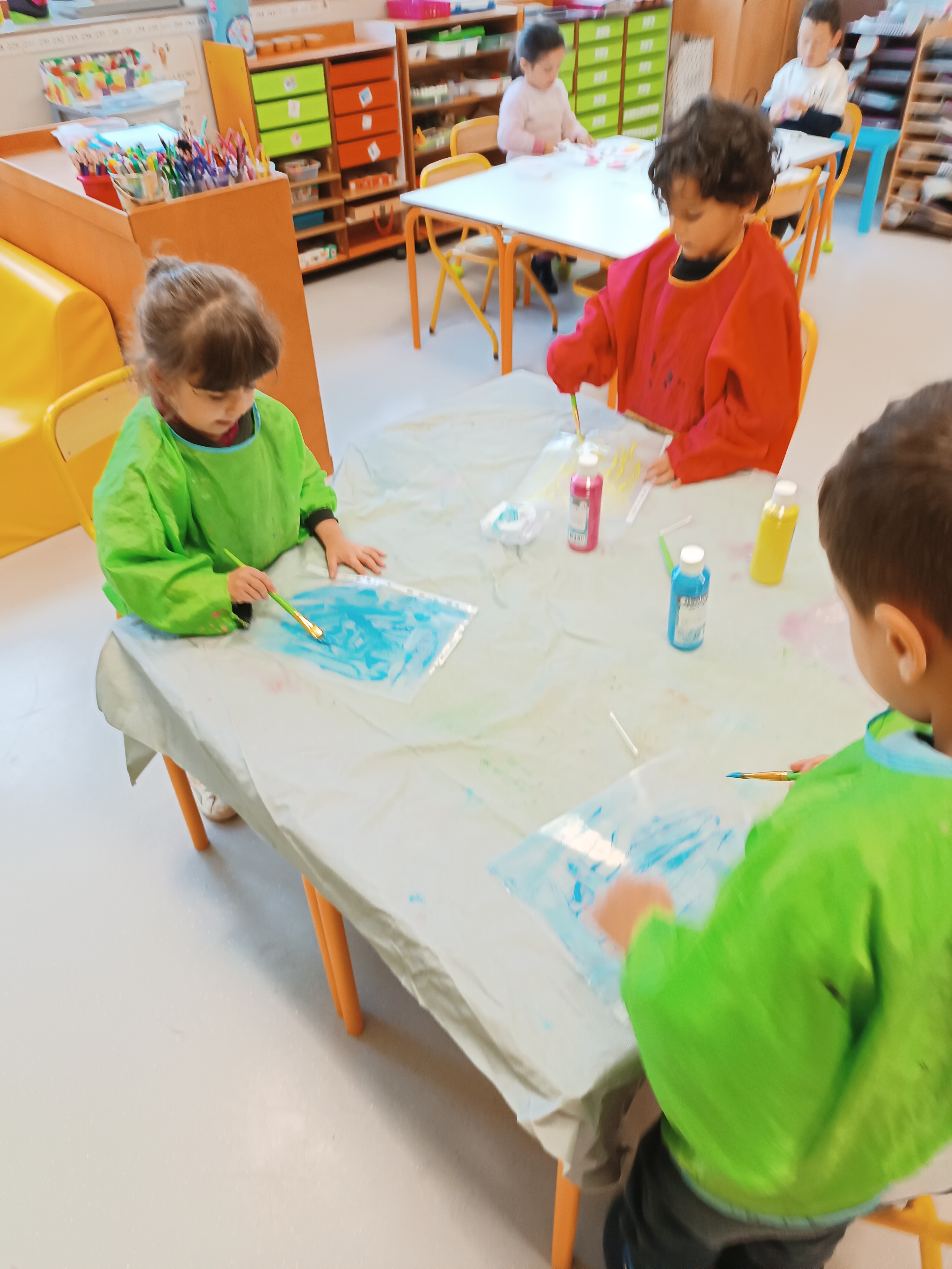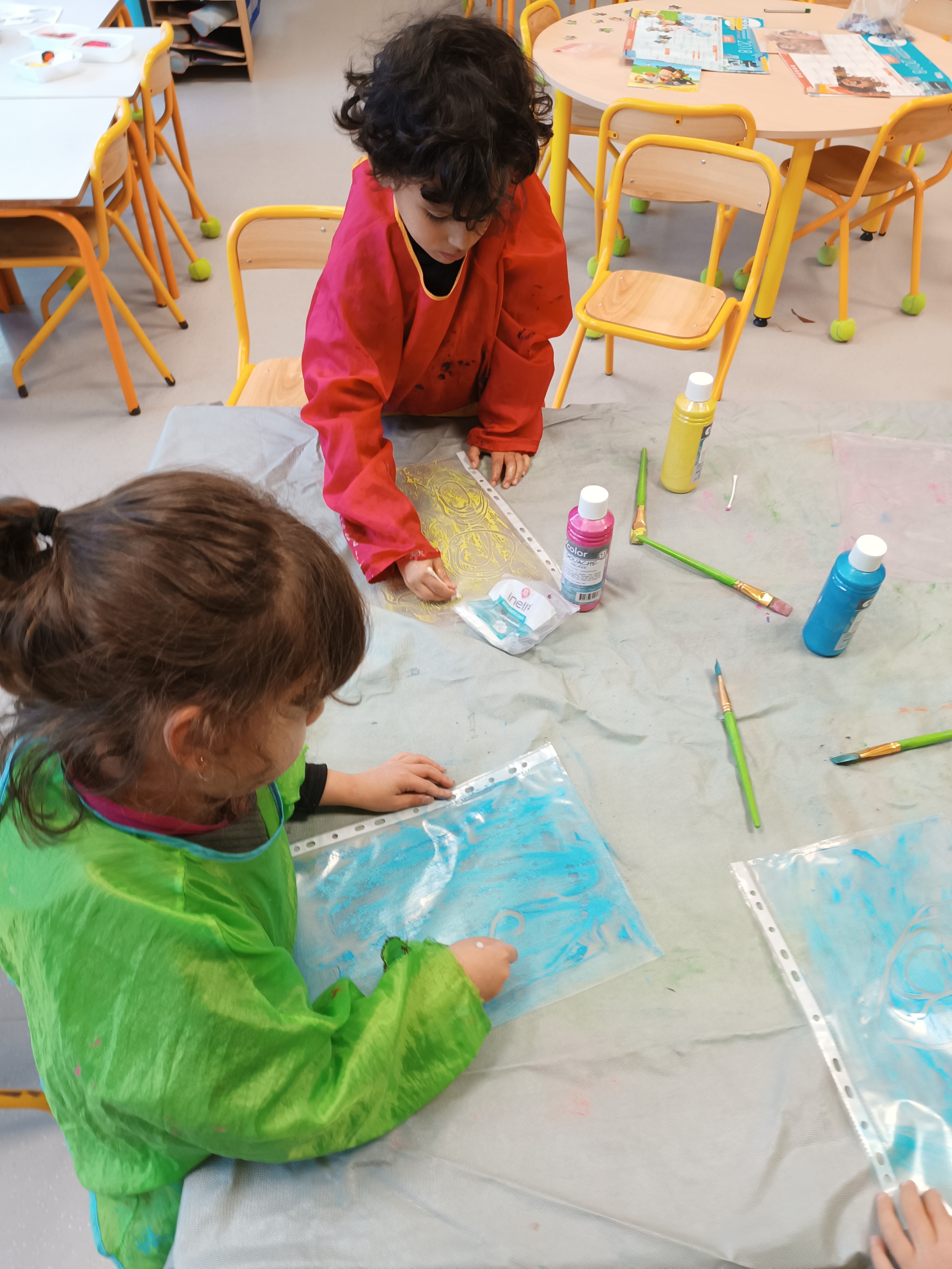 Découverte d'un nouveau graphisme, la spirale, mais aussi, d'une nouvelle technique : l'impression sur feuille.