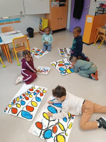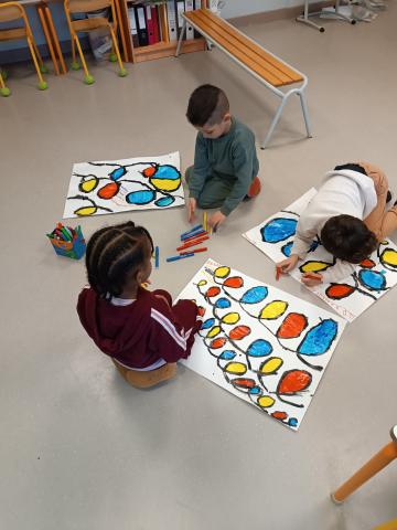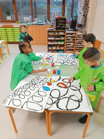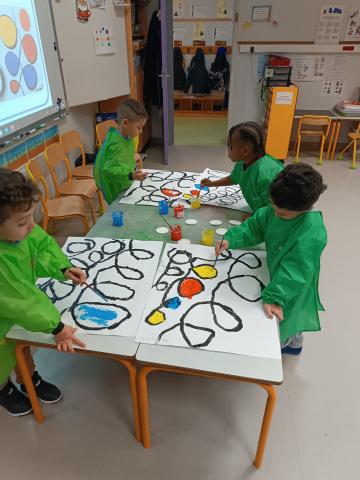 Des boucles à la manière de Calder. En plus, c'est trop bien, on peut se mettre par terre pour travailler 🎉