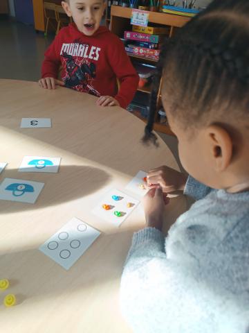 Le jeu des paniers : pour apprendre à compter. Le but : prendre juste ce qu'il faut d'oeufs pour remplir son panier. Attention, il faut obligatoirement prendre minimum 2 cartes œufs.