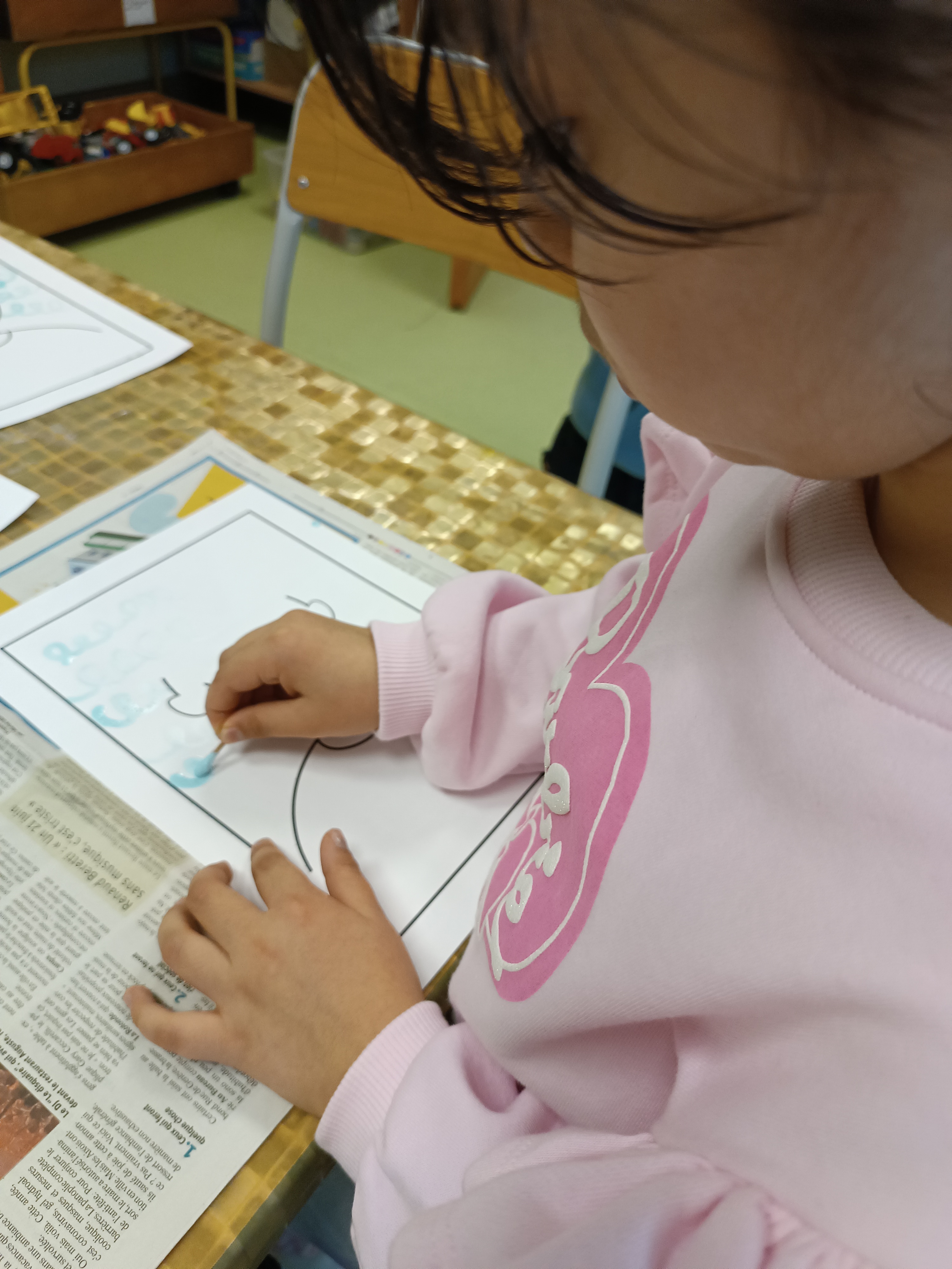 - dessiner des boucles au "produit magique" (du drawing gum)