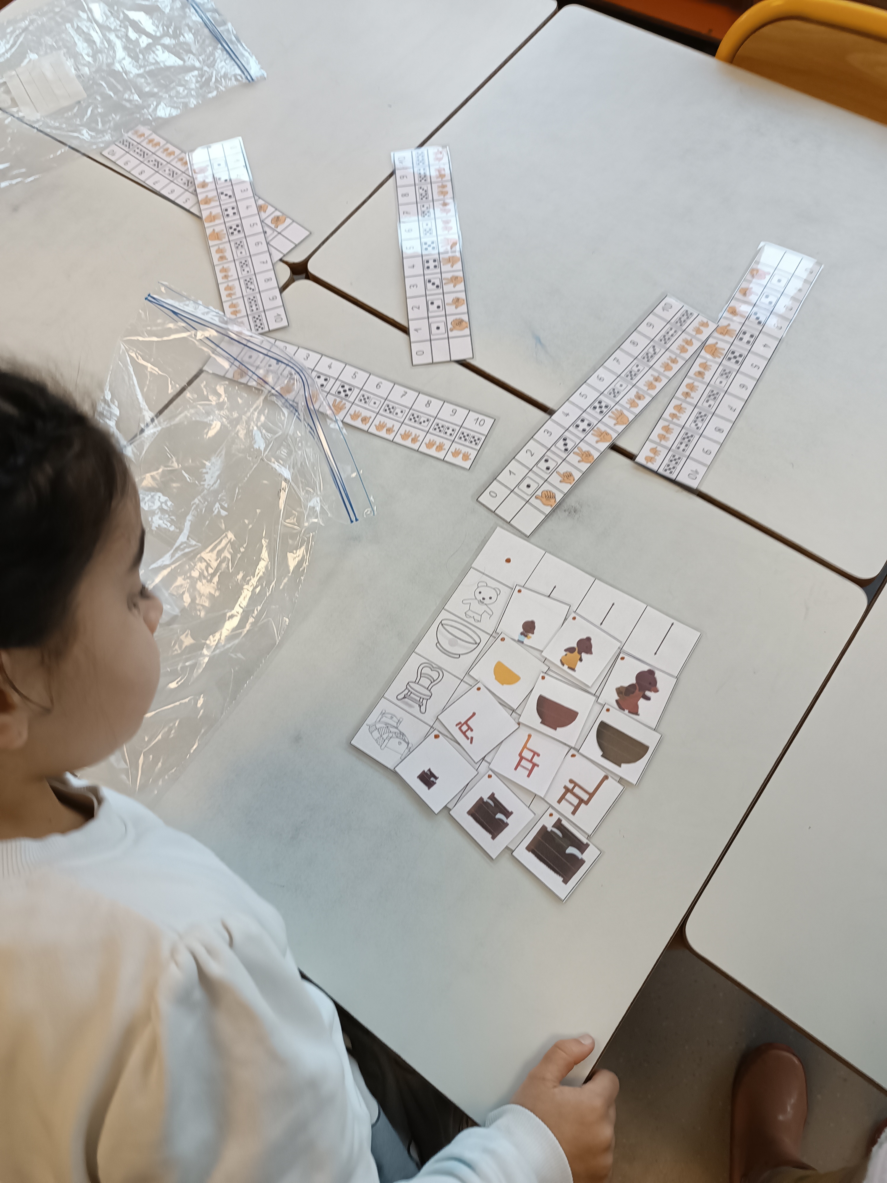En phonologie, nous avons commencé le travail sur les rimes : c'est toujours une compétence difficile chez les GS mais avec de l'entraînement, la majorité des élèves y arrive.