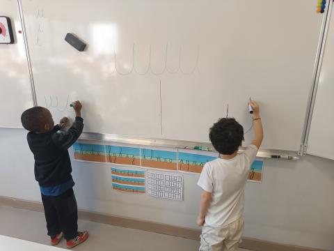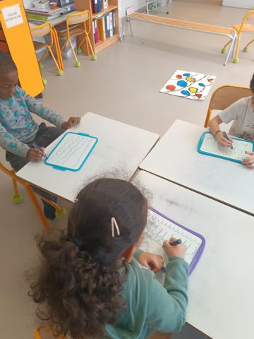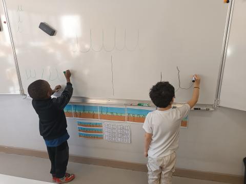 Après le travail sur les boucles en période 3 pour commencer l'apprentissage de l'écriture en attaché, nous commençons cette nouvelle période avec un nouveau graphisme : le creux. Grâce à lui, nous allons apprendre à écrire 3 nouvelles lettres en attaché.