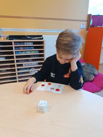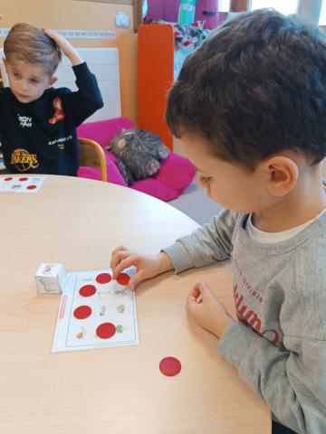 Les rimes des animaux : trouver sur sa planche les mots qui riment avec l'animal sur le dé. Pas toujours évident de trouver les rimes 😬
