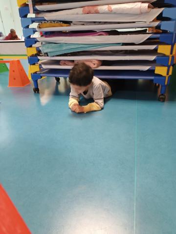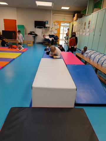 Dernier parcours "ramper". Mardi prochain la salle de motricité n'est pas disponible. Nous retrouverons un nouveau parcours à la rentrée des vacances d'hiver.