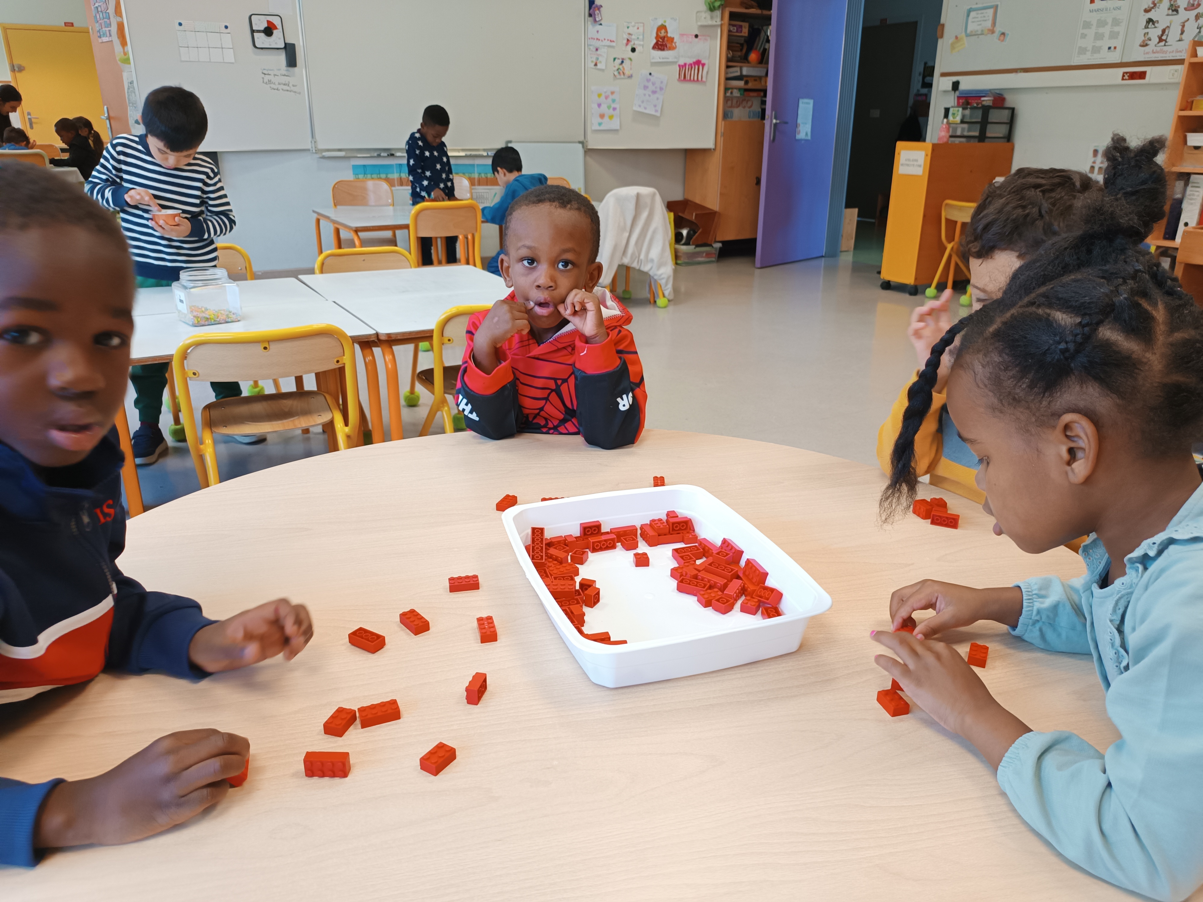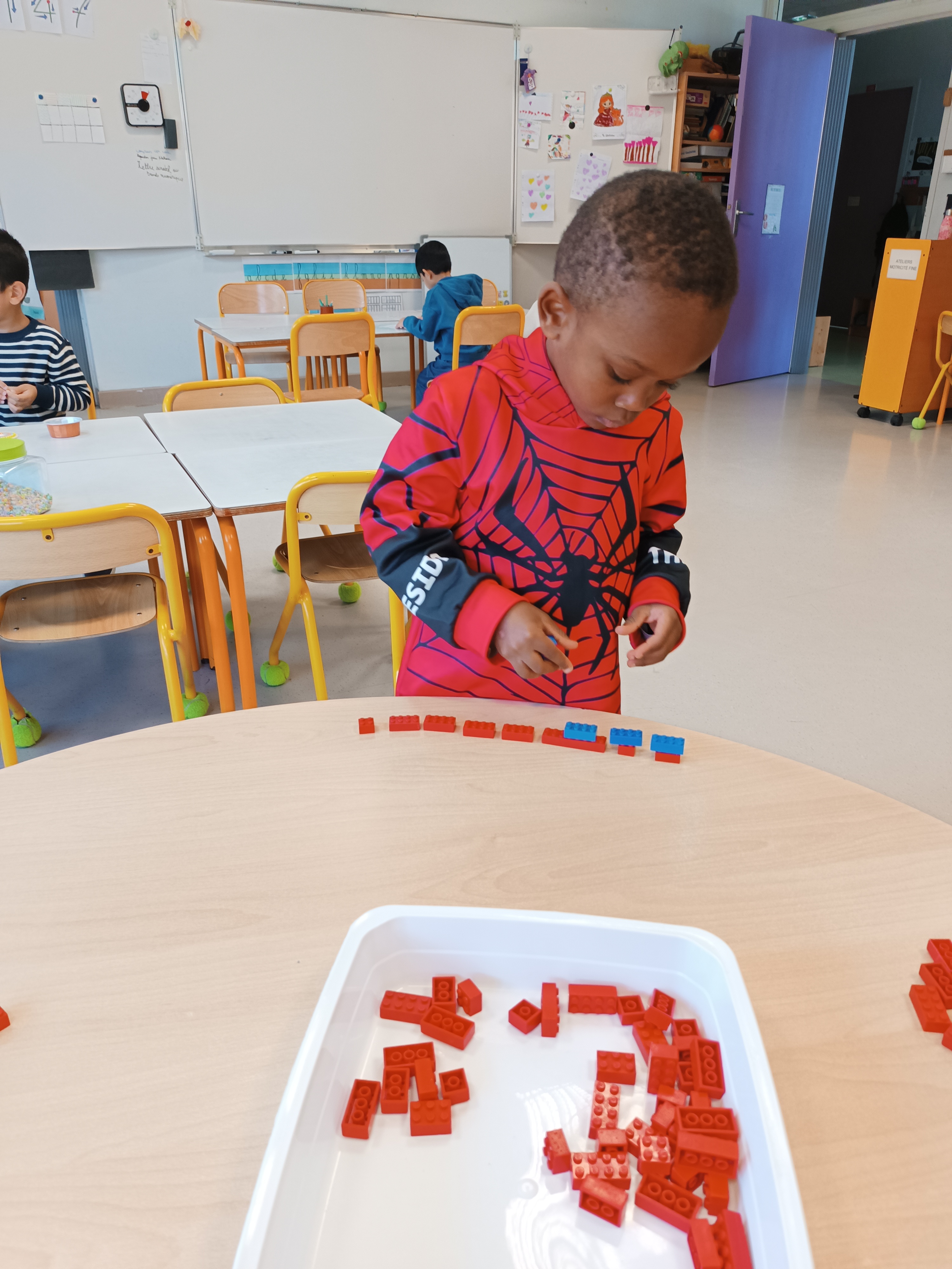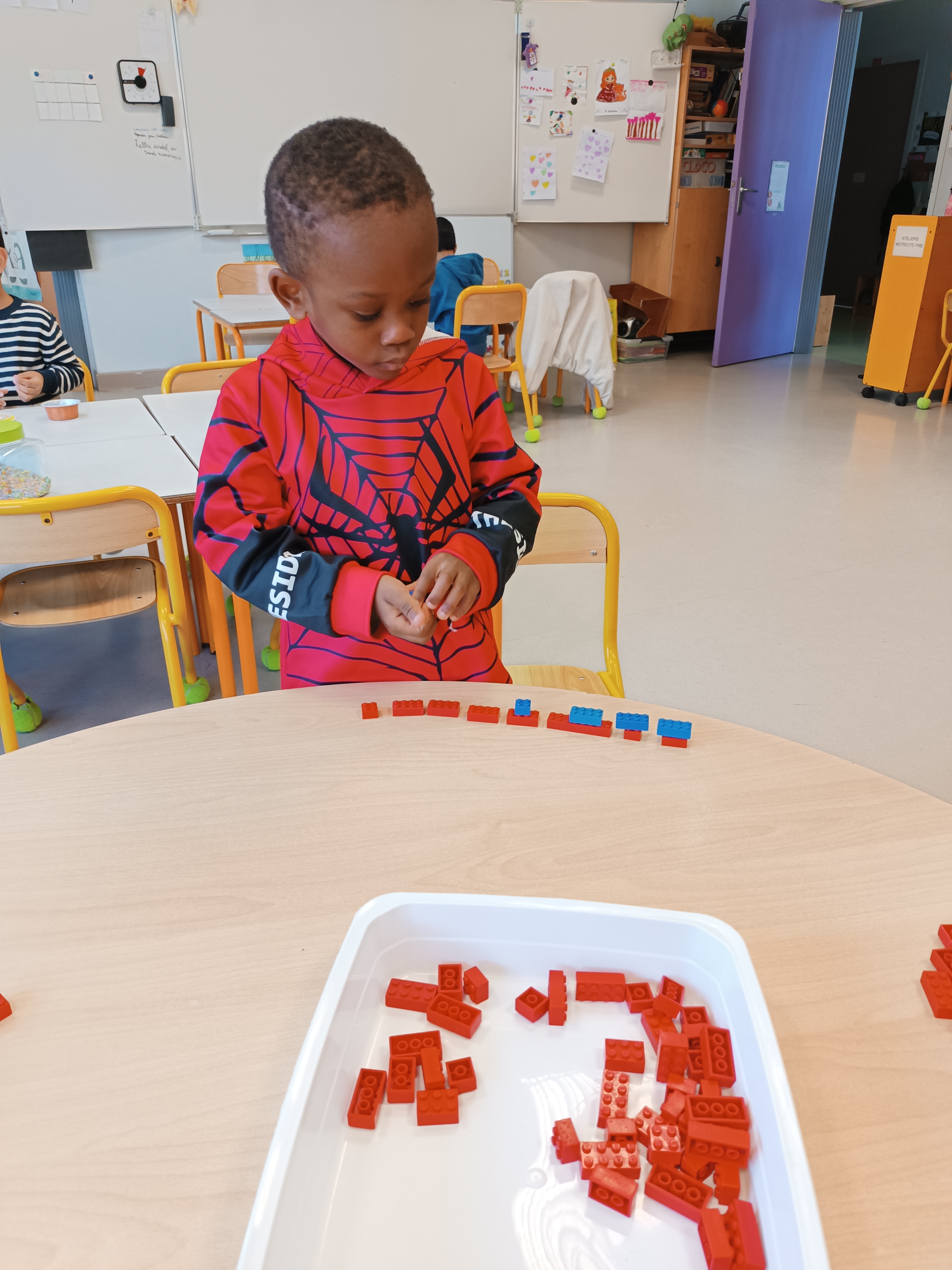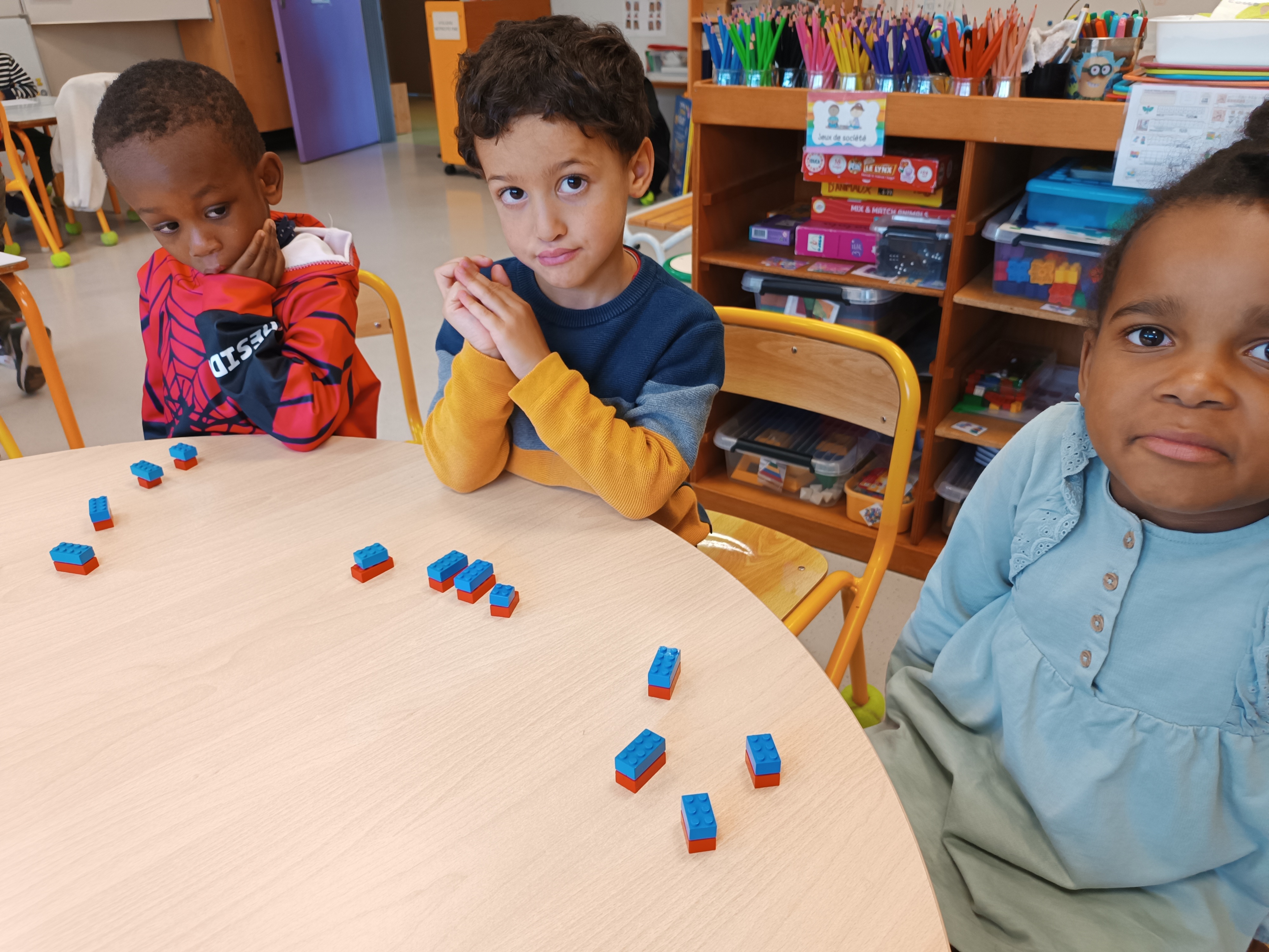 Il faut donc dénombrer correctement les briques rouges, mémoriser ce nombre et dénombrer correctement les briques bleues.