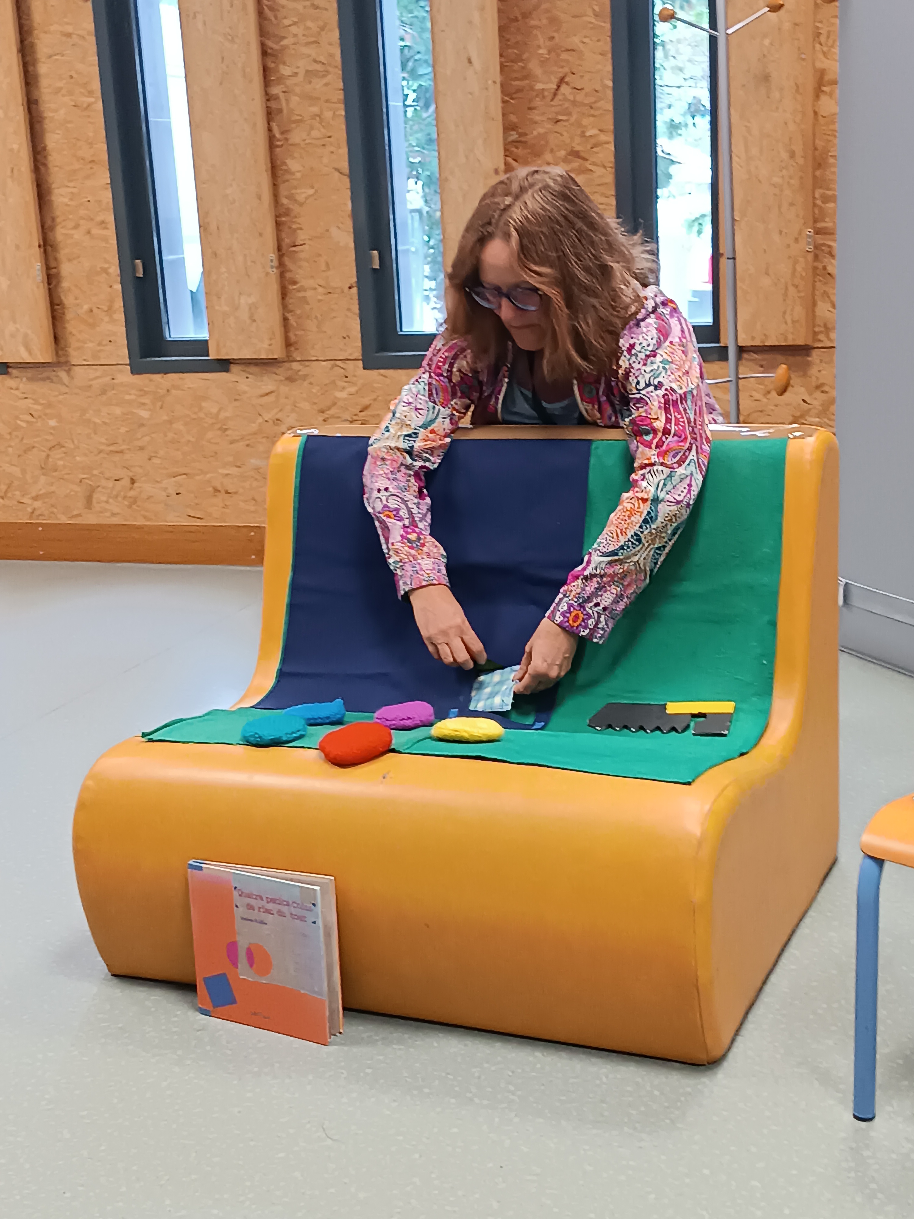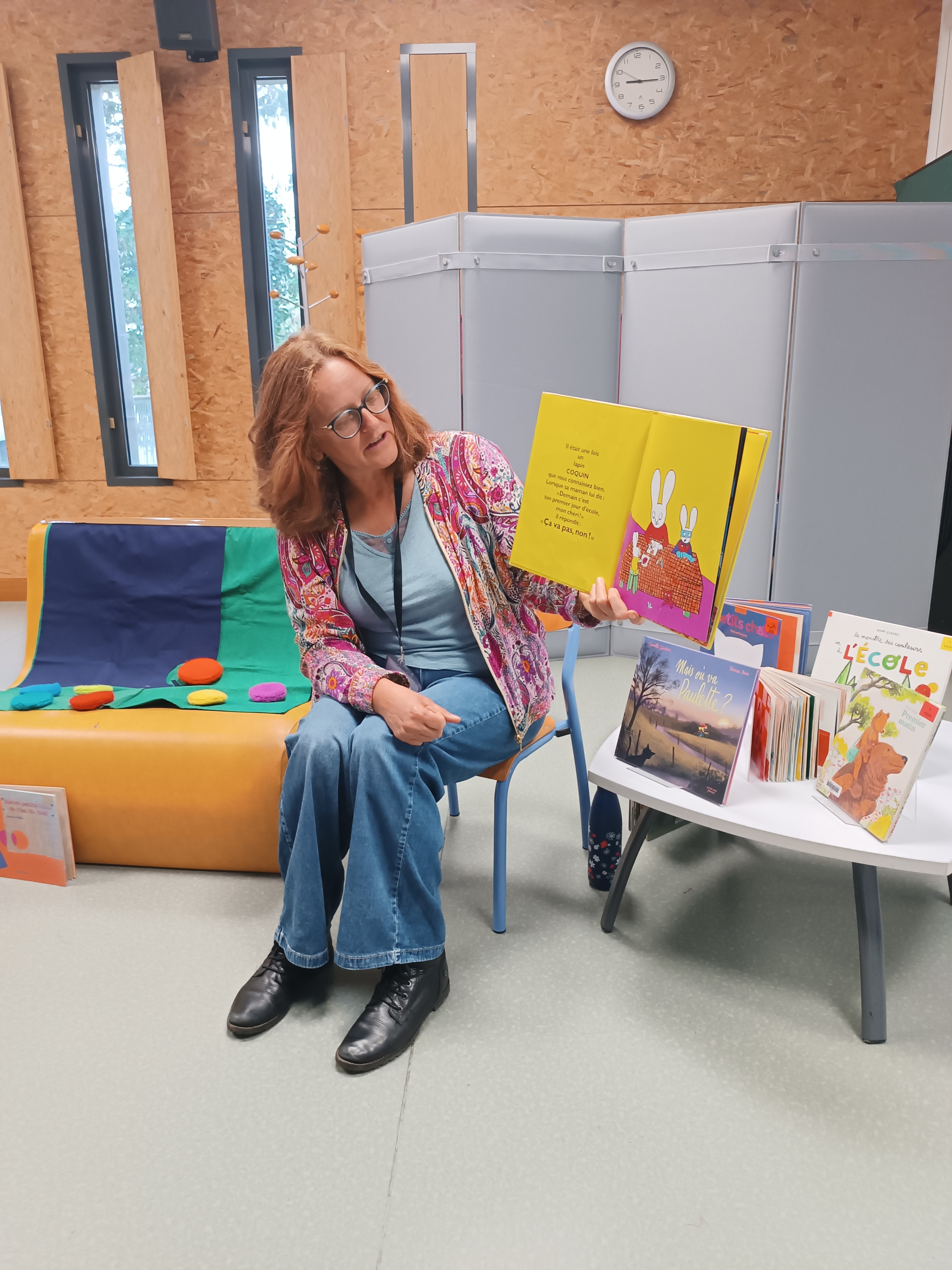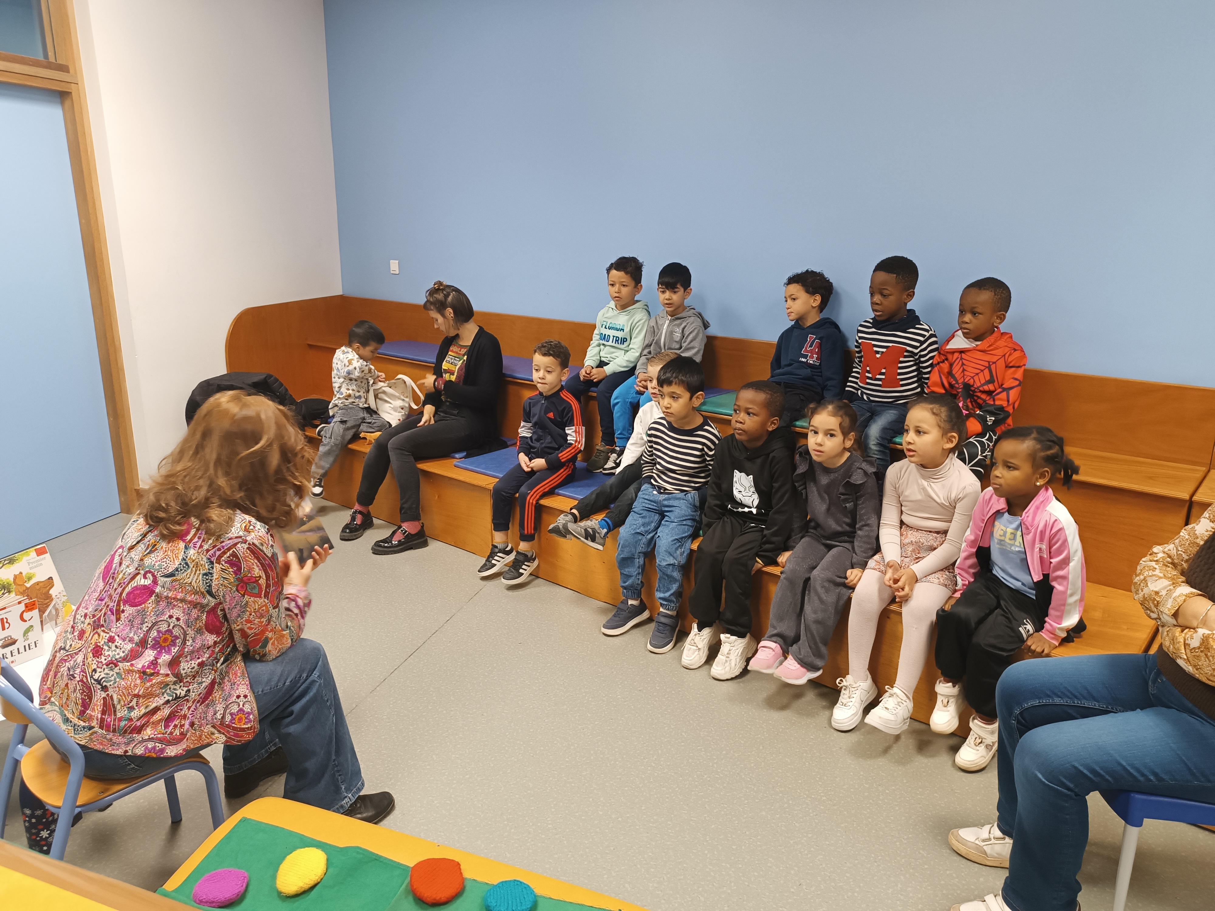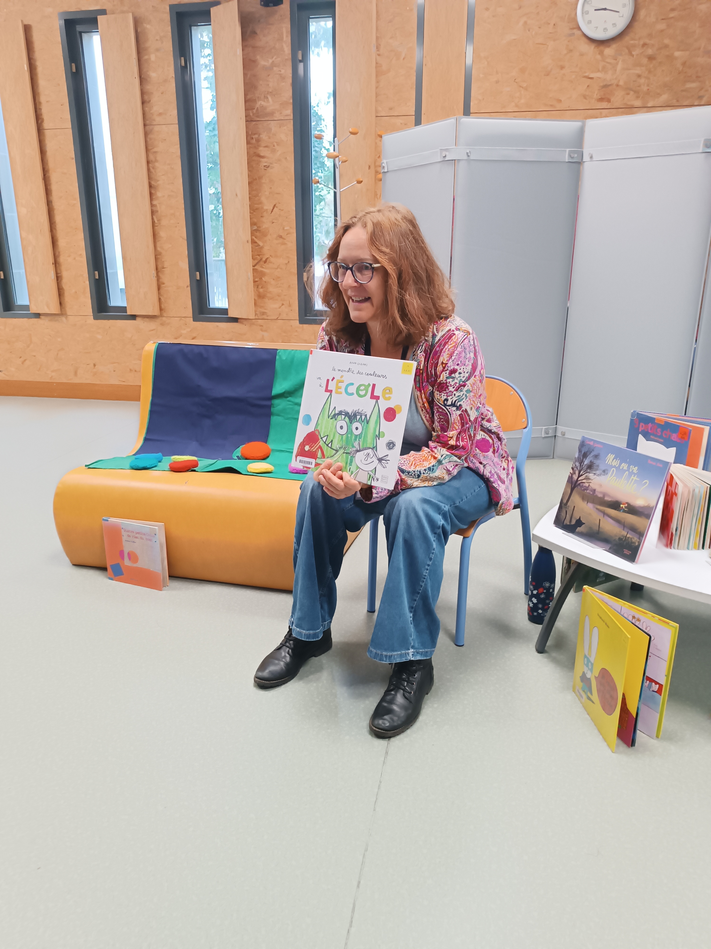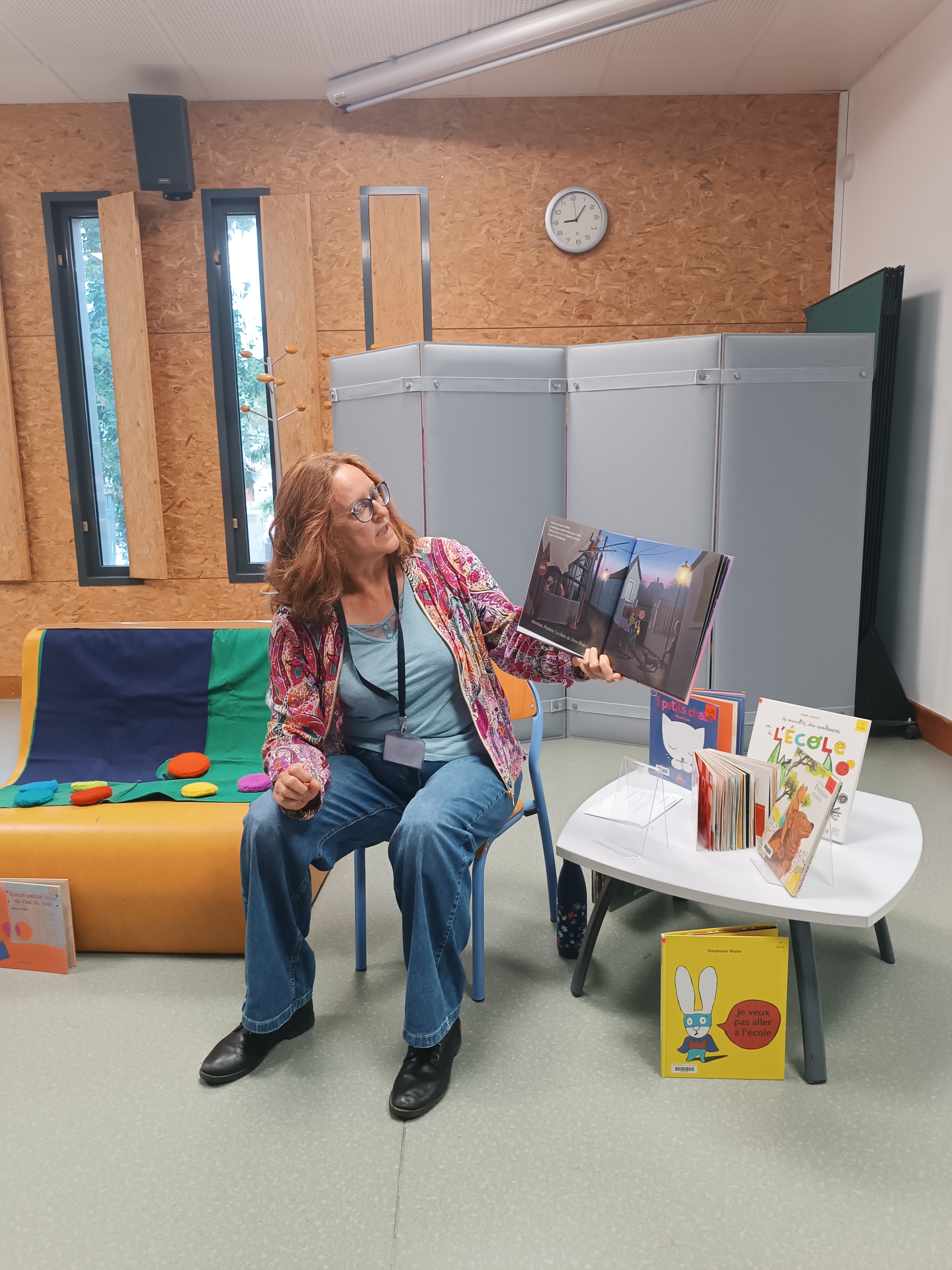 Sortie à la bibliothèque pour écouter des histoires sur le thème de la rentrée.