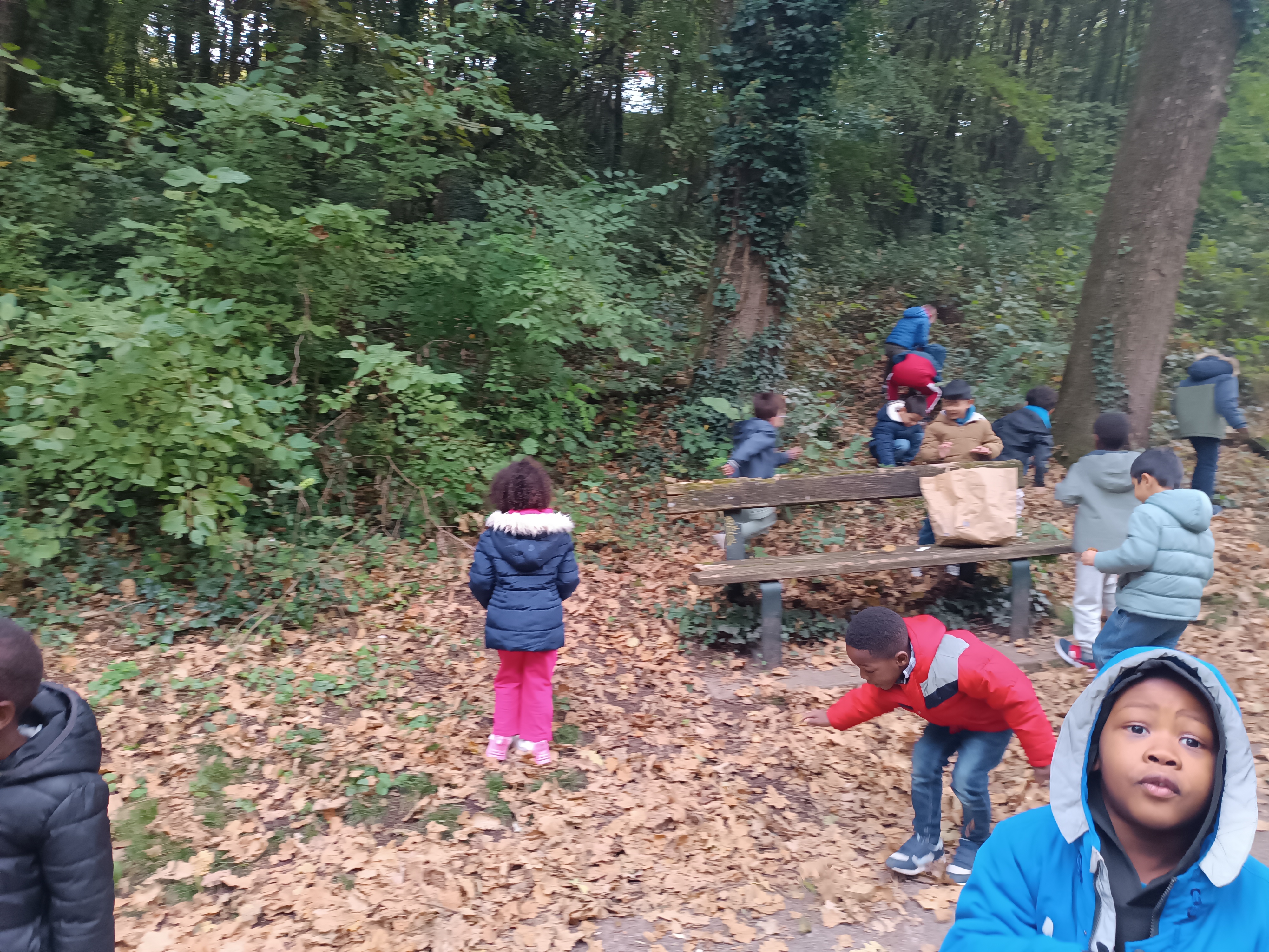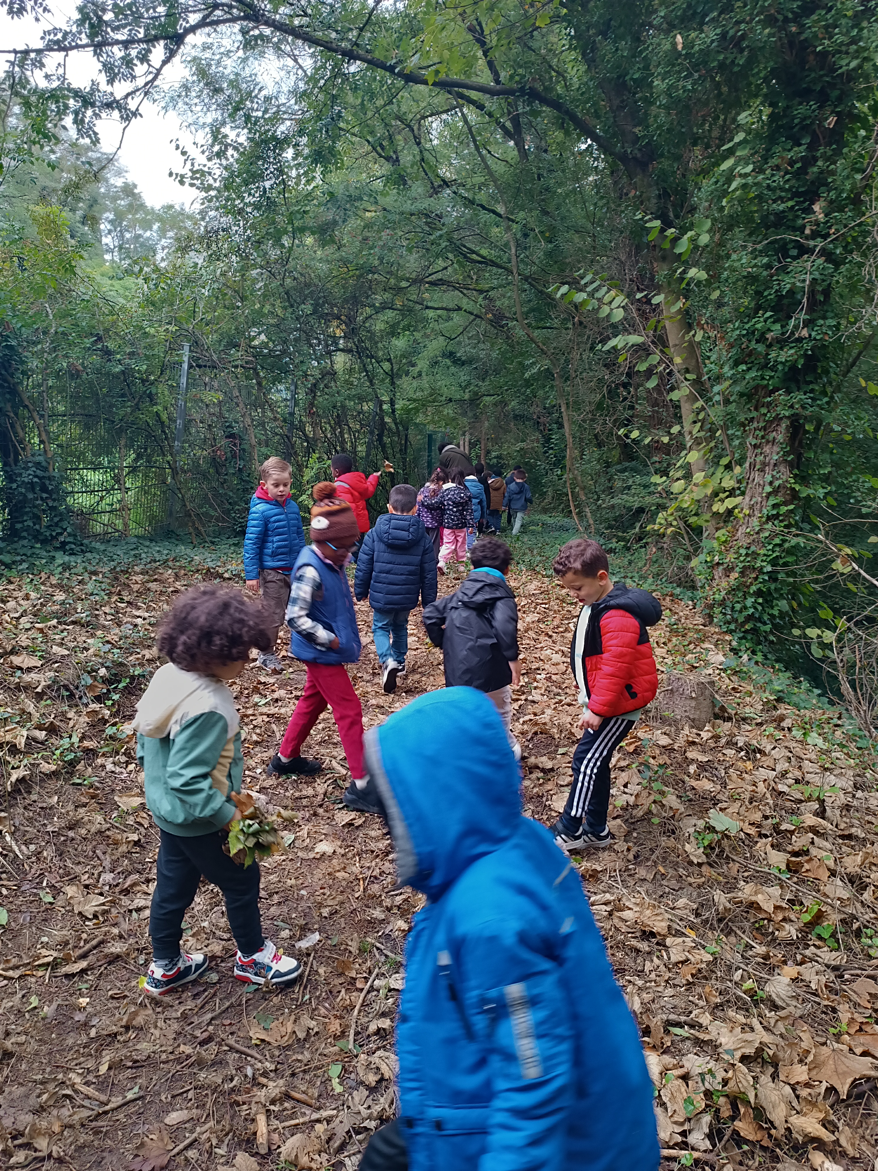 Sortie au talweg pour ramasser des feuilles d'automne, et pas que... Quelques glands, châtaignes, noisettes et bogues...
