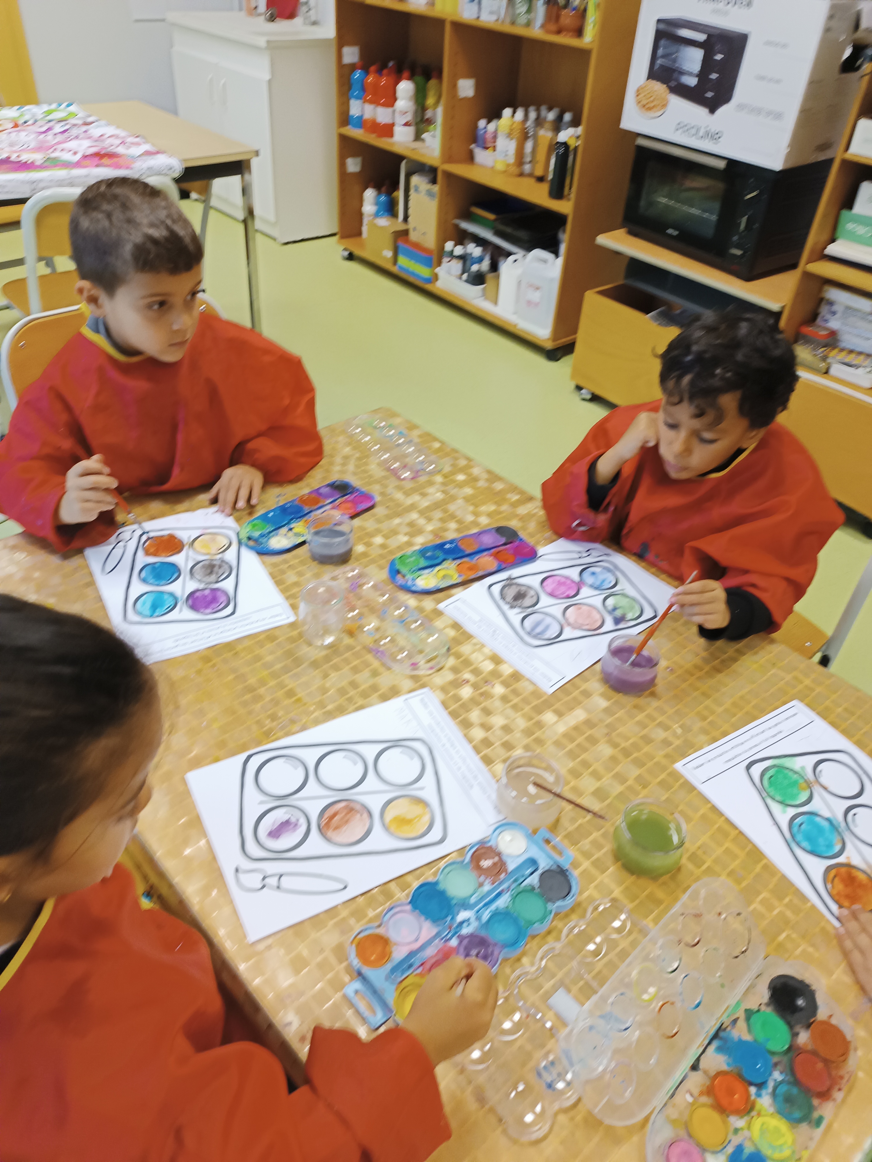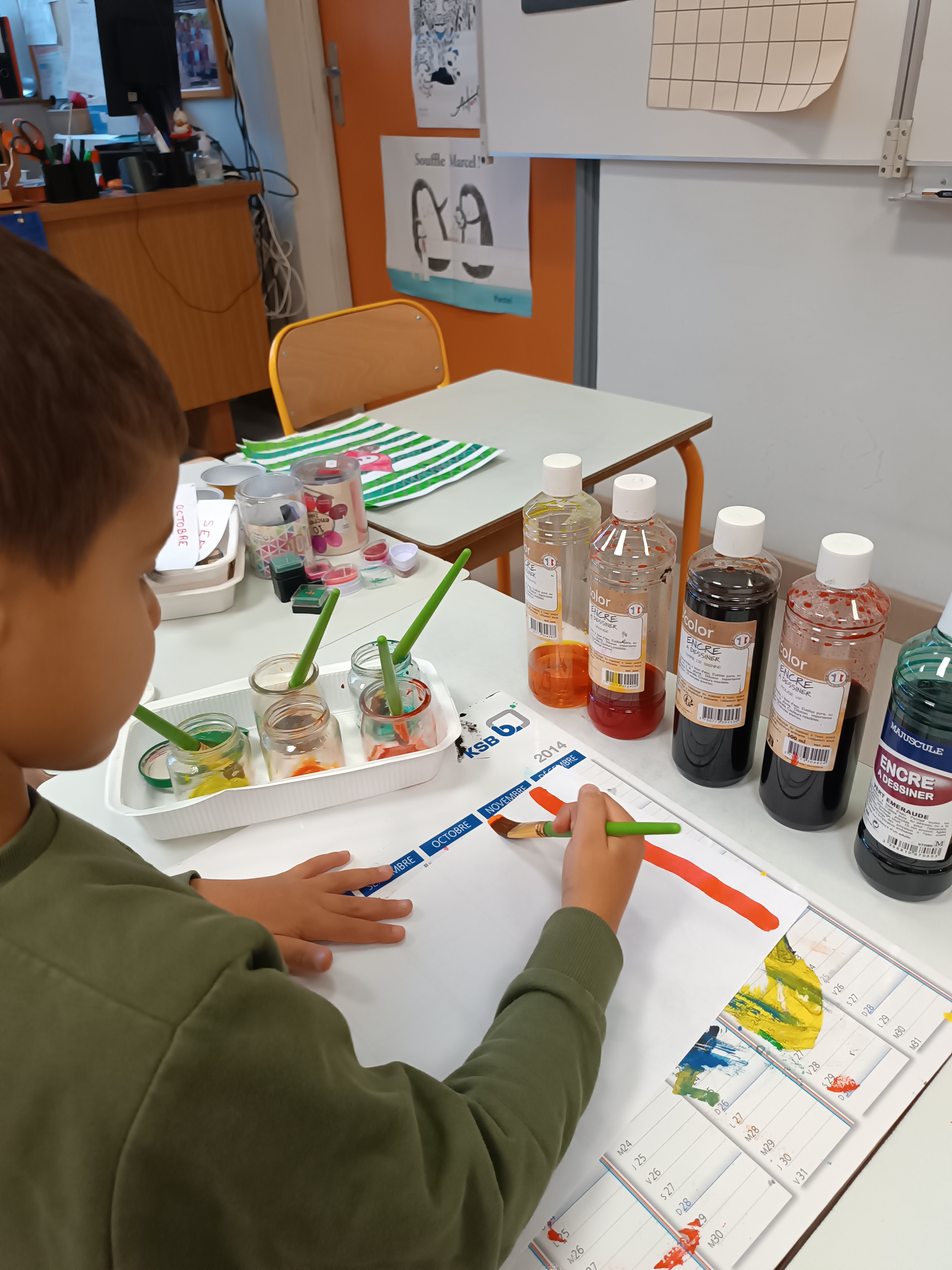 Découverte de la palette de peinture et de l'activité de poinçonnage.