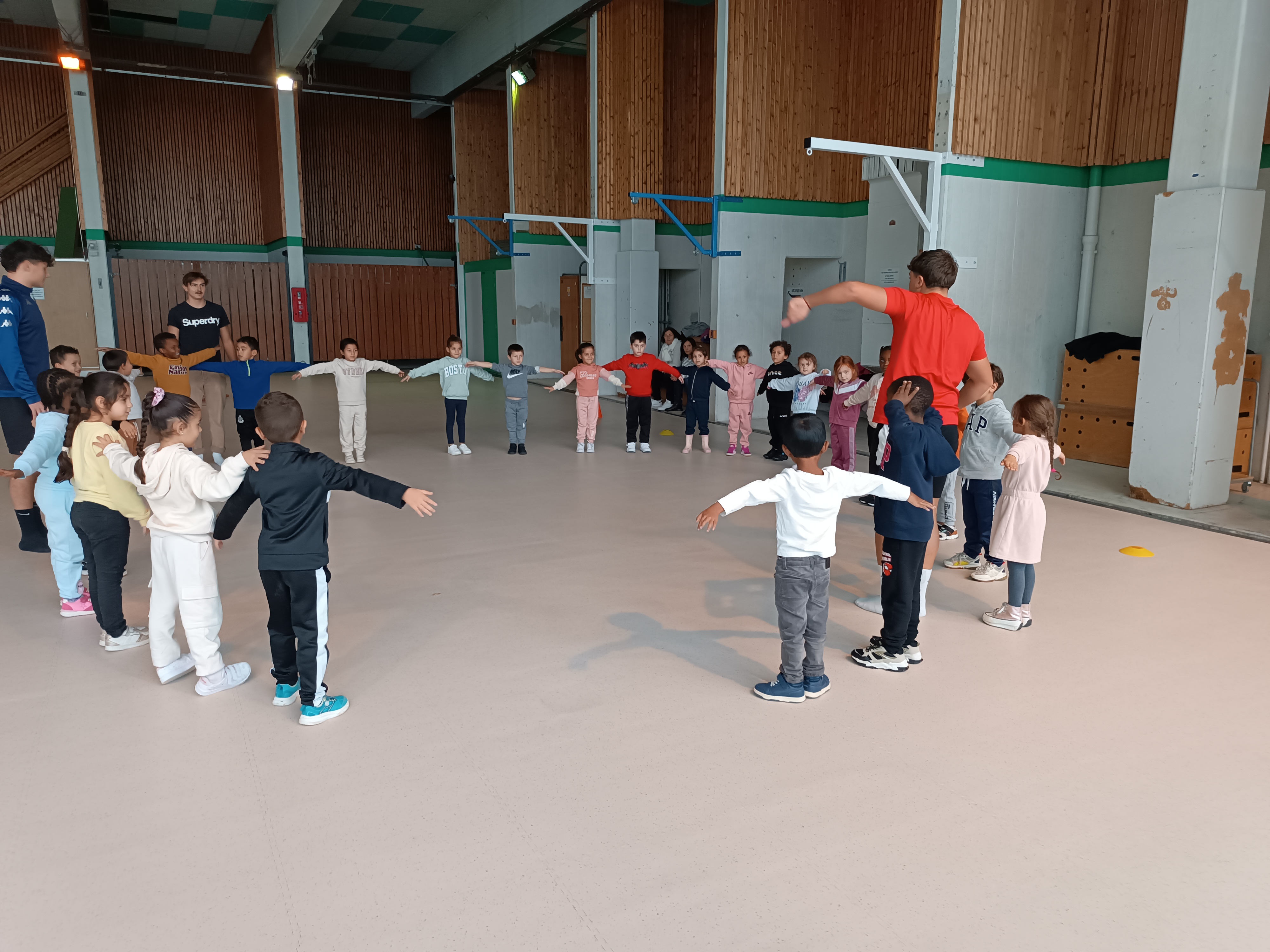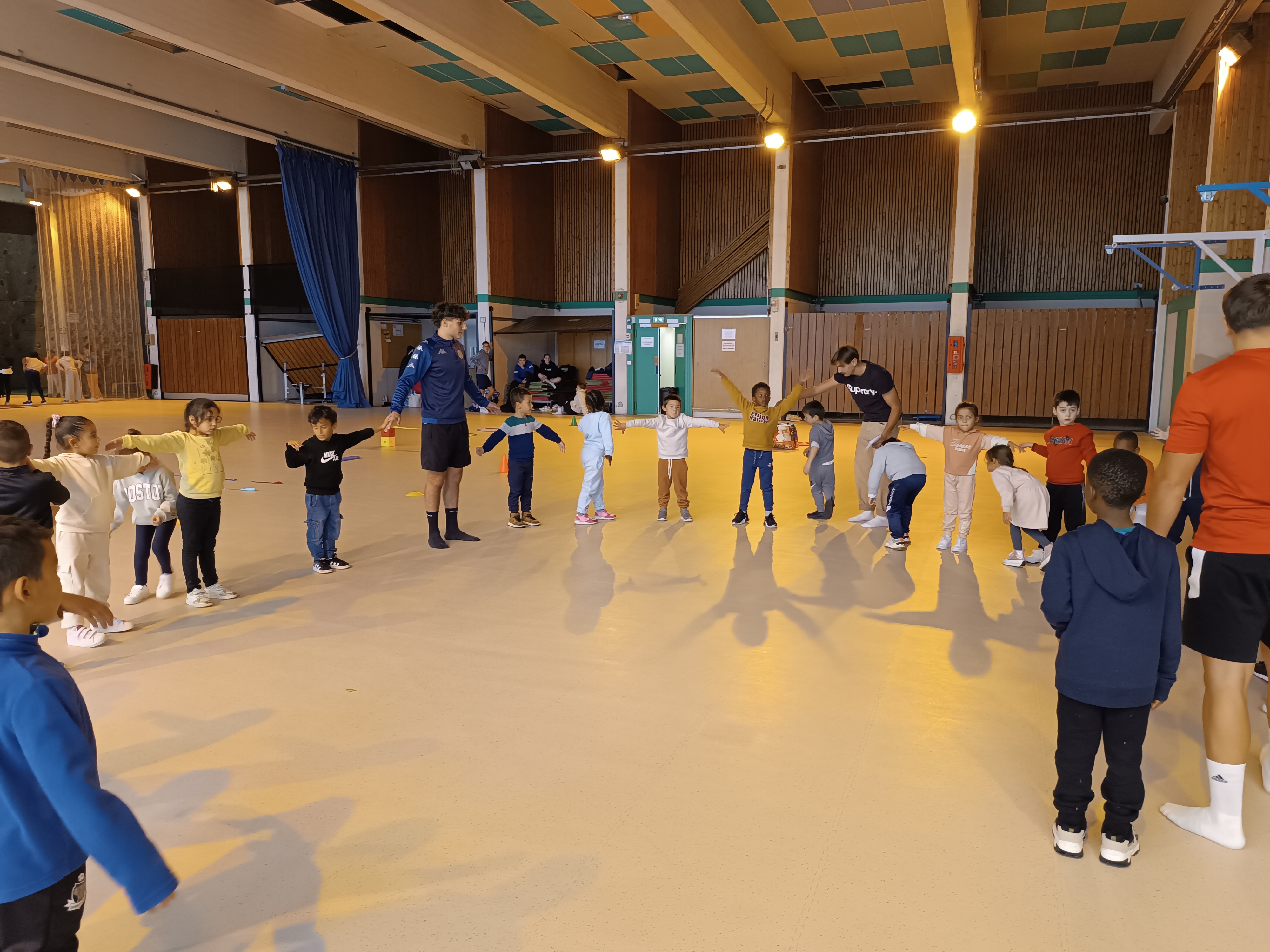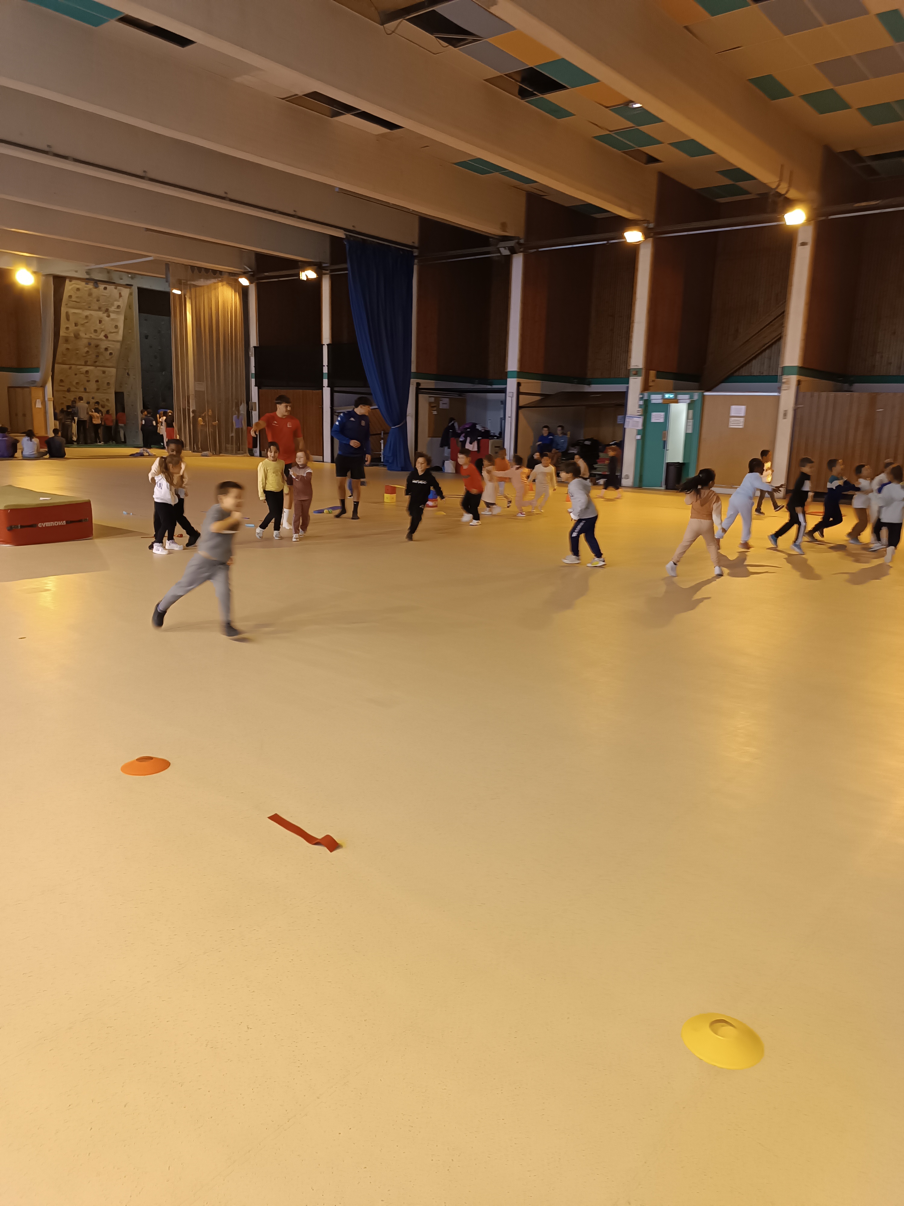 Jeux collectifs au gymnase des combes avec Thomas, Adrien et Émilien, nos 3 étudiants STAPS.