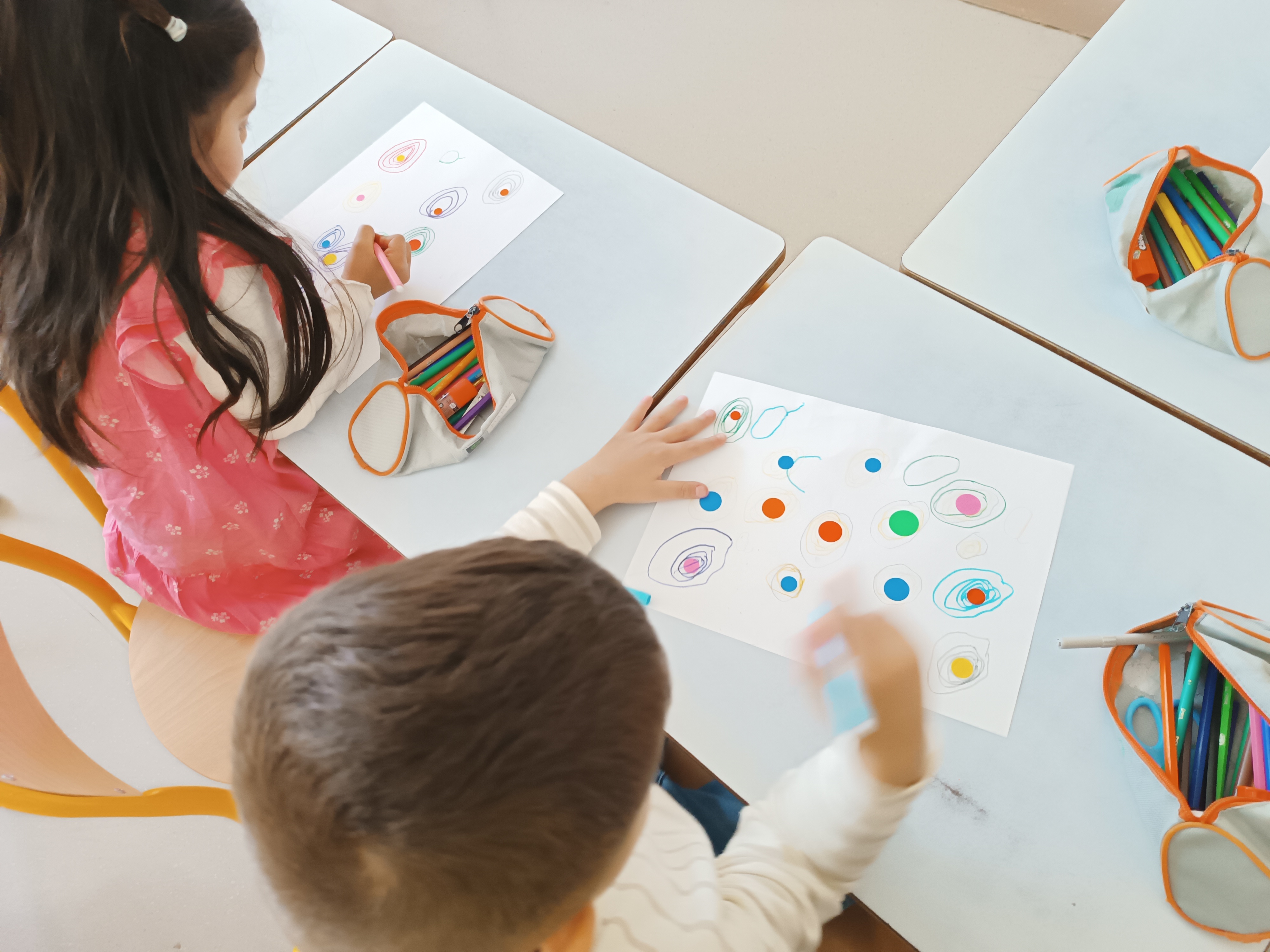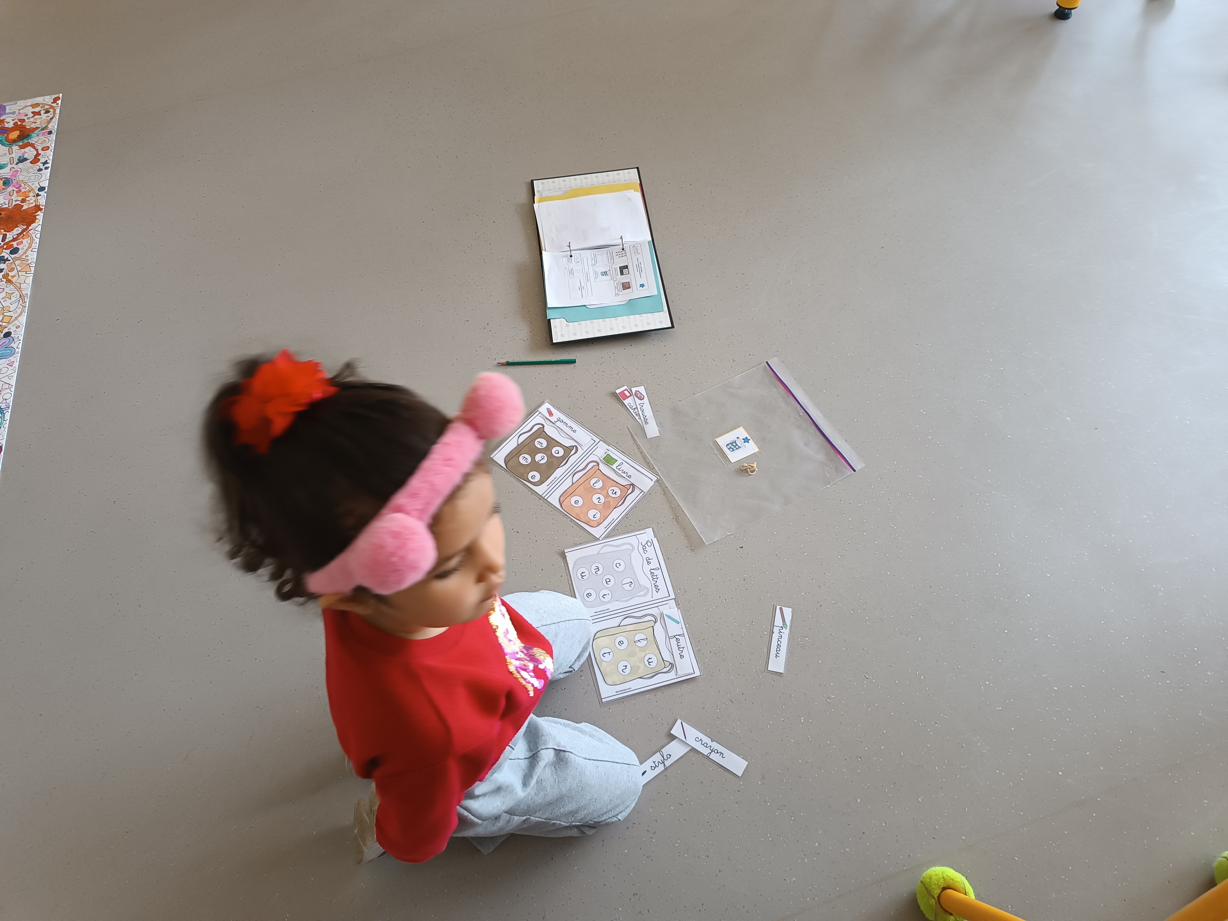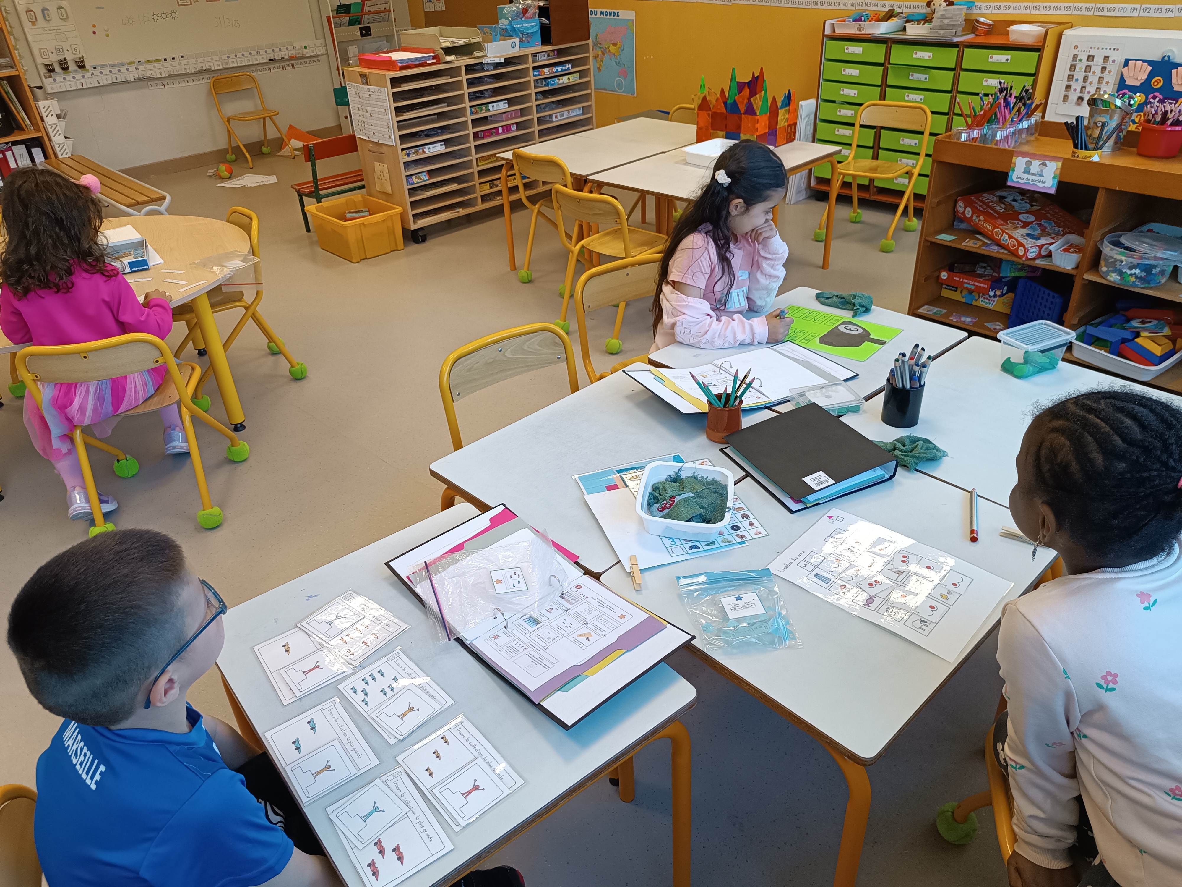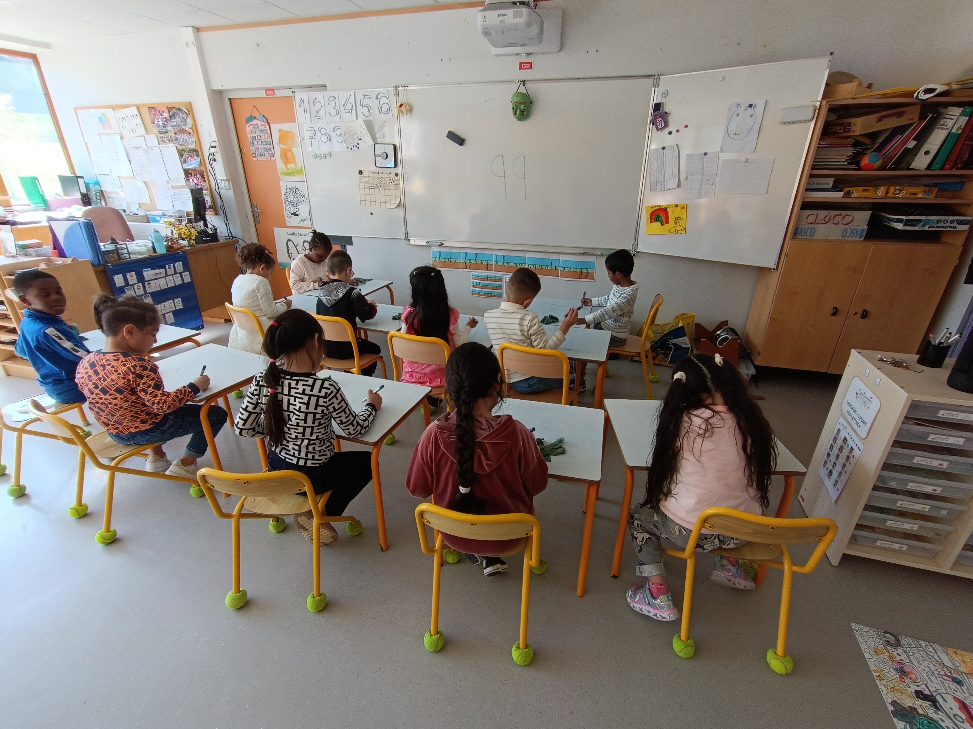 Après avoir révisé le geste du cercle la semaine dernière, nous voici parti dans l'apprentissage des lettres rondes en cursives : c, a, o, d et q. Après un entraînement sur la table, on s'exerce sur le support réalisé la semaine dernière.