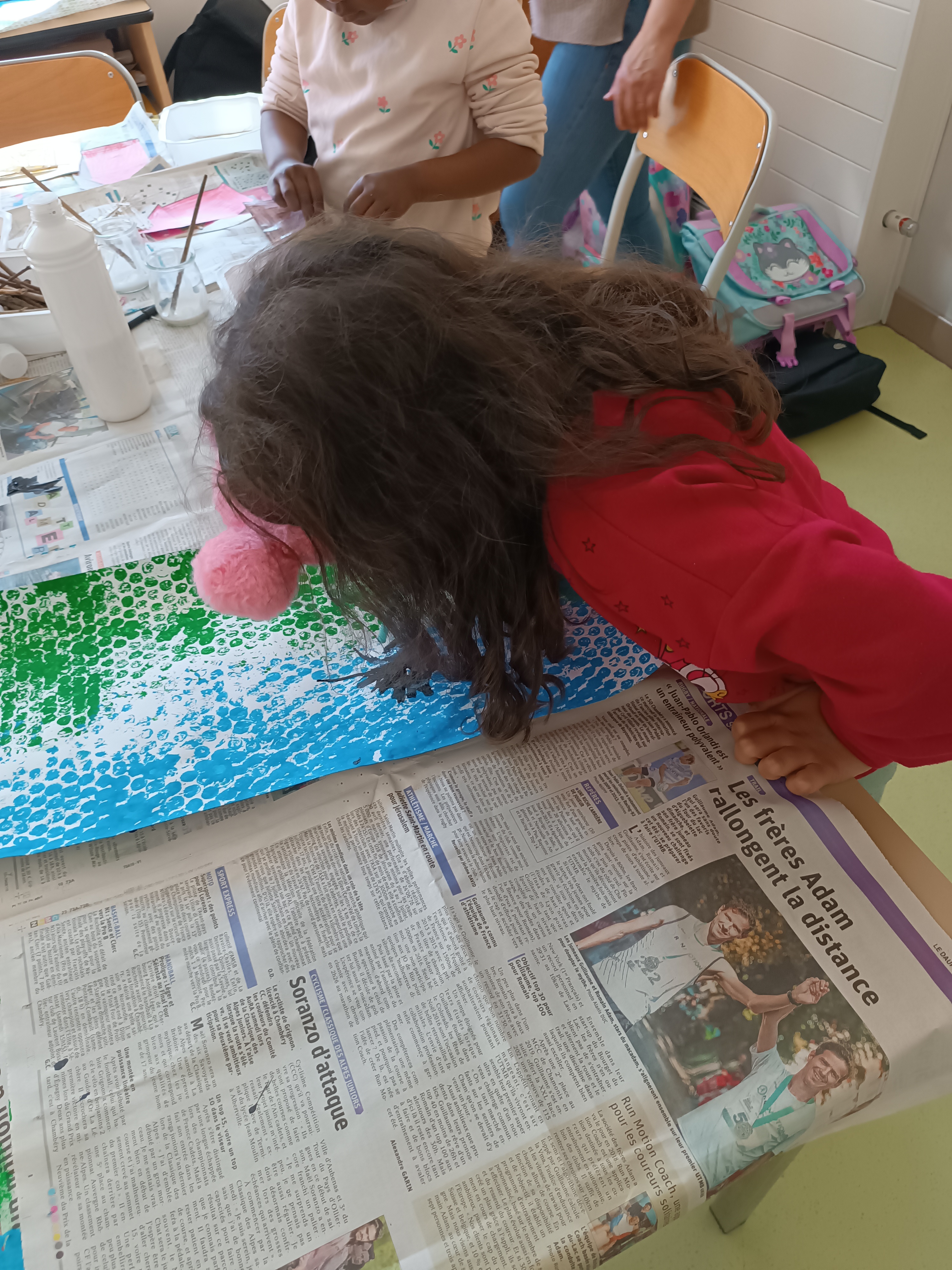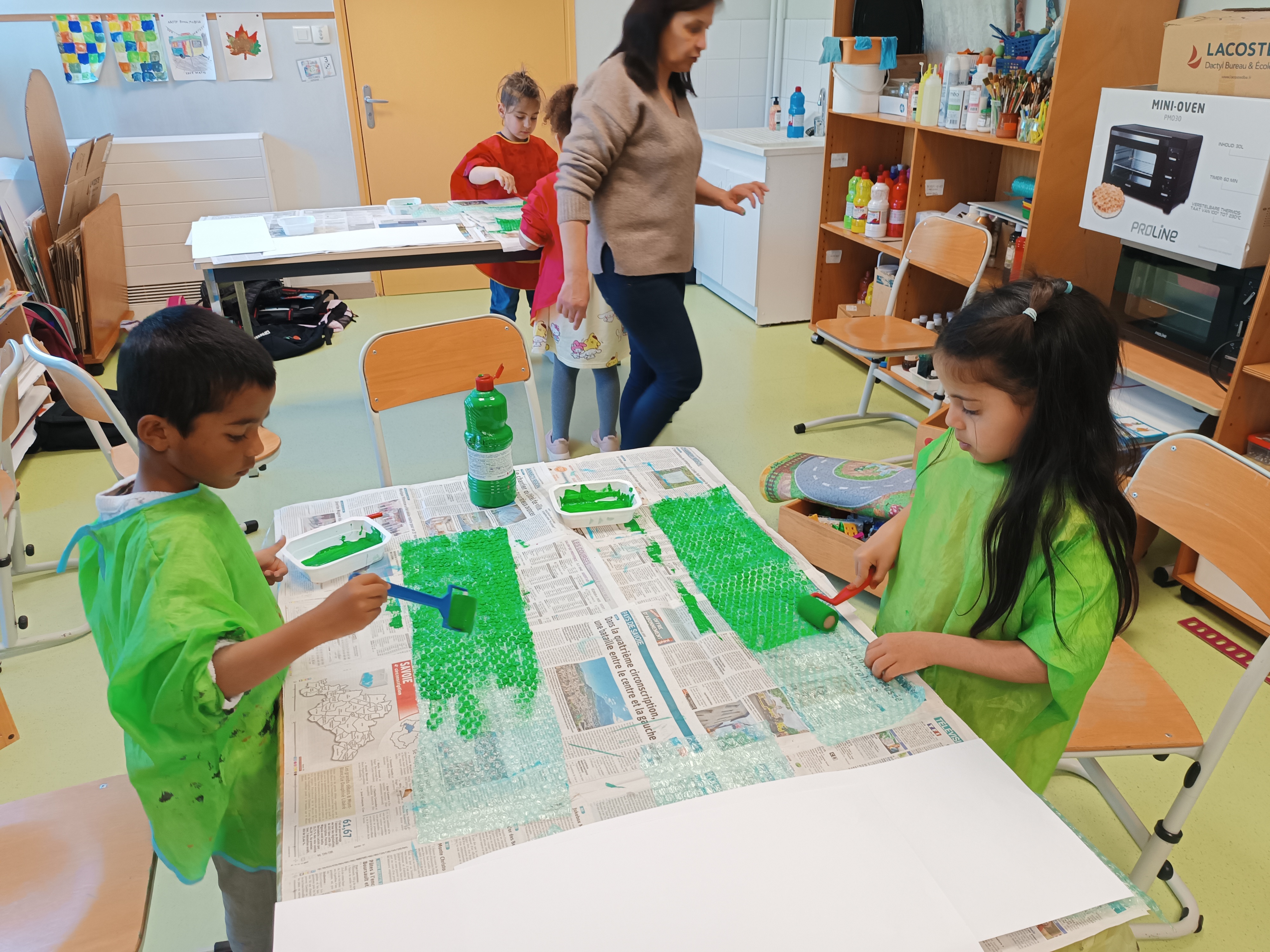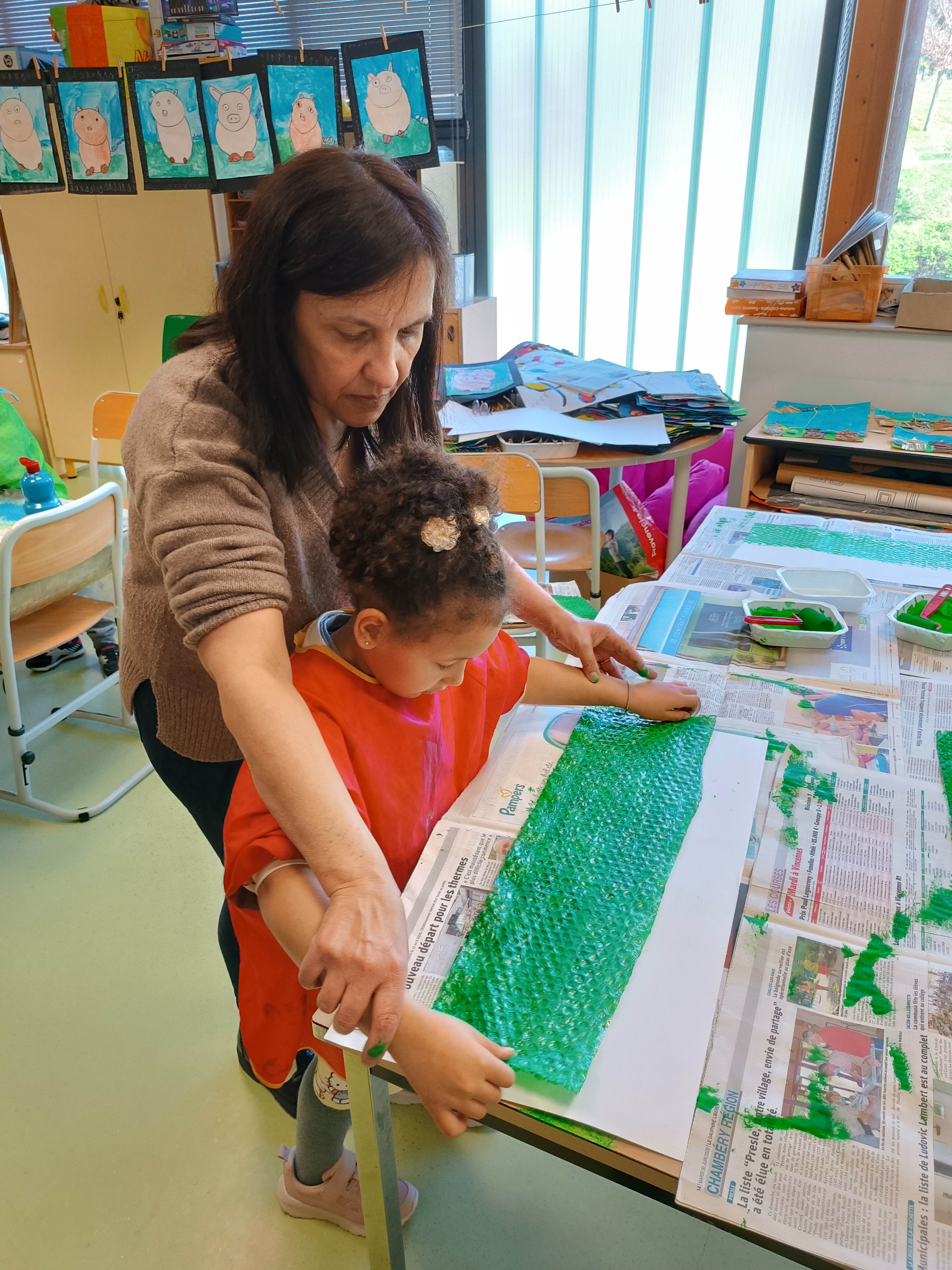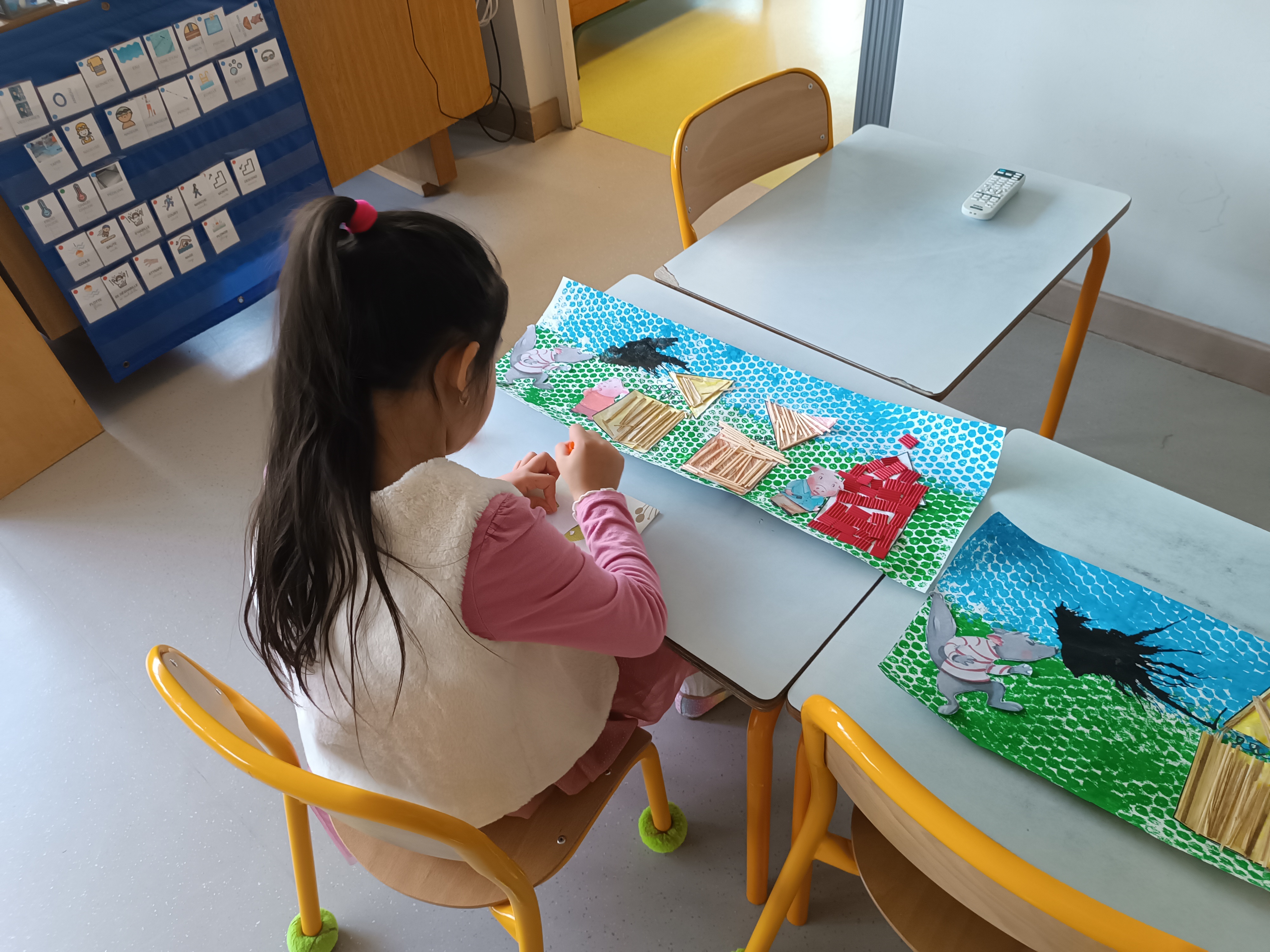 On réalise nos fresques sur les 3 petits cochons pour changer la décoration du couloir 🙂