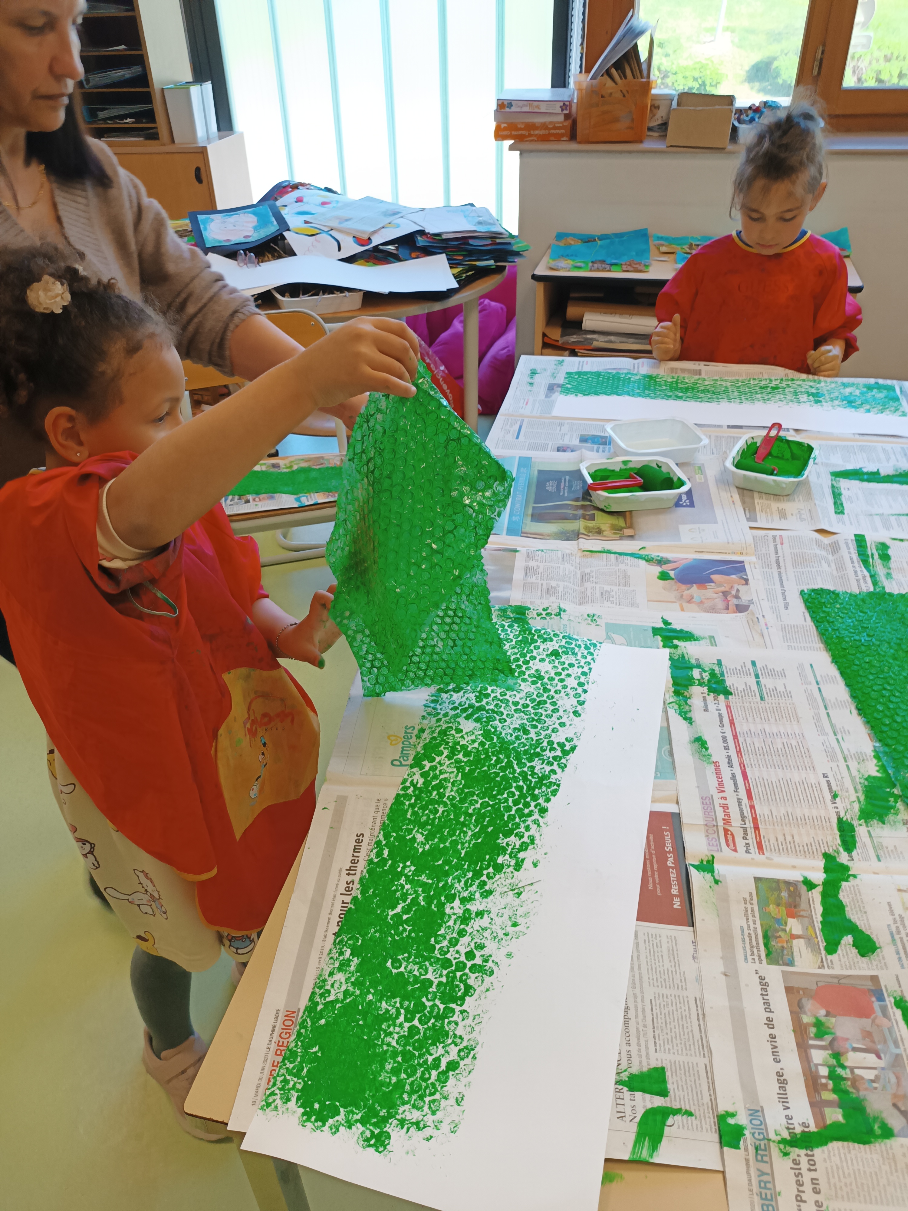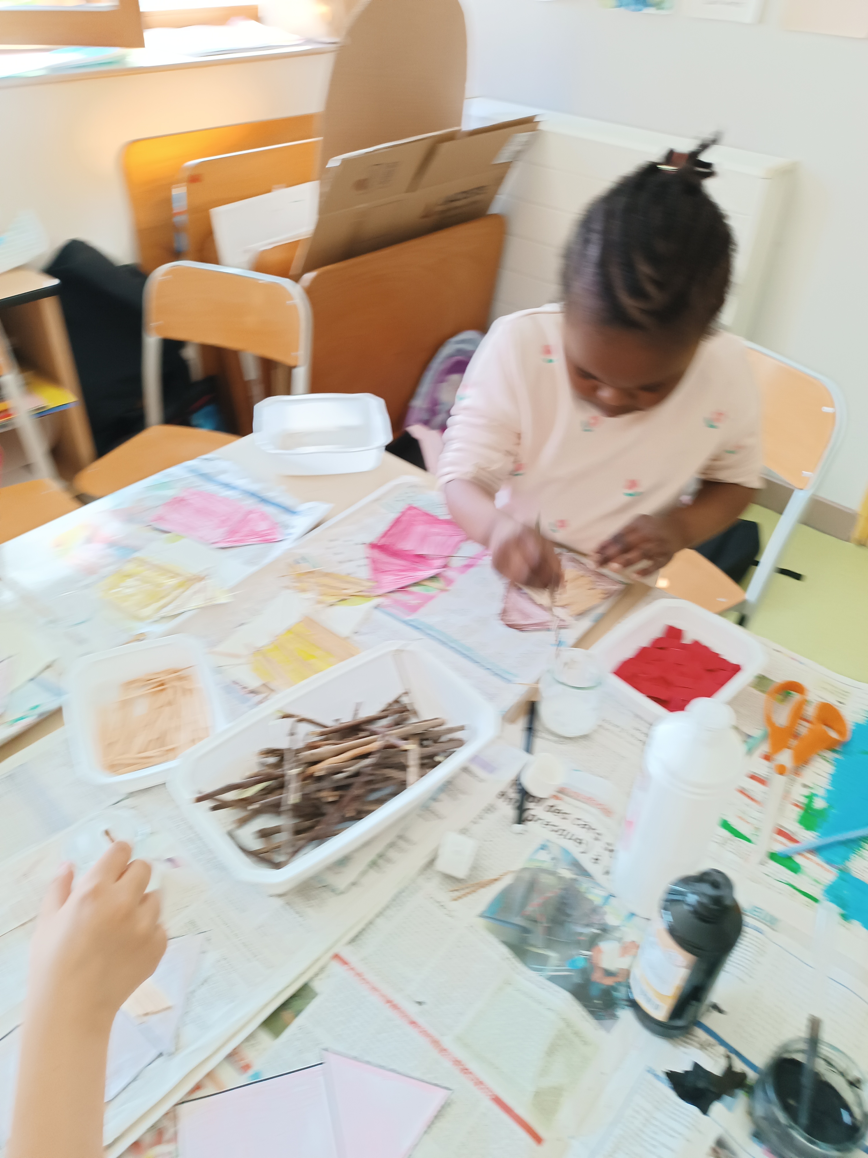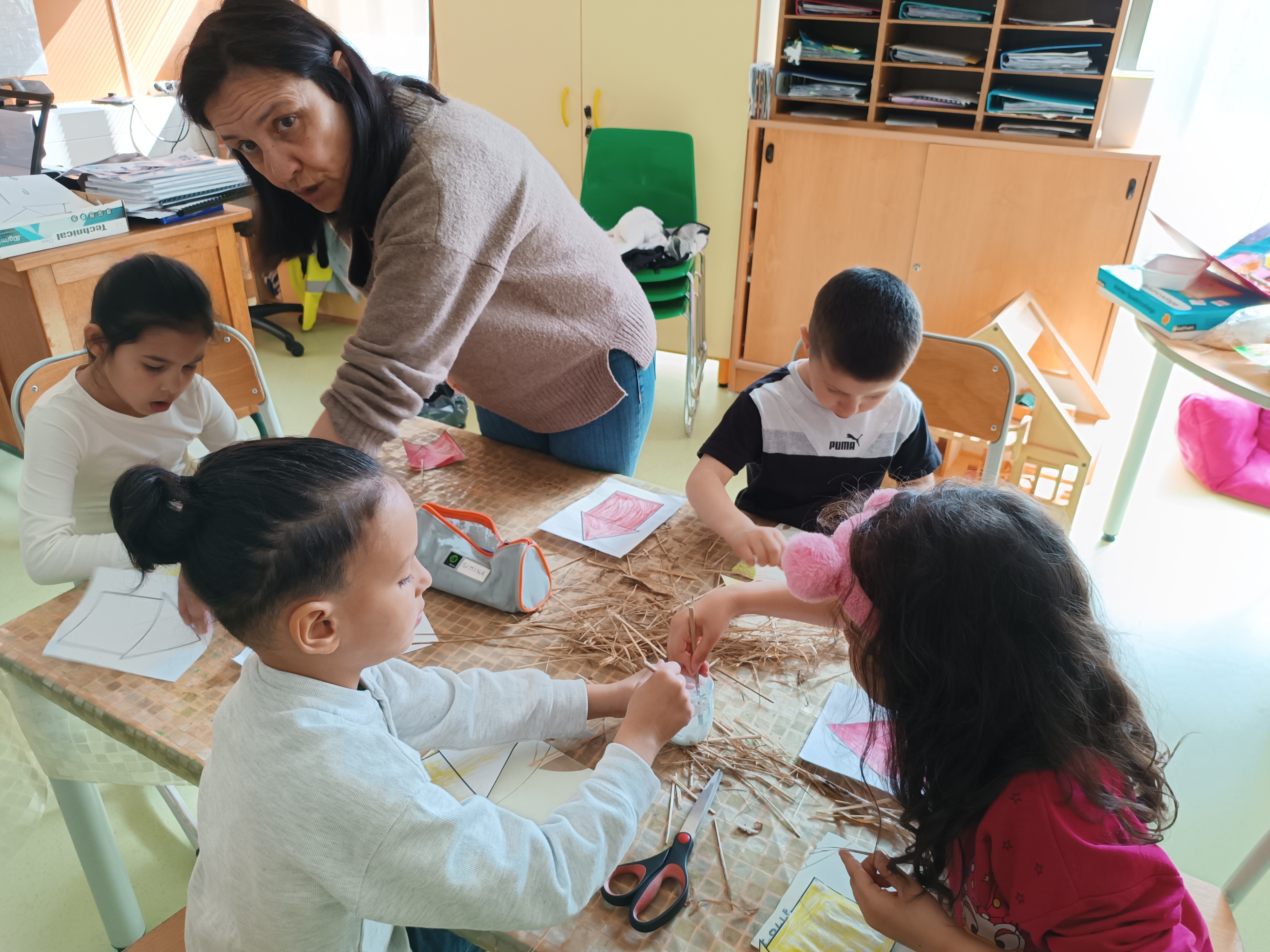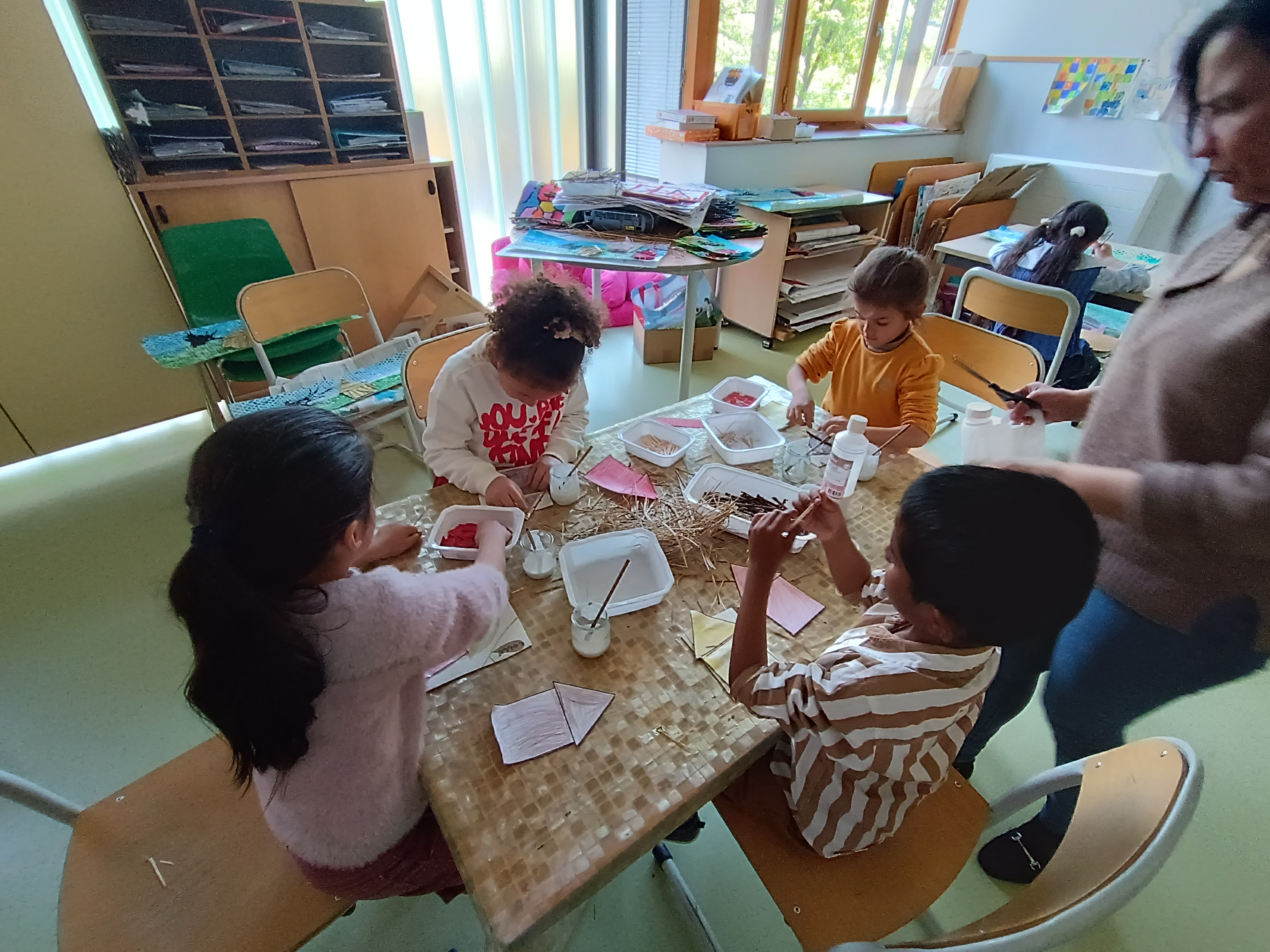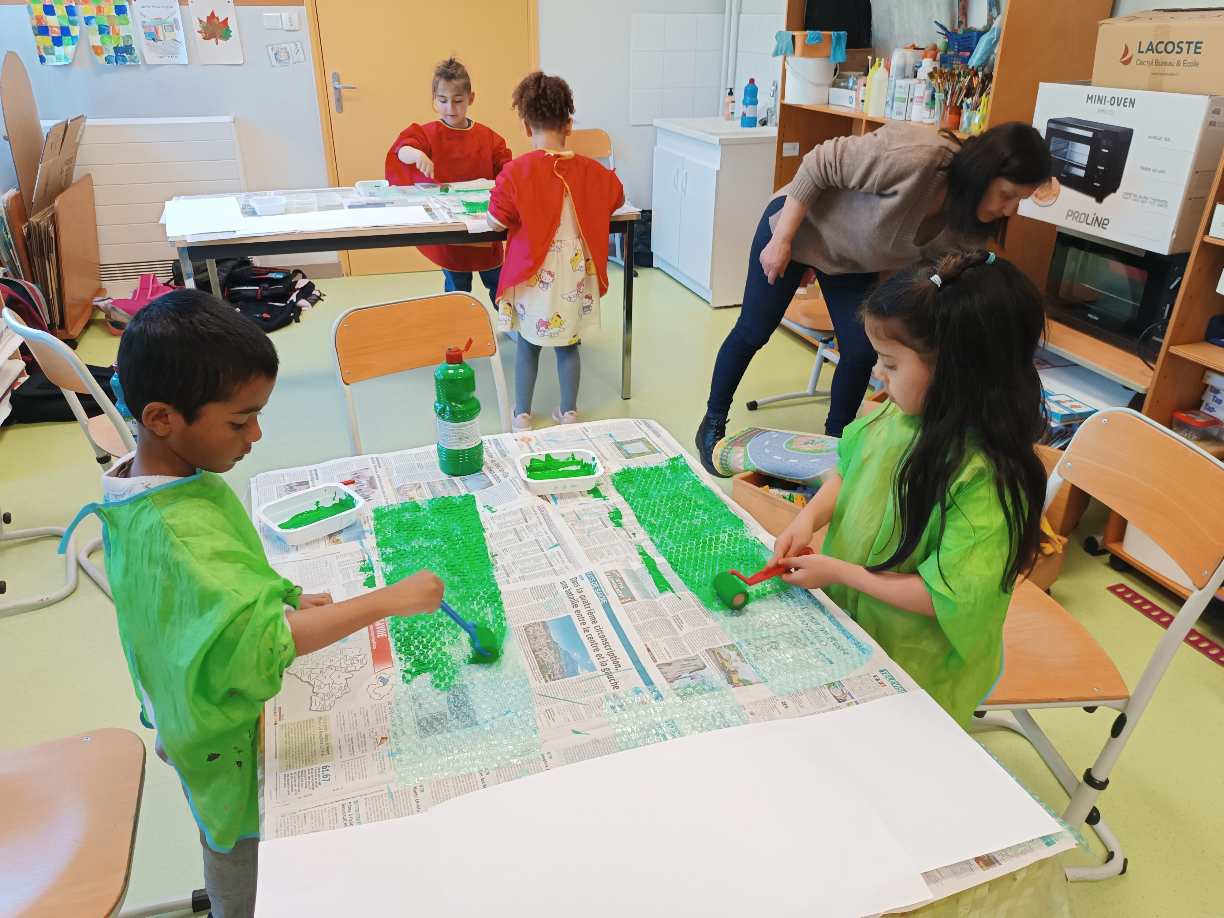 On réalise nos fresques sur les 3 petits cochons pour changer la décoration du couloir 🙂