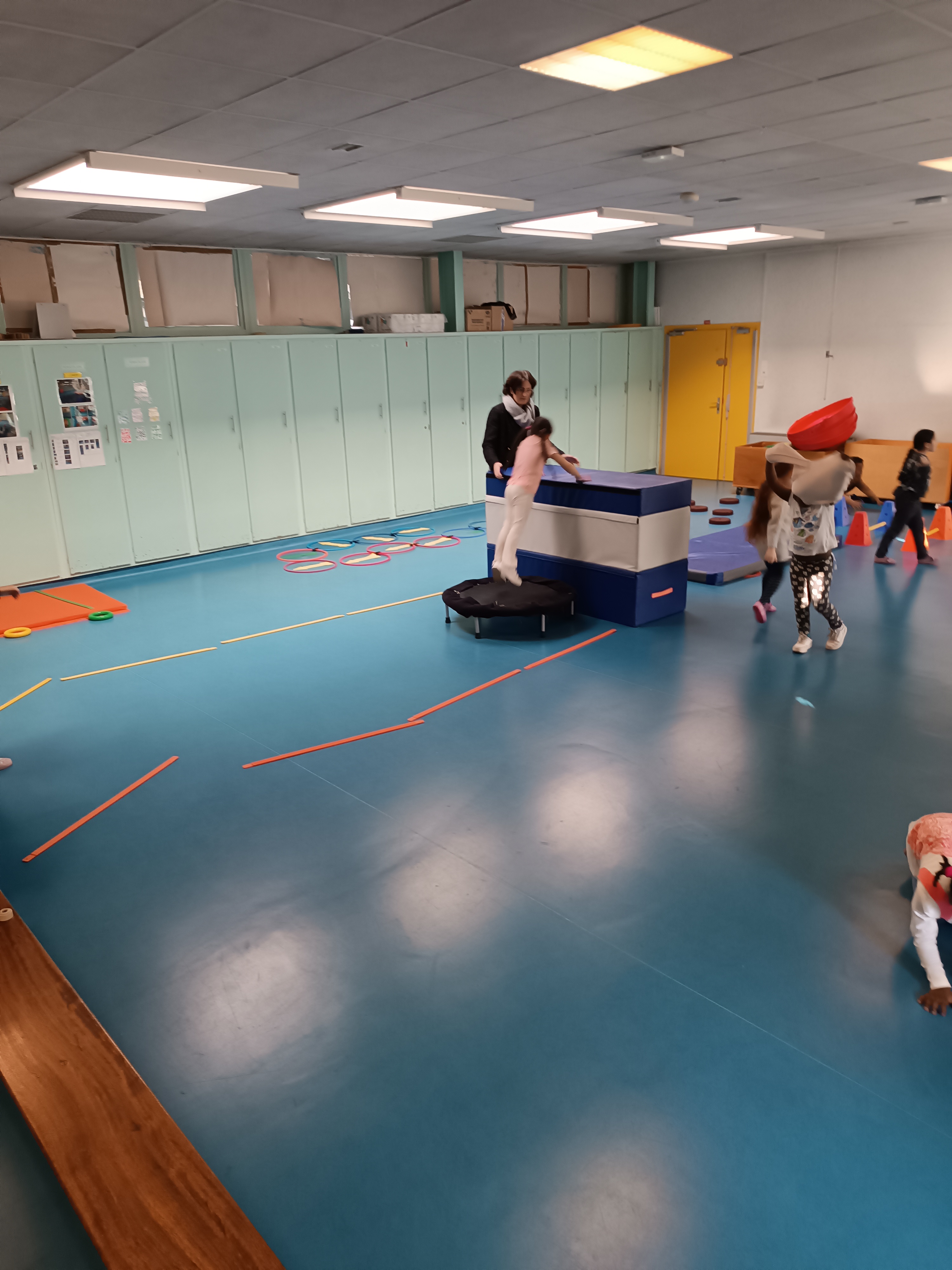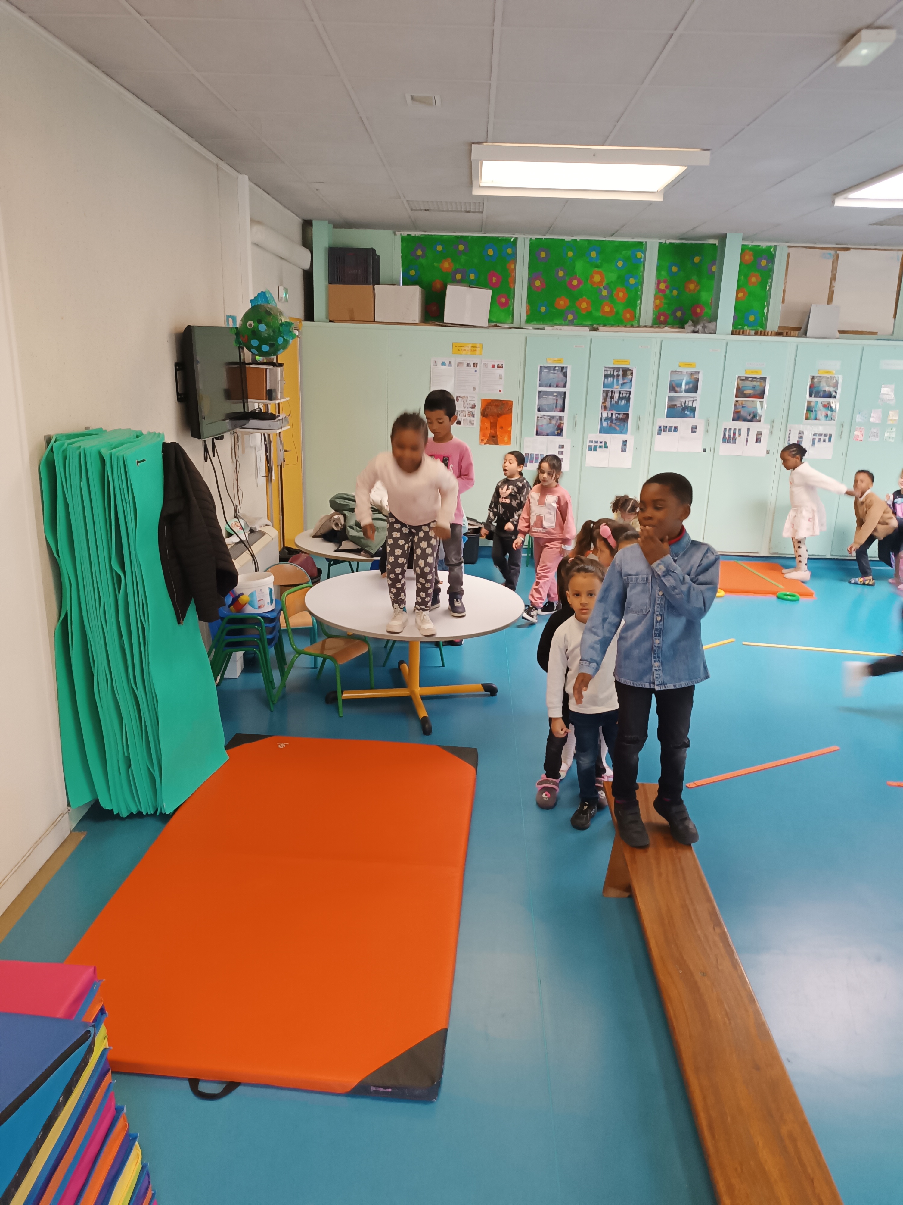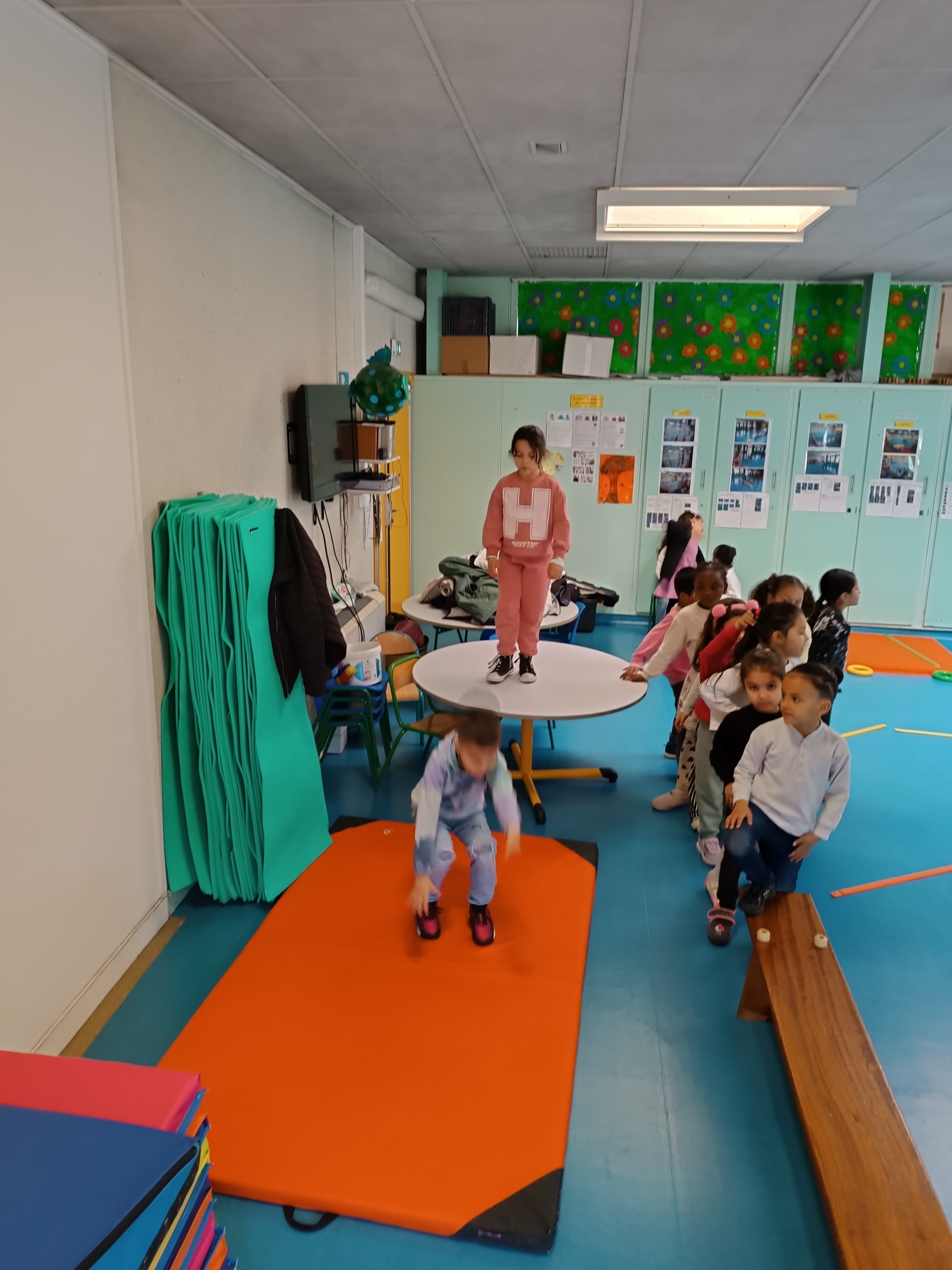 Parcours de motricité à la maternelle des Combes. Sauter c'est toujours notre activité.