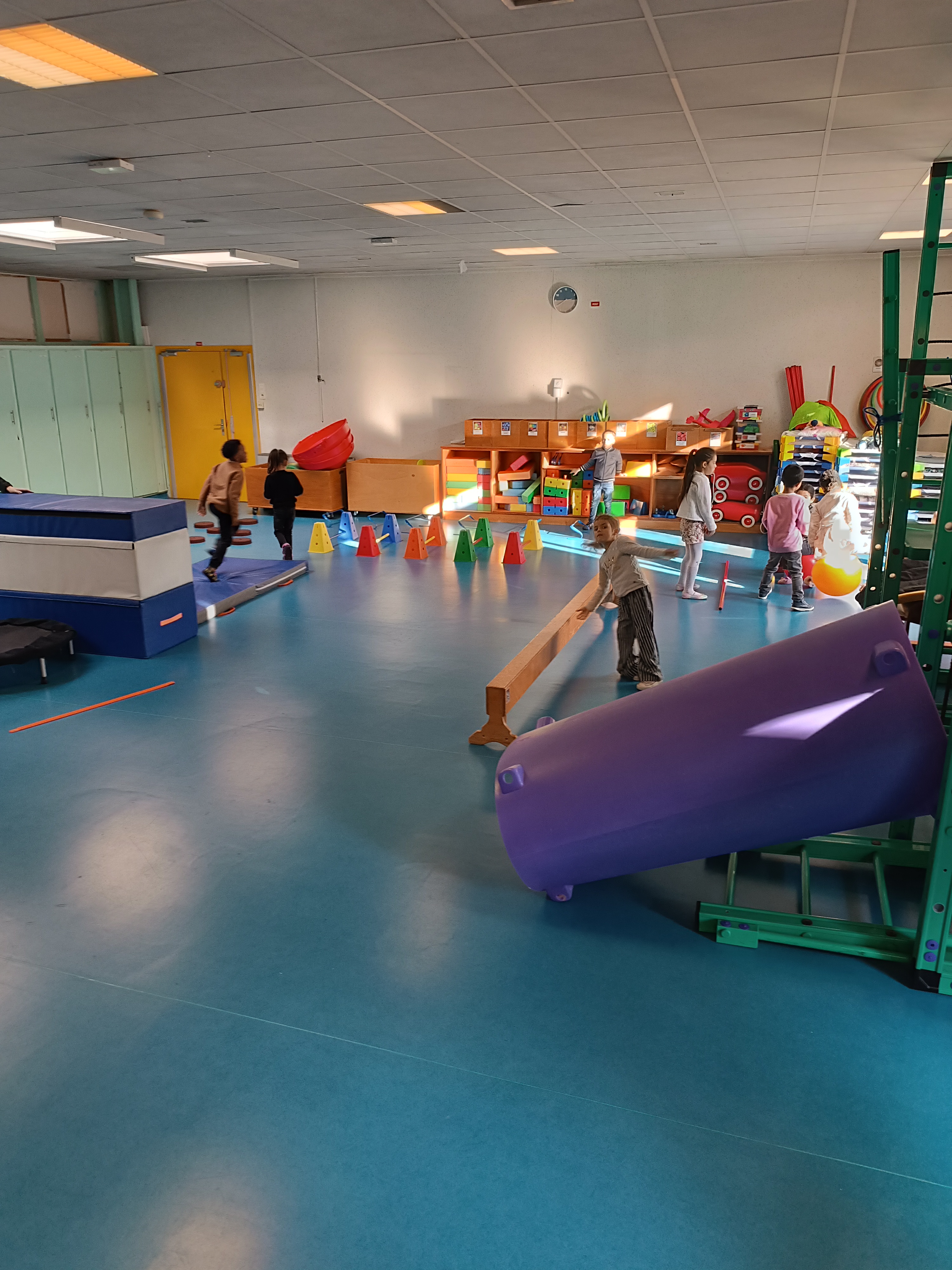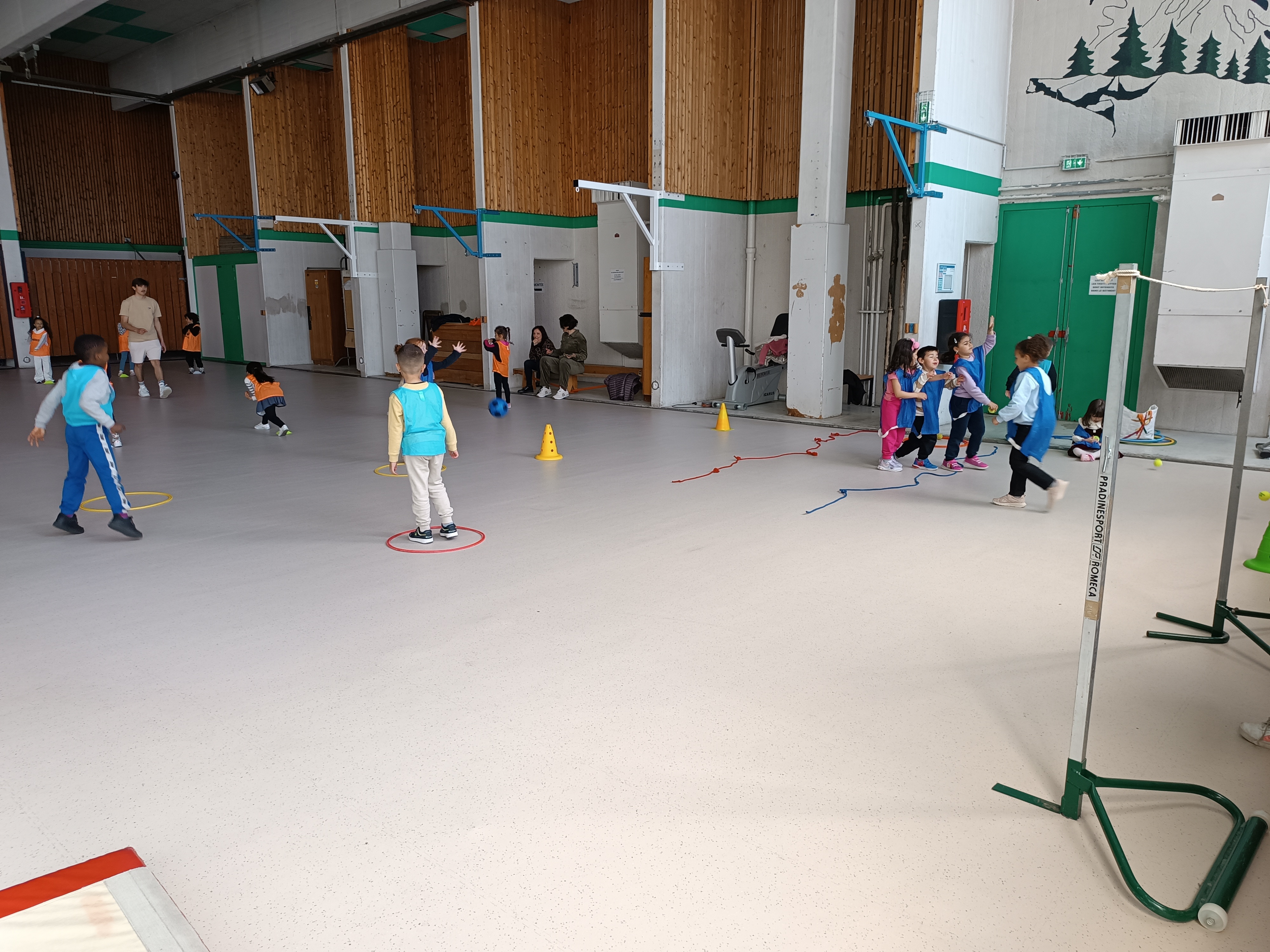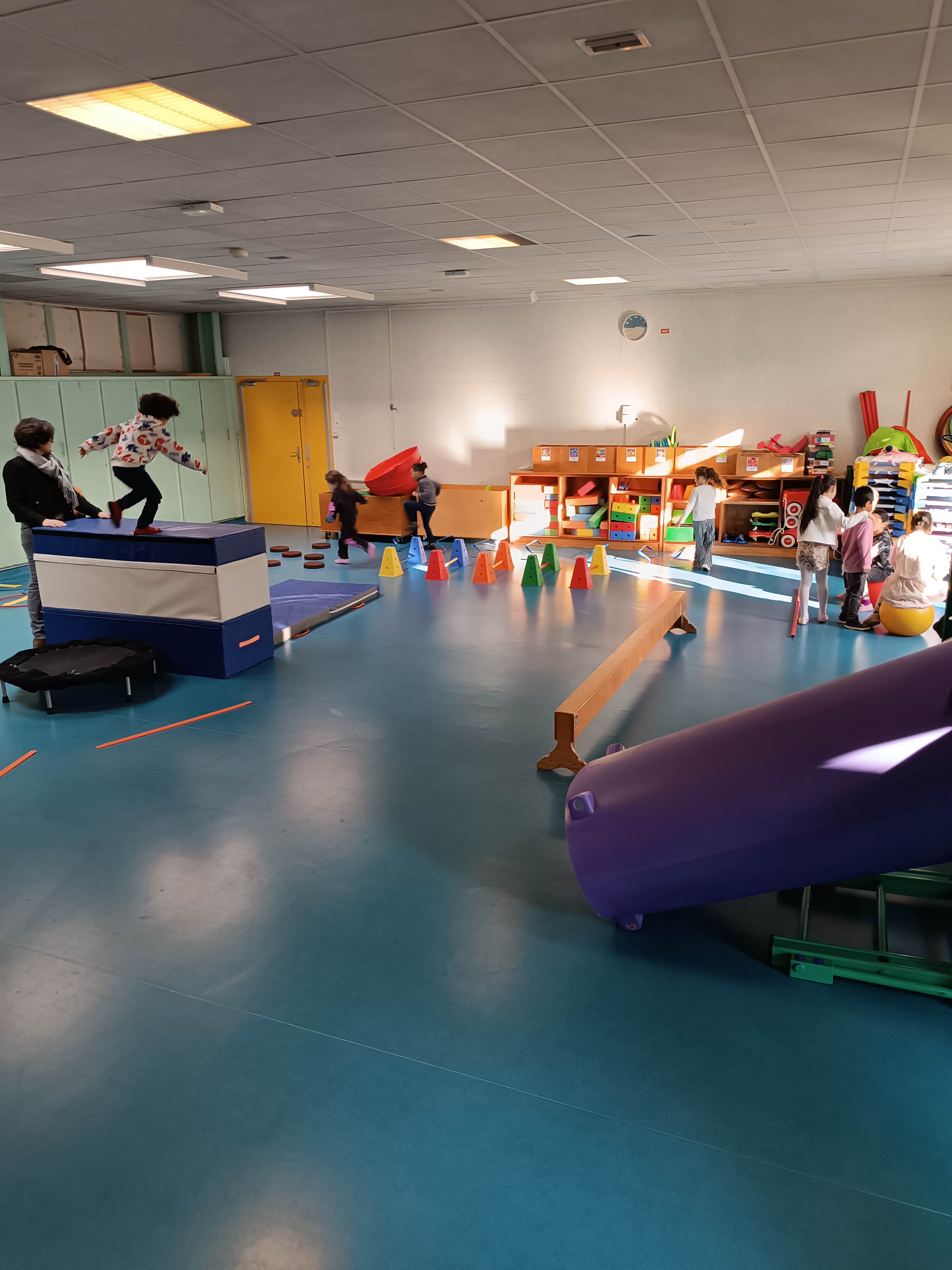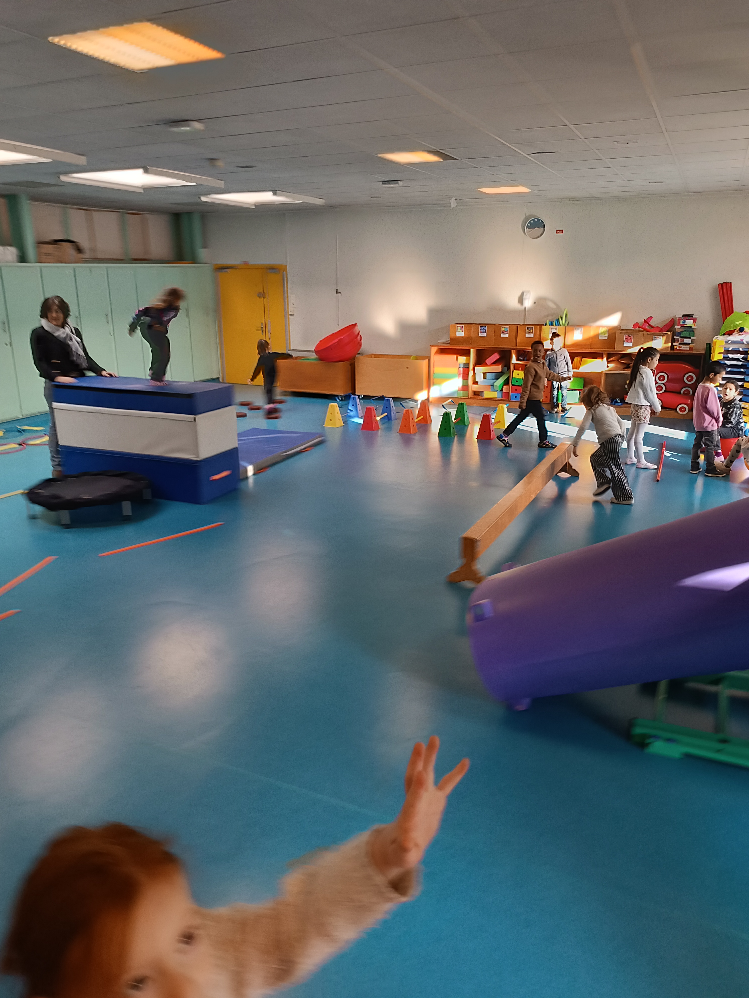 Parcours de motricité à la maternelle des Combes. Sauter c'est toujours notre activité.