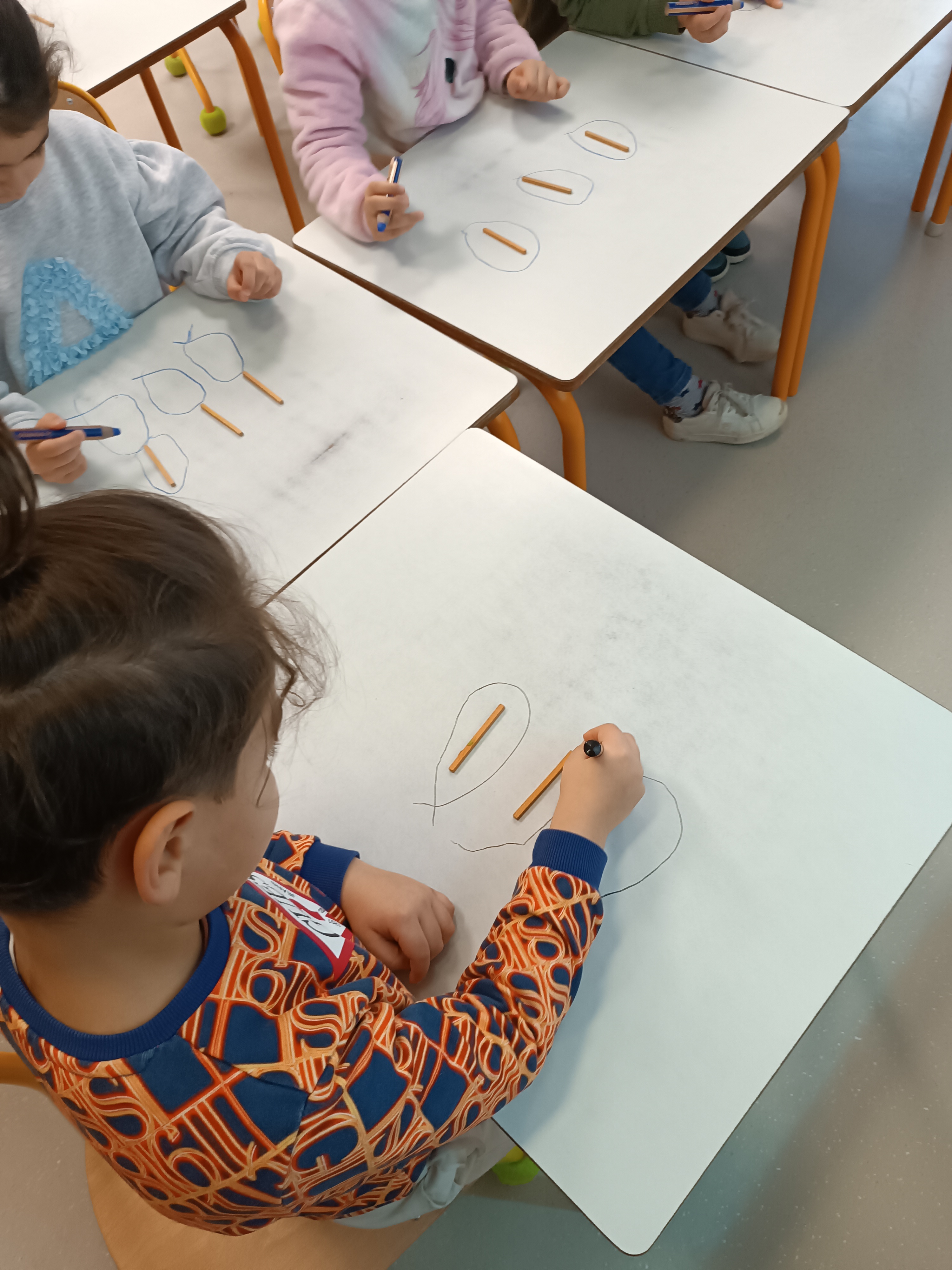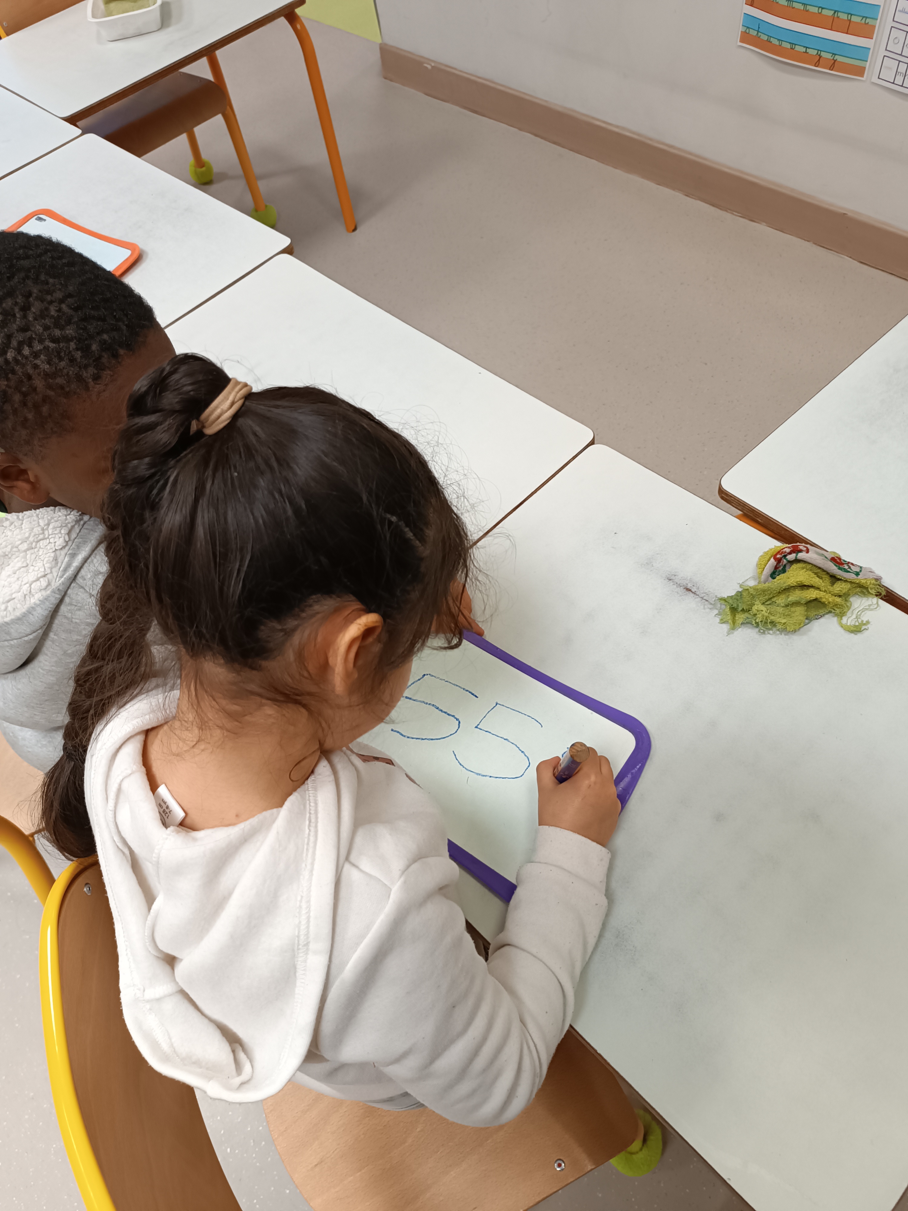 Nous apprenons à écrire les derniers chiffres : le 5, le 8 et le 9.
