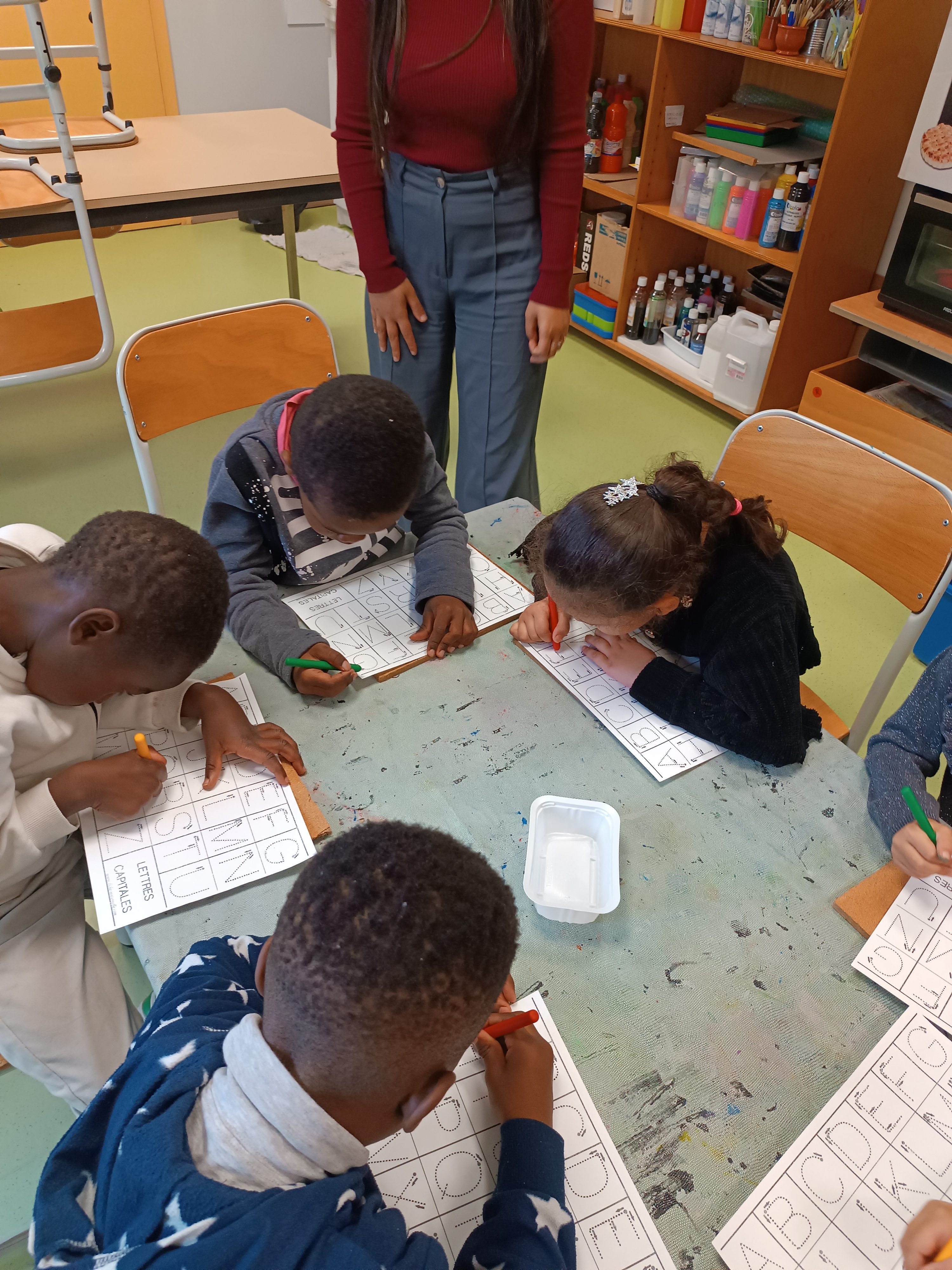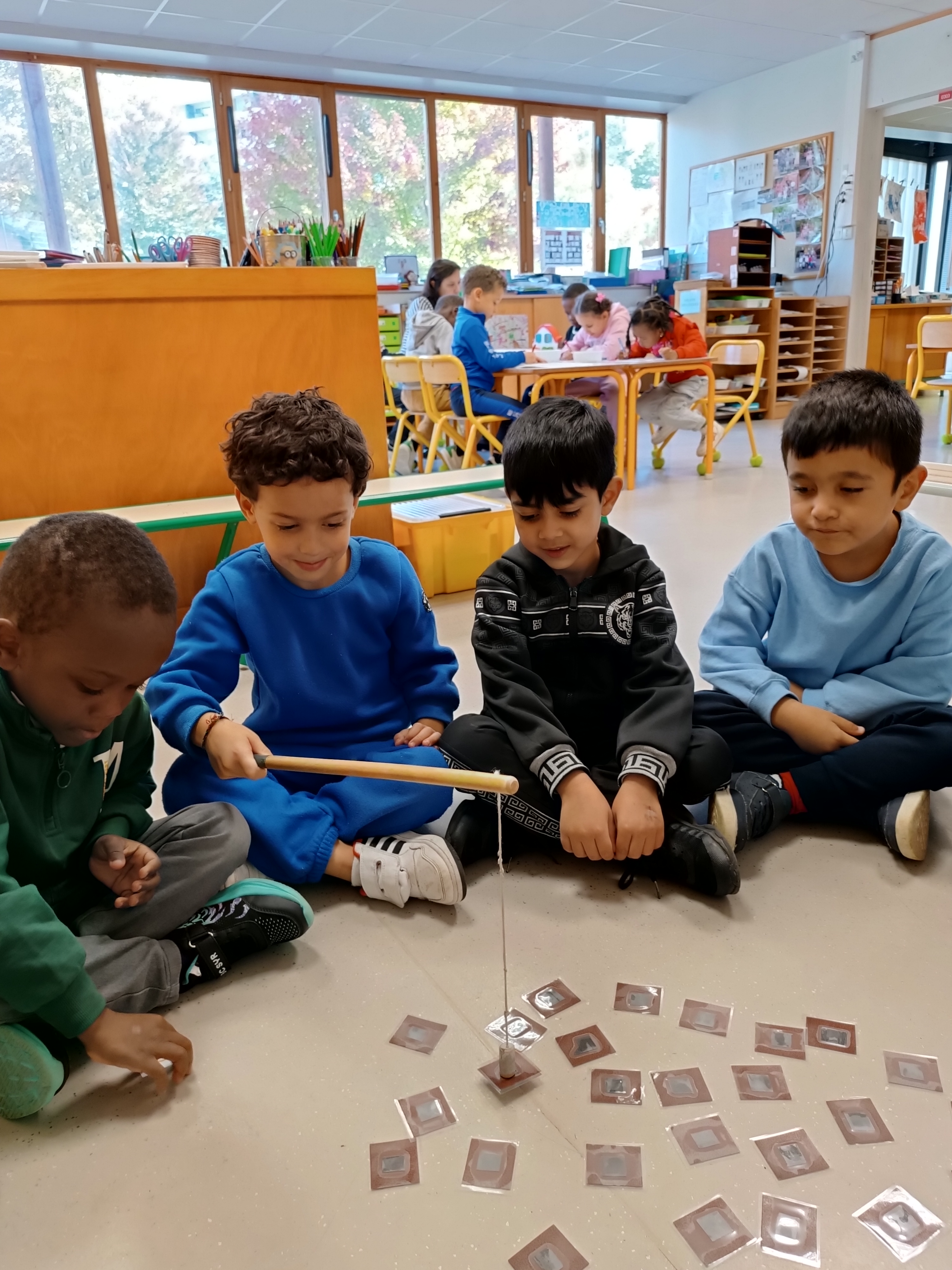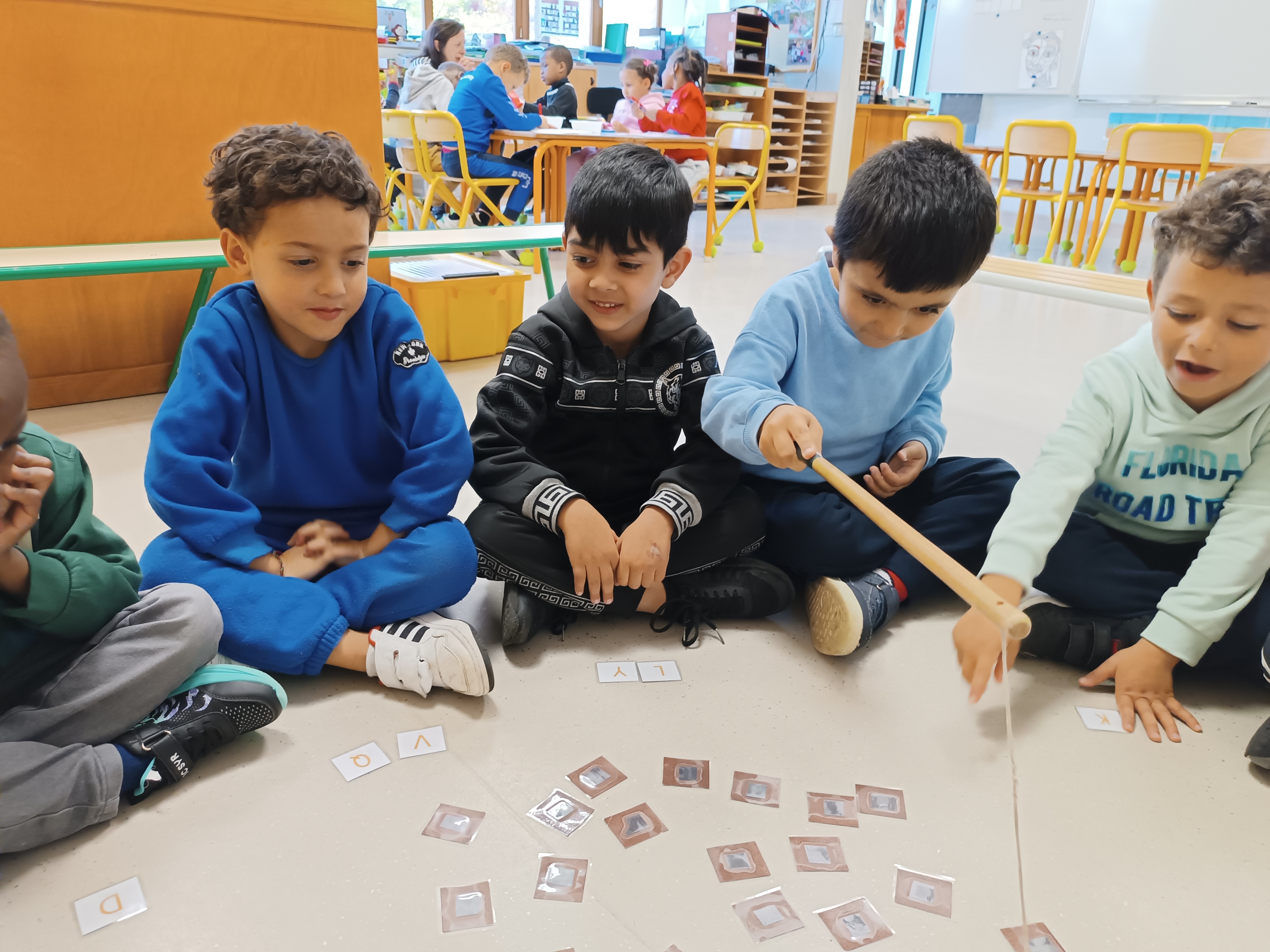Jeu simple qui a beaucoup plu : chacun leur tour, les enfants pêchent une lettre. S'ils connaissent le nom, ils gardent la carte, sinon ils la repose.