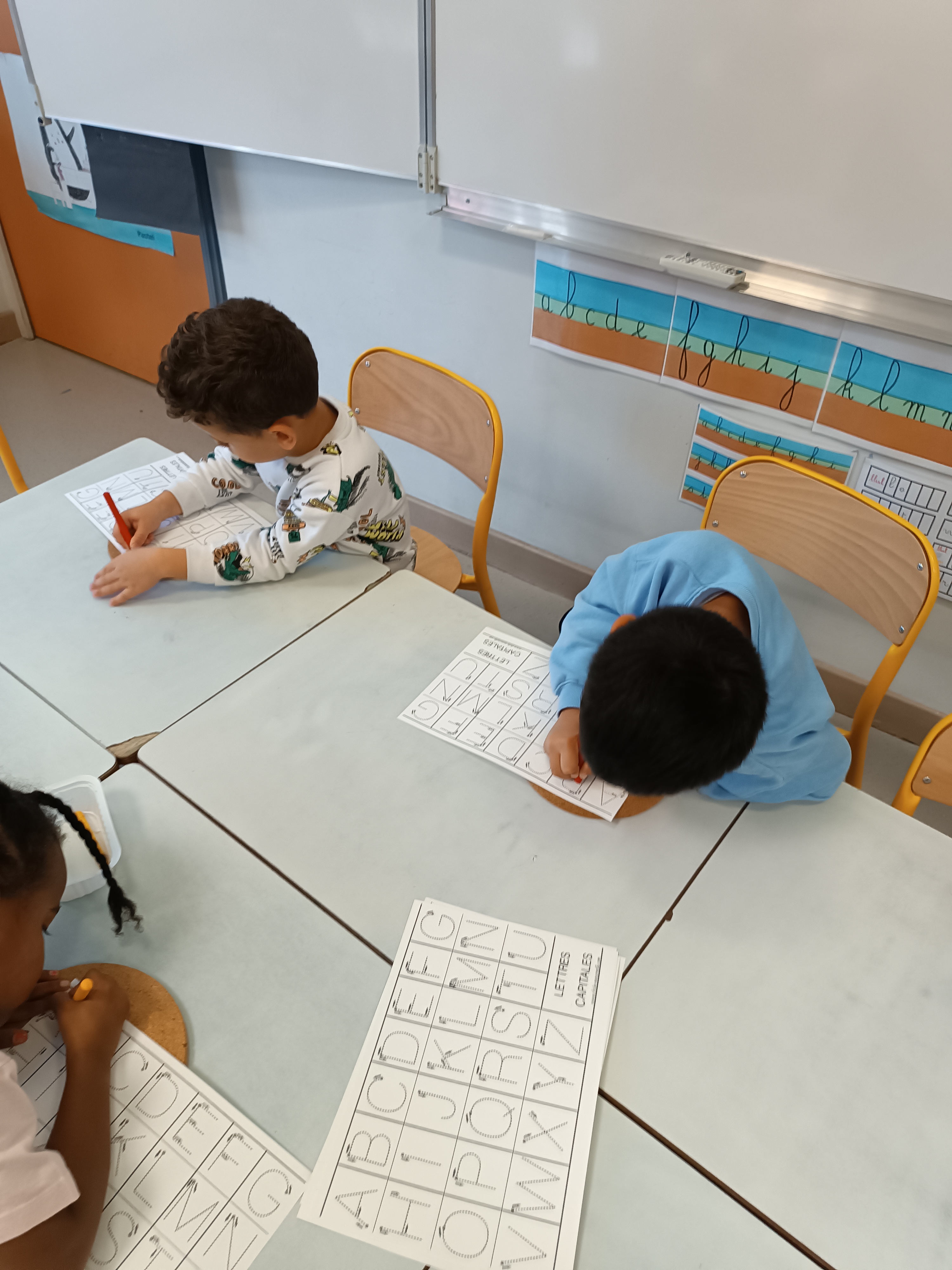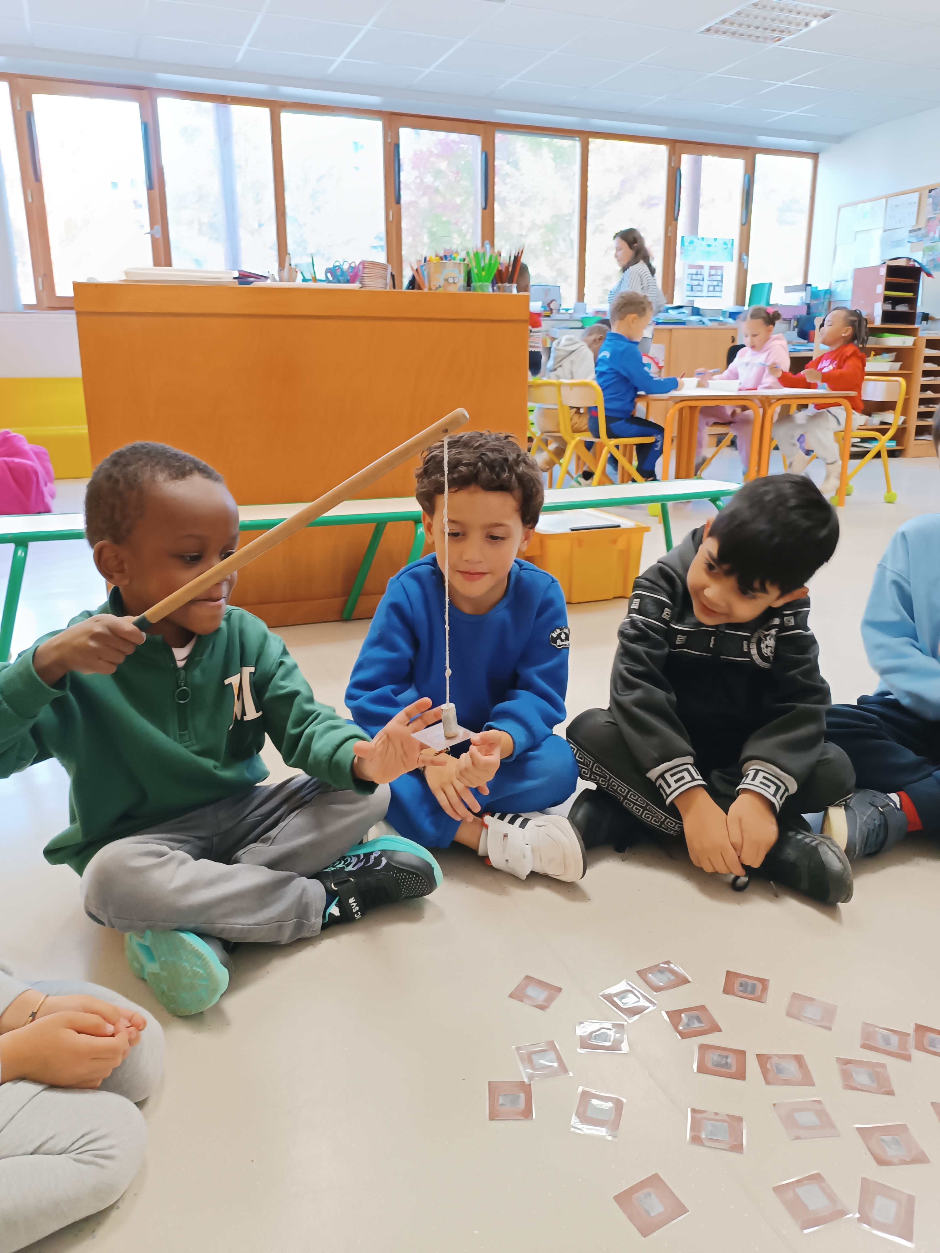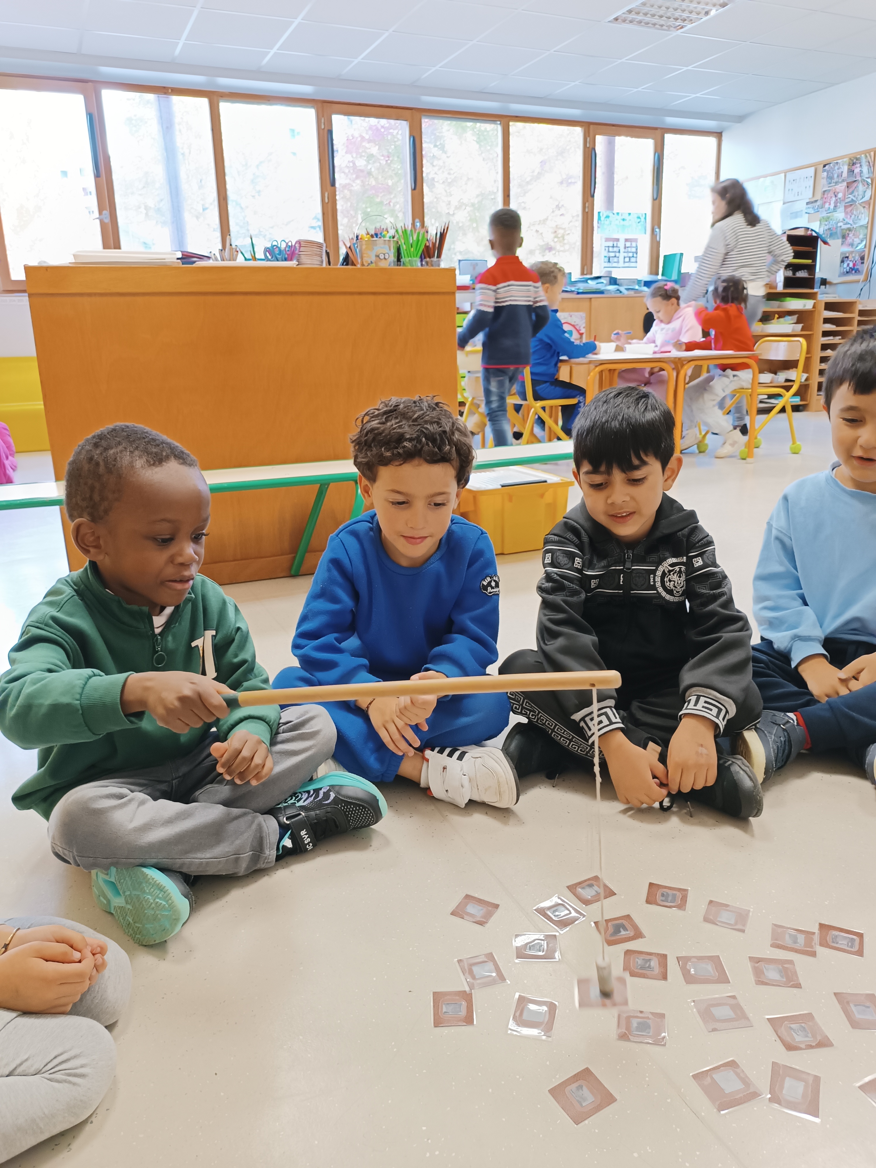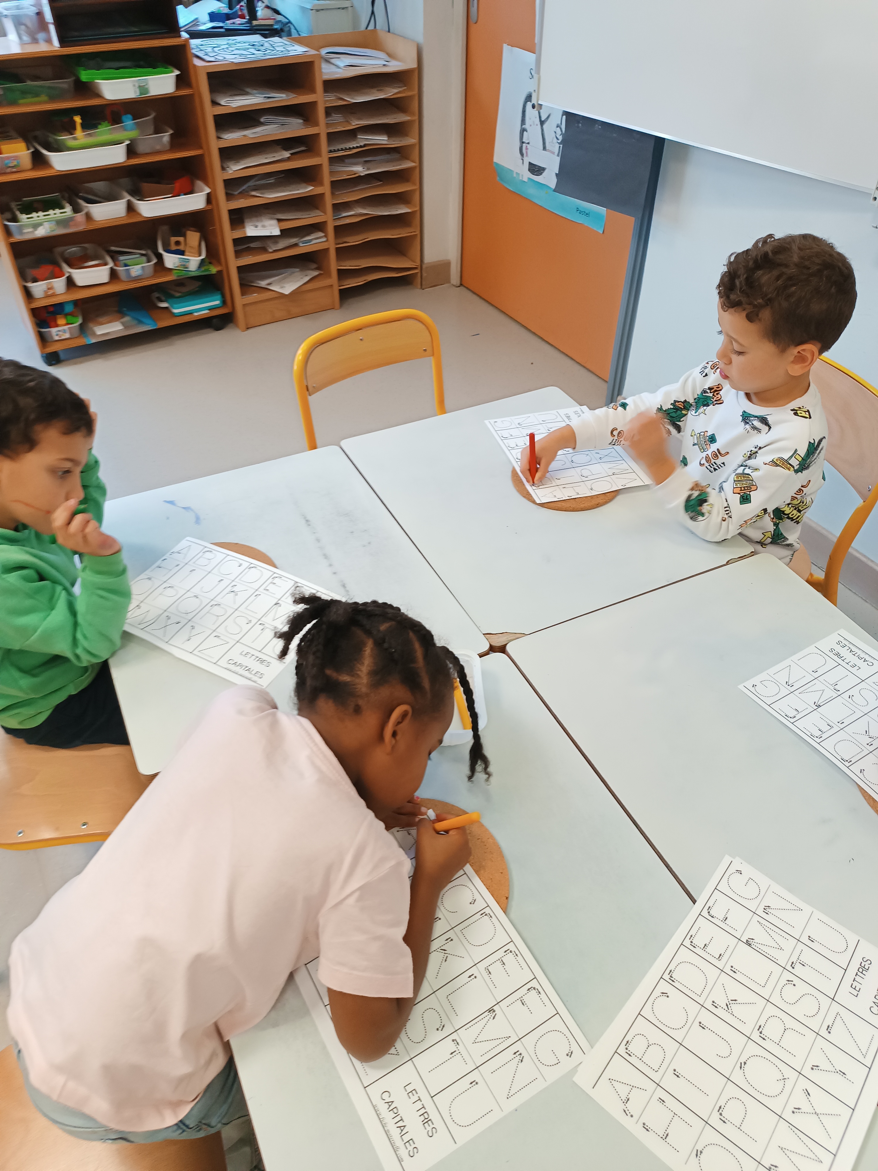 Jeu simple qui a beaucoup plu : chacun leur tour, les enfants pêchent une lettre. S'ils connaissent le nom, ils gardent la carte, sinon ils la repose.
