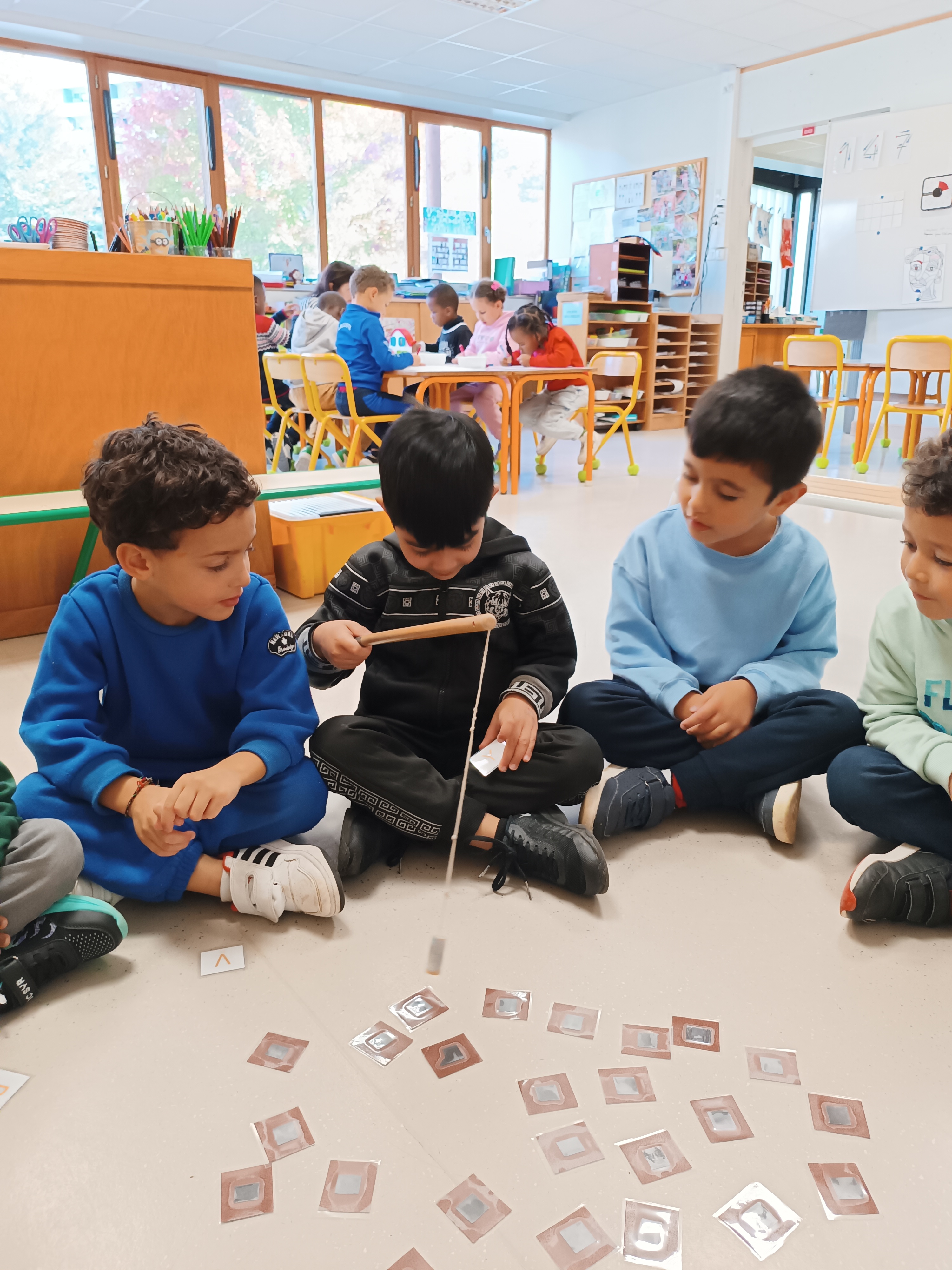 On teste le matériel du nouveau jeu pour travailler la résolution de problèmes : il faut comprendre comment il fonctionne avant de l'utiliser.