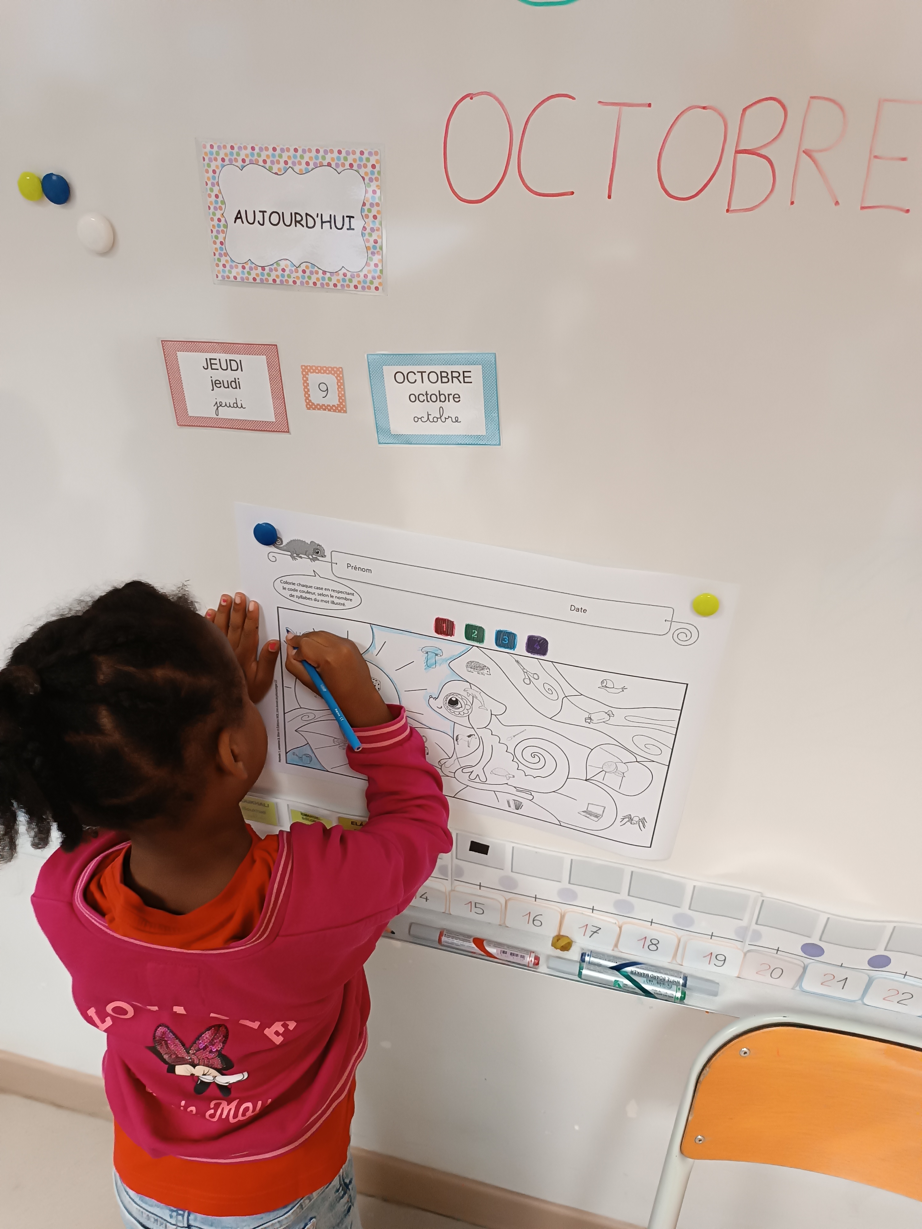 Collectivement, on réalise un coloriage magique : en fonction du nombre de syllabes du mot image, on choisit la couleur.