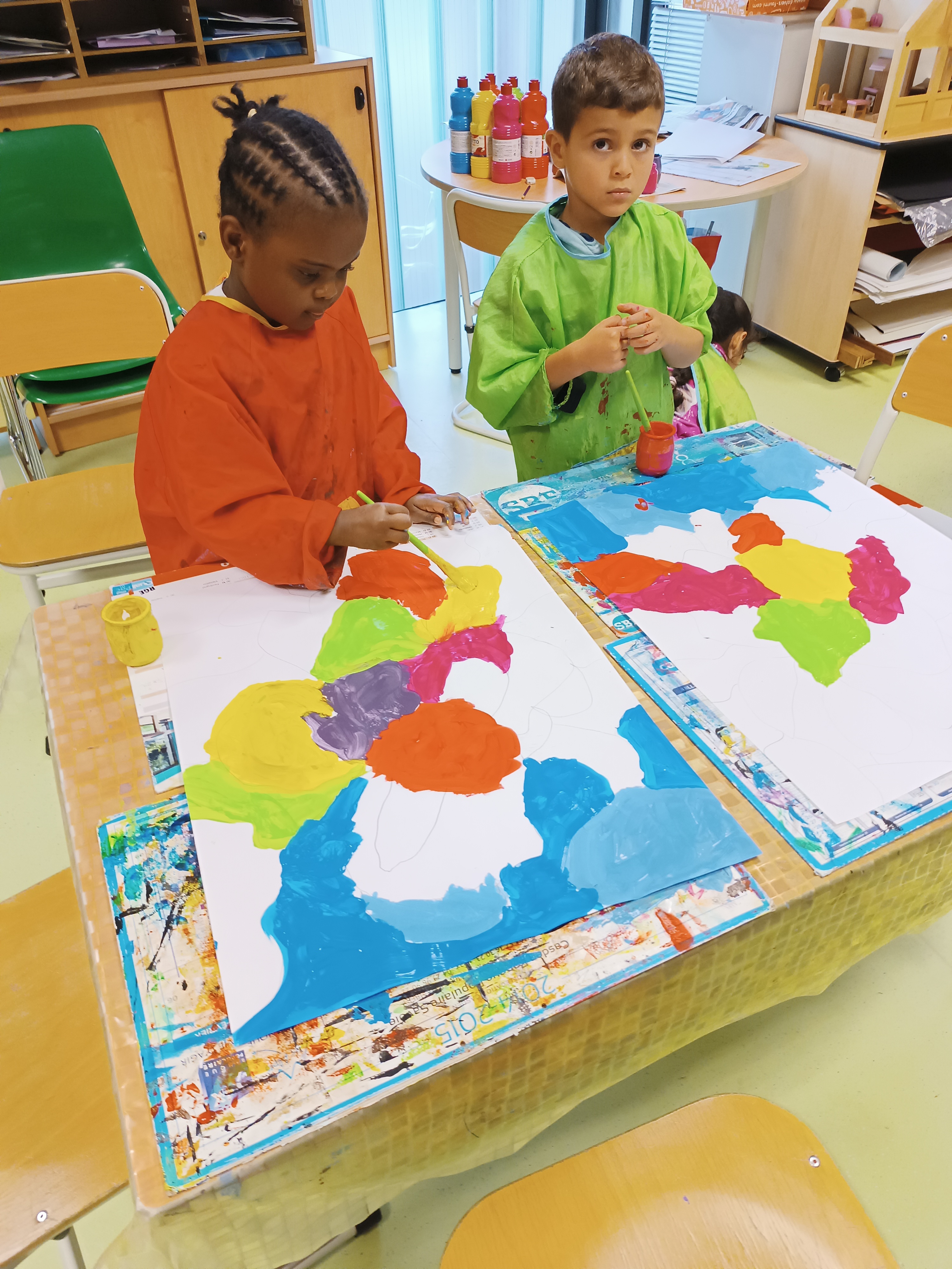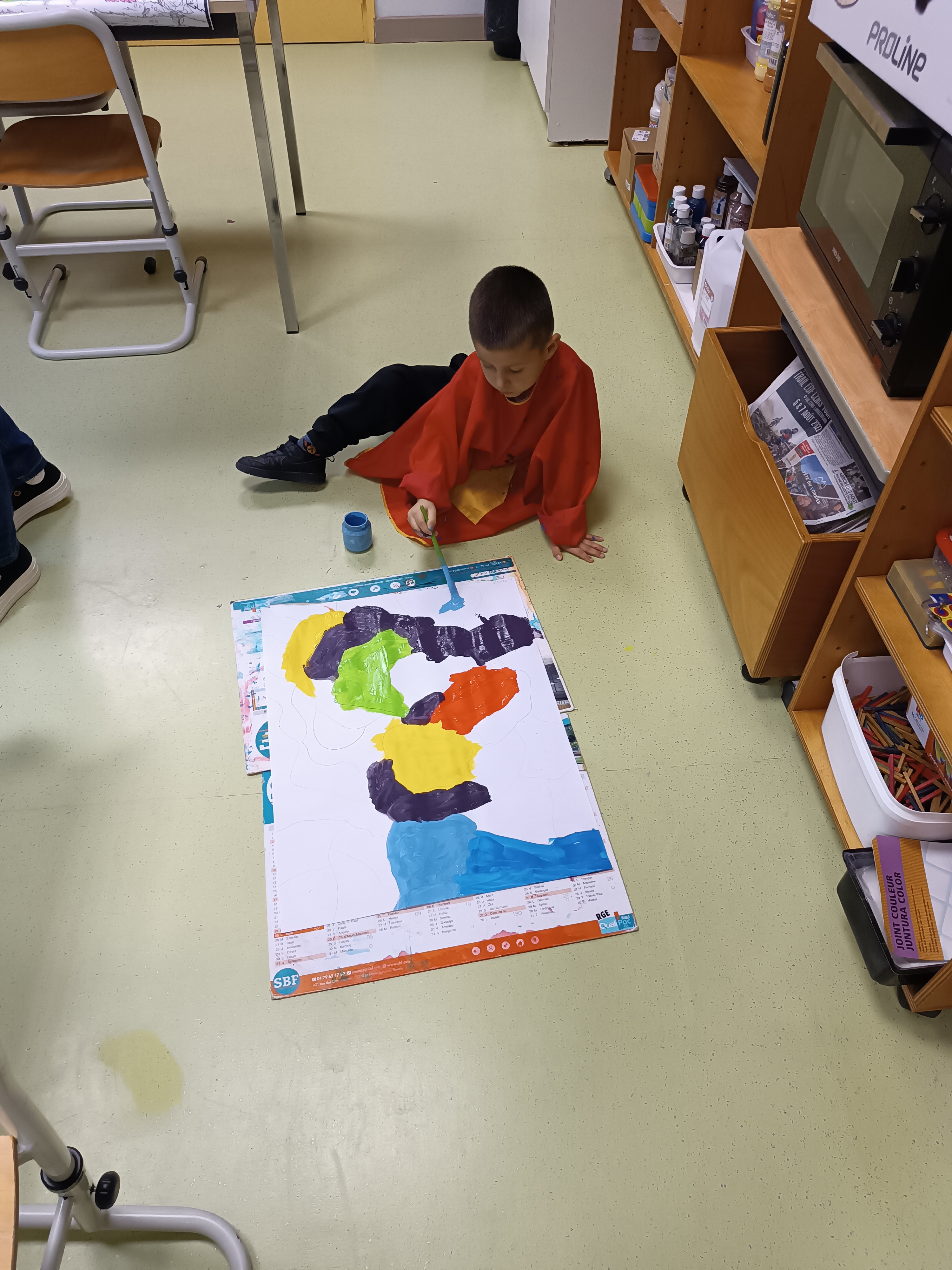 Travail sur un grand format : délimiter des zones et les peindre. Pas toujours évident de travailler sur un si grand format.
