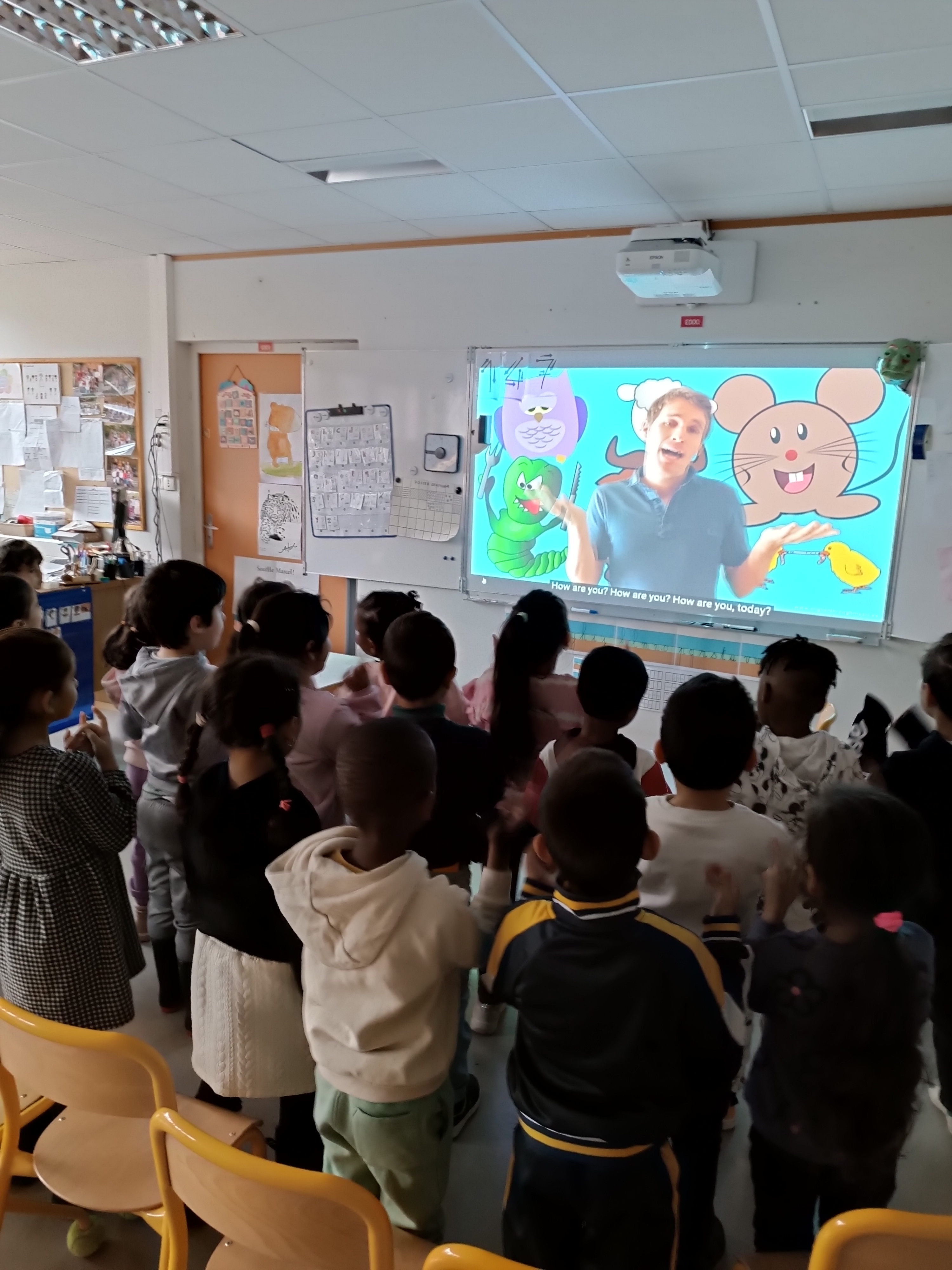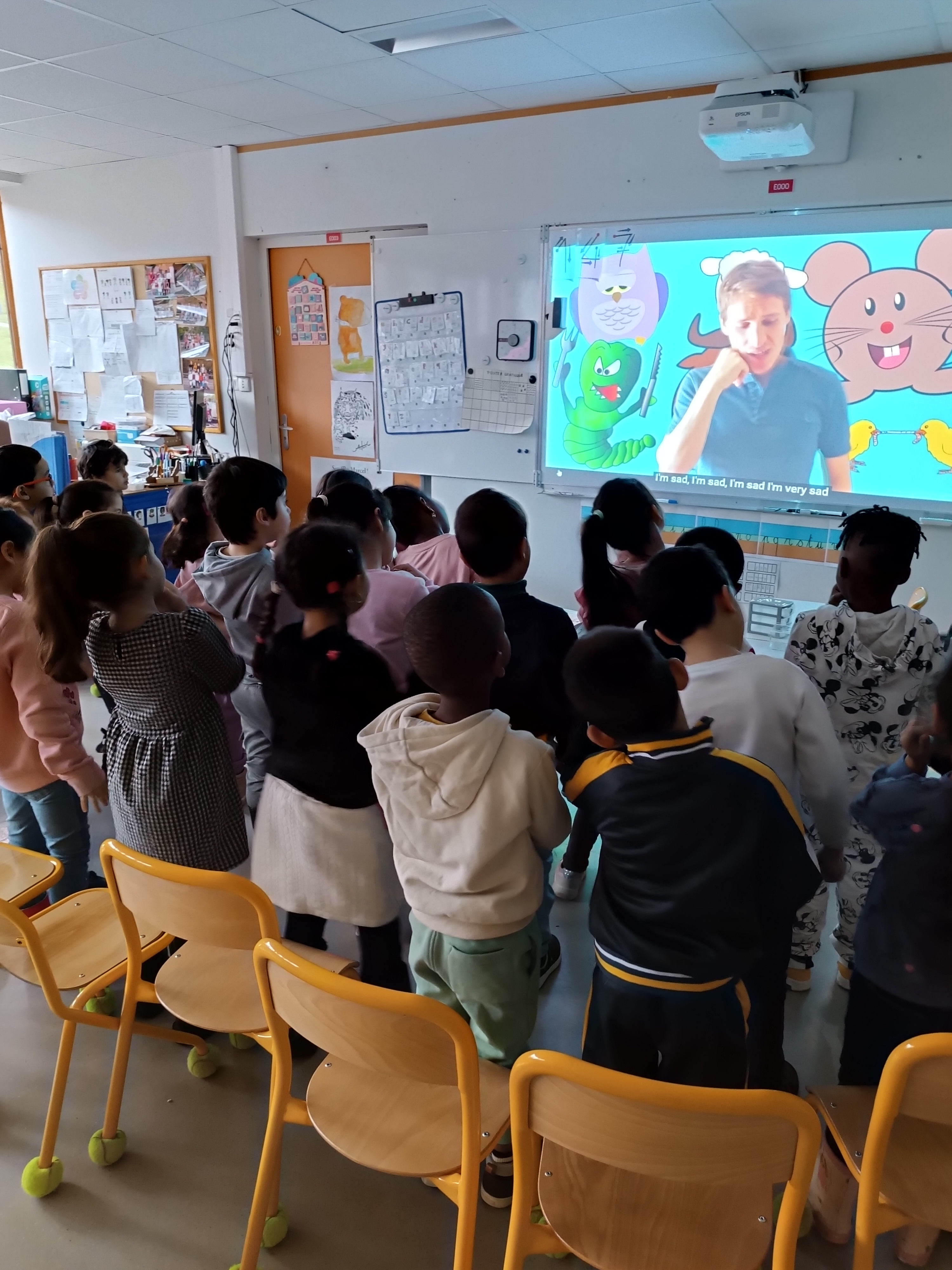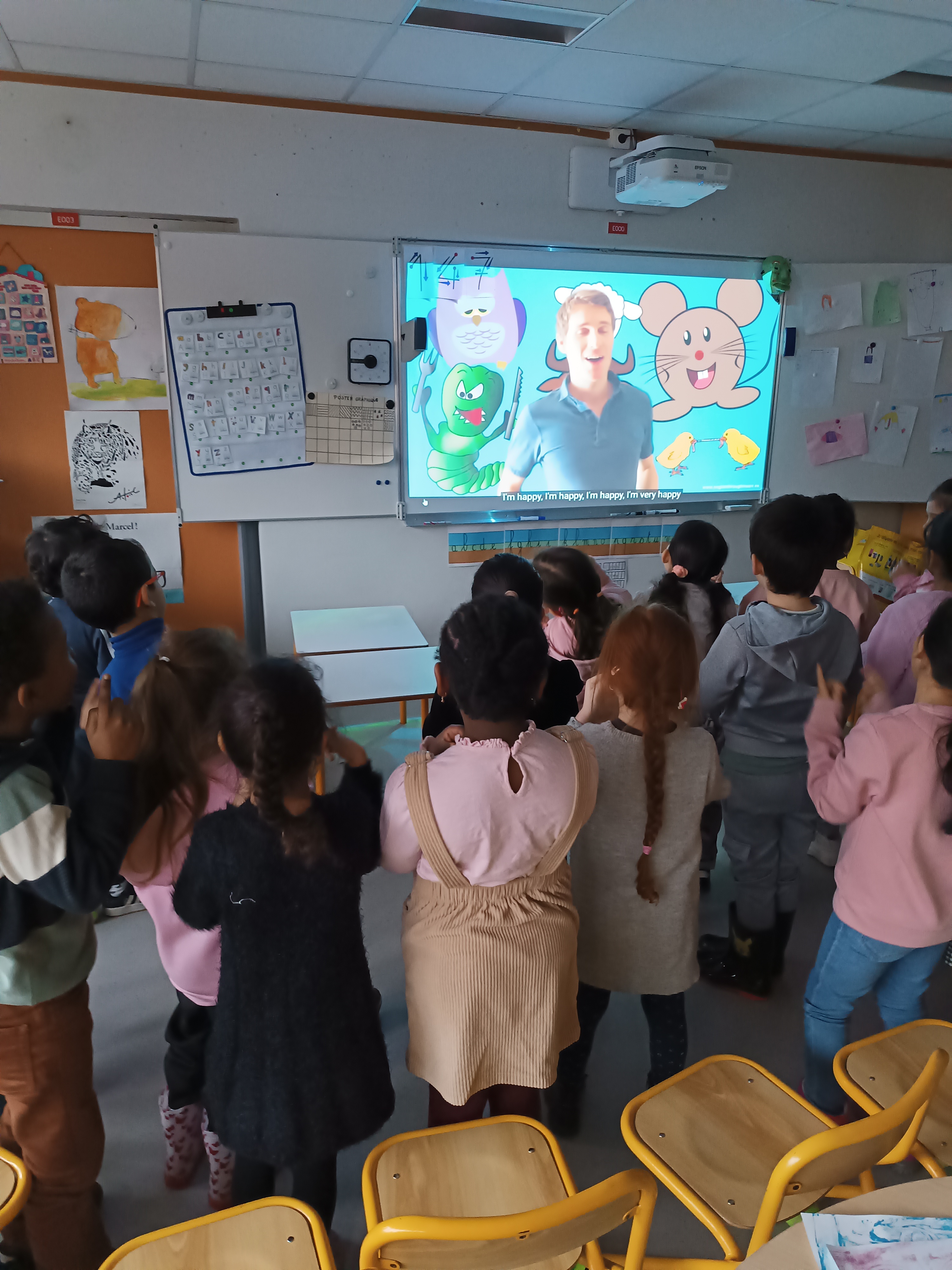 Comme tous les lundis, nous commençons par une séance d'anglais en chanson avec les GS de maîtresse Isabelle.