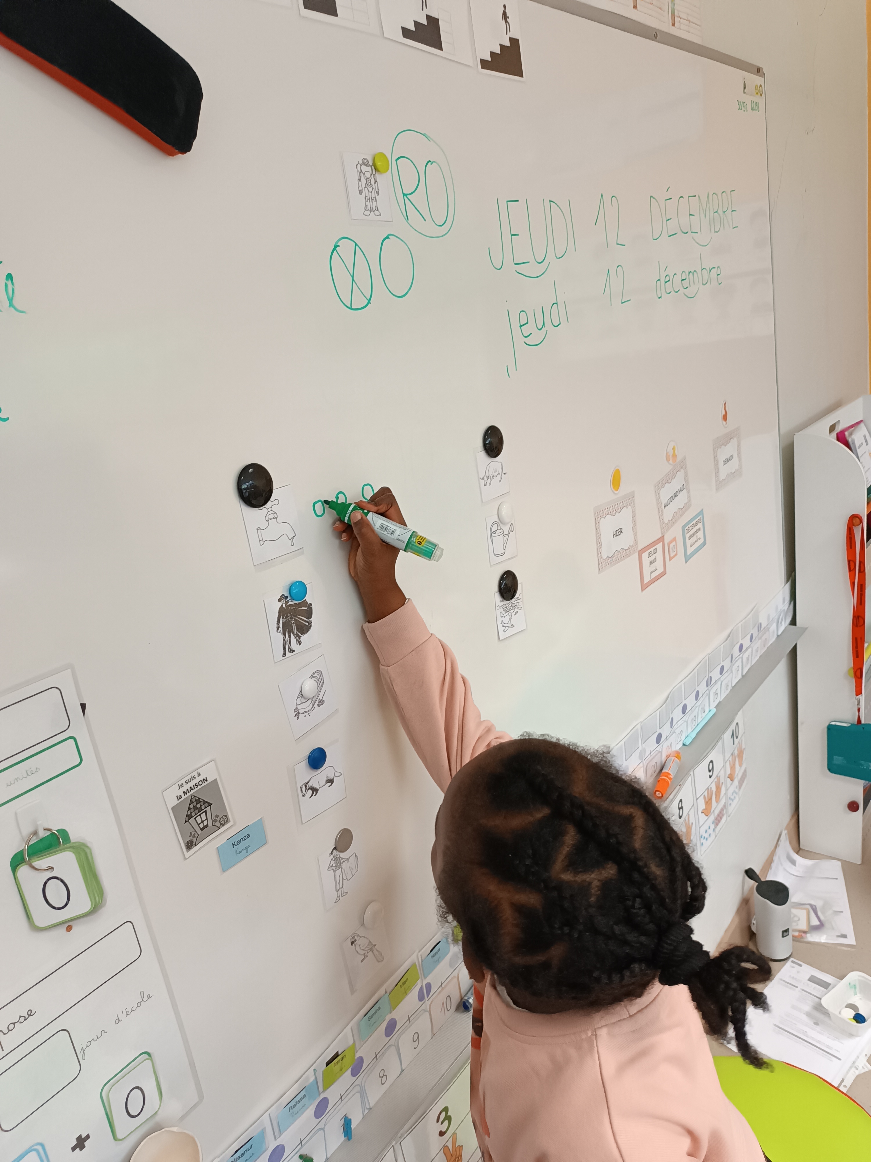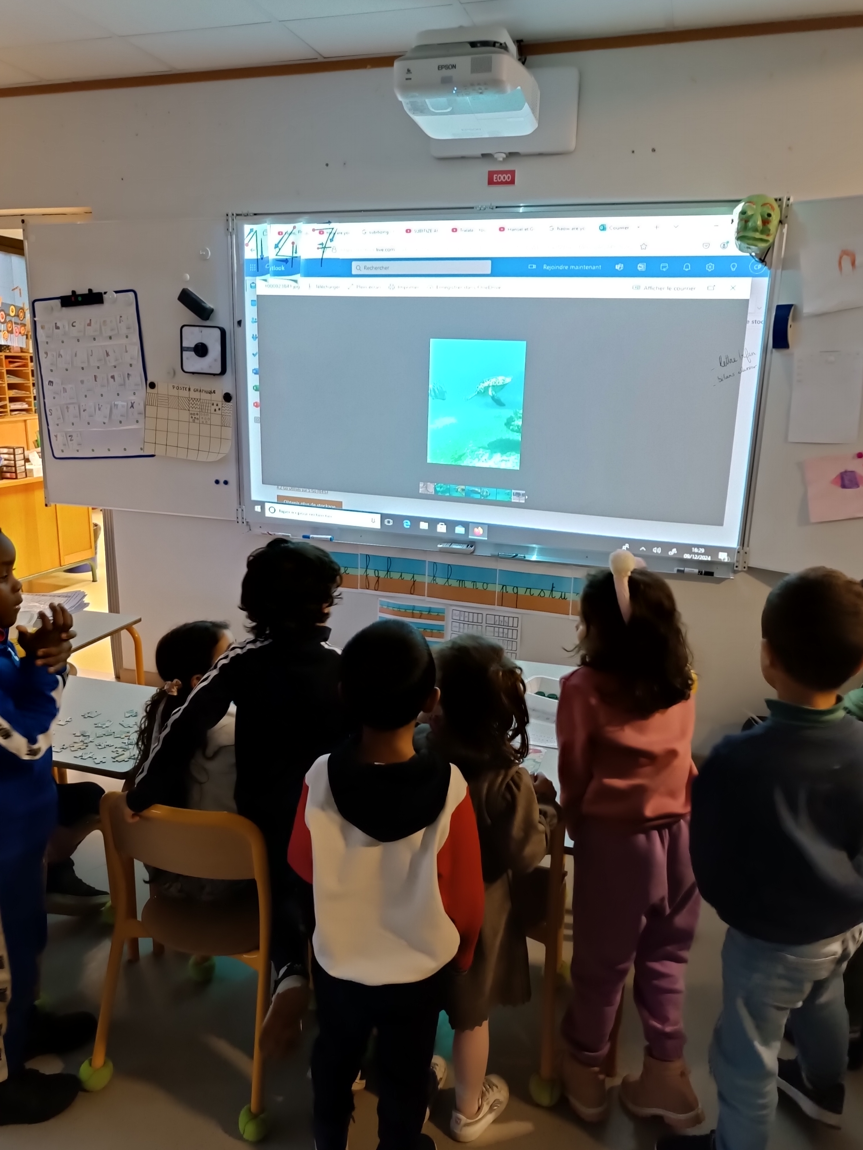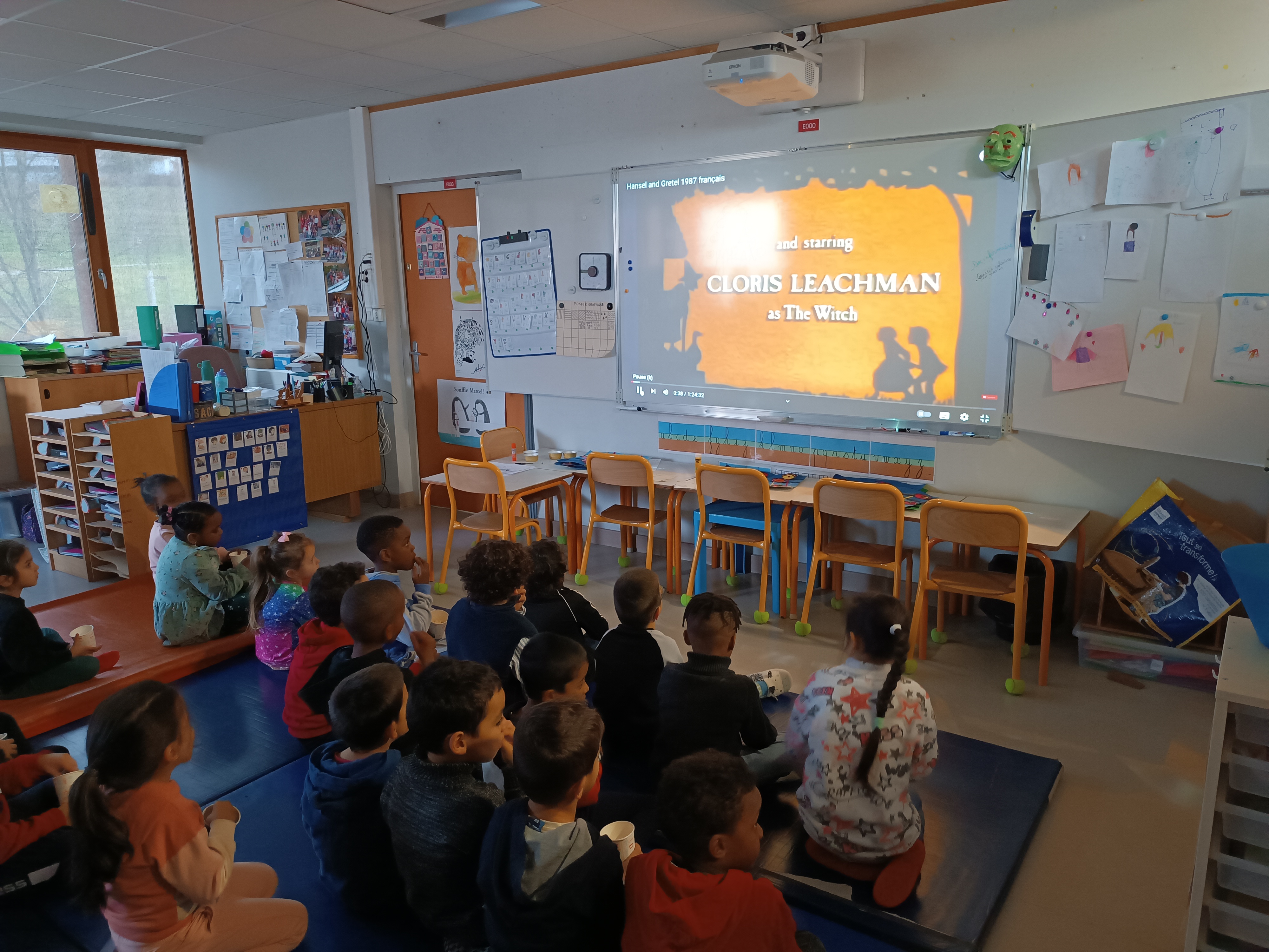 Comme tous les lundis, nous commençons par une séance d'anglais en chanson avec les GS de maîtresse Isabelle.