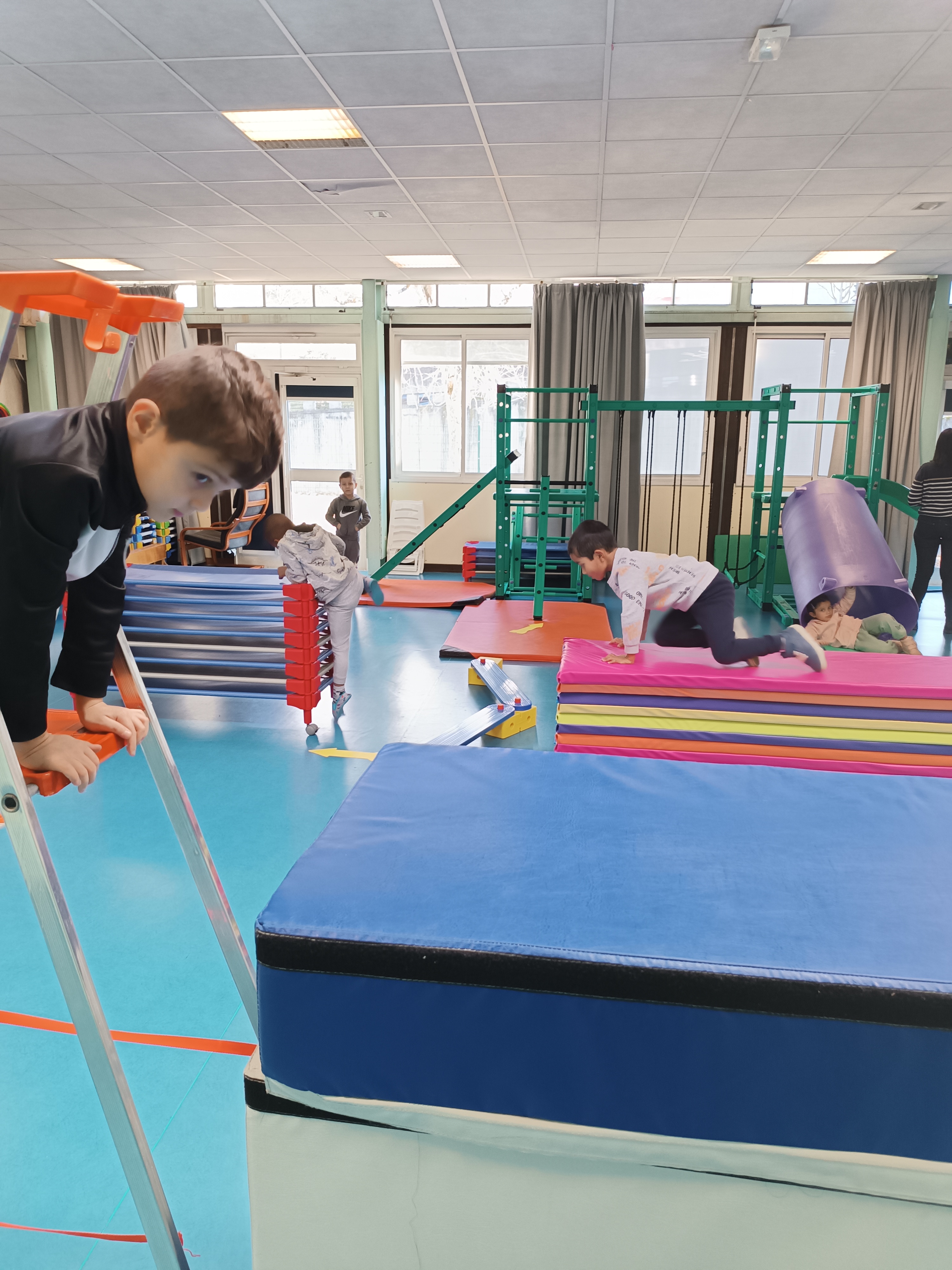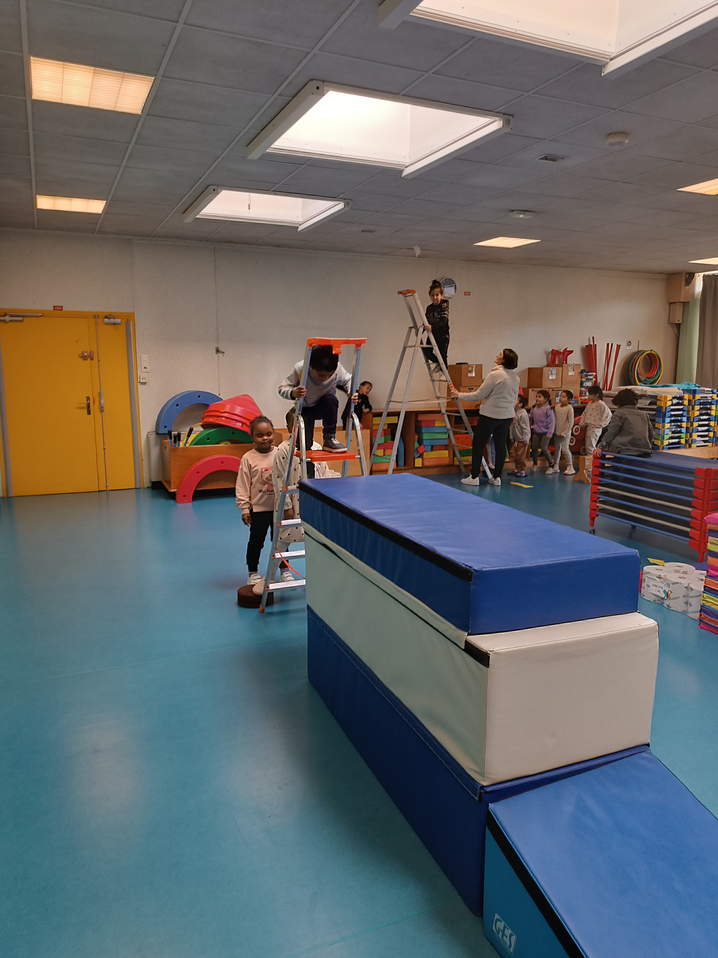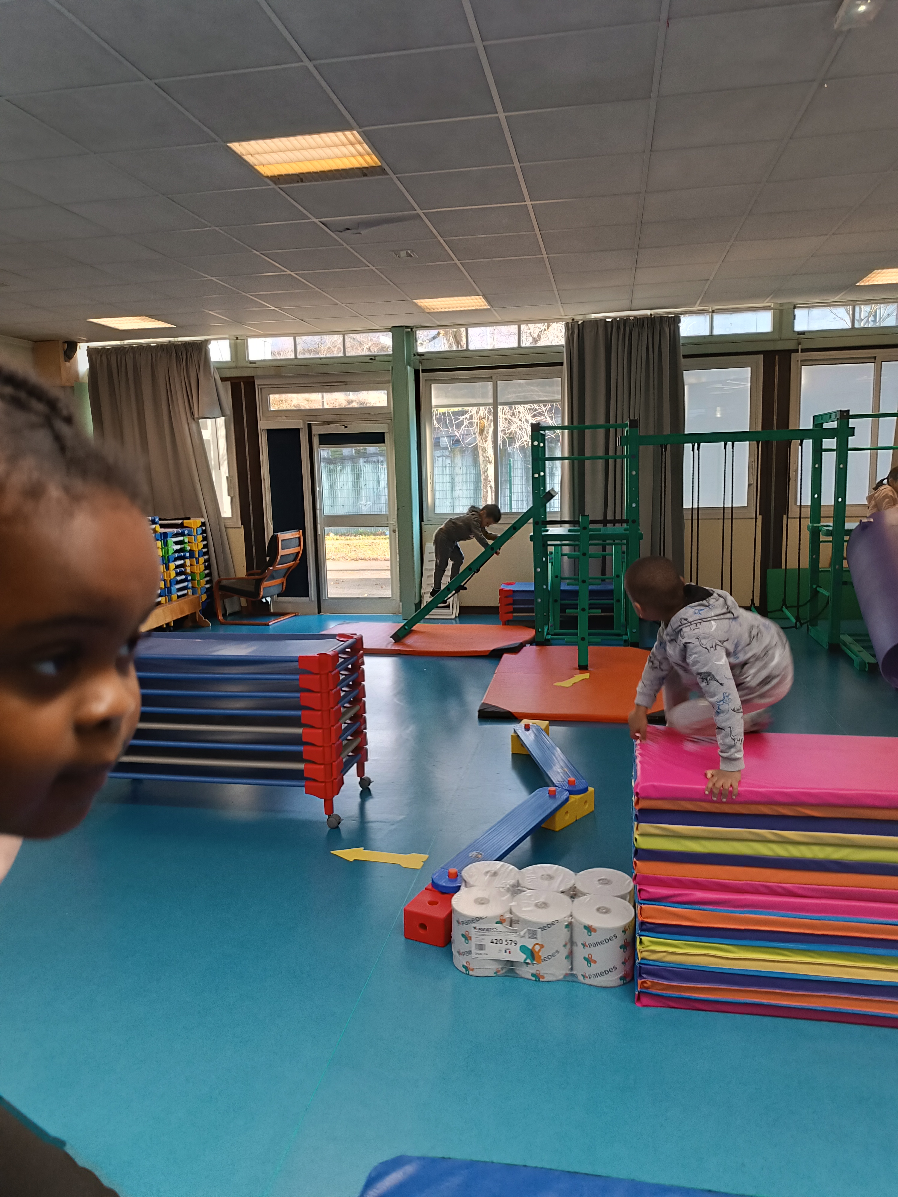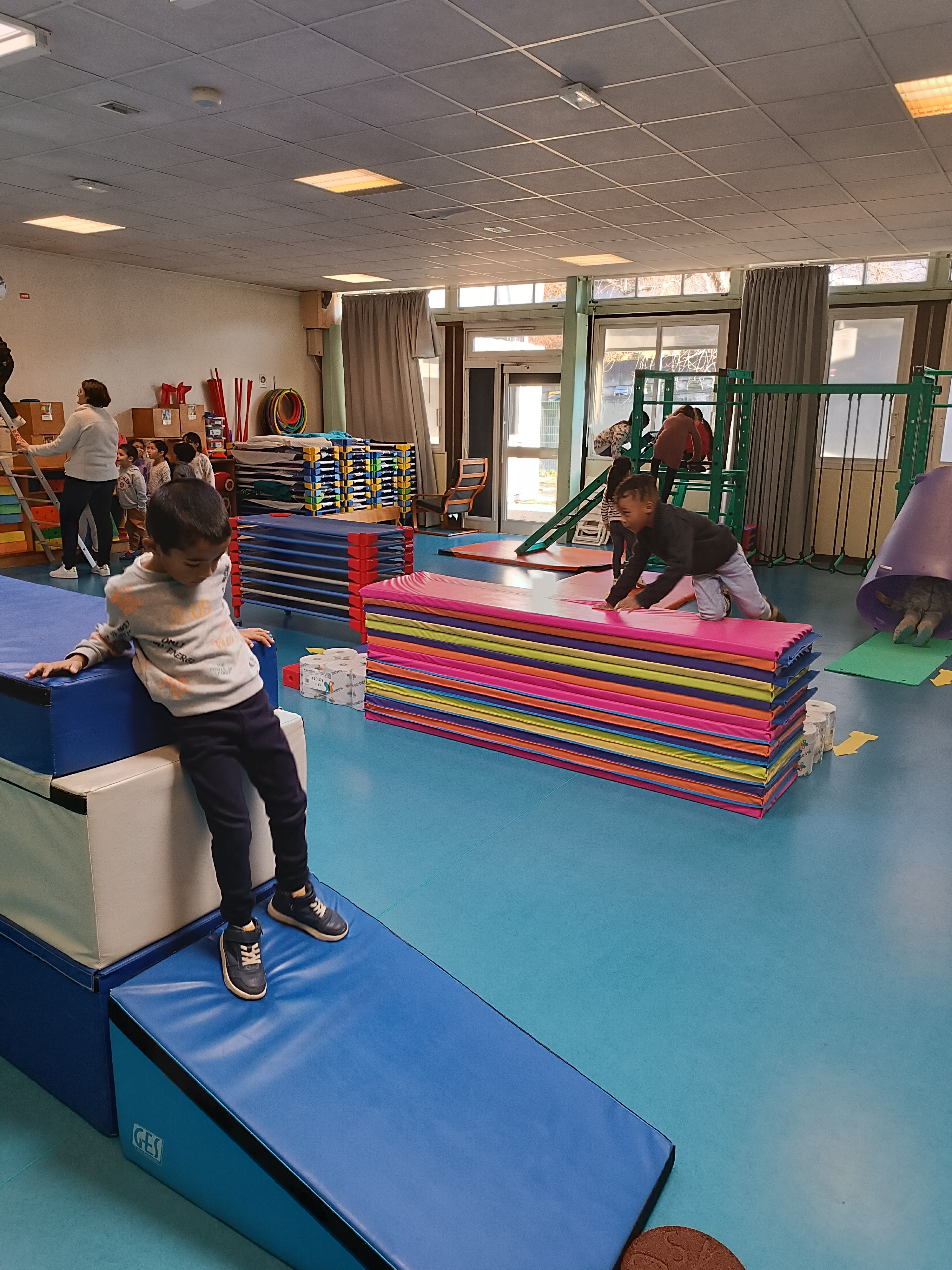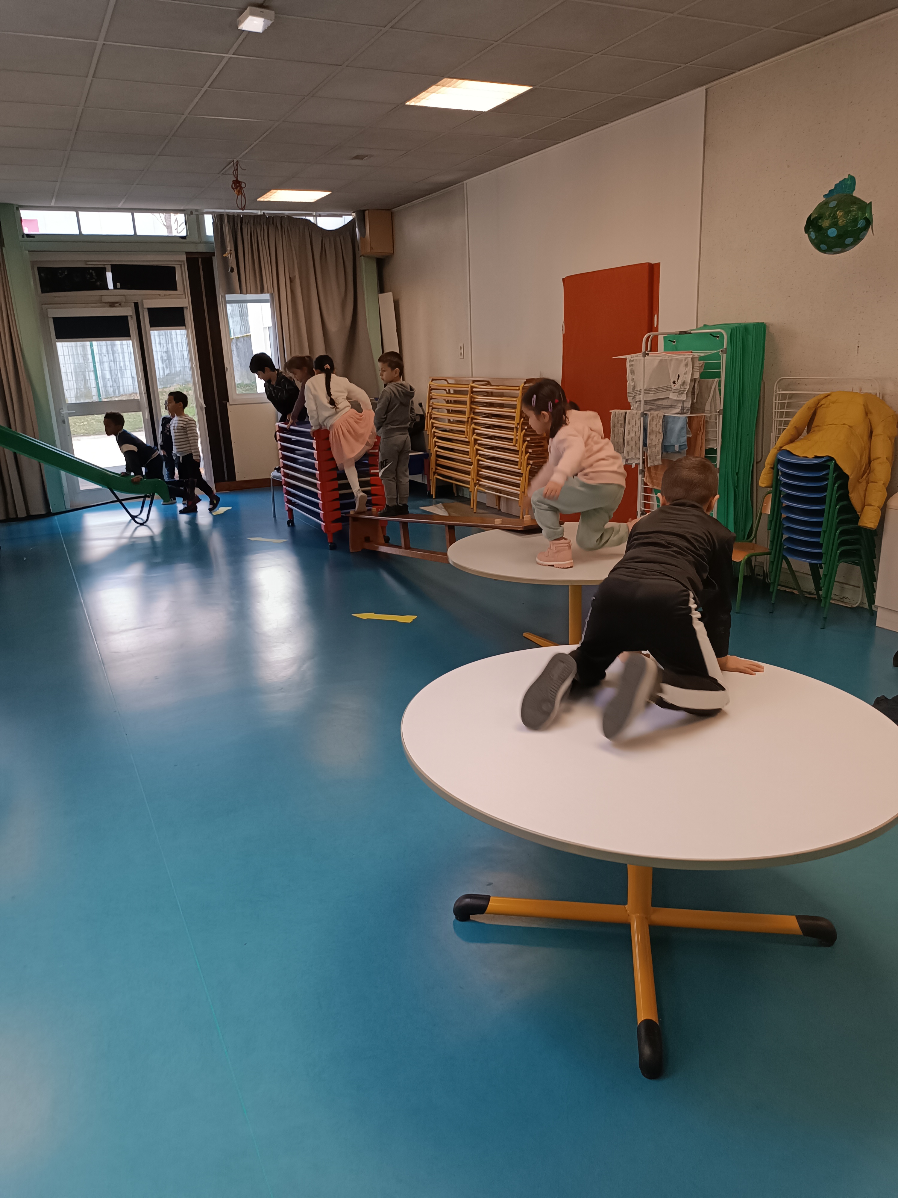 Jeudi matin, c'est parcours de motricité à la maternelle des Combes.